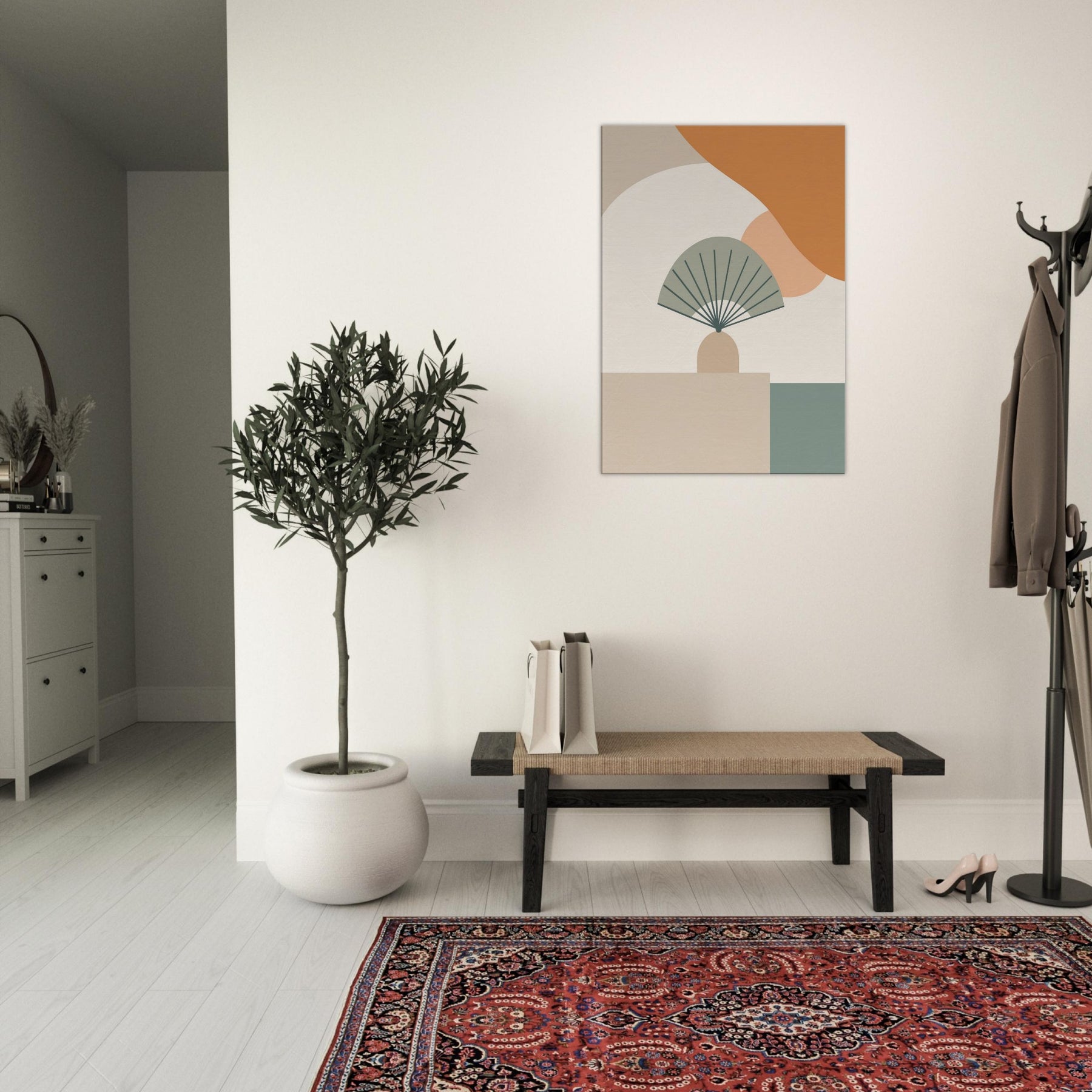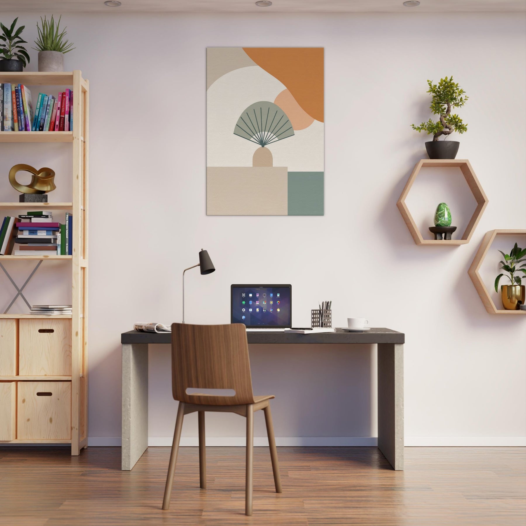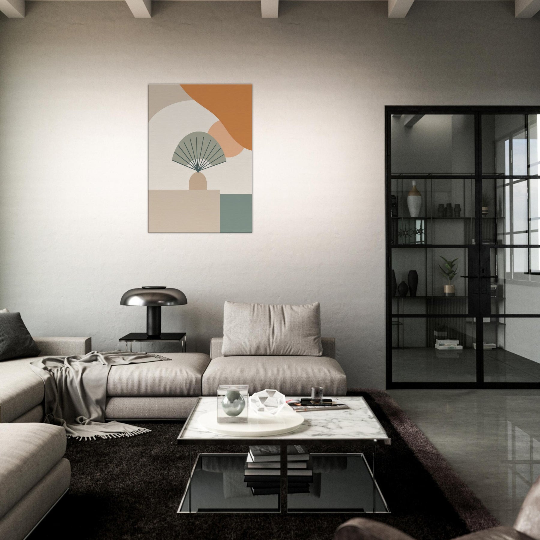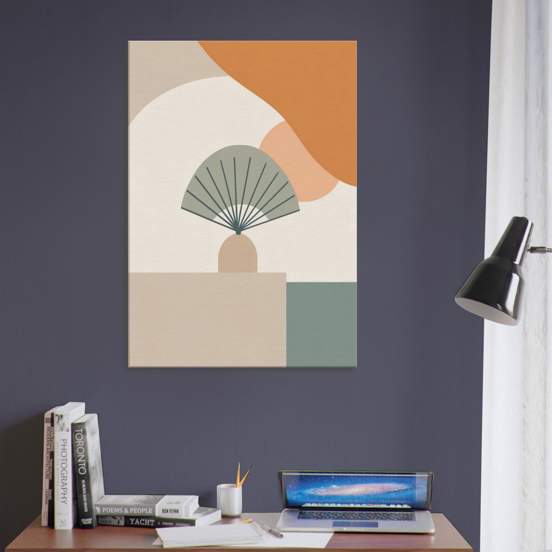 Folding Fan on Table settles into the room as a whisper. This minimalist composition folds space into a calm, architectural moment, where pale curves meet clean lines and gentle neutrals. The Folding Fan on Table becomes a quiet companion, catching light and casting soft shadow on the surface beneath. Hang it in a living room or dining nook to invite stillness, subtle sophistication, and a touch of quiet drama an everyday icon reimagined as calm color and form.