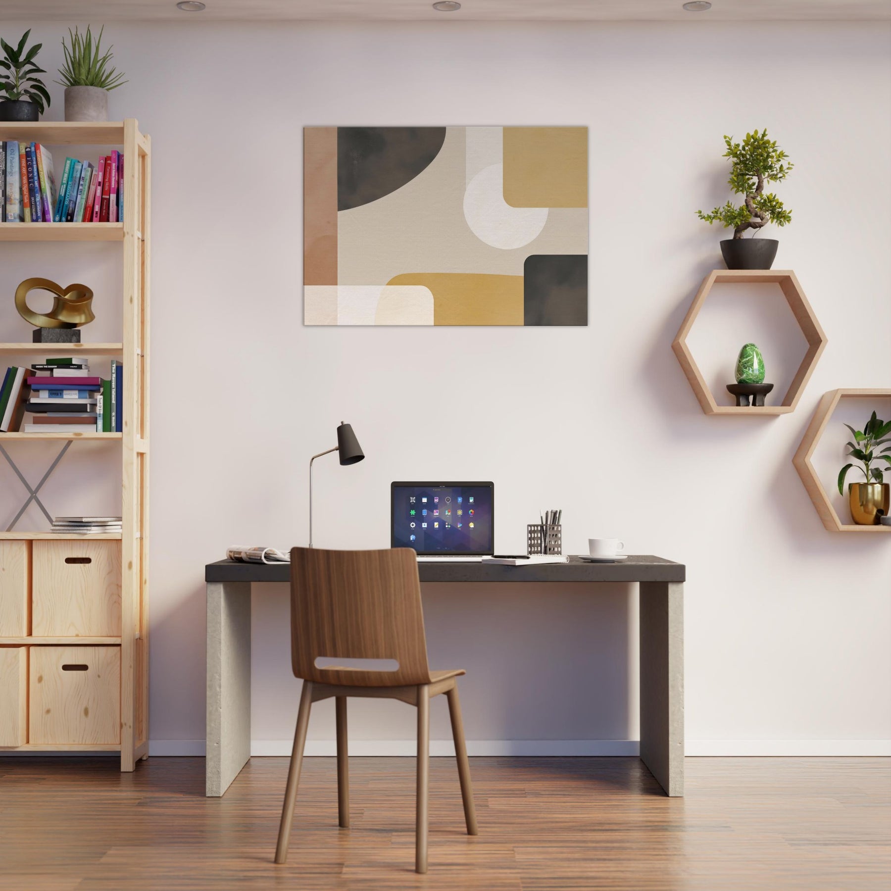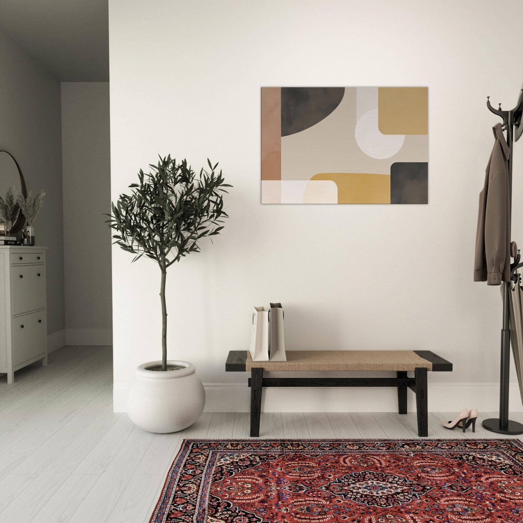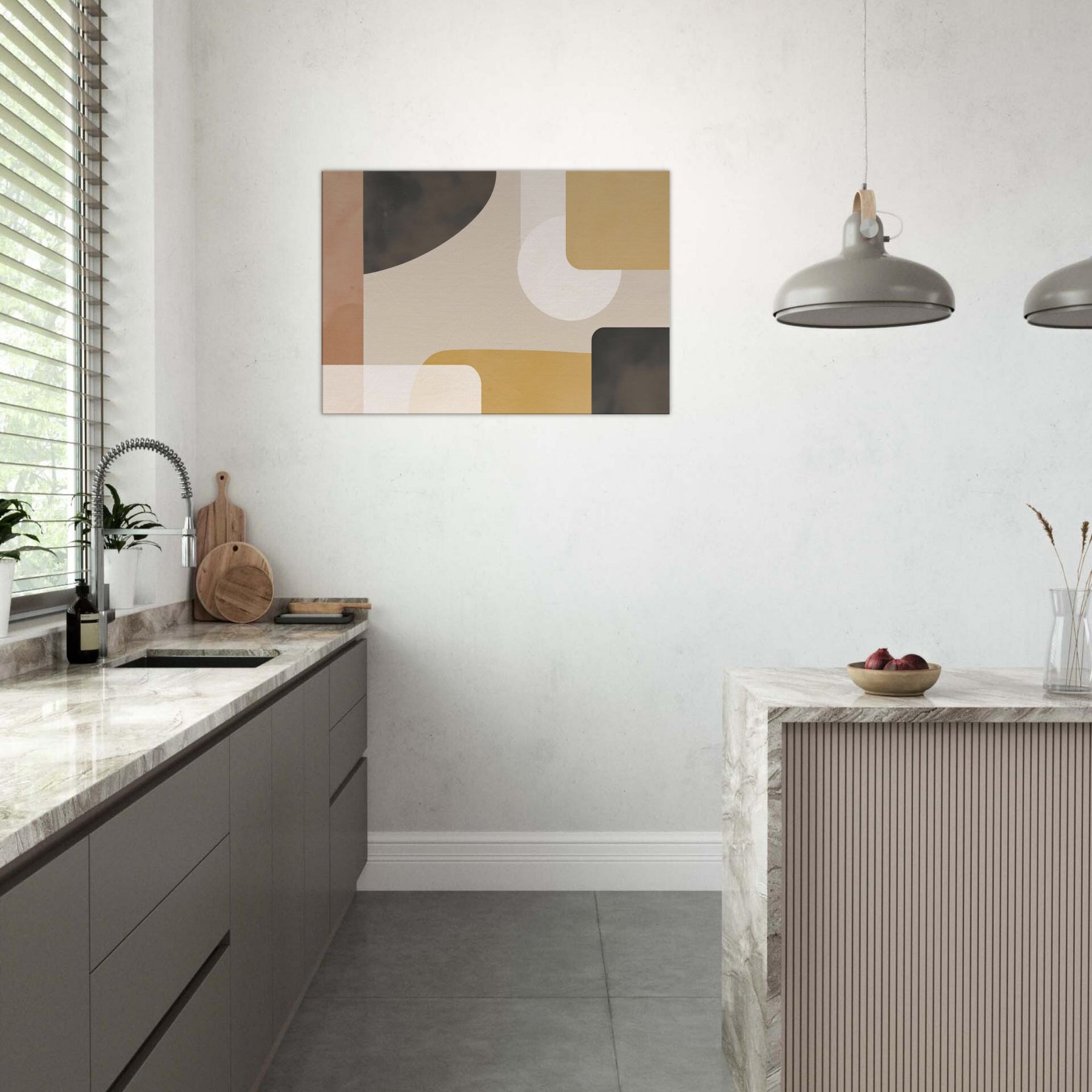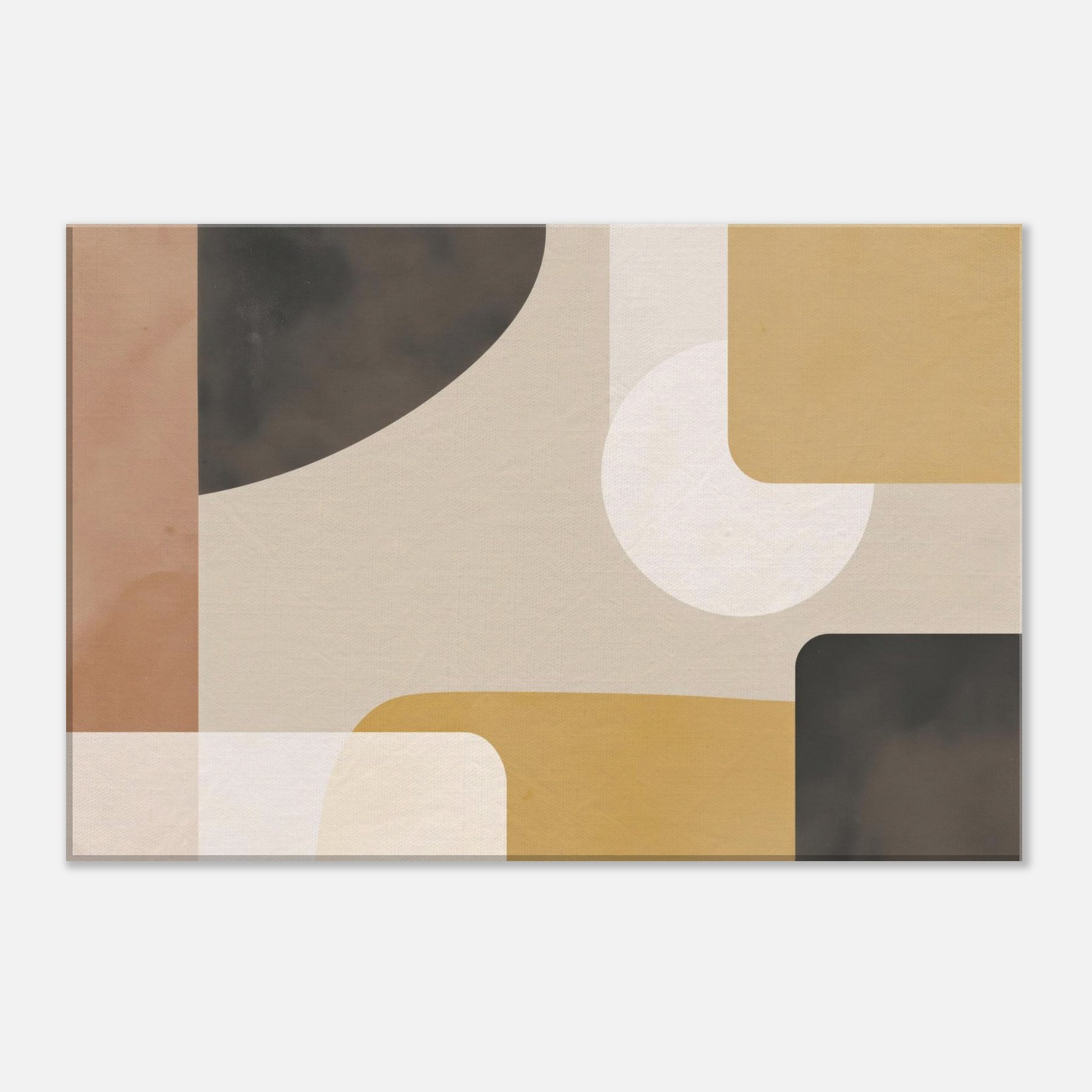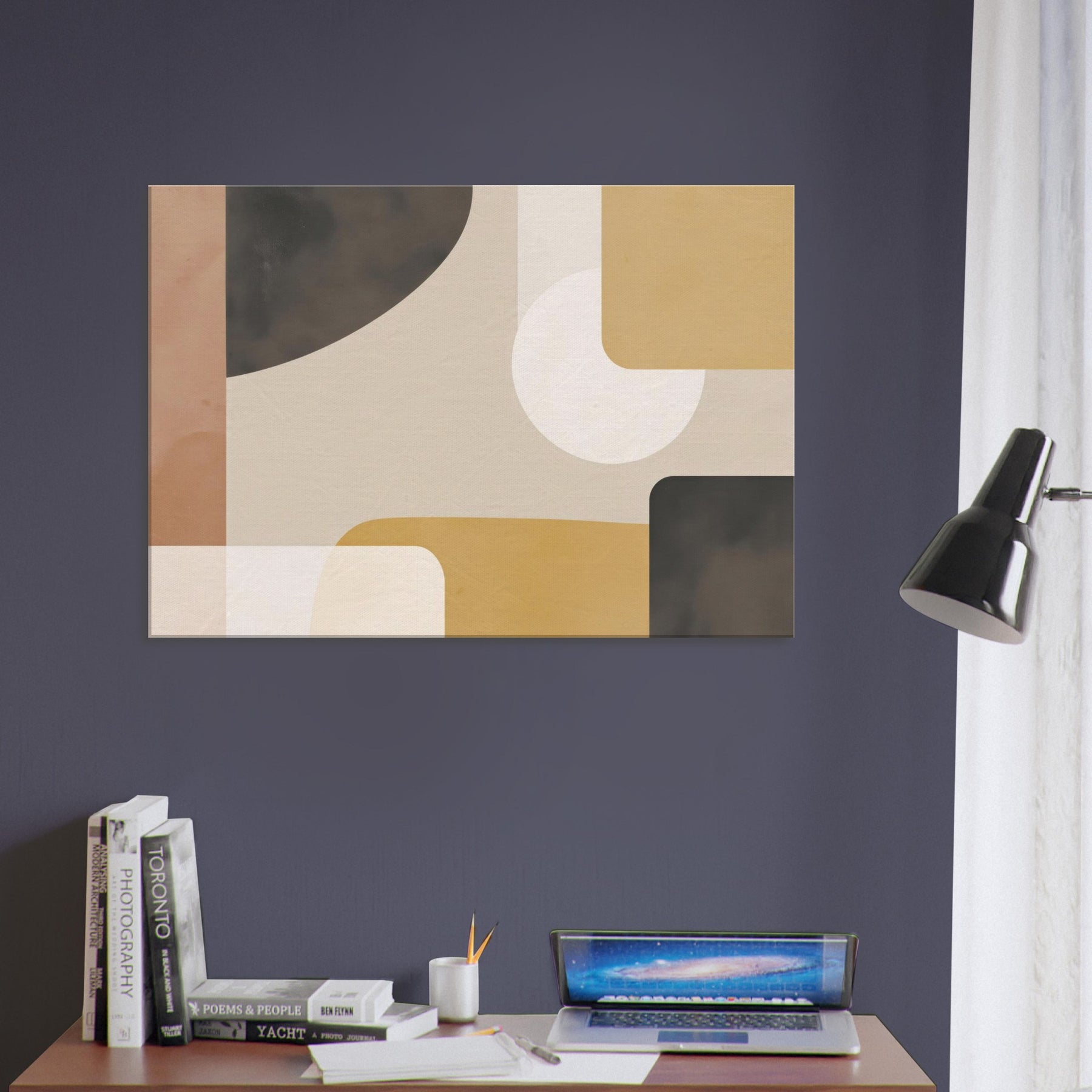 Geometric Shapes float in a serene field of neutrals, each curve and edge hinting at quiet narratives. This minimalist composition invites calm focus, turning walls into a subtle stage for daily life. The Geometric Shapes speak in soft ochres, ash, and charcoal, revealing faces and bodies more through suggestion than detail. Hang it where light shifts through the day and watch the space transform an architectural breath that pairs with coffee mornings or candlelit evenings, elevating a room with restraint, texture, and cinematic stillness.