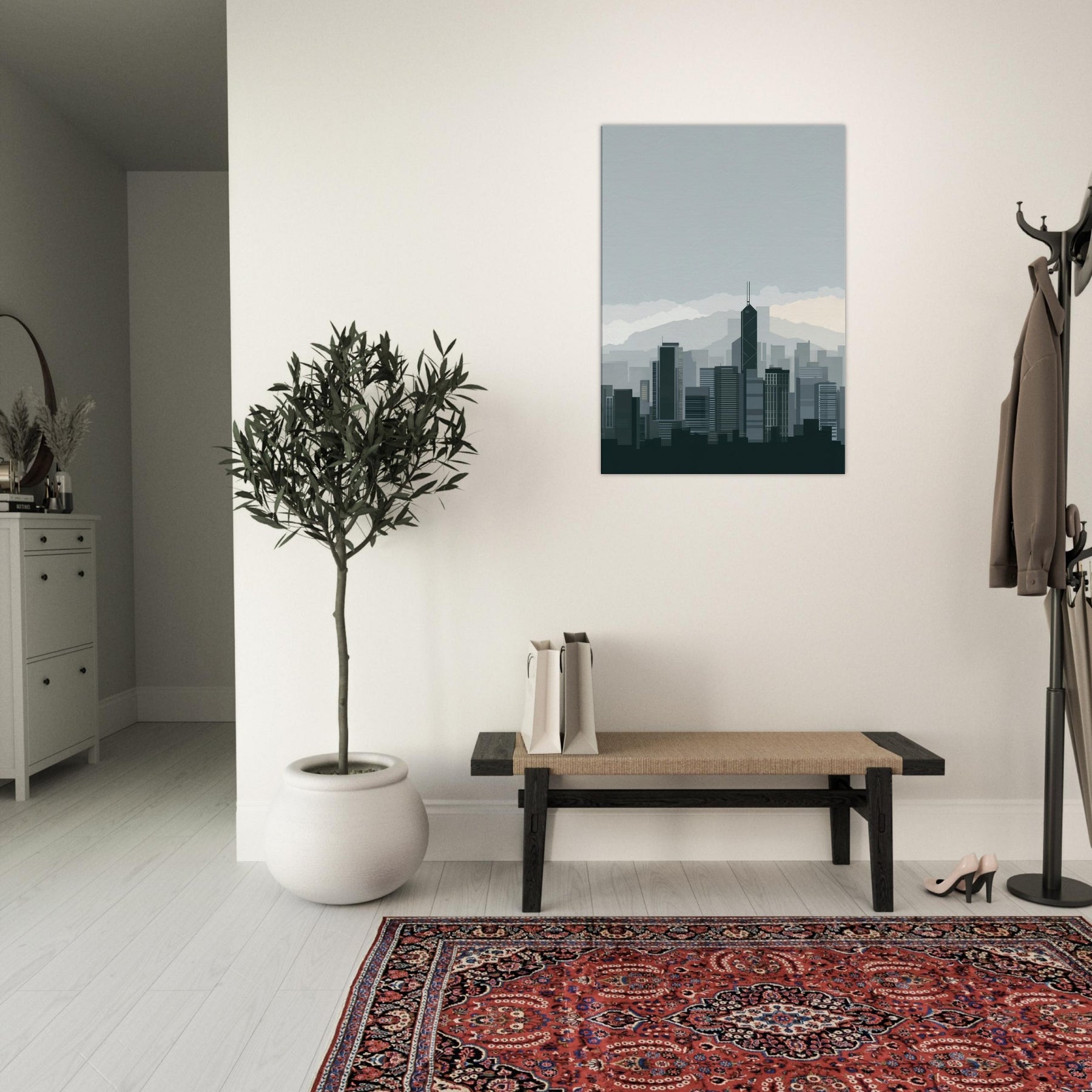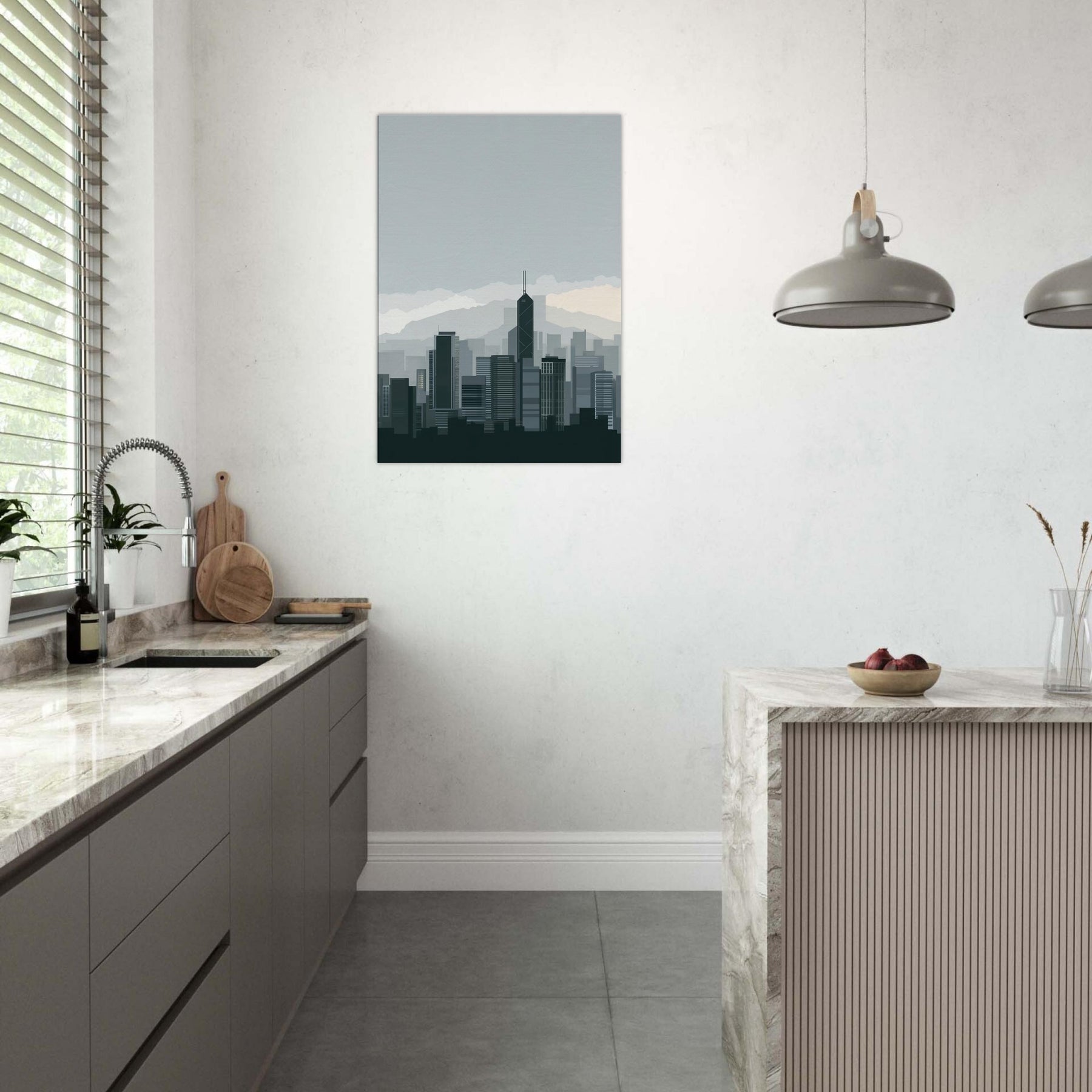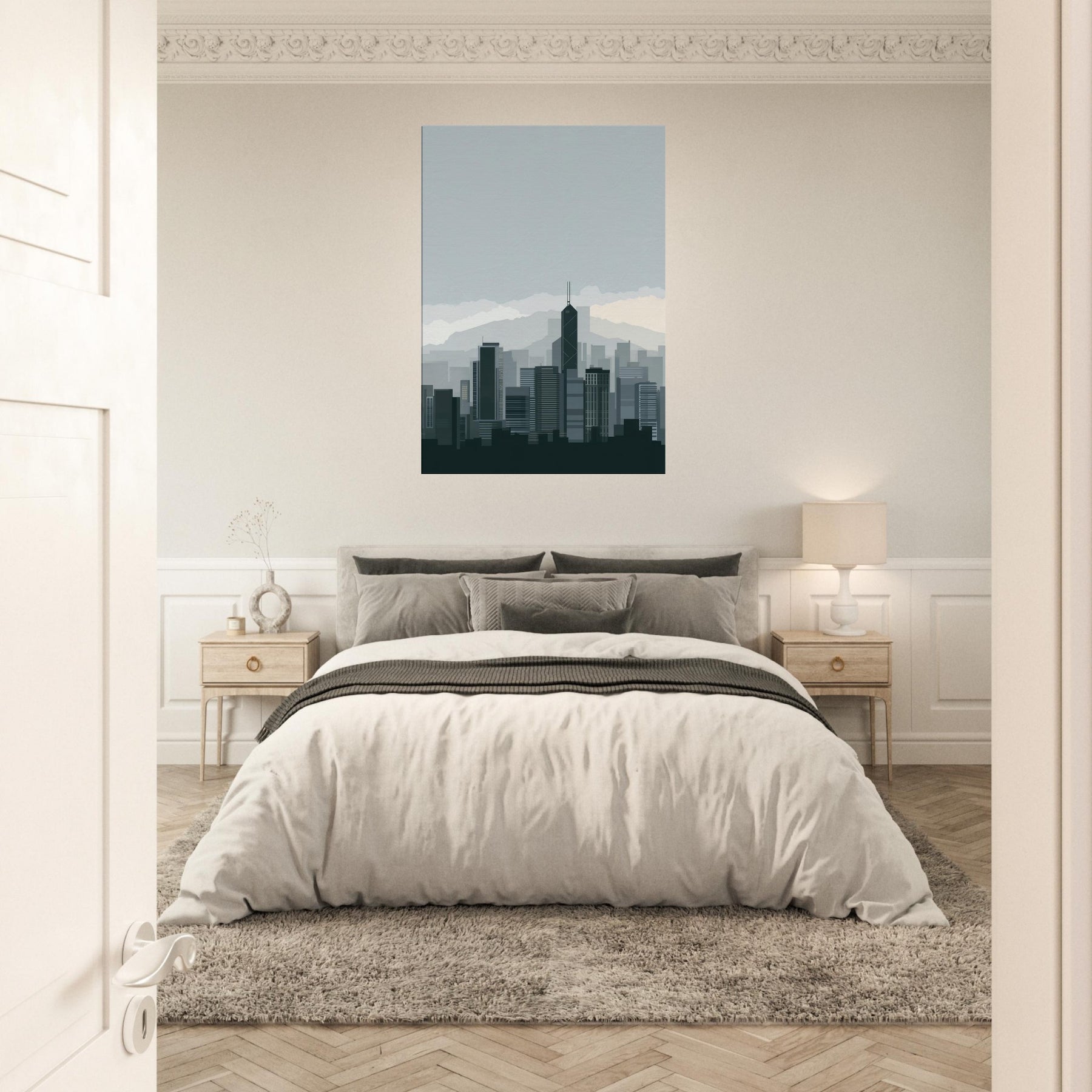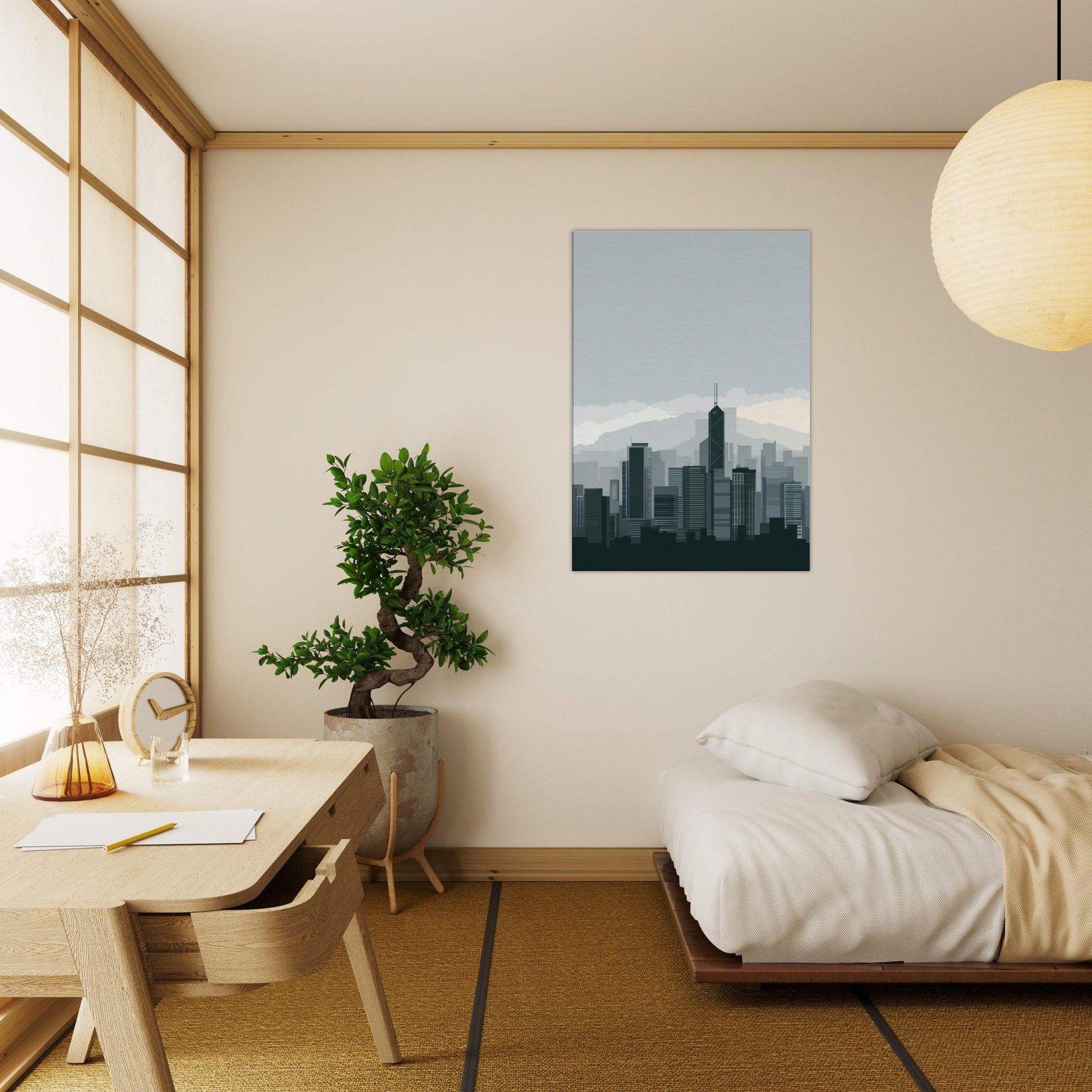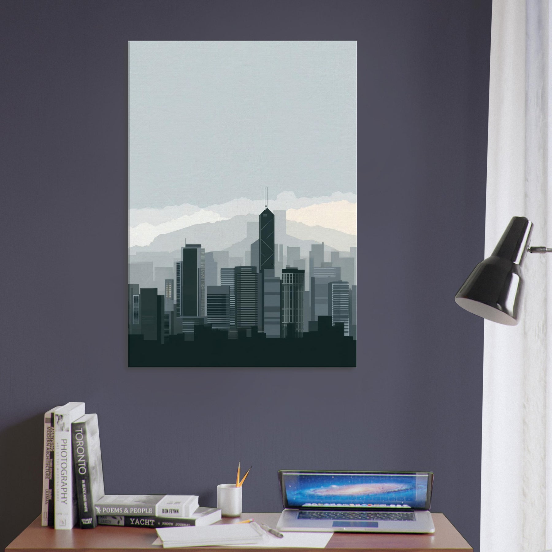 This minimalist Hong Kong skyline dissolves into quiet geometry, inviting contemplation over the hustle of a harbor city. Soft grays, tempered by pale horizons, distill the thrill of towering silhouettes into a serene architectural poem. The piece reframes urban energy as still presence, encouraging a calm focal point in any living space. Hang it above a sofa or in a study to evoke dusk lit harbor lights, subtle motion, and the promise of possibility within everyday rooms.
