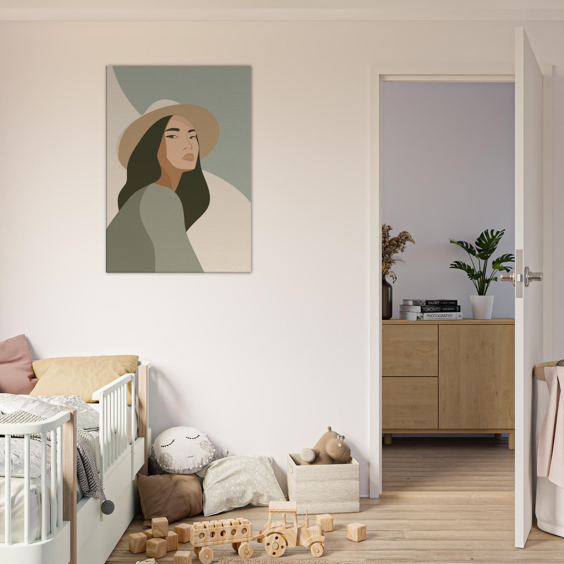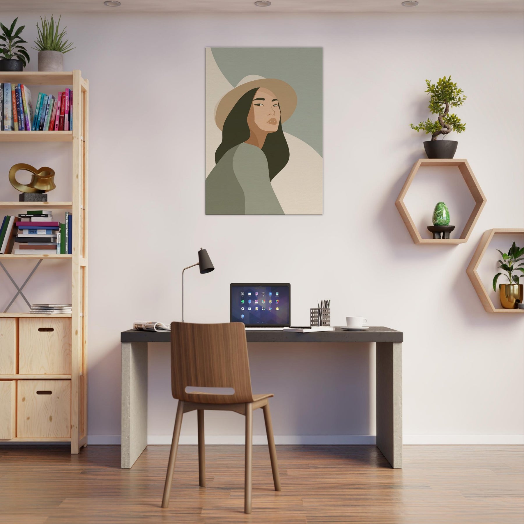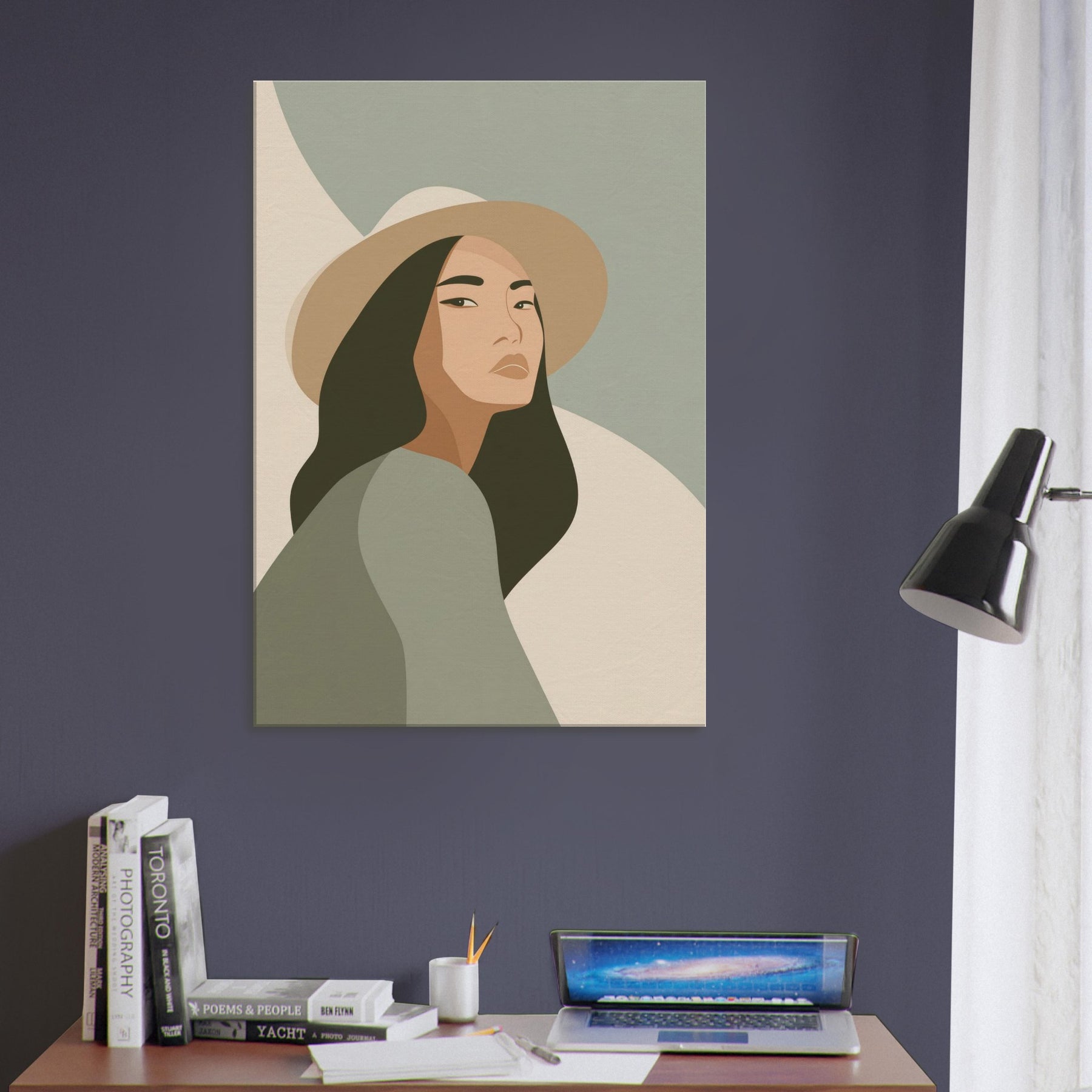Softly lit and endlessly poised, this minimalist study of the Woman with Hat invites calm into any room. The clean lines and restrained palette glide across the wall, creating a sense of quiet grace that enhances everyday living spaces without shouting for attention. The gaze is contemplative, the hat a gentle silhouette that frames the skin tones and evokes warmth, memory, and possibility. Hang it in a living room or bedroom to soften edges, spark conversation, and invite everyday stillness.