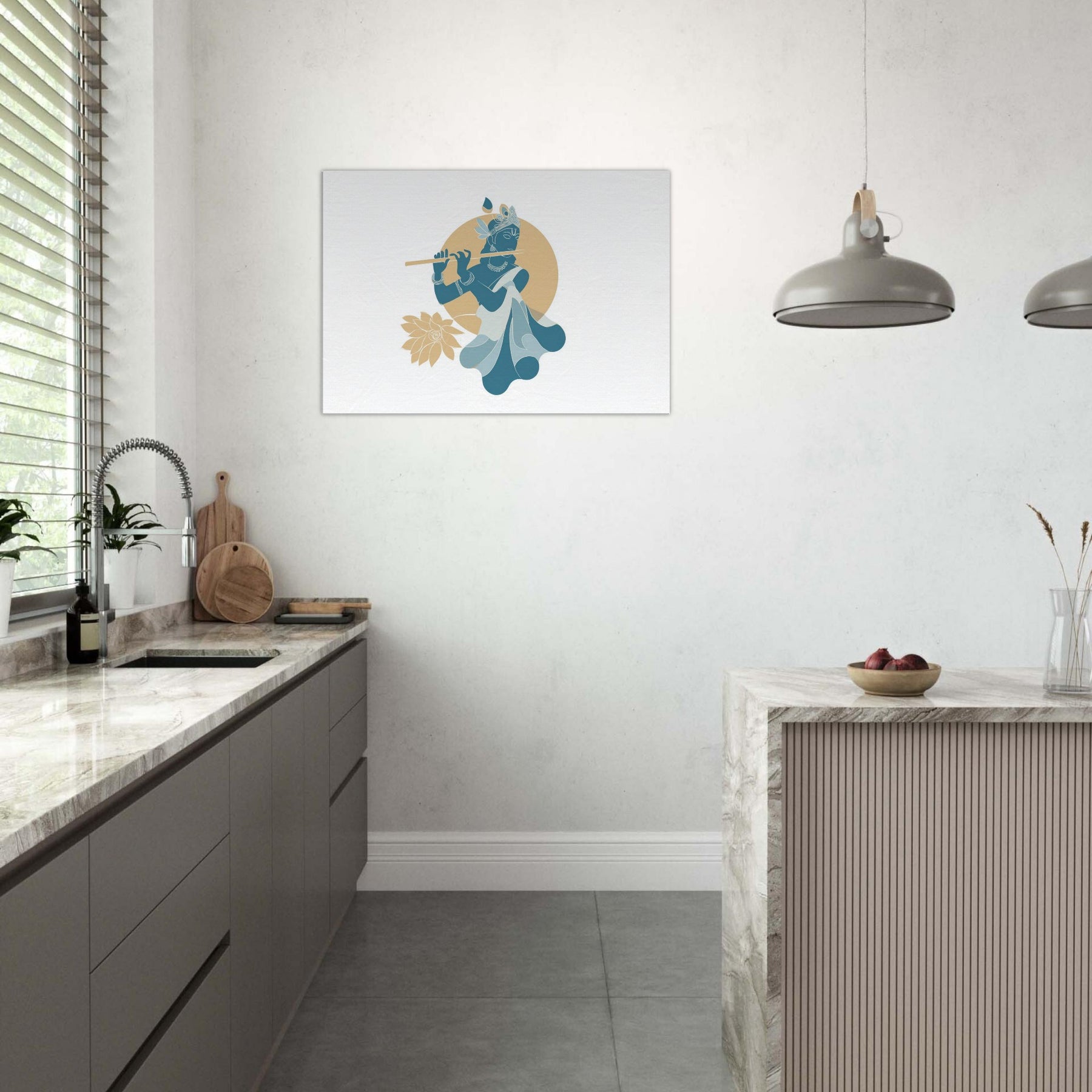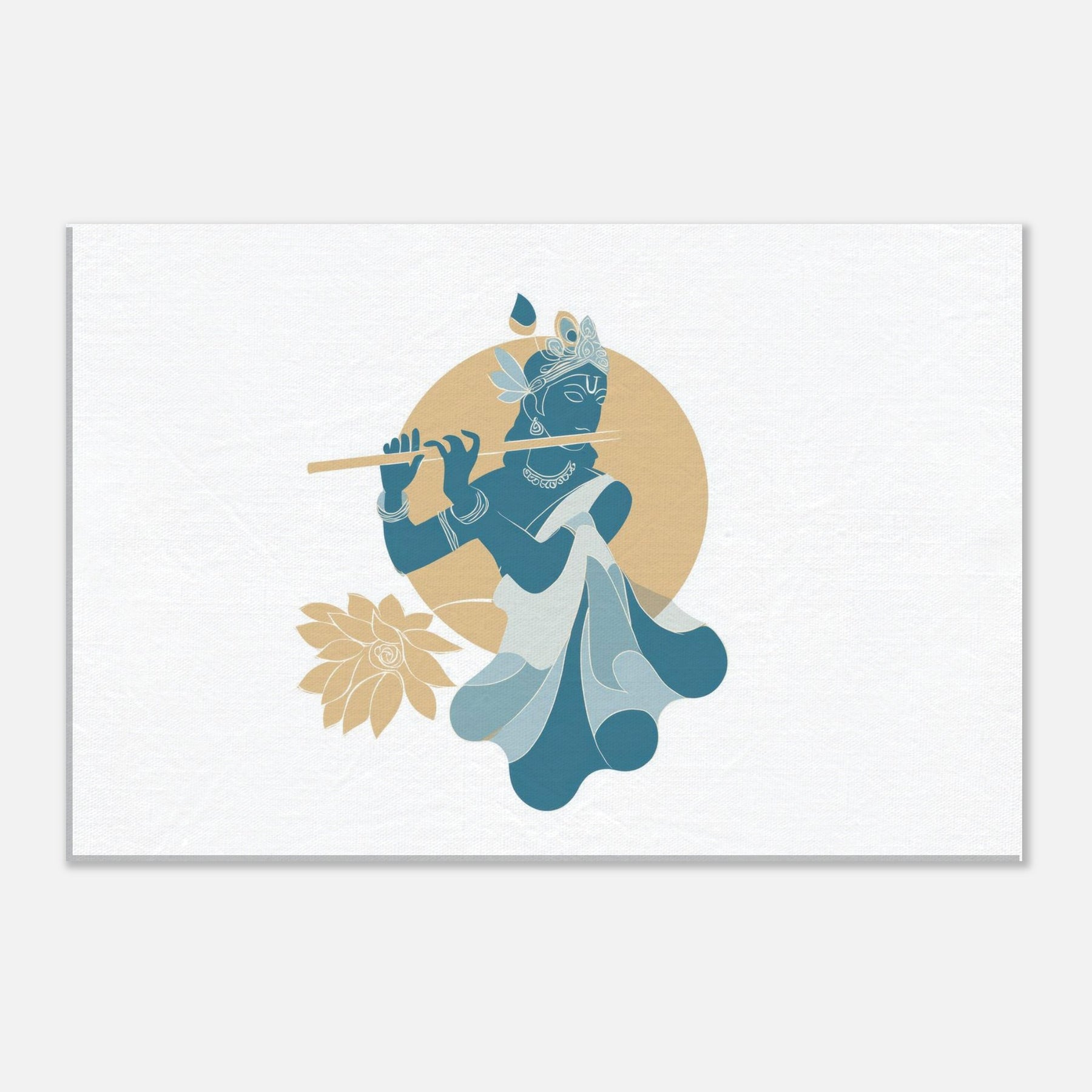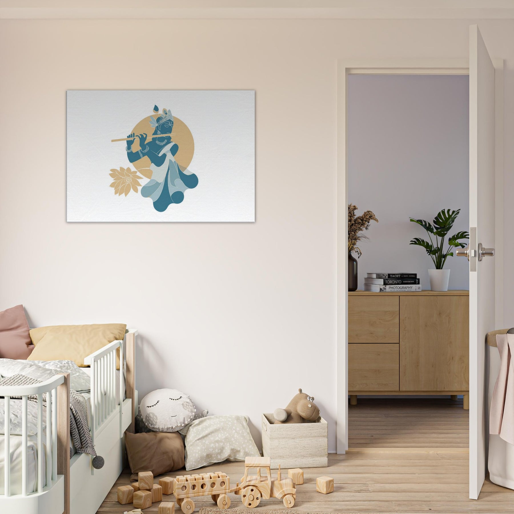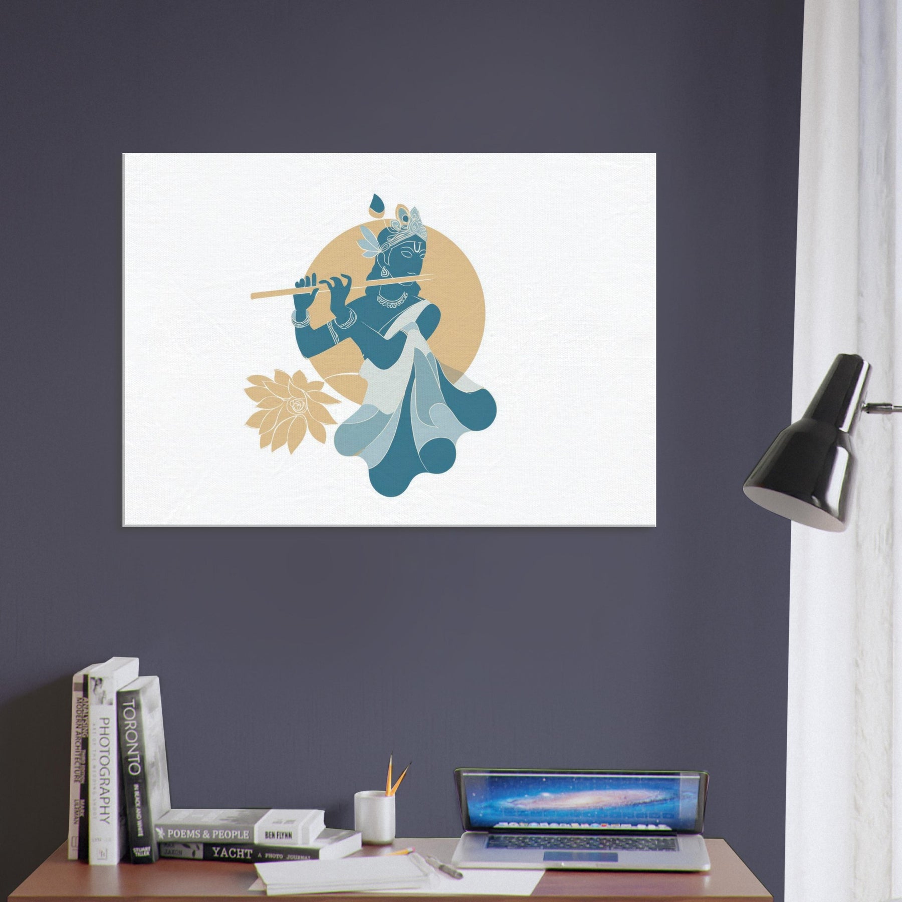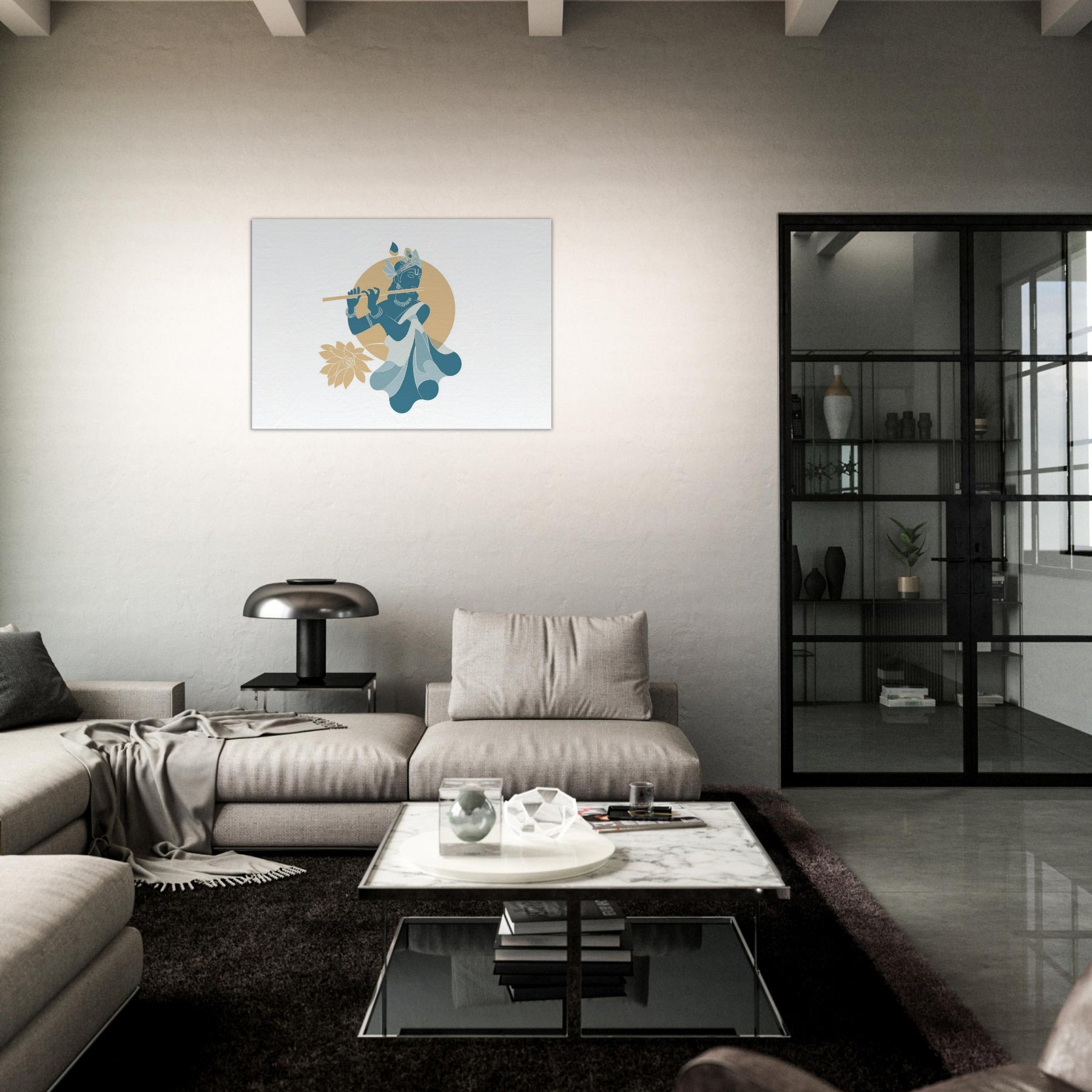 In this piece, the serene figure of the Primary Subject Krishna with Flute emerges as a whispered presence in your living space. A gentle circle of warm gold anchors the composition while cool blues flow into graceful folds, evoking dawn, devotion, and a hush of quiet joy. The lines are clean, the mood meditative, turning any wall into a sanctuary of calm, perfect beside a reading chair or beside lamps that catch the glow. Let the flute's breath guide minutes of stillness and wonder.