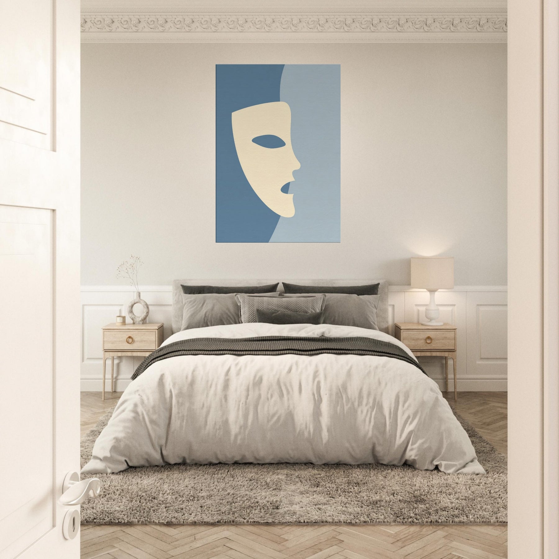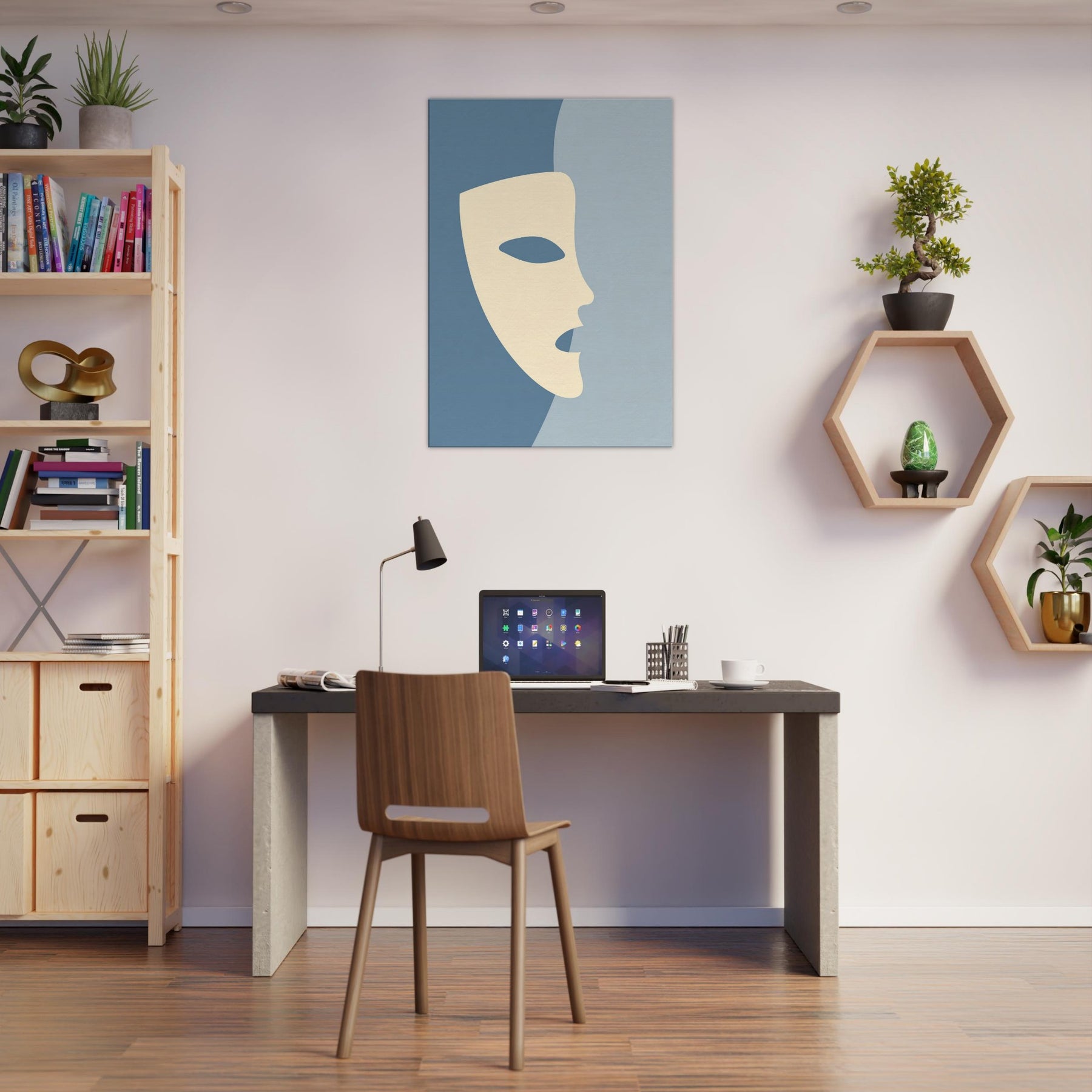 The Mask (Neutral Theater) Silhouette invites a quiet drama to your wall. In a restrained duet of ivory and steel blue, the minimal form dissolves theater into urban stillness, offering a focal point that feels both intimate and universal. The neutral silhouette casts a calm, almost breath like presence, echoing late night galleries and private spaces alike. Hang it where light moves, and watch the figure shift mood tense with anticipation at daybreak, serene at dusk inviting conversation without shouting.