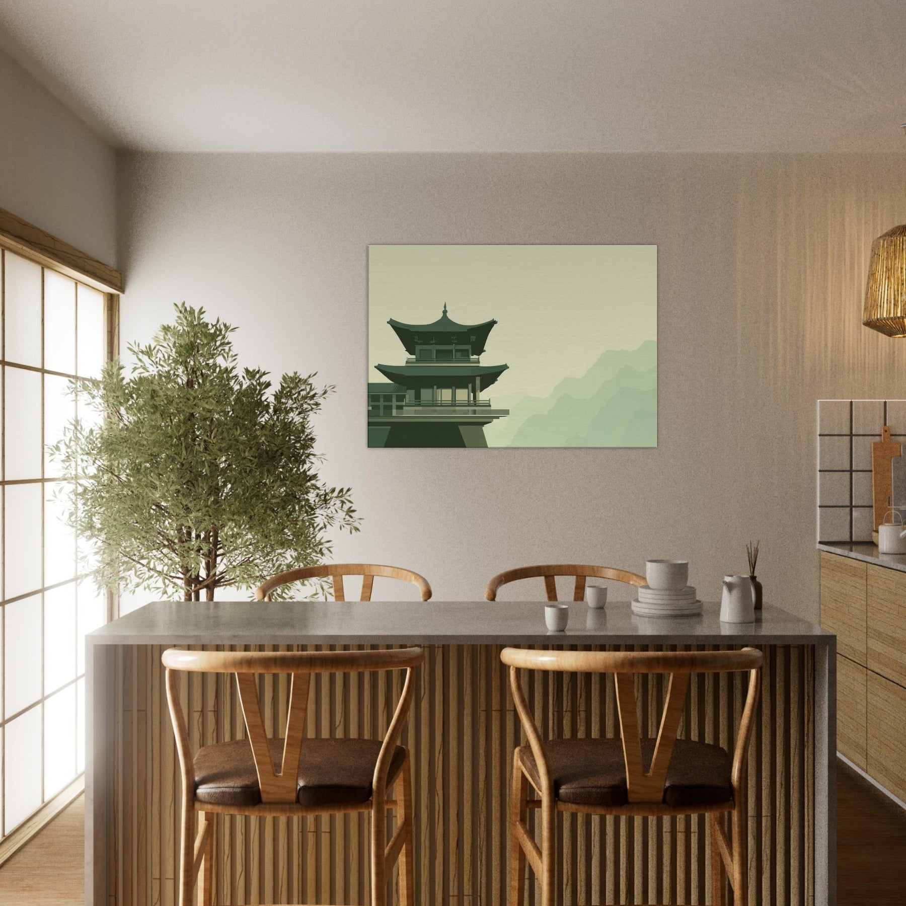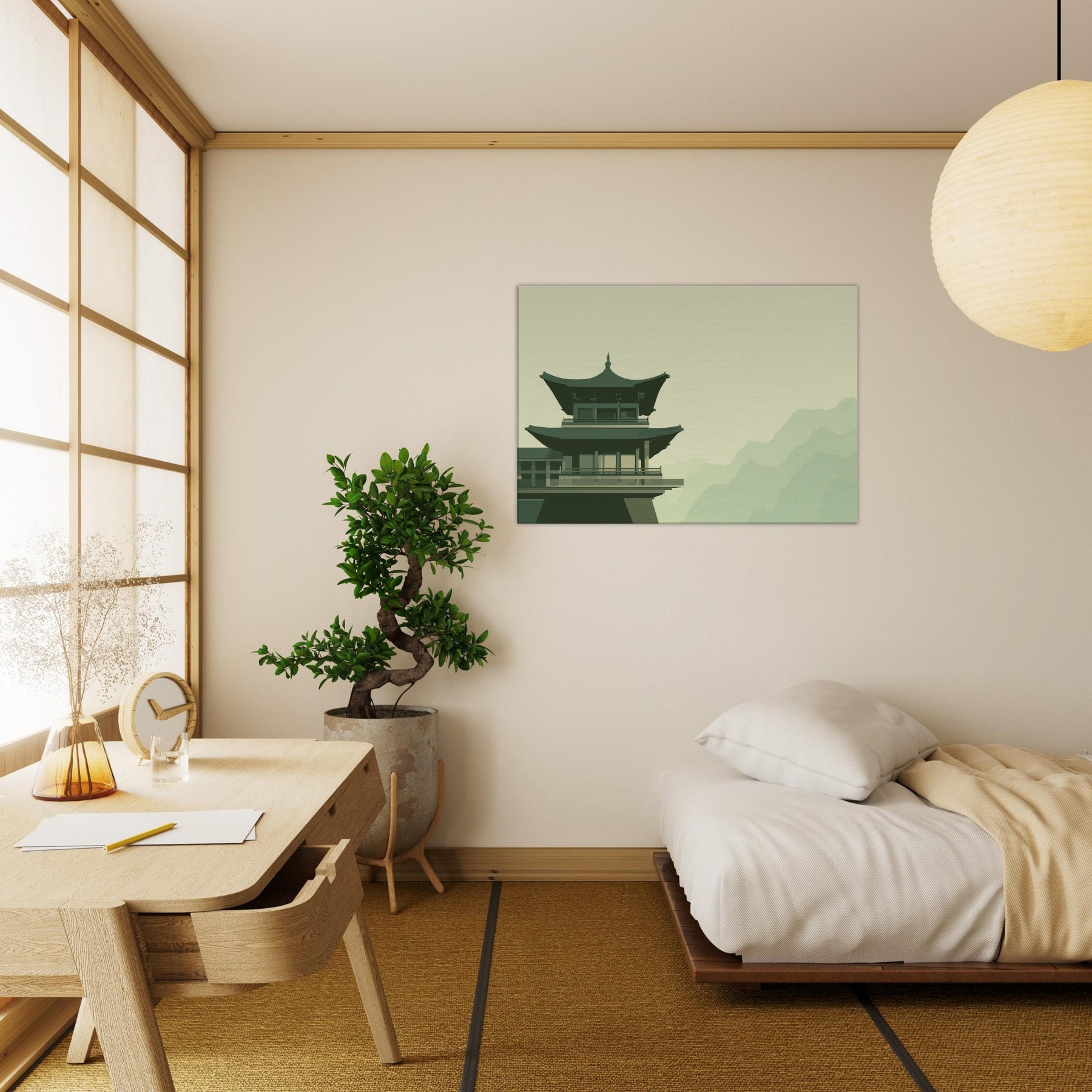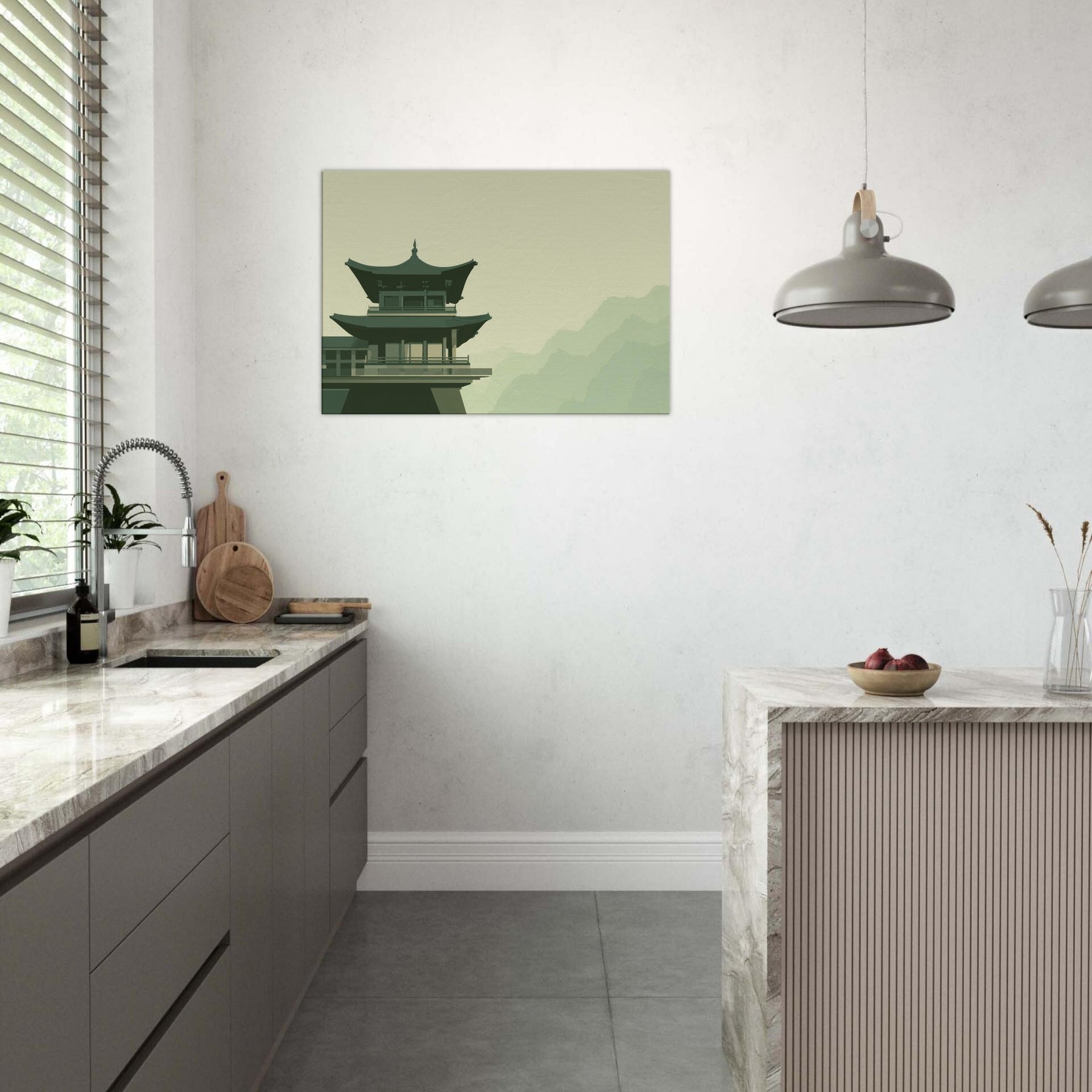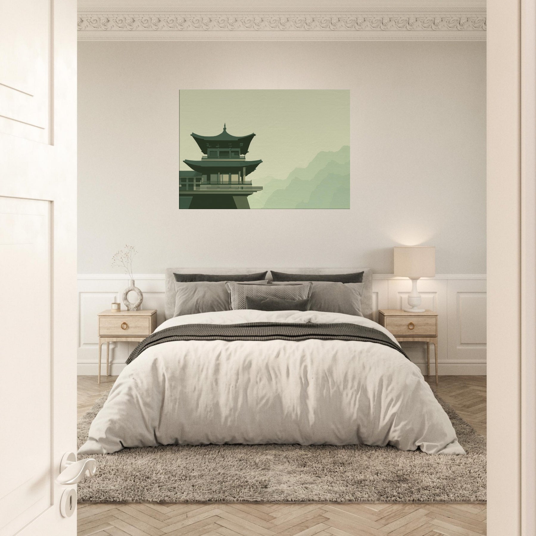 This Pagoda Roofline distills a quiet dialogue between gravity and grace. In soft, restrained tones, the structure rises above a pale, misty backdrop, inviting a contemplative mood into your space. The minimalist composition hums with balance, turning every glance into a moment of calm like a breath taken at dawn. Place it in a living room, study, or hallway to anchor conversation with architectural poise and serene atmosphere; a subtle reminder that quiet beauty can steer the day.