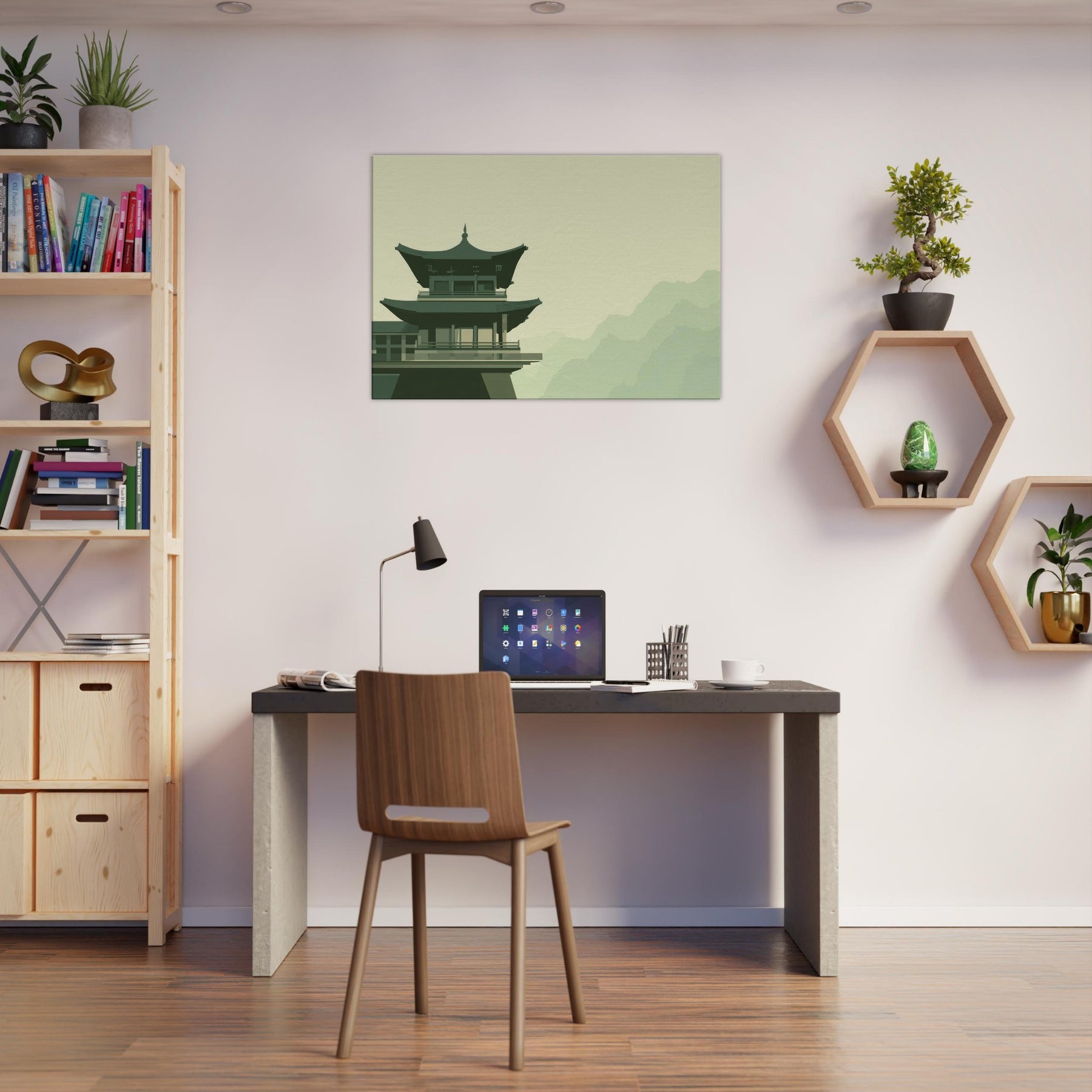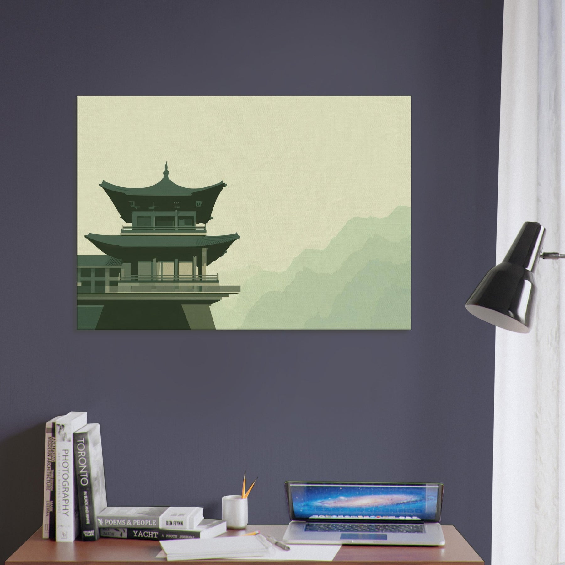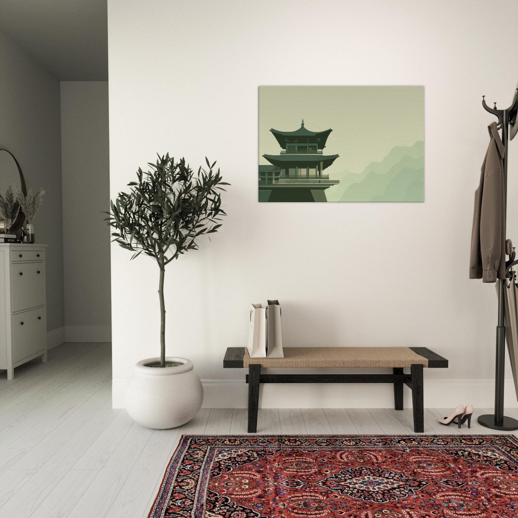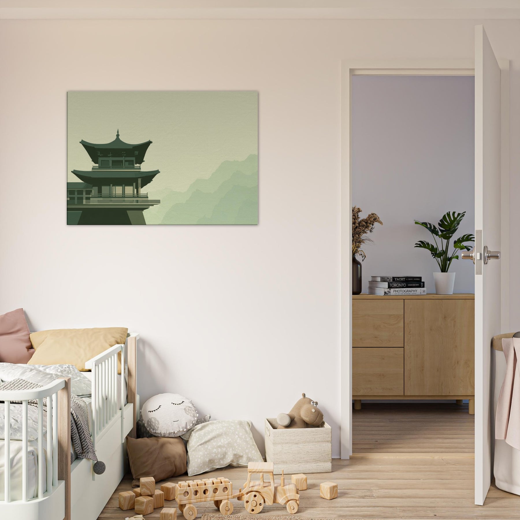 This Pagoda Roofline distills a quiet dialogue between gravity and grace. In soft, restrained tones, the structure rises above a pale, misty backdrop, inviting a contemplative mood into your space. The minimalist composition hums with balance, turning every glance into a moment of calm like a breath taken at dawn. Place it in a living room, study, or hallway to anchor conversation with architectural poise and serene atmosphere; a subtle reminder that quiet beauty can steer the day.