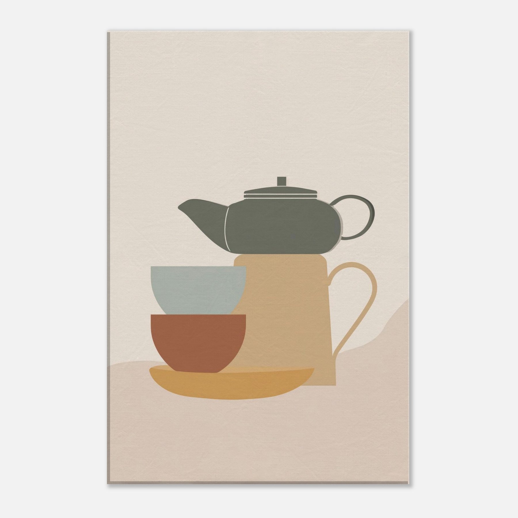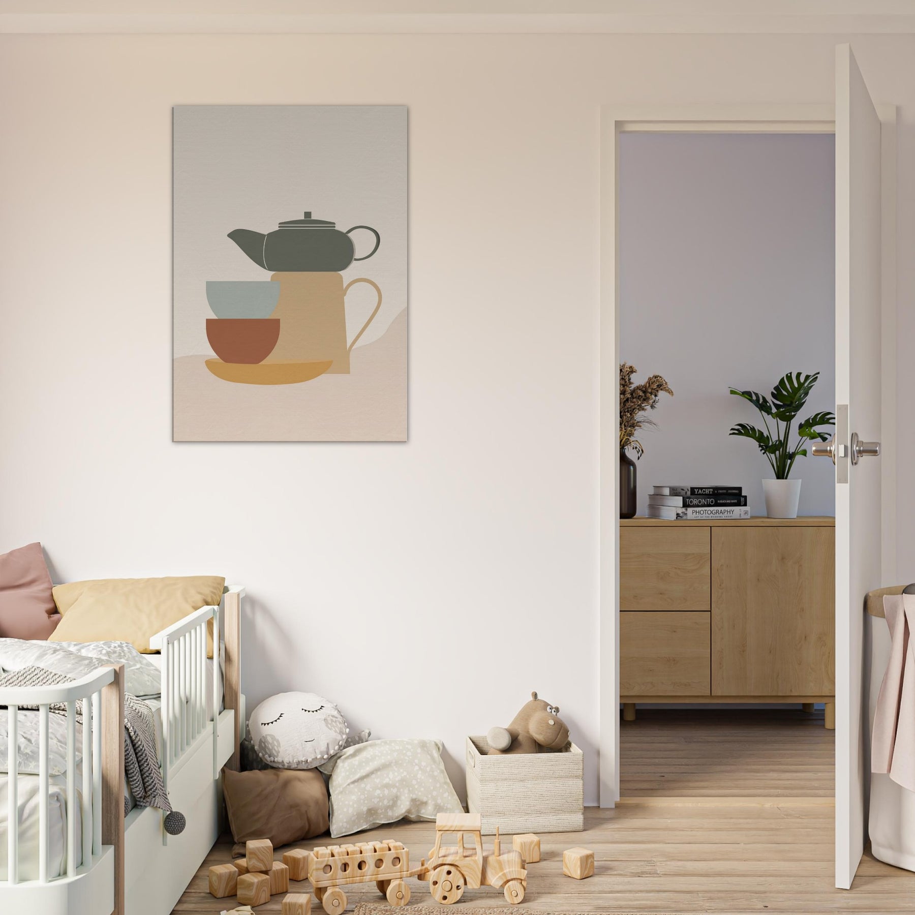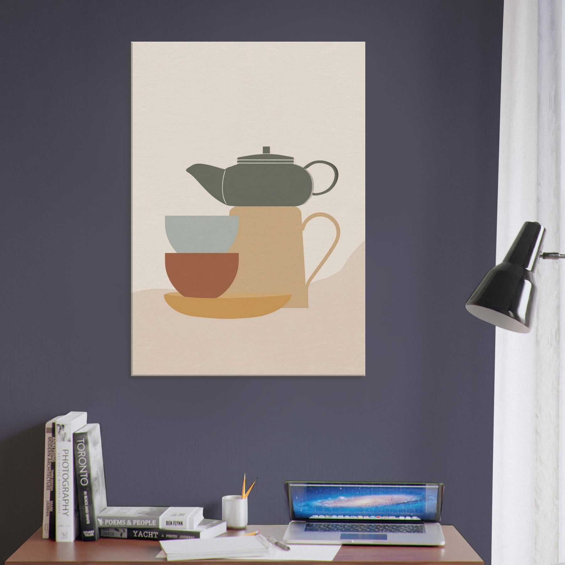 Lean in to a quiet, sunlit moment with this Tea Set as the centerpiece of your space. The minimalist arrangement of stacked cups and teapot, rendered in soft, earthy hues, invites calm ritual and everyday contemplation. This serene composition breathes warmth into a living room or kitchen nook, pairing with neutral palettes to create a subtle, grounding atmosphere. A reminder that elegance can be simple: form, color, and quiet repetition replace clutter with grace.