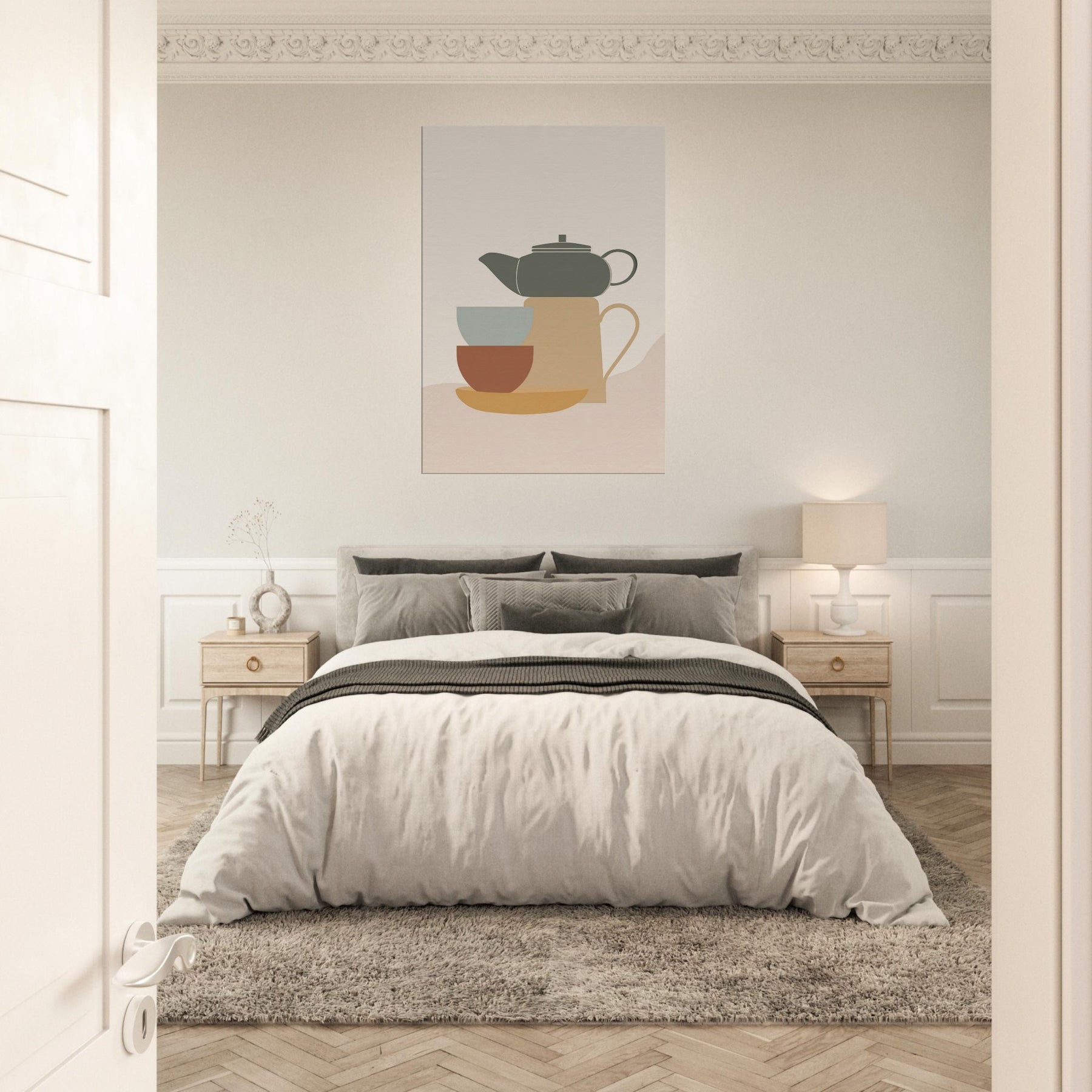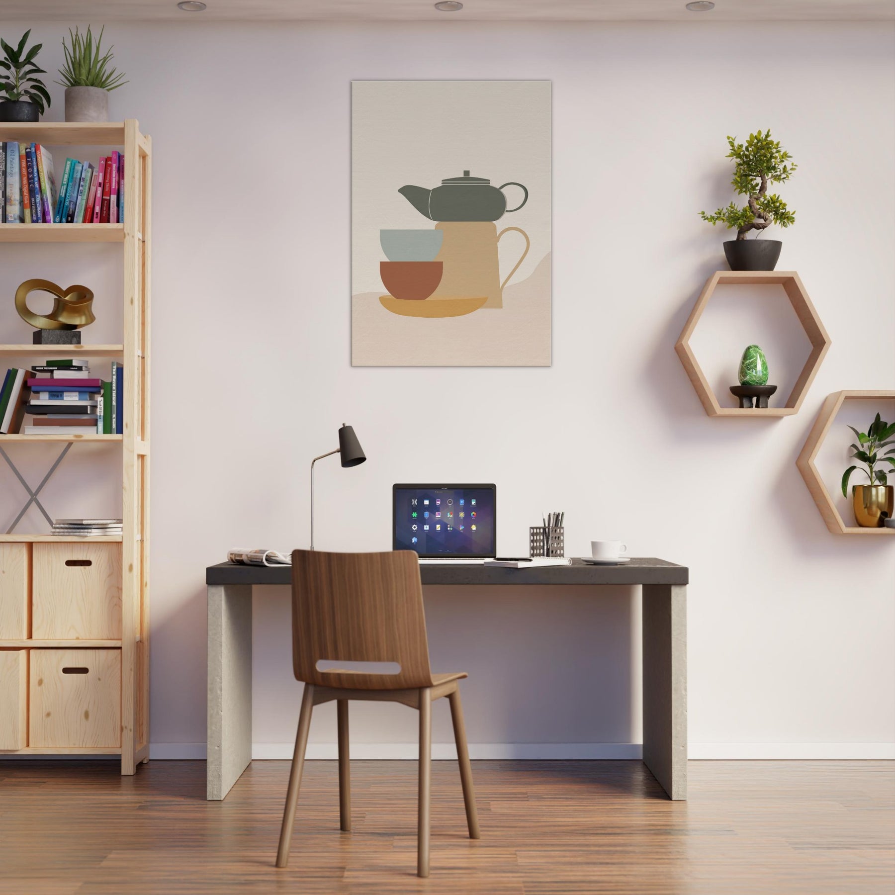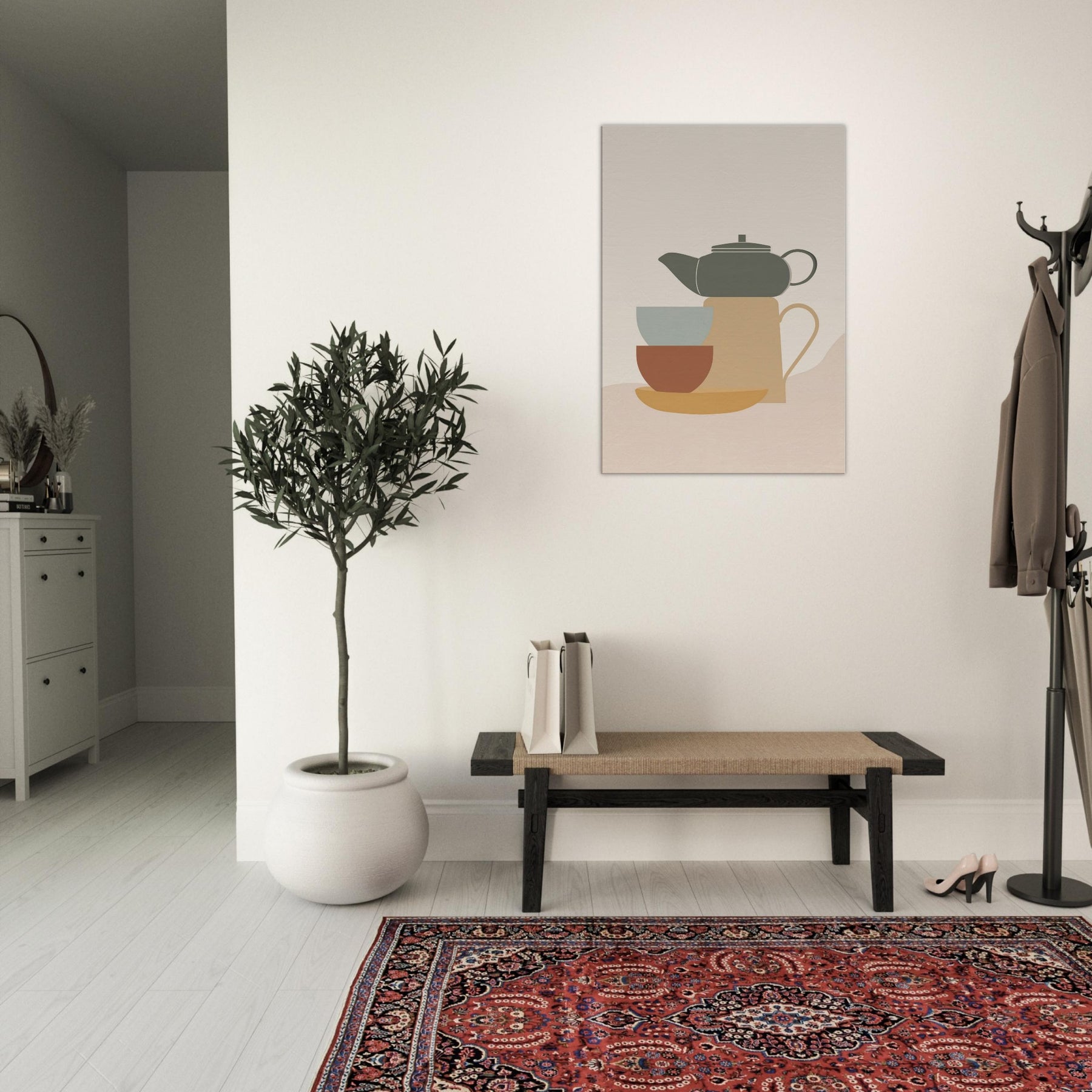 Lean in to a quiet, sunlit moment with this Tea Set as the centerpiece of your space. The minimalist arrangement of stacked cups and teapot, rendered in soft, earthy hues, invites calm ritual and everyday contemplation. This serene composition breathes warmth into a living room or kitchen nook, pairing with neutral palettes to create a subtle, grounding atmosphere. A reminder that elegance can be simple: form, color, and quiet repetition replace clutter with grace.