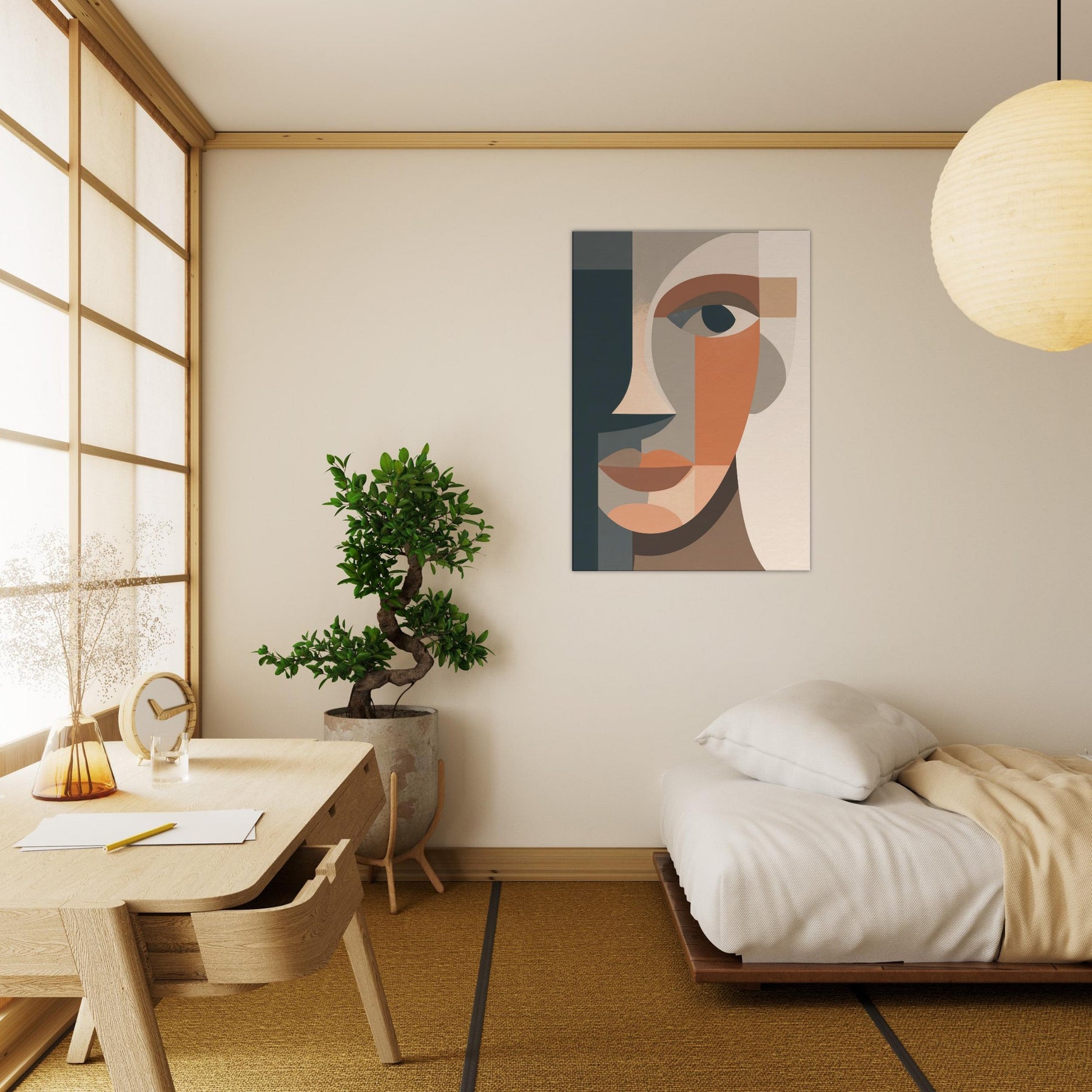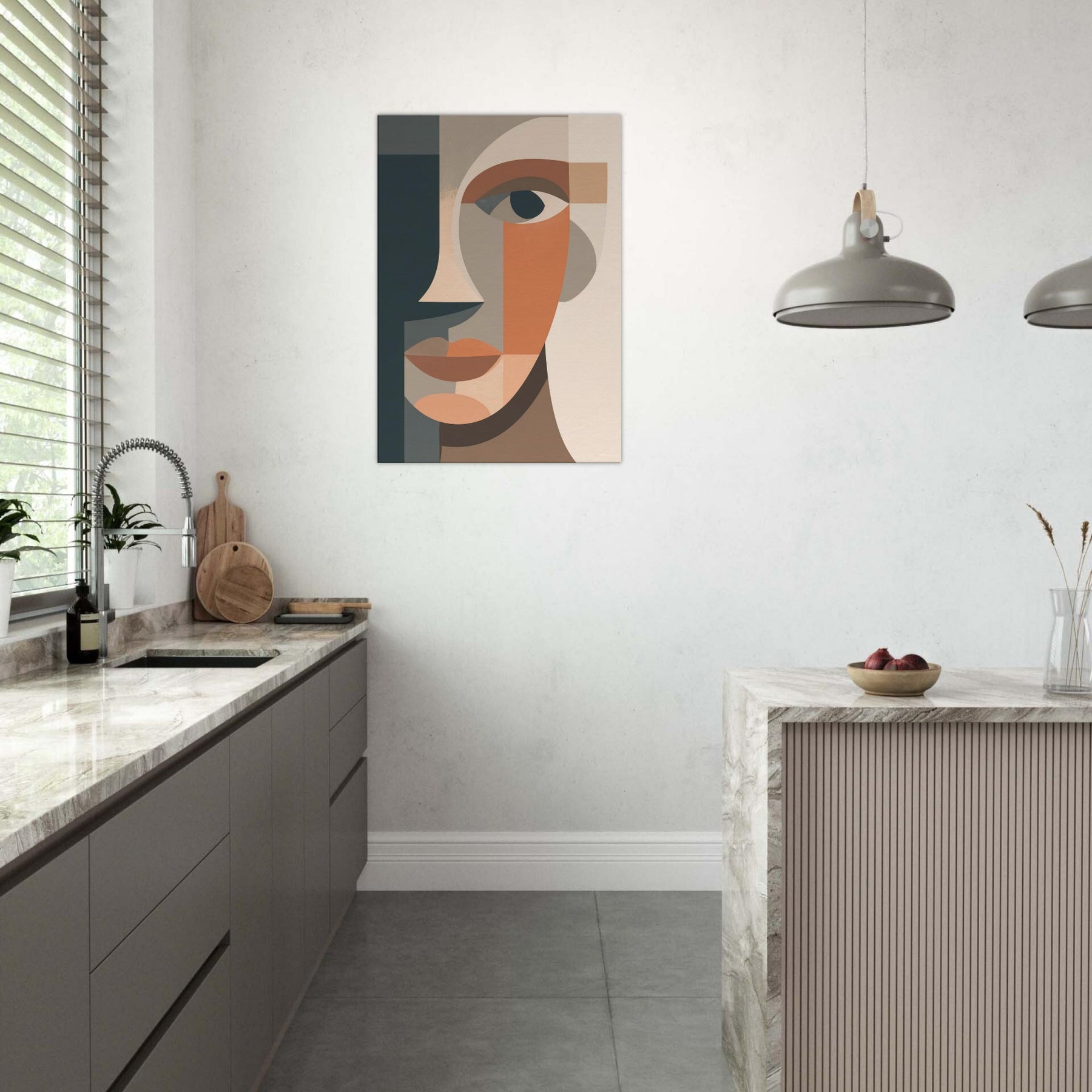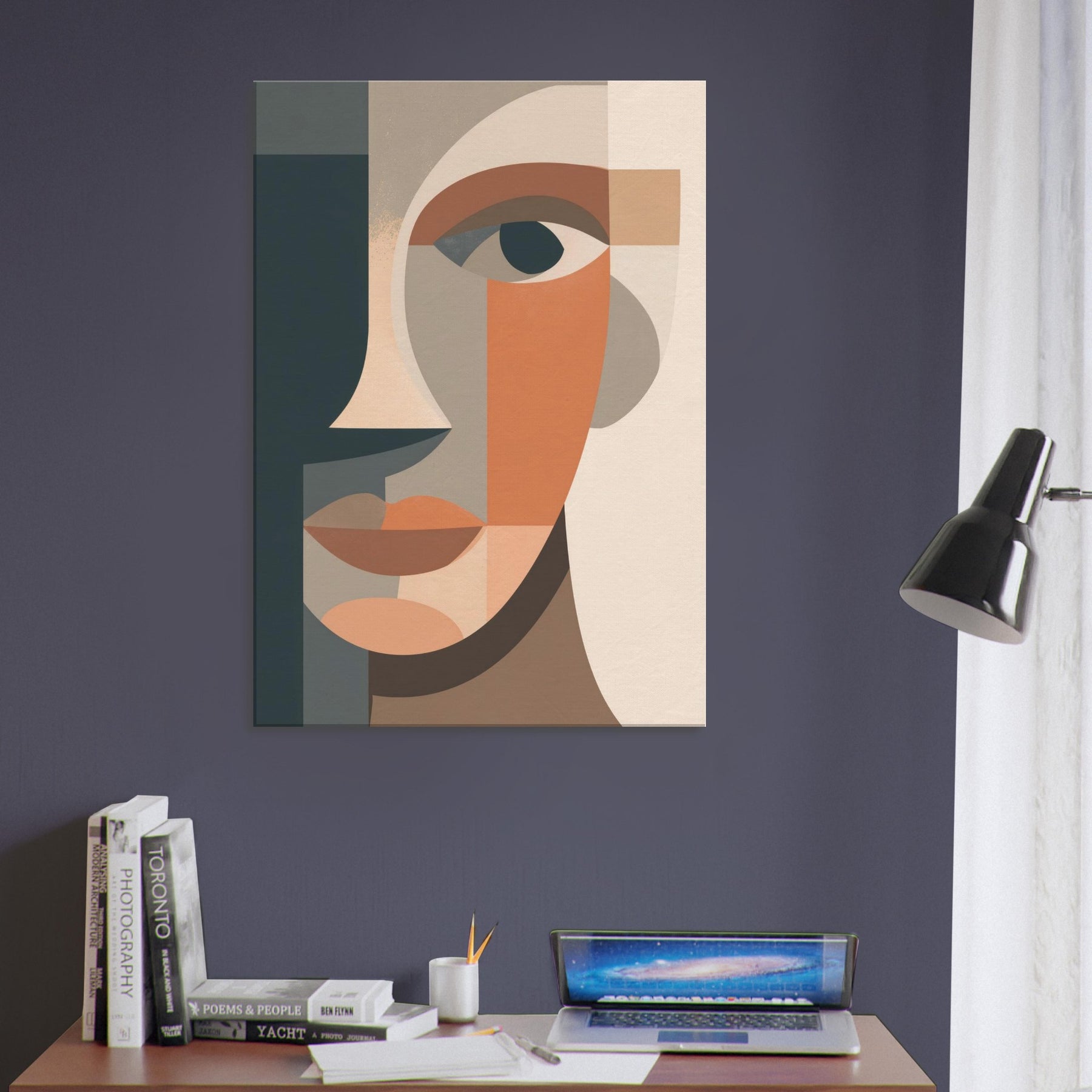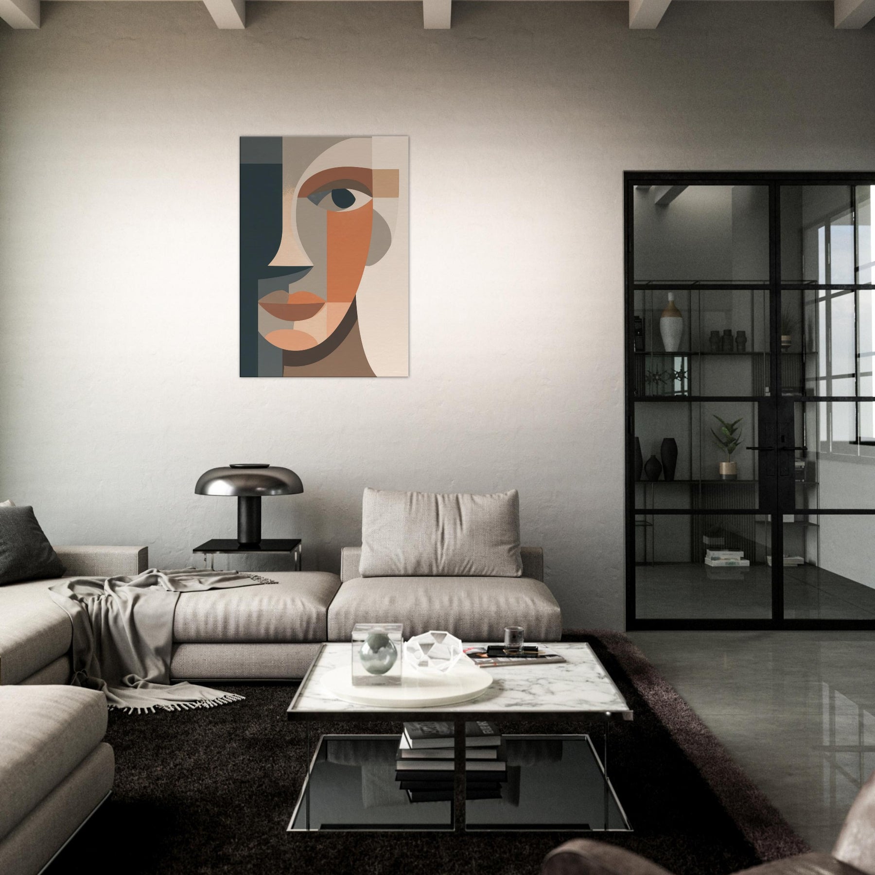 An intimate meditation in planes and curves, this Cubist Face invites the gaze to explore light and shadow from multiple angles. The minimalist palette of muted terracotta, slate, ivory, and peach creates a calm, sculptural presence that feels at once modern and timeless. Hang it in a living room or study to spark conversation without shouting, letting air and color breathe around it. The composition balances crisp geometry with soft edges, turning a wall into a quiet gallery where emotion and shape intersect in elegant restraint.