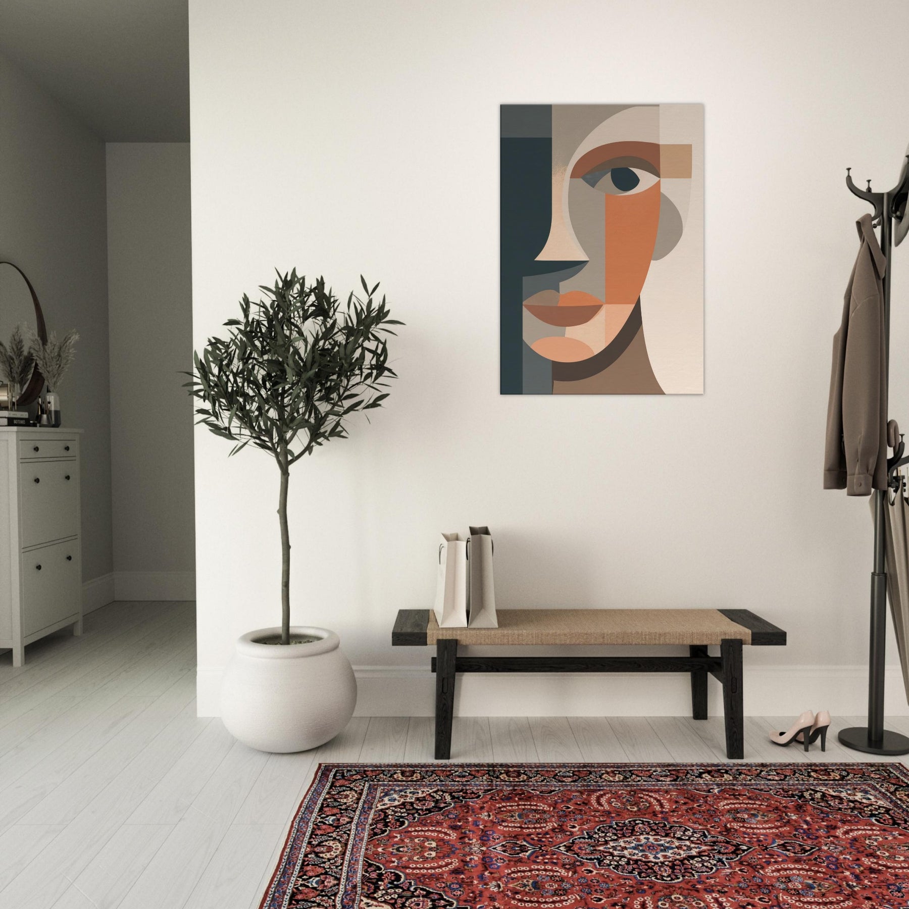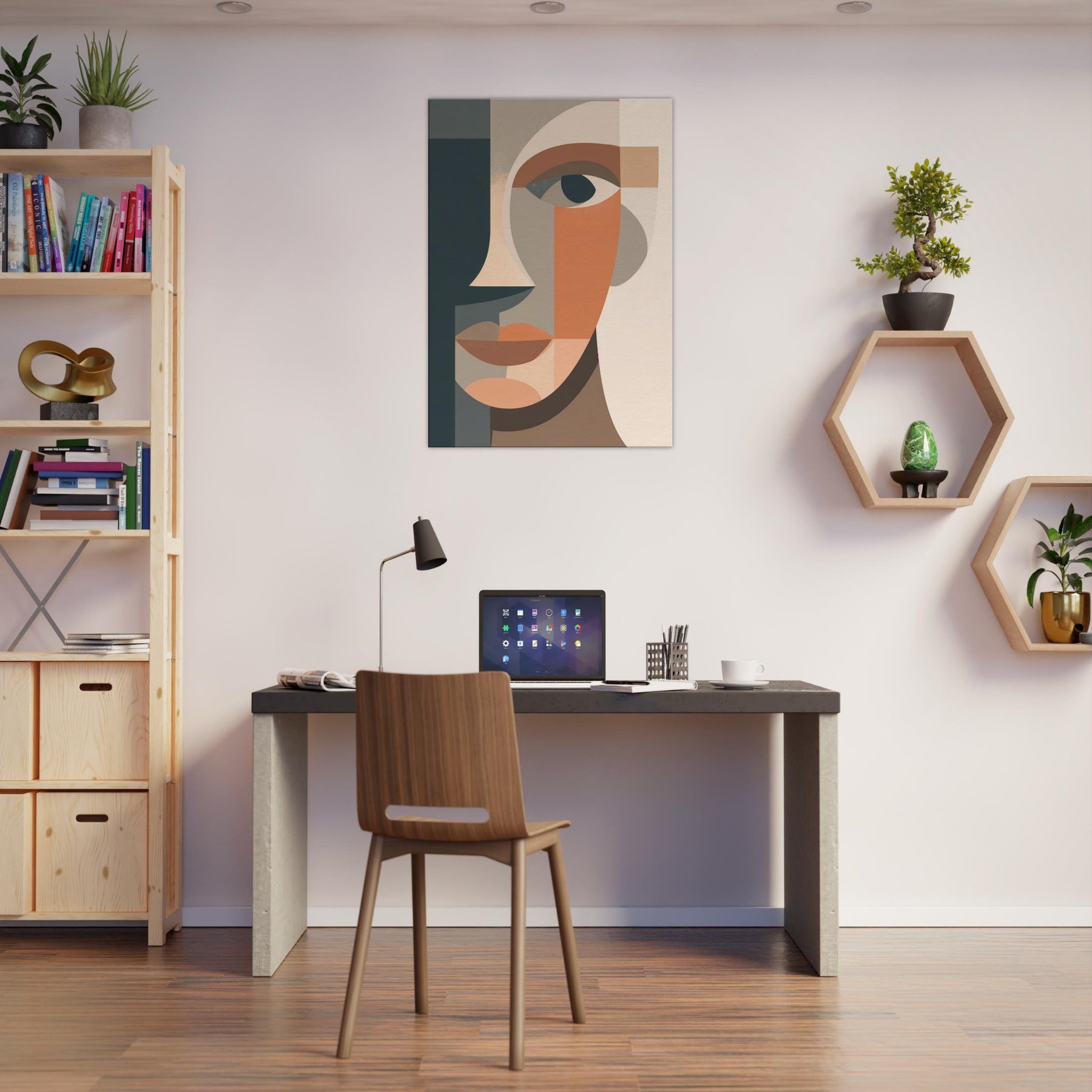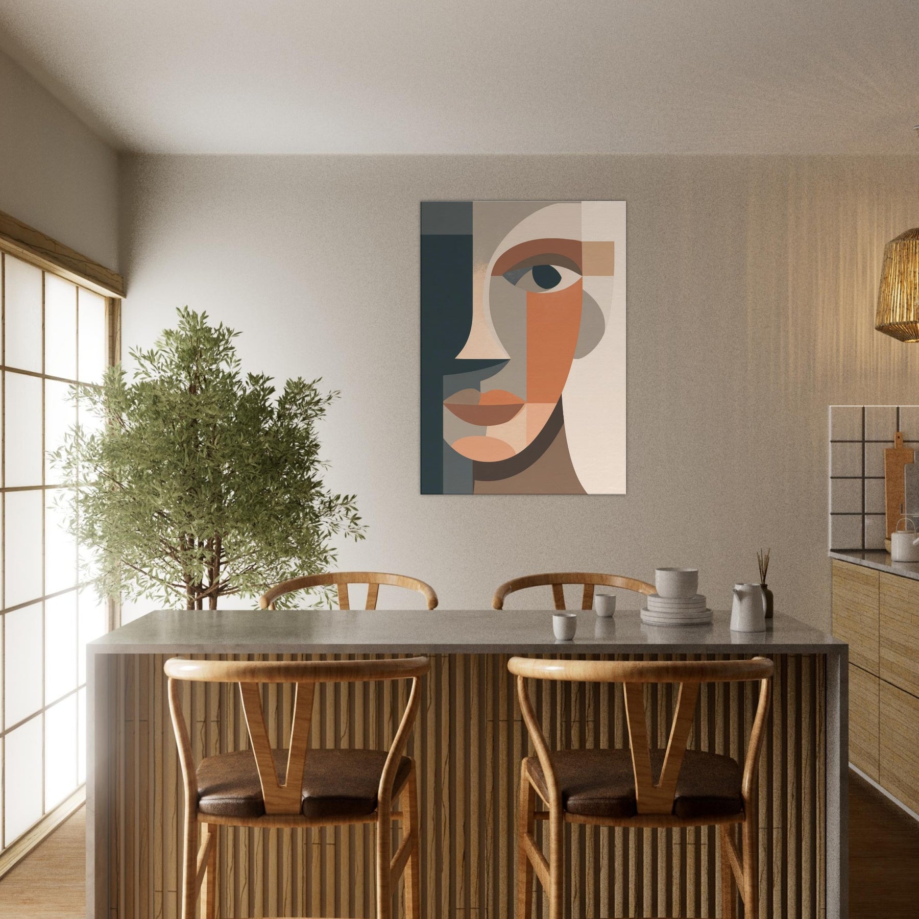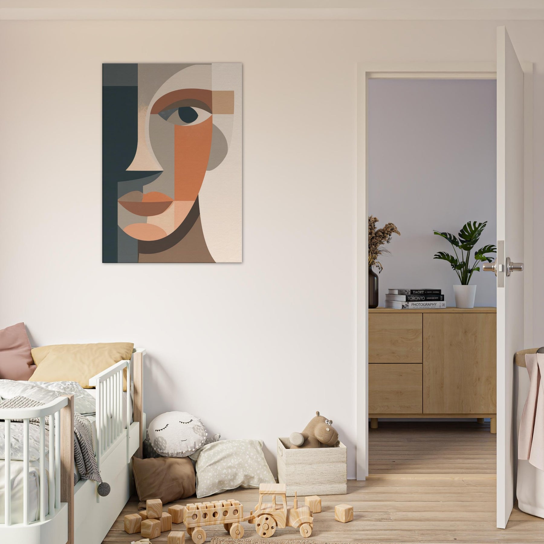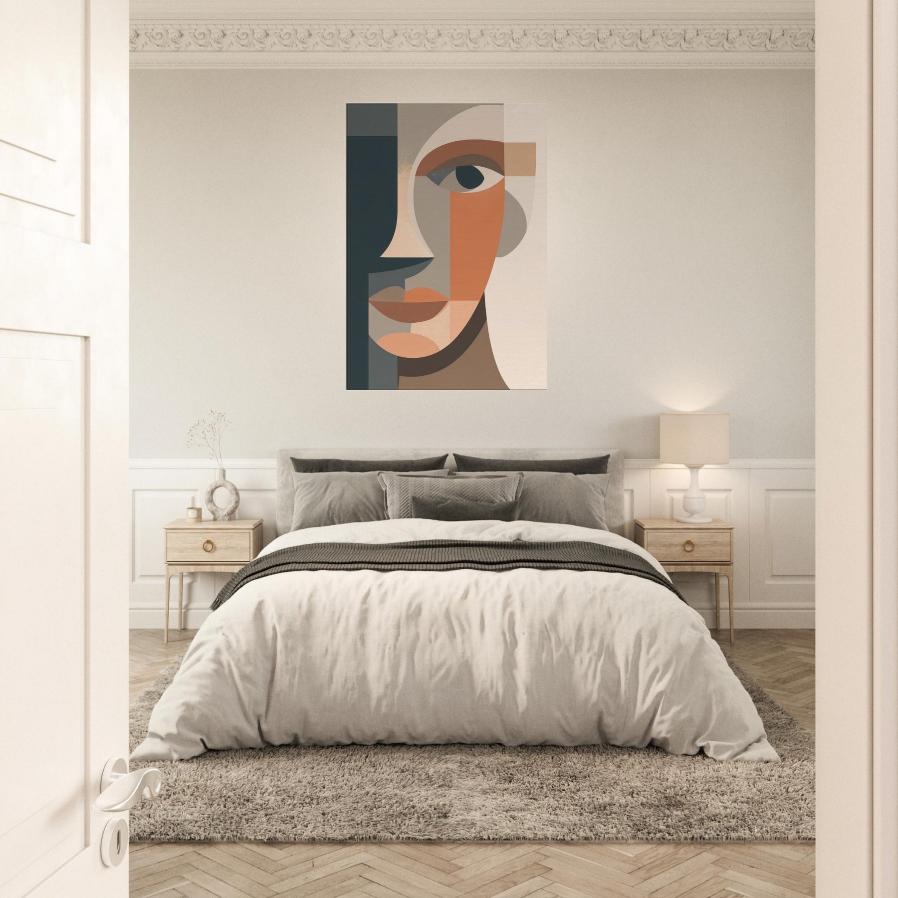 An intimate meditation in planes and curves, this Cubist Face invites the gaze to explore light and shadow from multiple angles. The minimalist palette of muted terracotta, slate, ivory, and peach creates a calm, sculptural presence that feels at once modern and timeless. Hang it in a living room or study to spark conversation without shouting, letting air and color breathe around it. The composition balances crisp geometry with soft edges, turning a wall into a quiet gallery where emotion and shape intersect in elegant restraint.