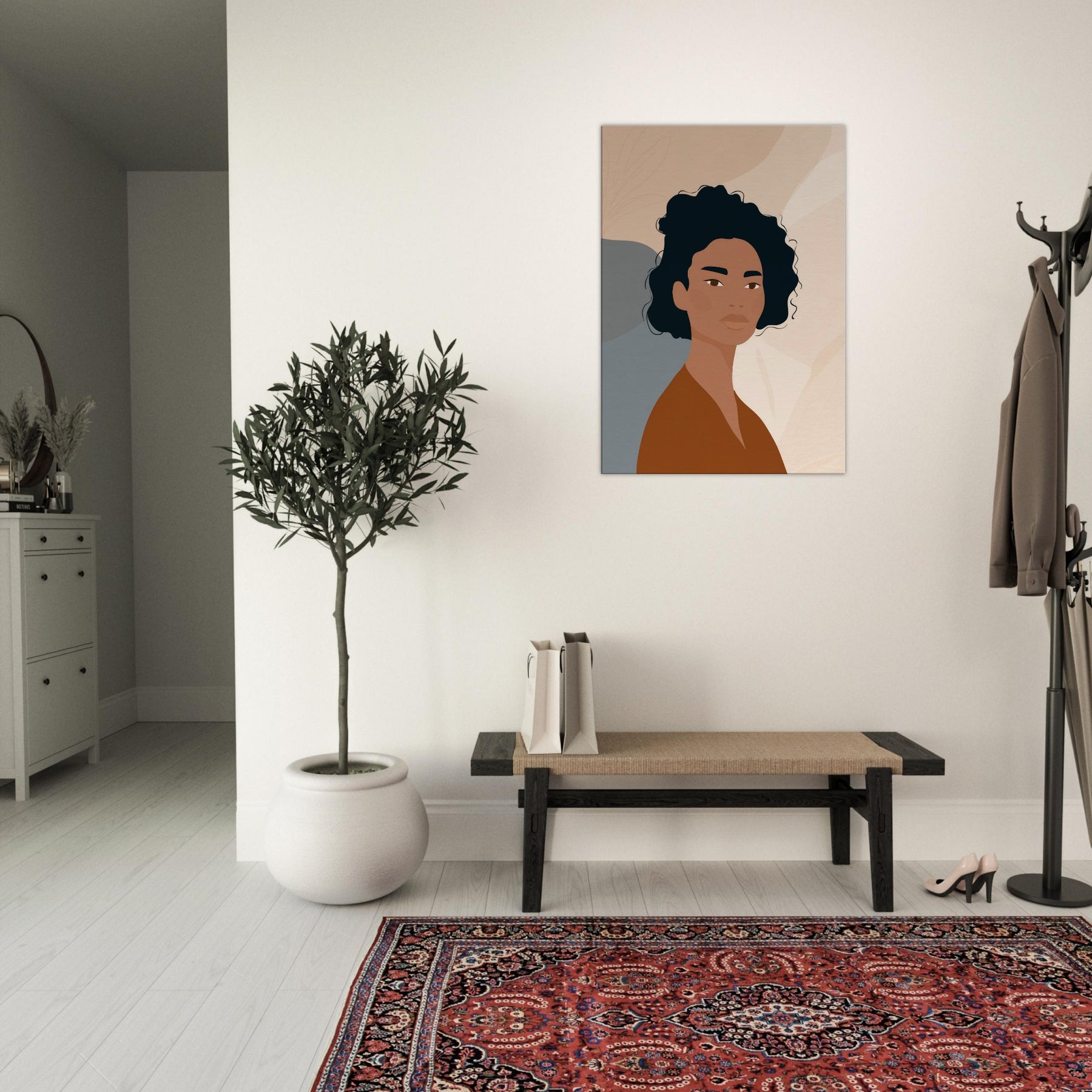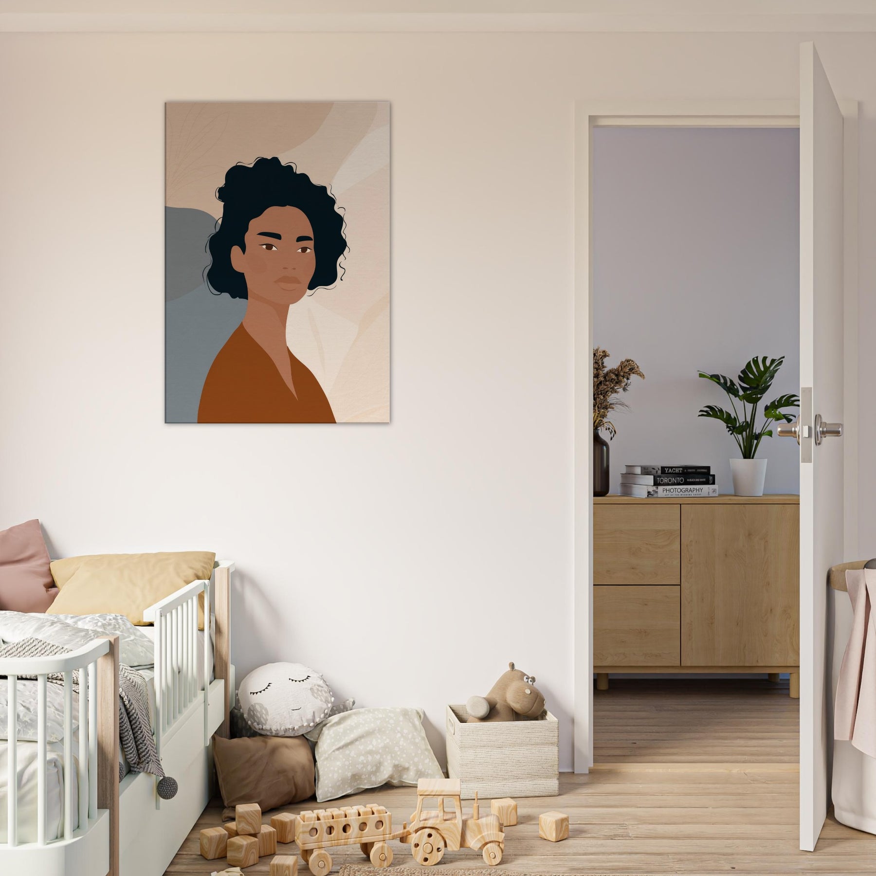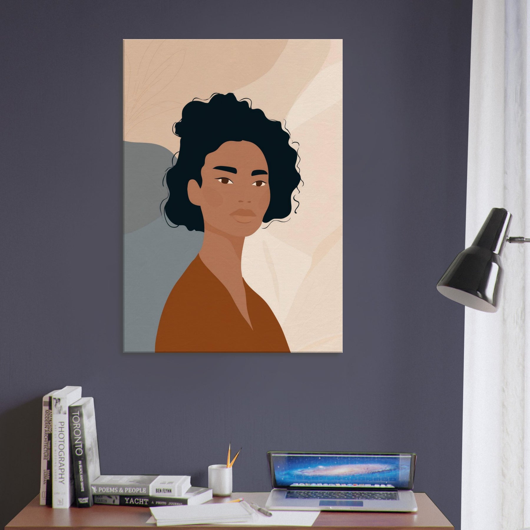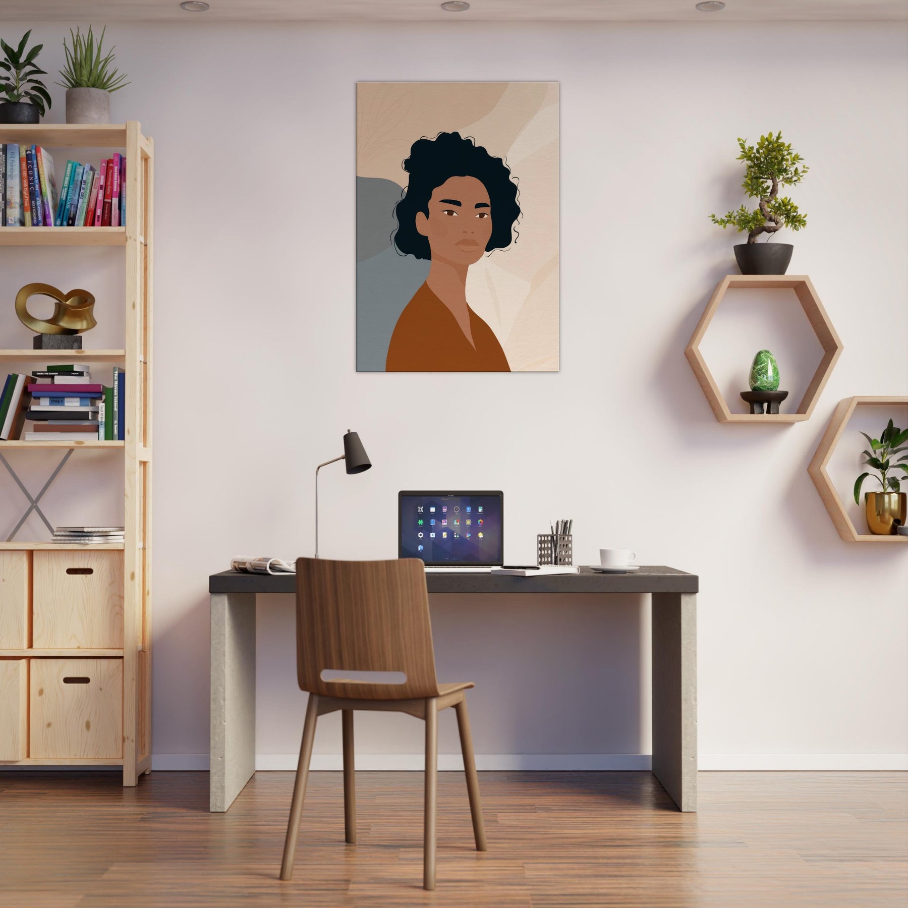 This African Woman , rendered in quiet, confident tones, embodies a moment of poised calm through minimalist lines. Warm browns meet soft neutrals, while precise, subtle contrasts let light play across the face and neck. It softens a space with dignity and grace, turning a plain wall into a contemplative moment ideal above a sofa, in a bedroom nook, or beside a console. The restrained composition invites slow breathing and reflection, making everyday living feel more generous and centered.