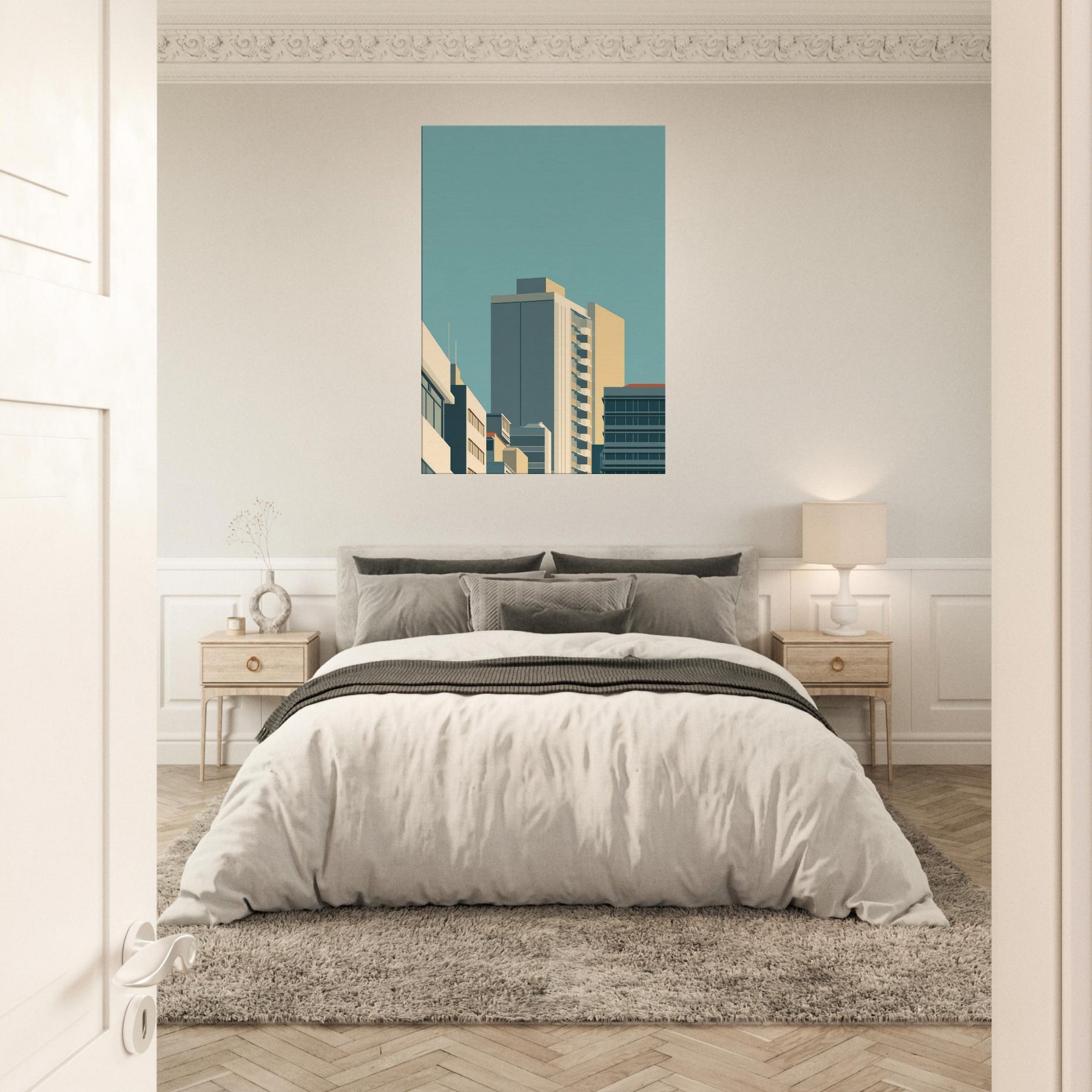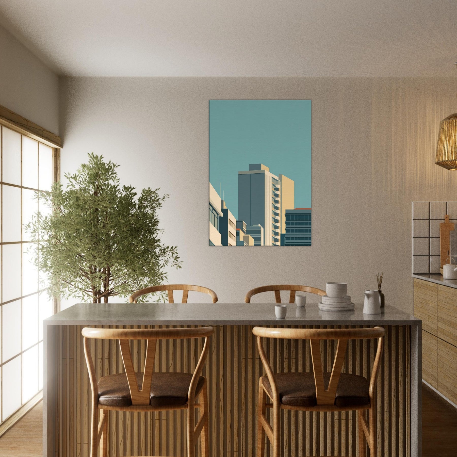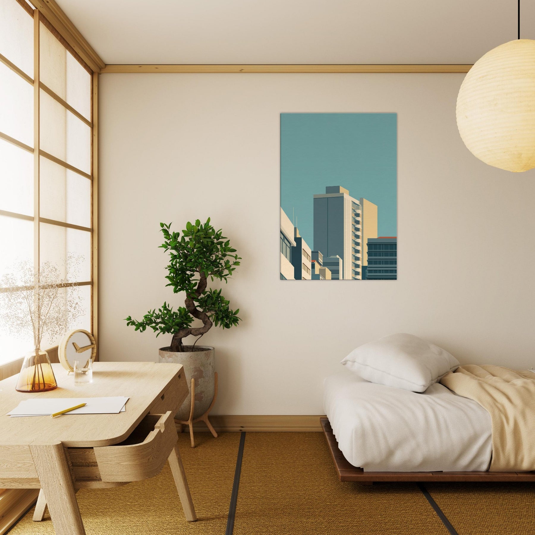 Immerse your space in a quiet urban dawn where Seoul unfolds in pristine lines and soft, sunlit tones. This minimalist cityscape distills towering silhouettes into calm geometry, inviting a moment of stillness amid daily motion. The piece pairs architectural calm with warm neutrals, making it a versatile focal point that enhances living rooms or bedrooms with subtle depth, luminous air, and a whisper of city energy. A refined reminder that less can illuminate more.
