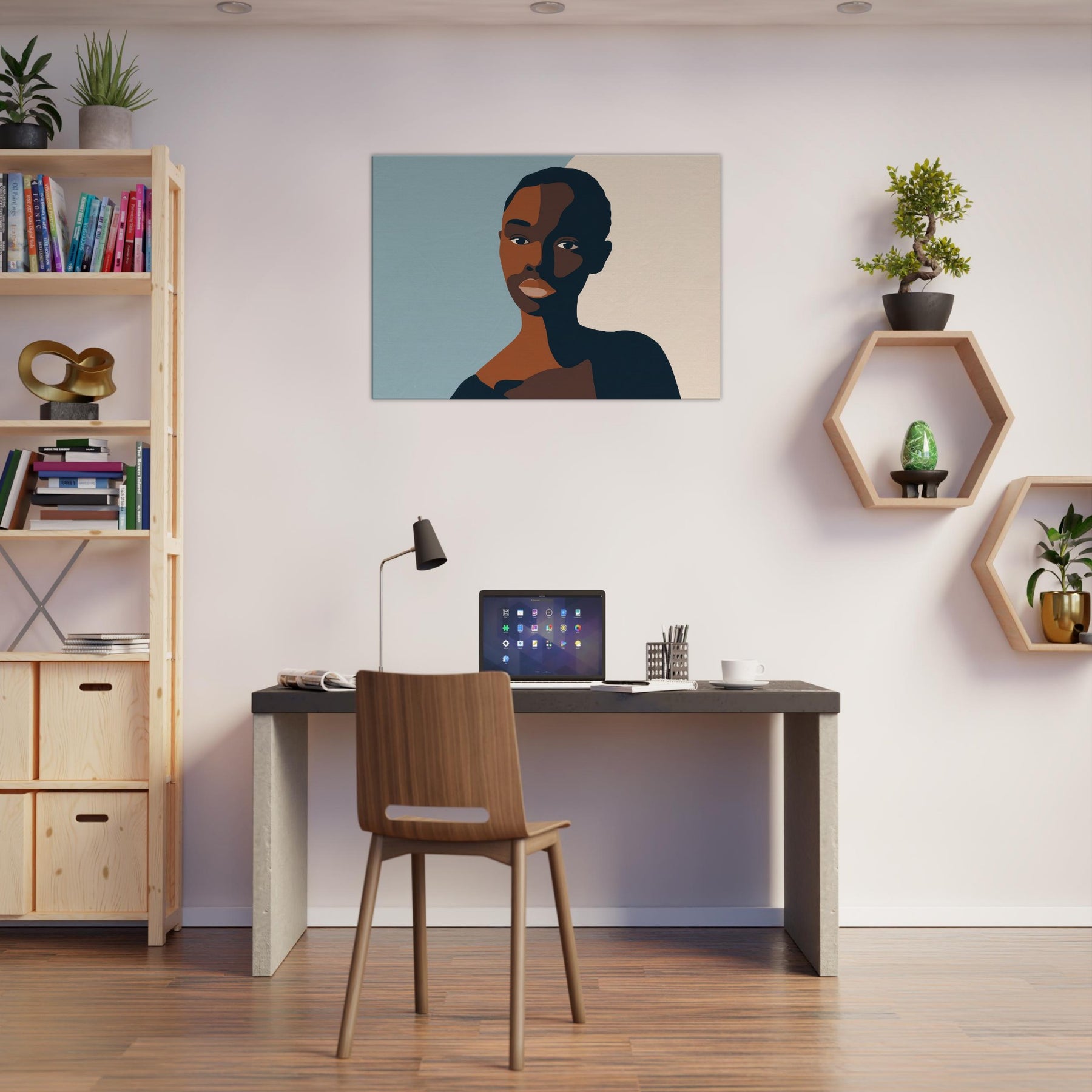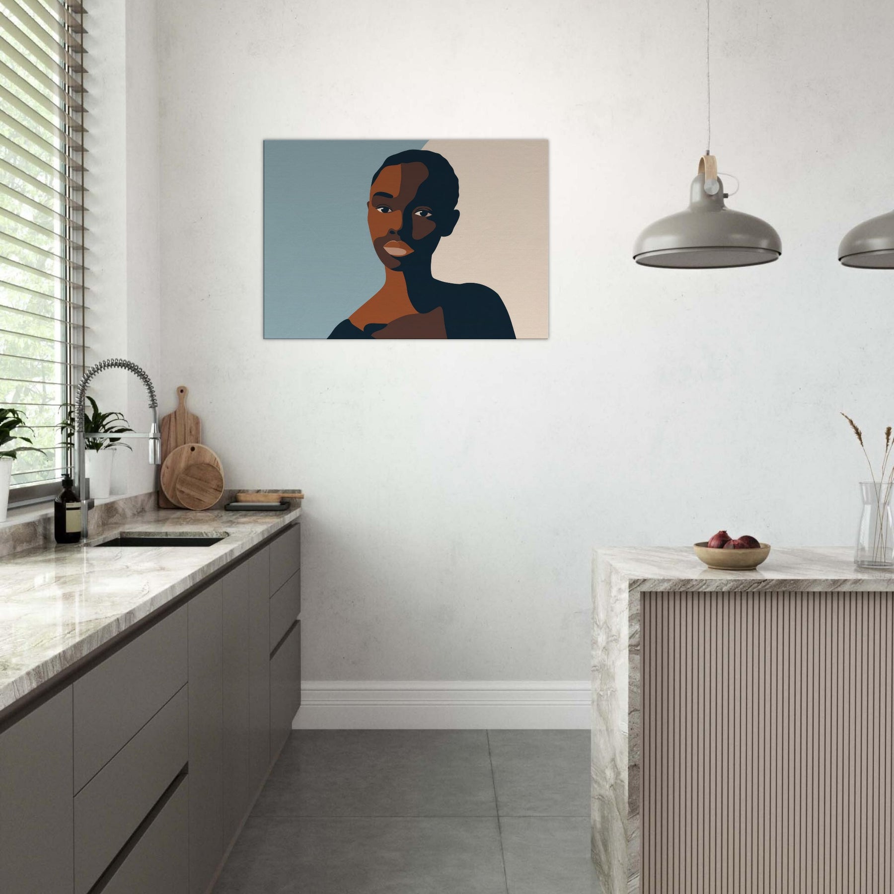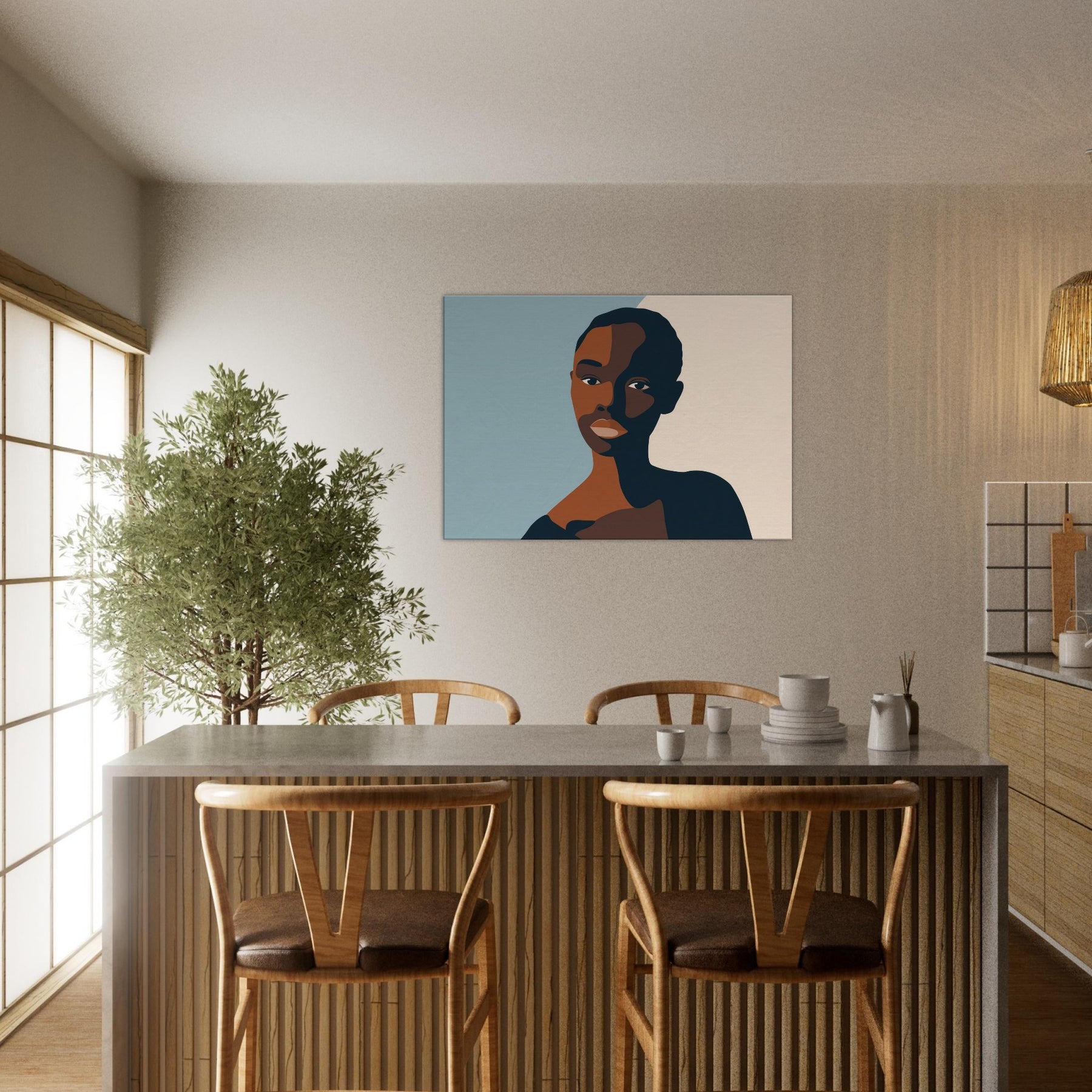 An intimate study in calm movement and warm earth tones, this minimalist African Woman invites a stillness of gaze into your living room. The smooth, interlocking planes cradle the face, cast in sienna and midnight, with a pale backdrop that breathes space. It hums with quiet resilience, echoing heritage and modern elegance. Ideal for a serene corner, it pairs with soft textiles and warm lighting to transform a wall into a personal sanctuary.