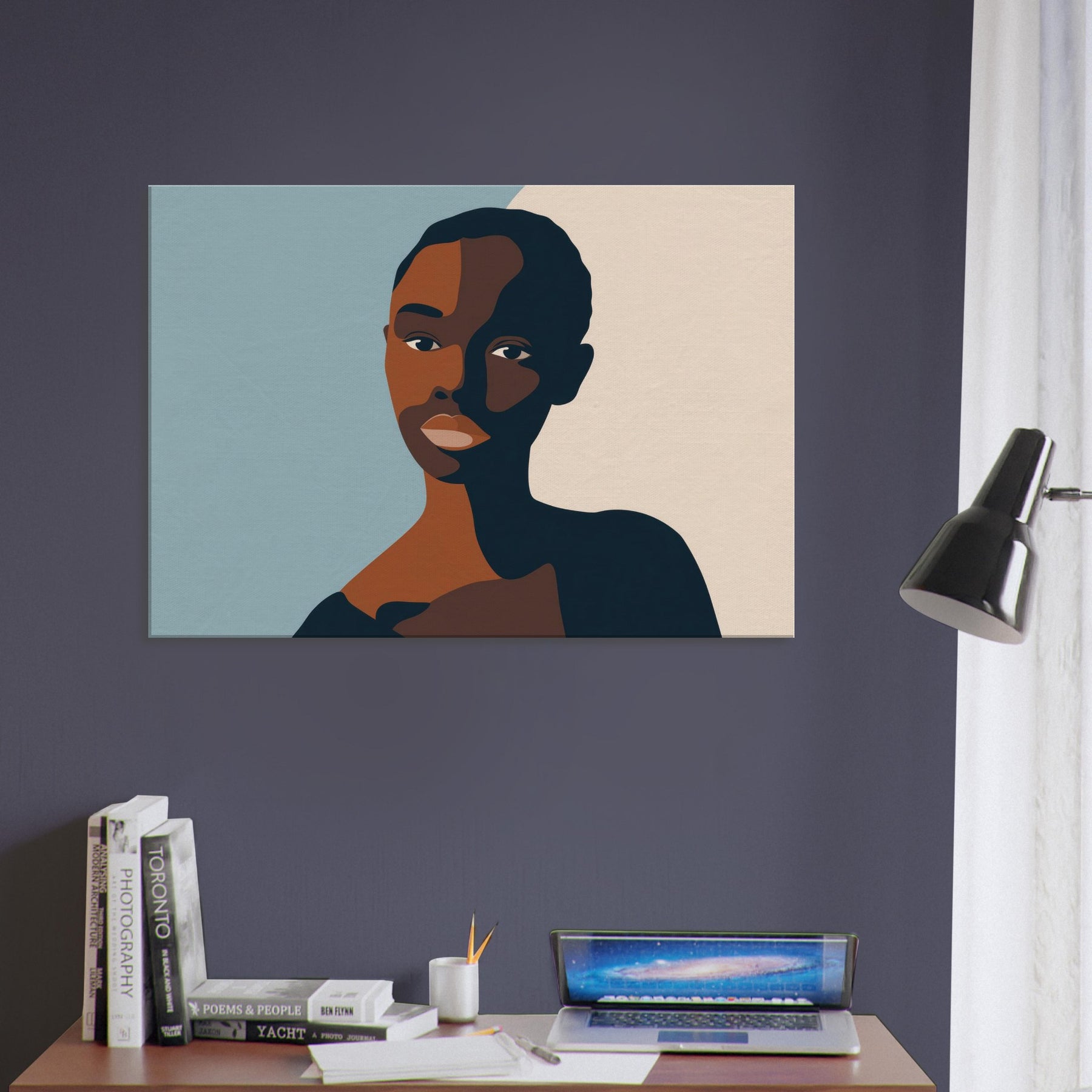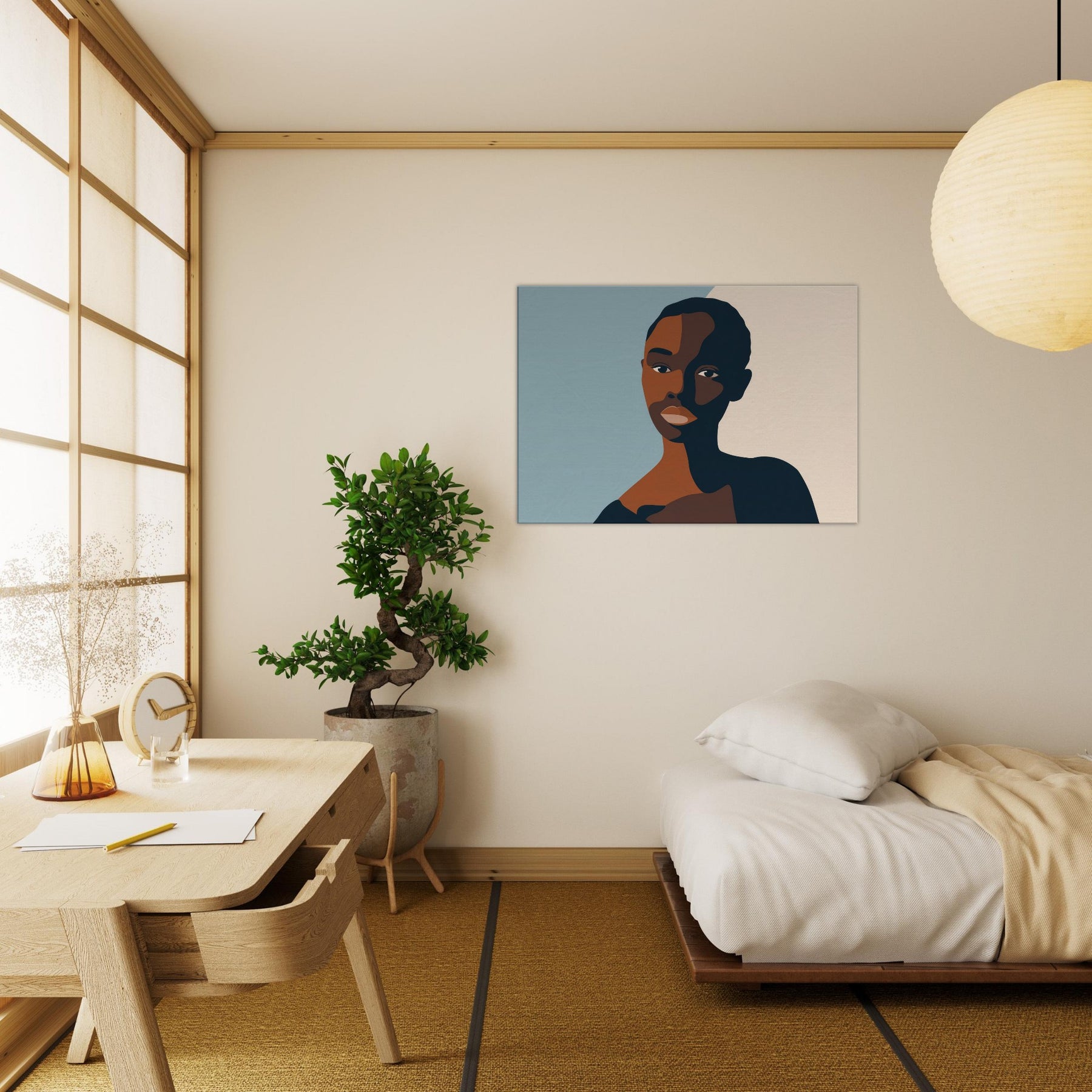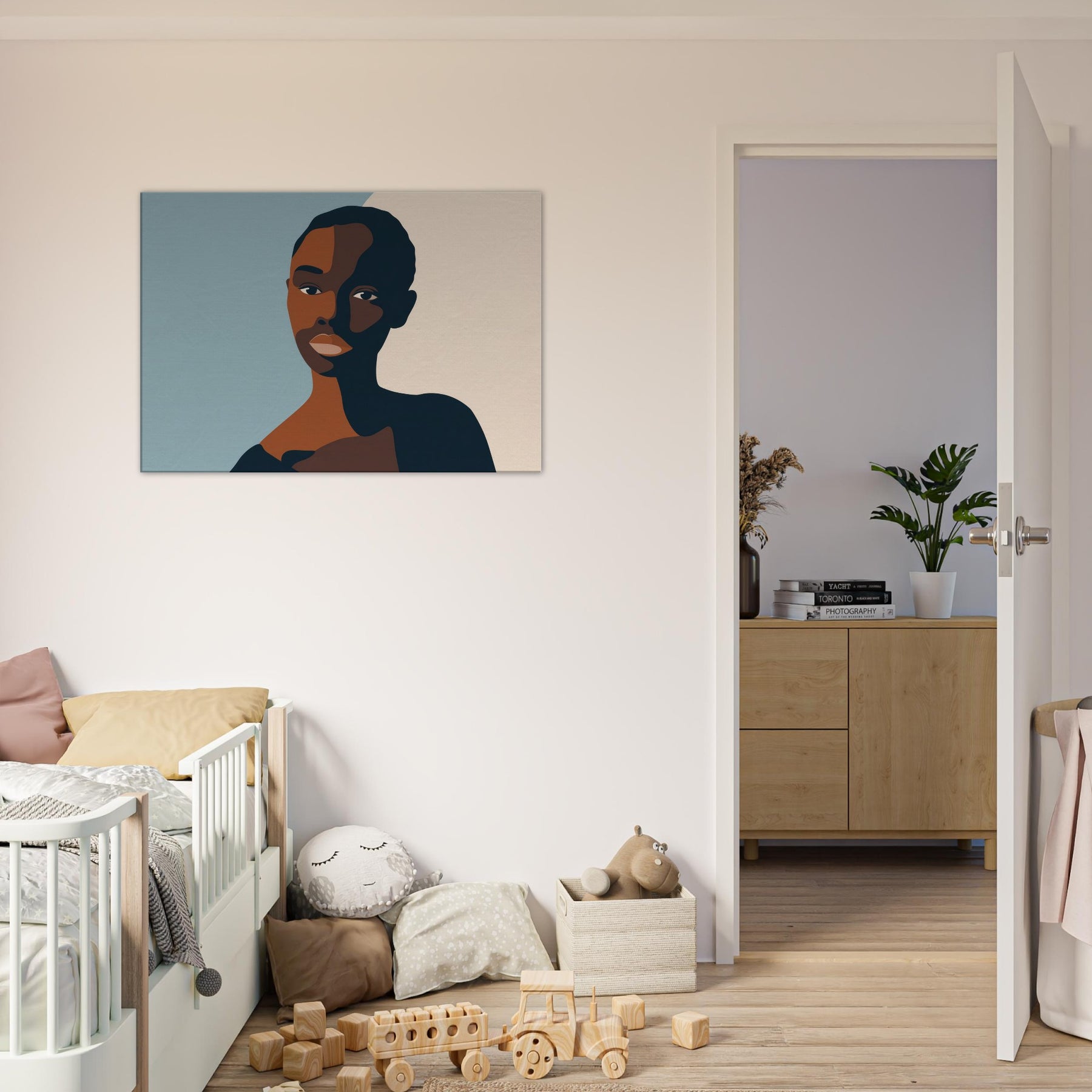 An intimate study in calm movement and warm earth tones, this minimalist African Woman invites a stillness of gaze into your living room. The smooth, interlocking planes cradle the face, cast in sienna and midnight, with a pale backdrop that breathes space. It hums with quiet resilience, echoing heritage and modern elegance. Ideal for a serene corner, it pairs with soft textiles and warm lighting to transform a wall into a personal sanctuary.