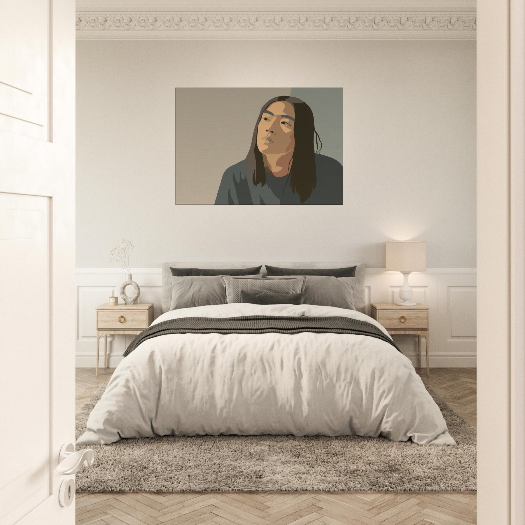 Immerse your space in the quiet intensity of a guitarist rendered in confident, minimal strokes. This minimalist dissolves into warm taupe and earth tones, letting the gaze roam across soft planes and quiet shadows. The atmosphere feels like a late afternoon jam hushed, introspective, and somehow expansive perfect for a living room or study. The guitarist stands as a calm, magnetic presence, elevating the room with atmosphere rather than noise, and turning everyday walls into a mindful concert of light and form.