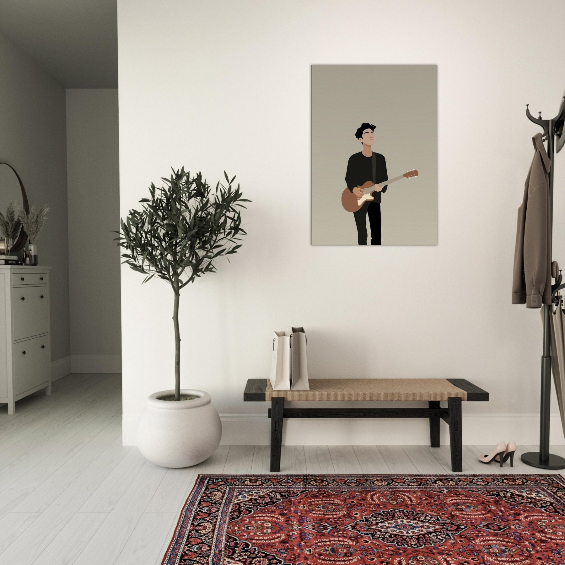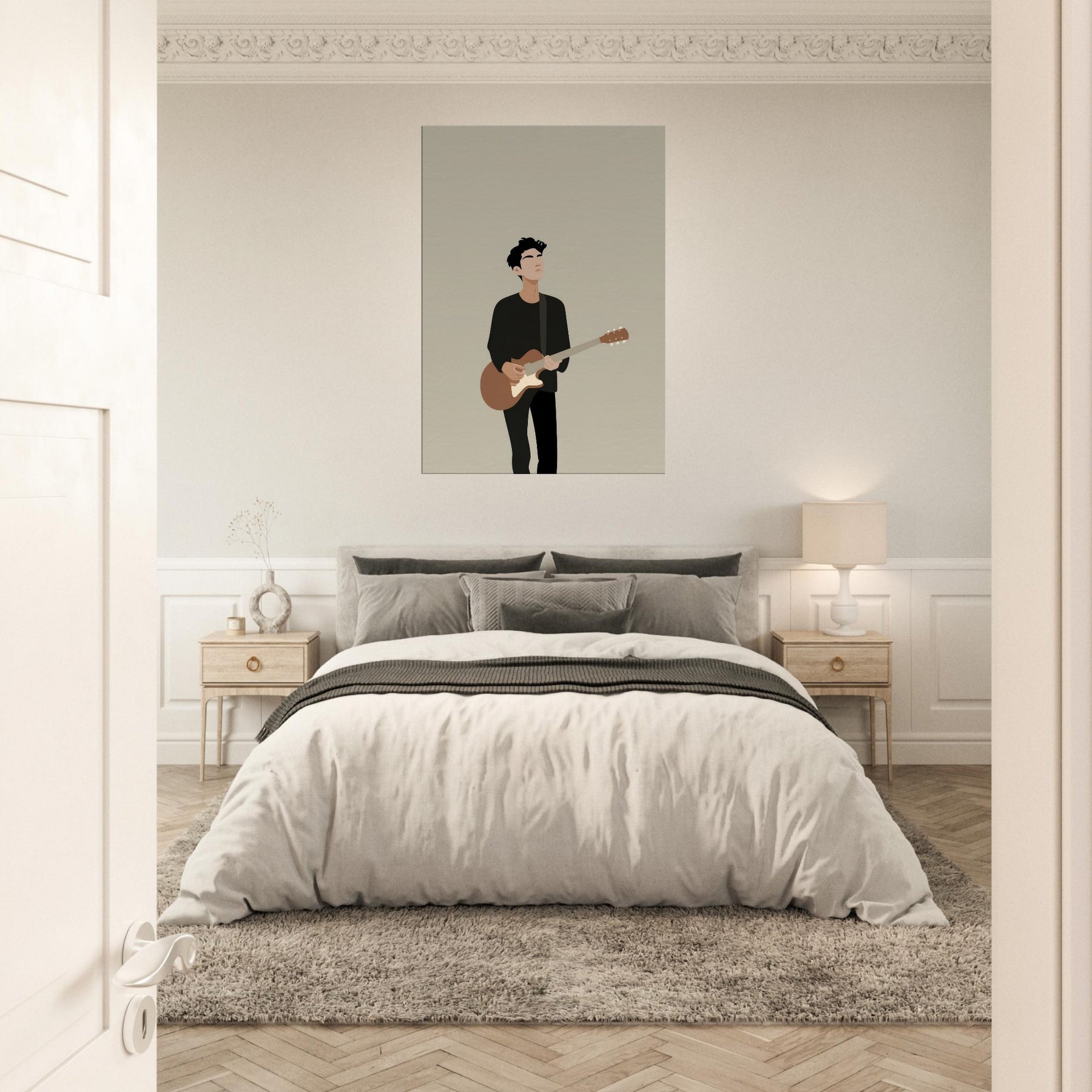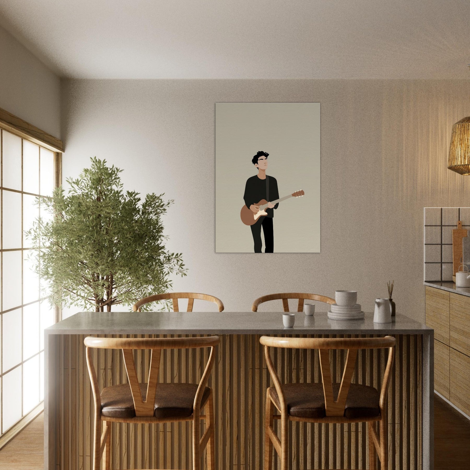 Softly lit and endlessly serene, this minimalist study of a Guitarist captures a moment when music becomes atmosphere. The muted palette and clean lines invite calm focus, letting a gentle chord drift through the room as if the wall itself were listening. Ideal for living spaces or creative nooks, it harmonizes with warm wood and soft textiles, turning bare walls into a quiet stage where memory, mood, and melody linger.