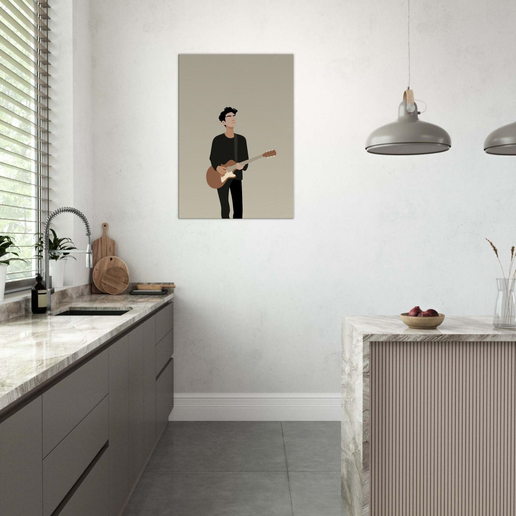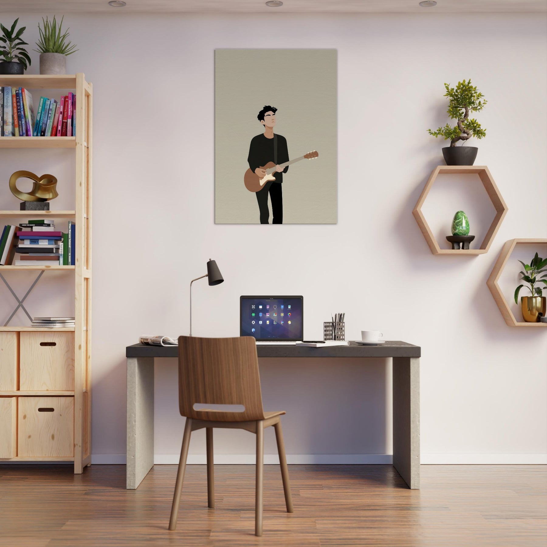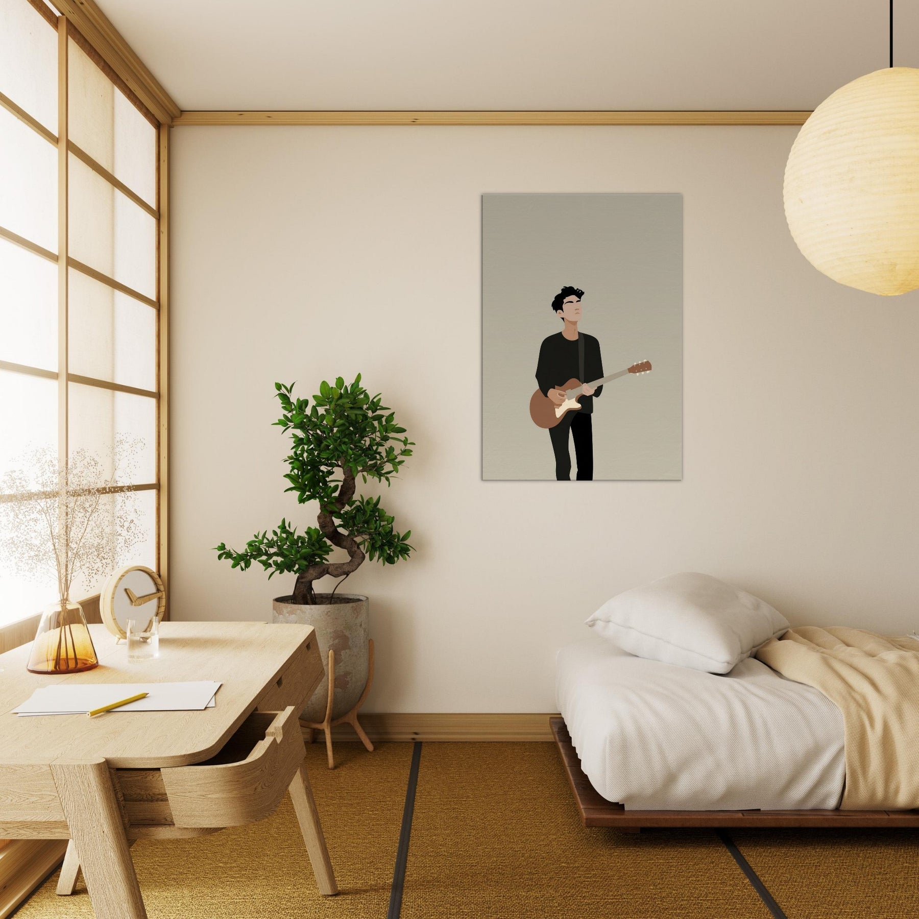 Softly lit and endlessly serene, this minimalist study of a Guitarist captures a moment when music becomes atmosphere. The muted palette and clean lines invite calm focus, letting a gentle chord drift through the room as if the wall itself were listening. Ideal for living spaces or creative nooks, it harmonizes with warm wood and soft textiles, turning bare walls into a quiet stage where memory, mood, and melody linger.
