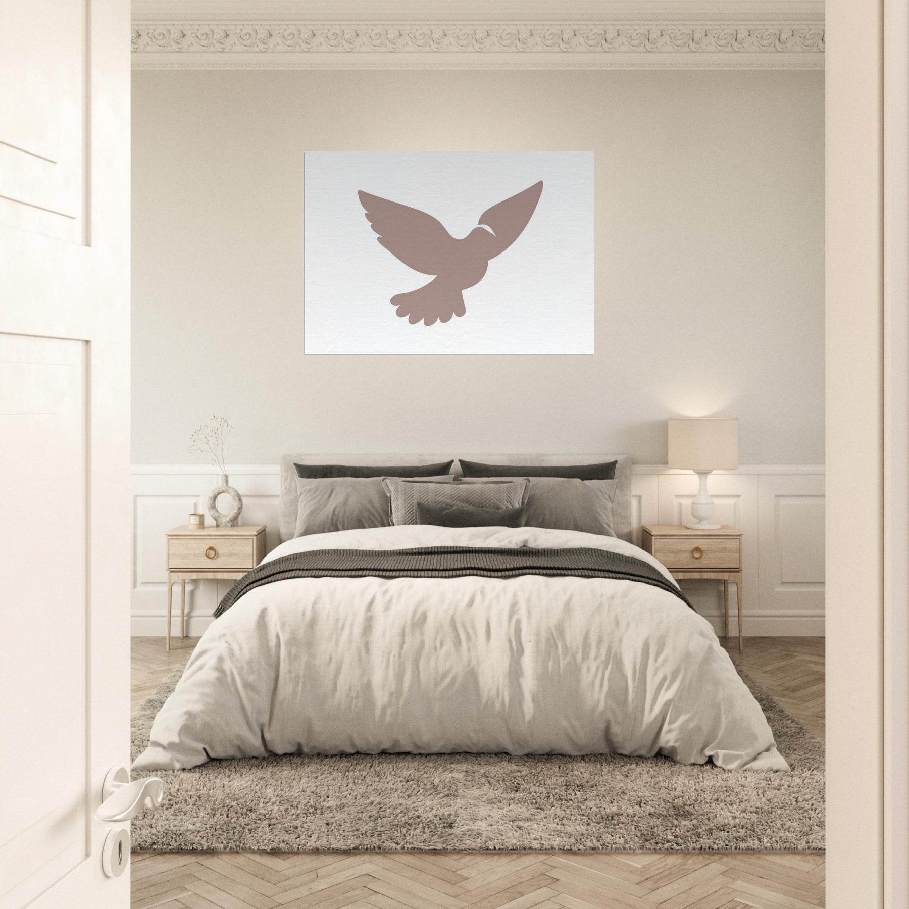 An airborne emblem of calm, this Dove of Peace reveals its soft, streamlined silhouette in a single breath of color. The minimalist form invites stillness, as though a whispered promise hovered into existence. Perfect for a quiet corner or a sunlit hallway, it blends with warm neutrals to conjure a tranquil atmosphere that slows time. Let this mystical dove drift above your daily rituals, turning ordinary spaces into havens of gentleness and renewal.