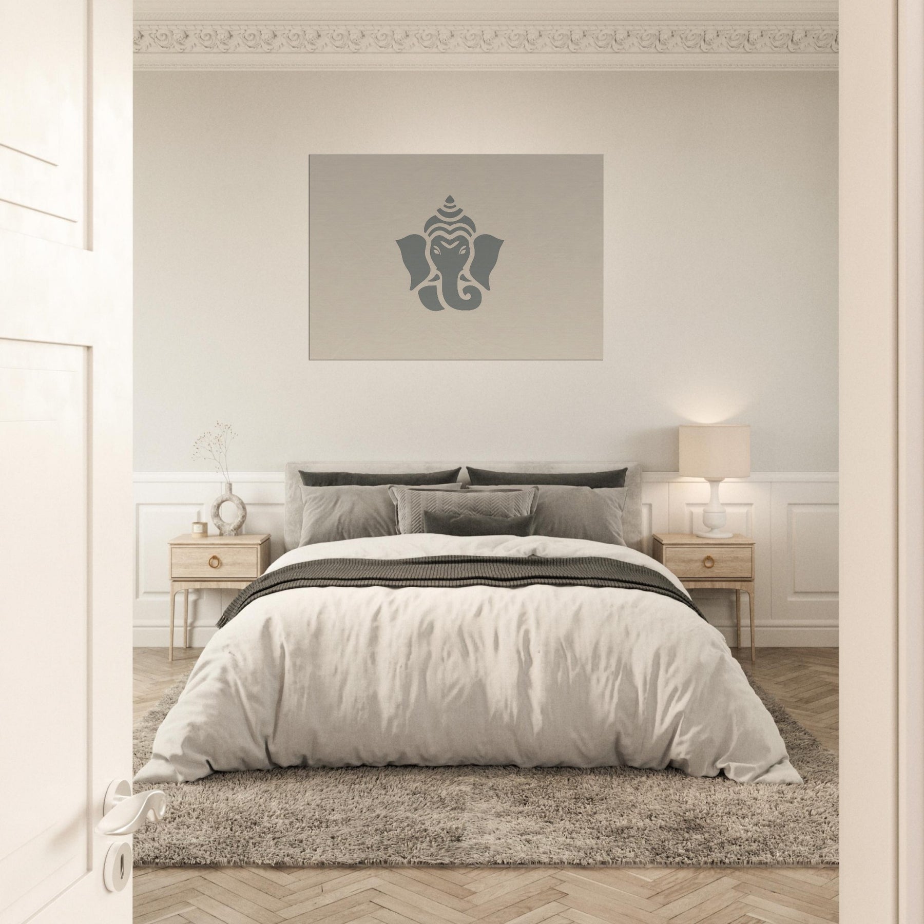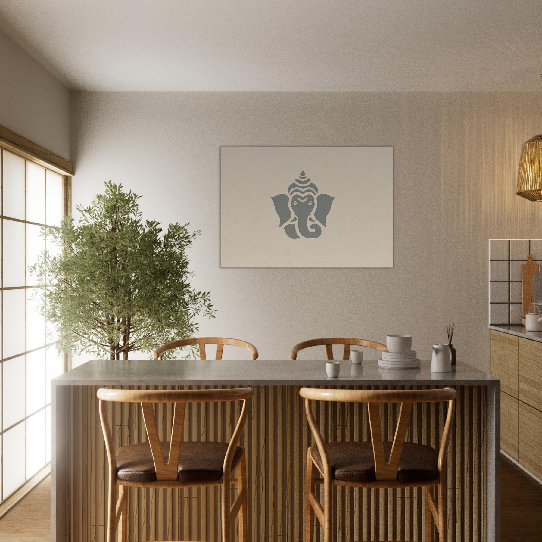 With its graceful, pared down form, this Ganesha minimalist piece invites a hush of reverence into any room. The soft contrast against a warm background conjures a tranquil aura, like a whispered mantra in your living space. The Ganesha figure becomes a subtle focal point guiding focus, inviting reflection, and softening the mood of a hallway, study, or lounge. Its mystical simplicity pairs with contemporary interiors, turning everyday walls into a quiet sanctuary of balance and possibility.