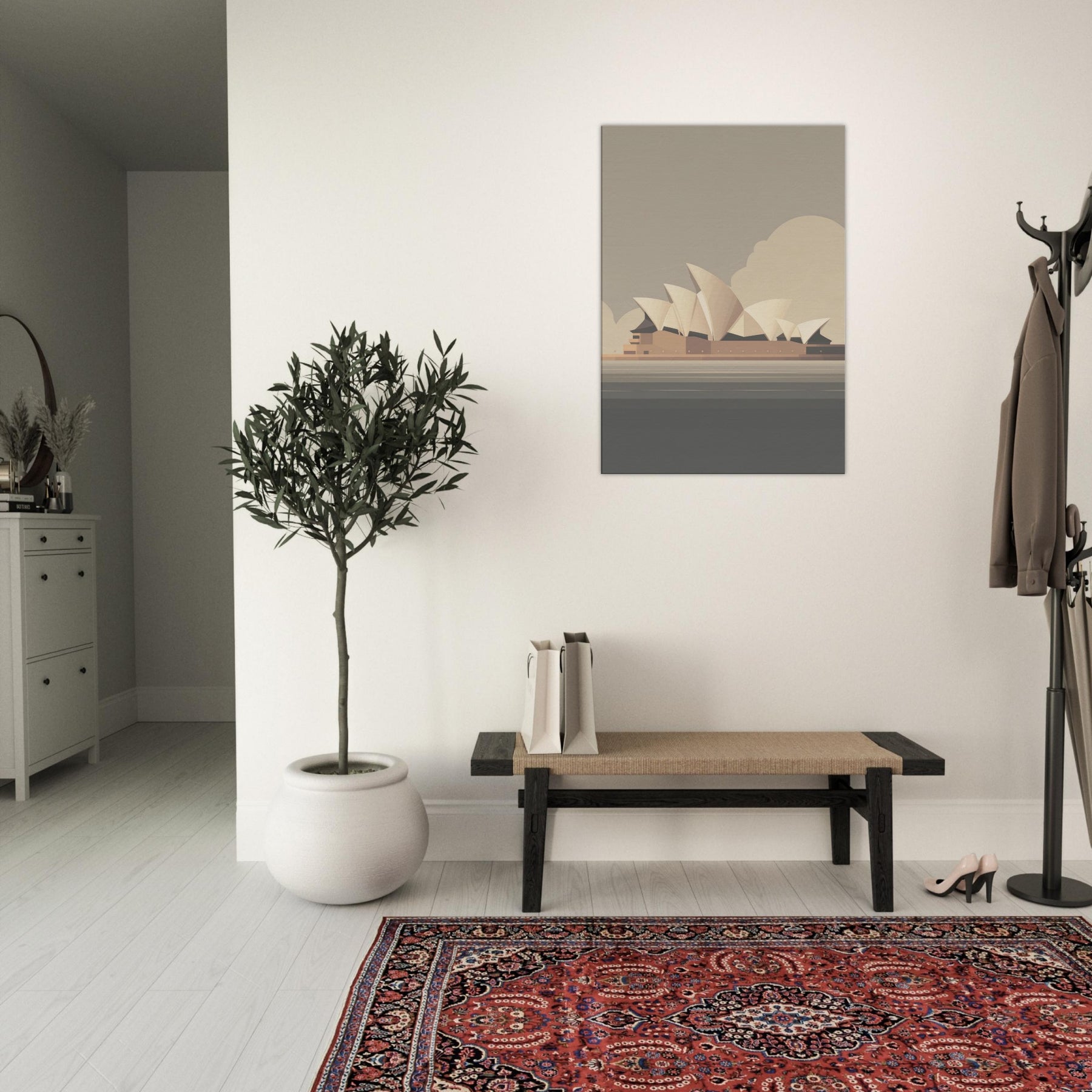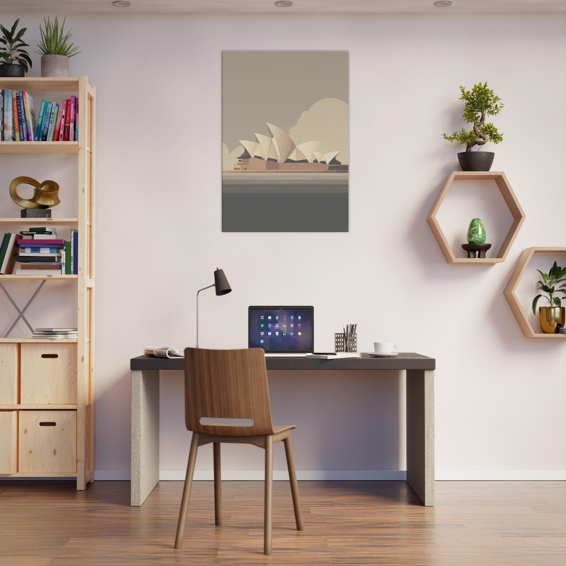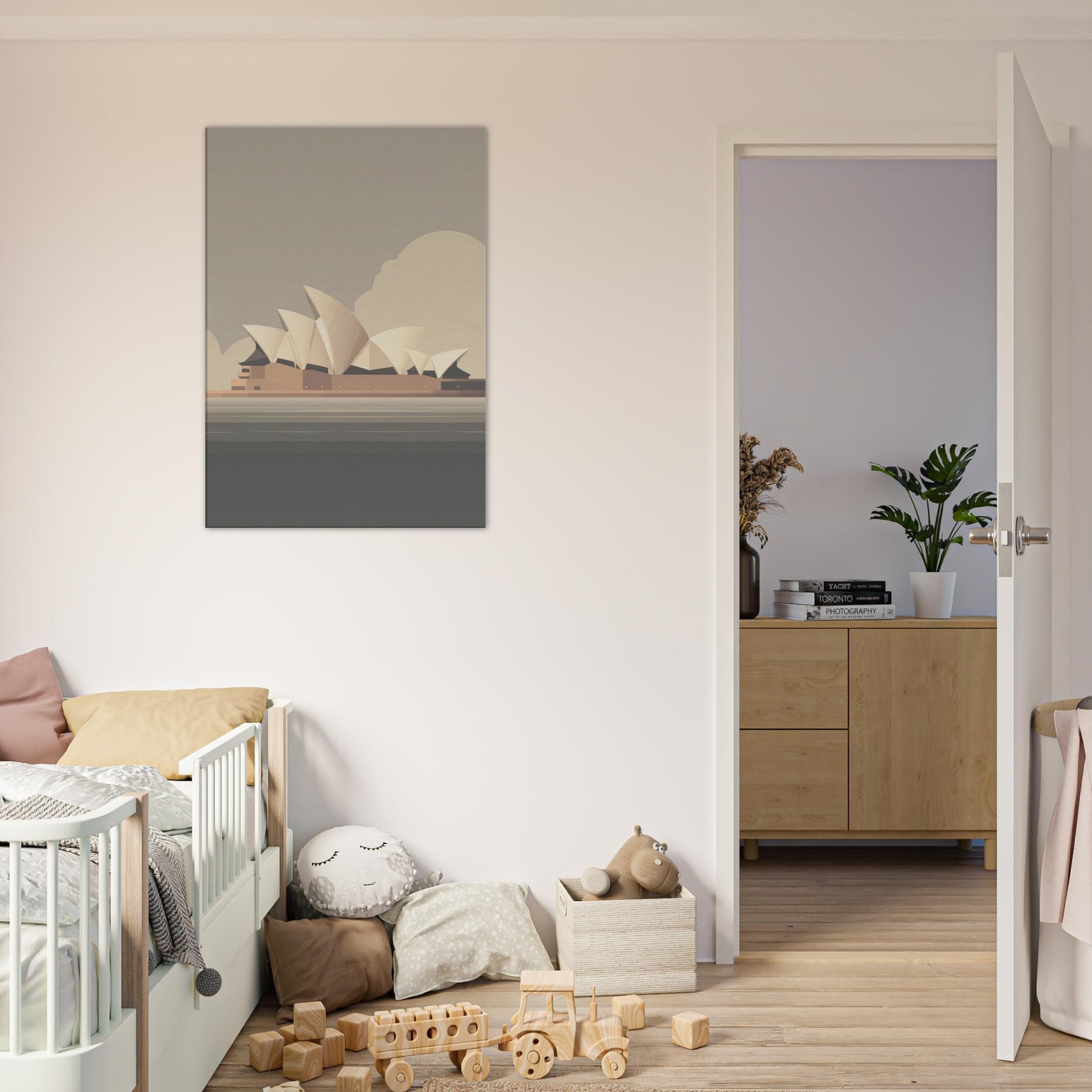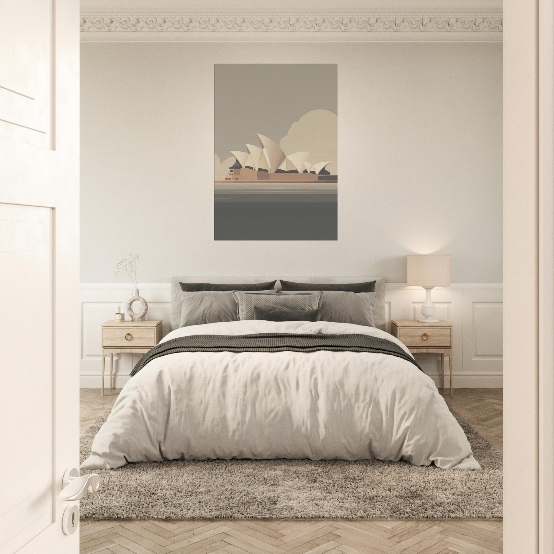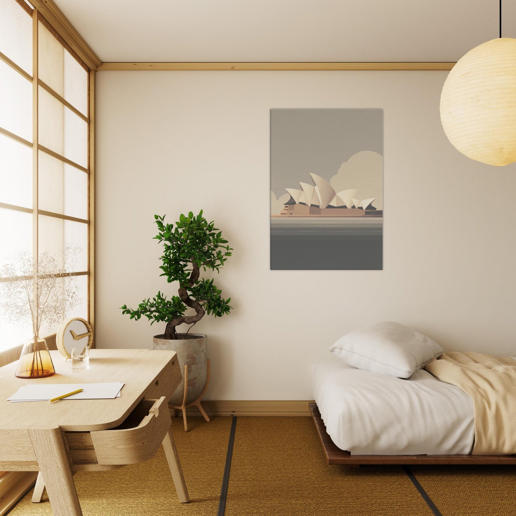 Feel the calm drift of a coastal breeze as the Sydney Opera House becomes a quiet compass for daily serenity. This minimalist silhouette gathers the harbor's pale horizons into soft planes and warm neutrals, inviting gentle light to play along the walls. In a living room, it acts as a breath of architecture and memory, balancing texture and tone without shouting. A timeless focal point that elevates ordinary spaces into contemplative retreats.
