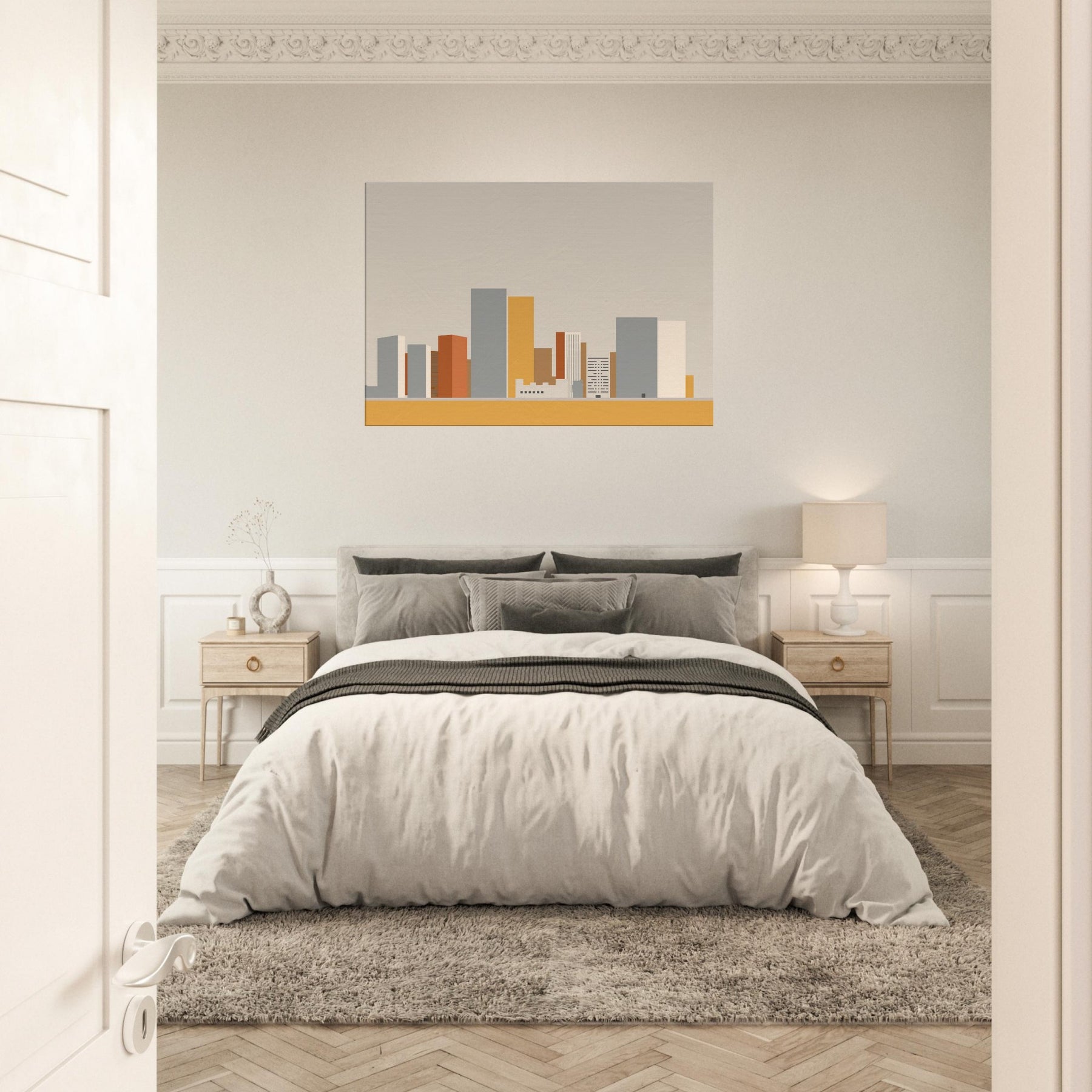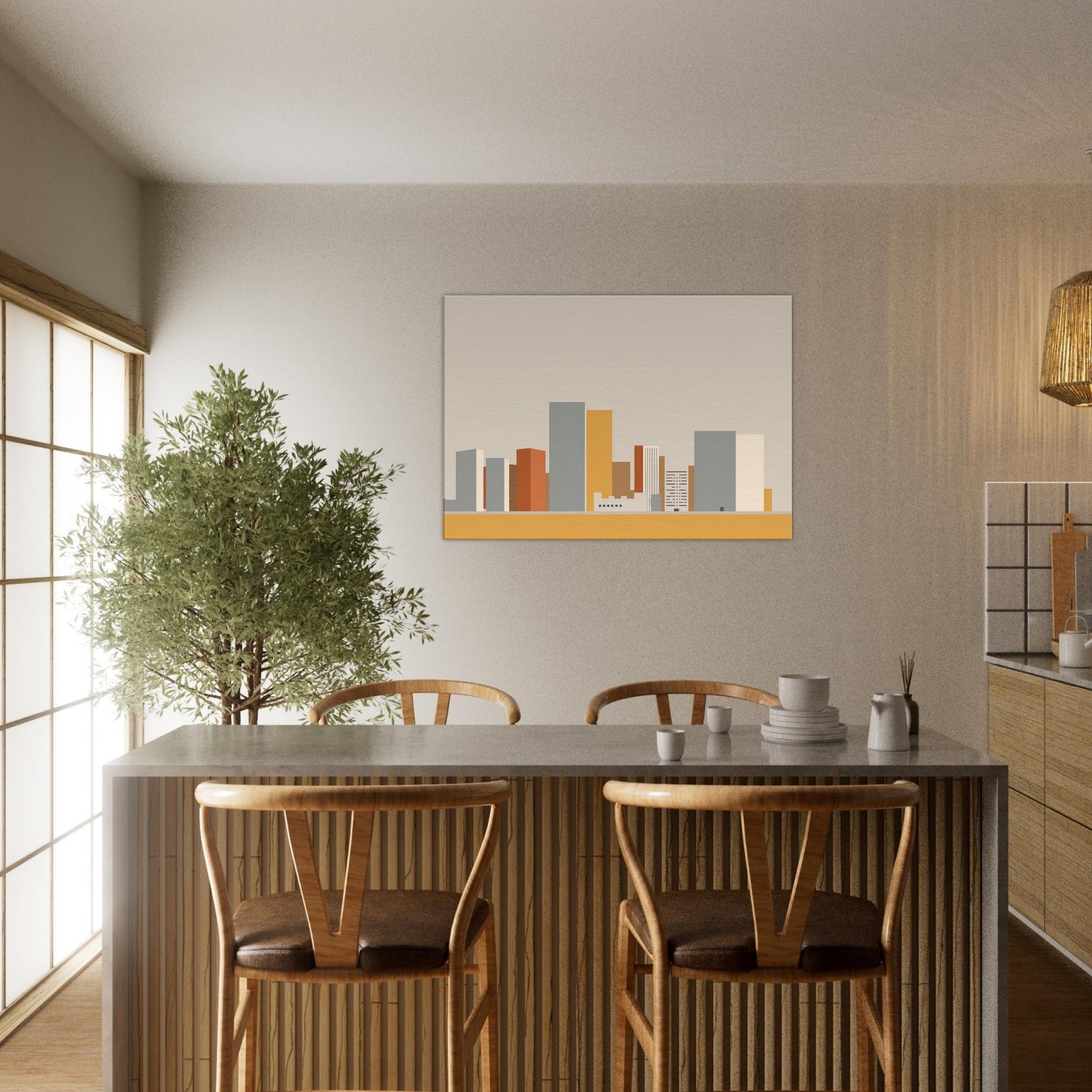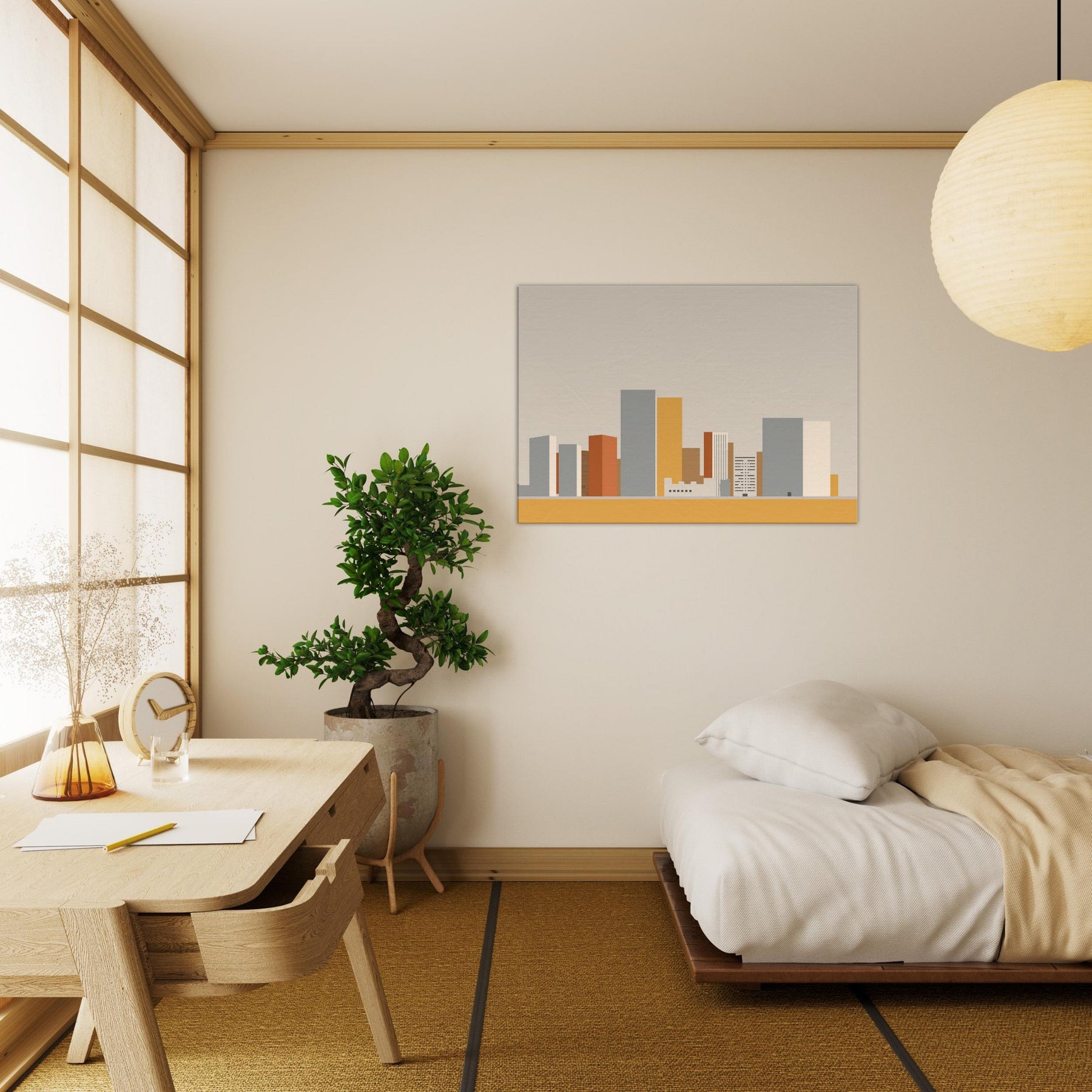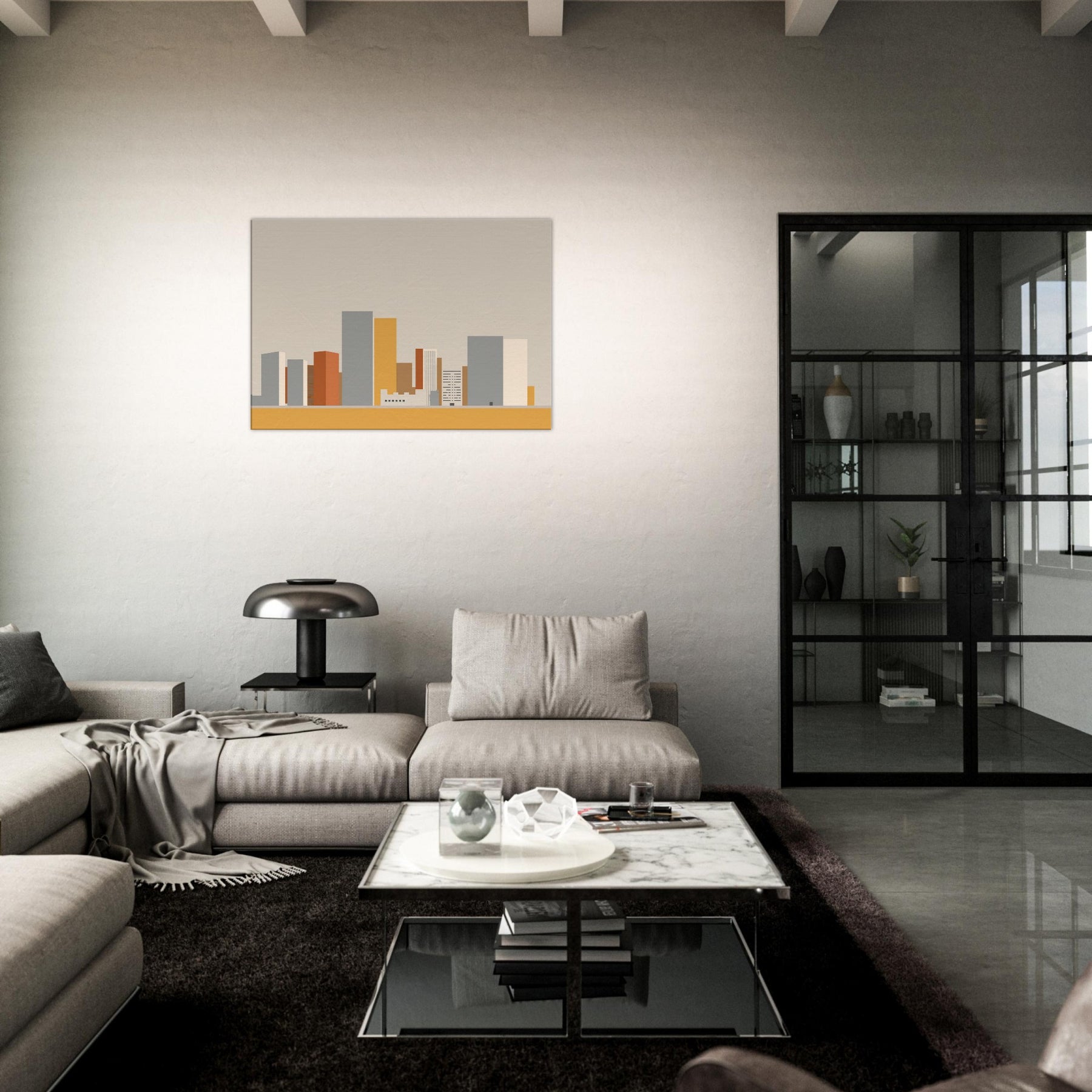 Ease into a quiet horizon where Sao Paulo rises in calm, geometric strokes. This minimalist cityscape breathes warmth through soft ochres, taupes, and slate, inviting sunlight to pool along a silent avenue. The composition centers the skyline in clean planes, turning noise into stillness perfect for a living room, above a sofa, or in a study. Its restrained palette and airy negative space evoke memories of dusk walks, urban rhythms, and the promise of new beginnings.