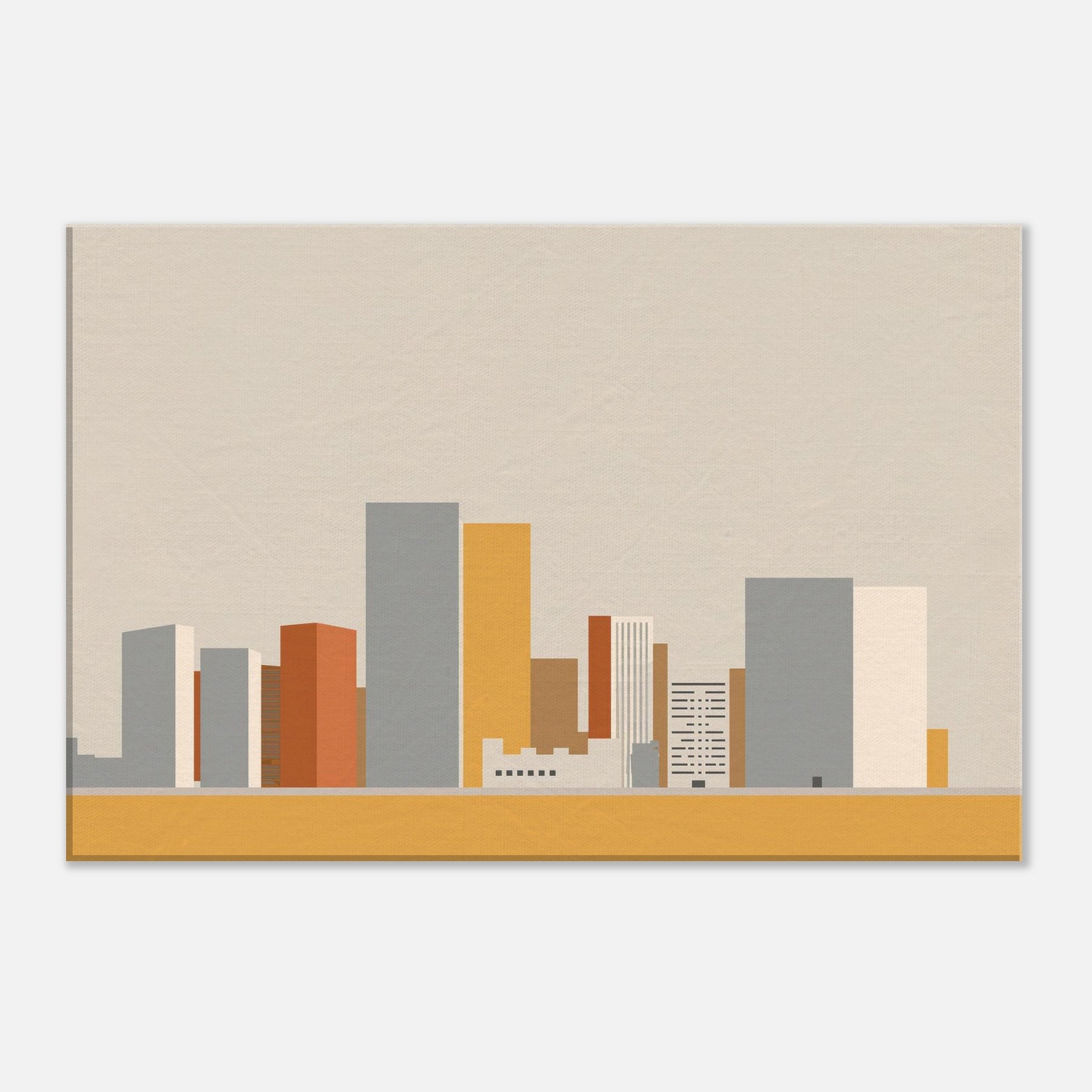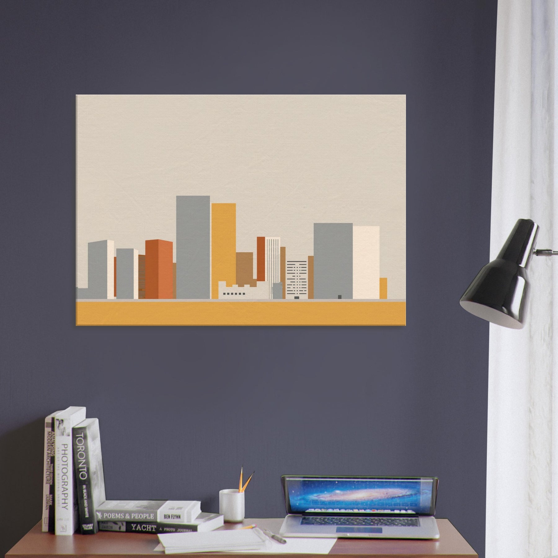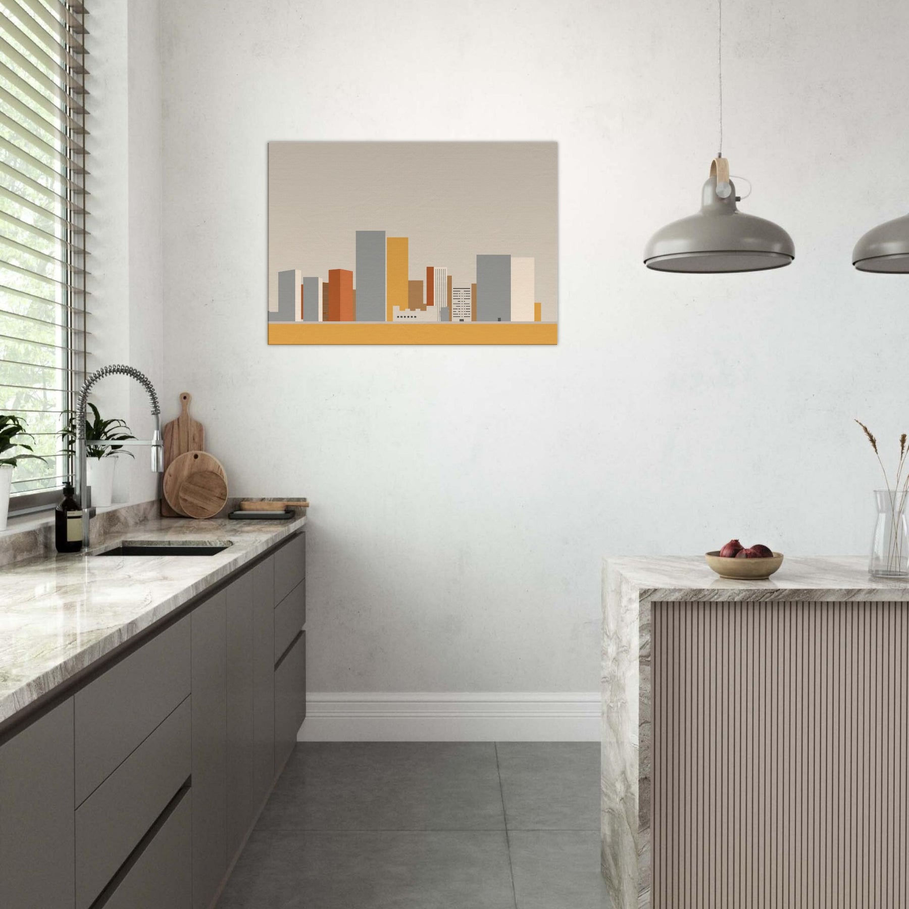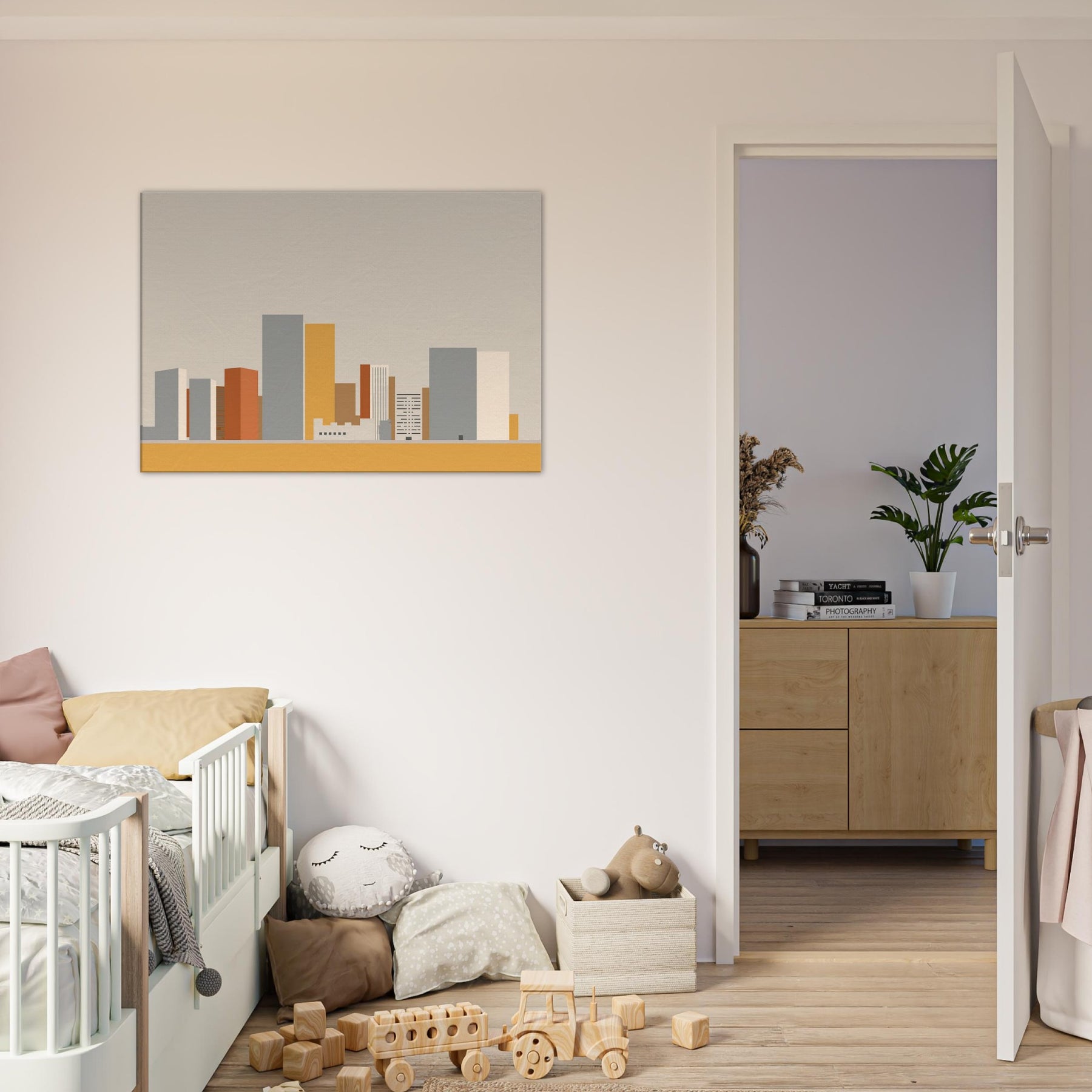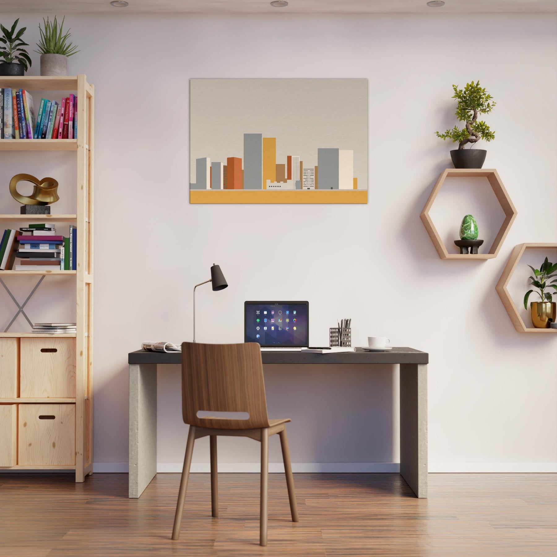 Ease into a quiet horizon where Sao Paulo rises in calm, geometric strokes. This minimalist cityscape breathes warmth through soft ochres, taupes, and slate, inviting sunlight to pool along a silent avenue. The composition centers the skyline in clean planes, turning noise into stillness perfect for a living room, above a sofa, or in a study. Its restrained palette and airy negative space evoke memories of dusk walks, urban rhythms, and the promise of new beginnings.