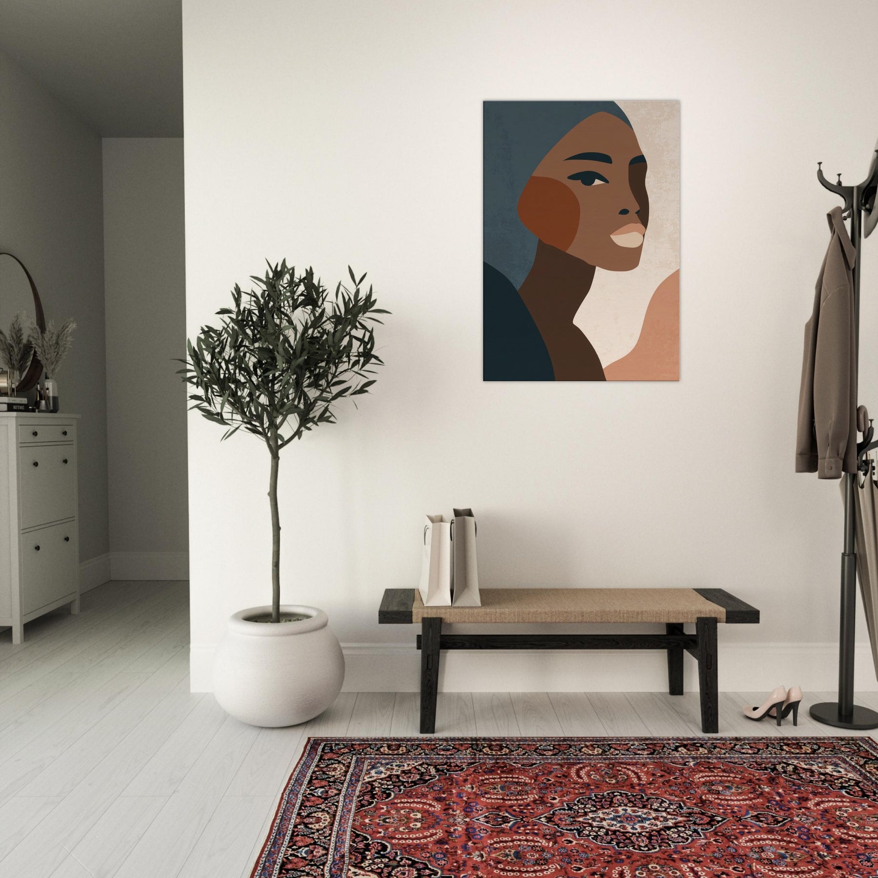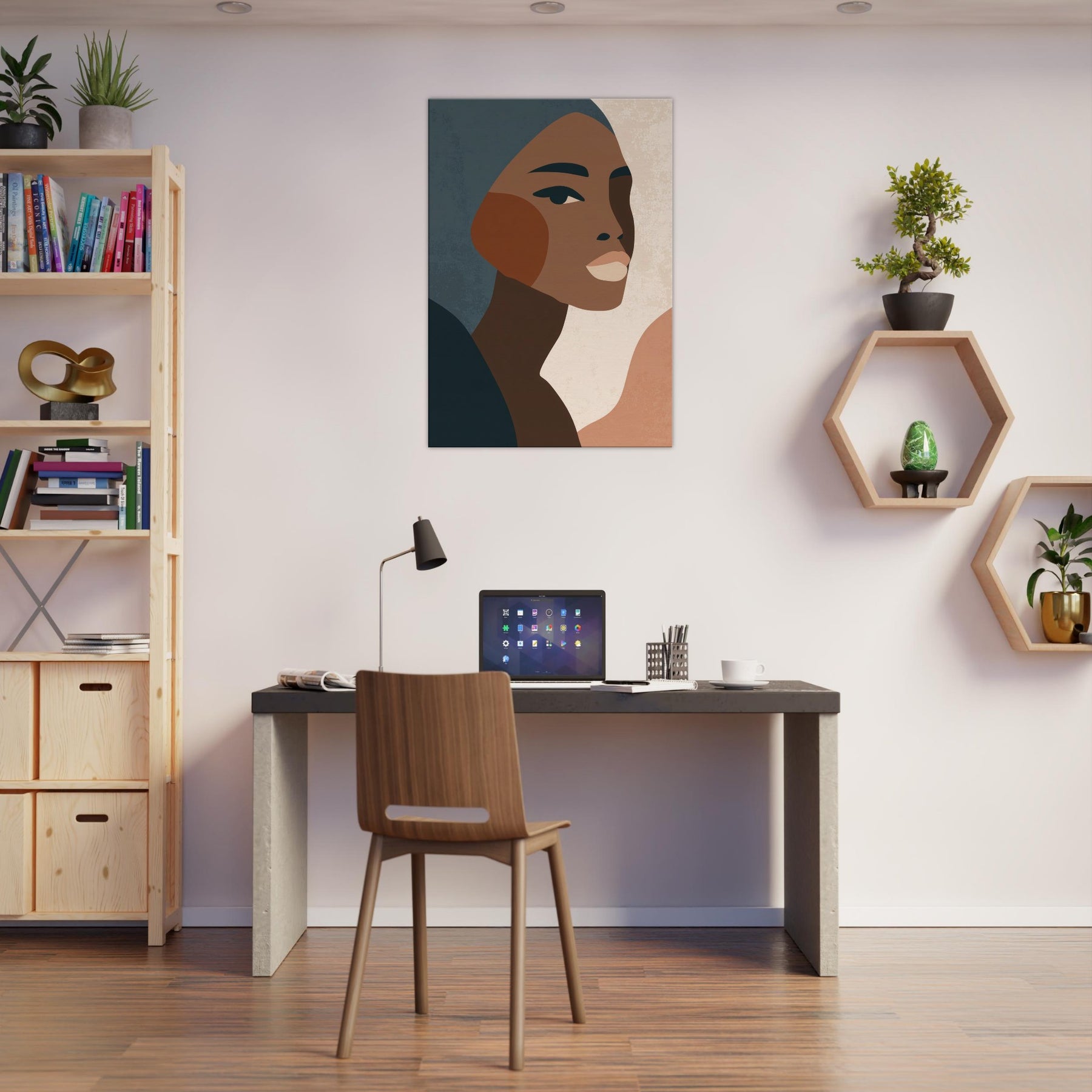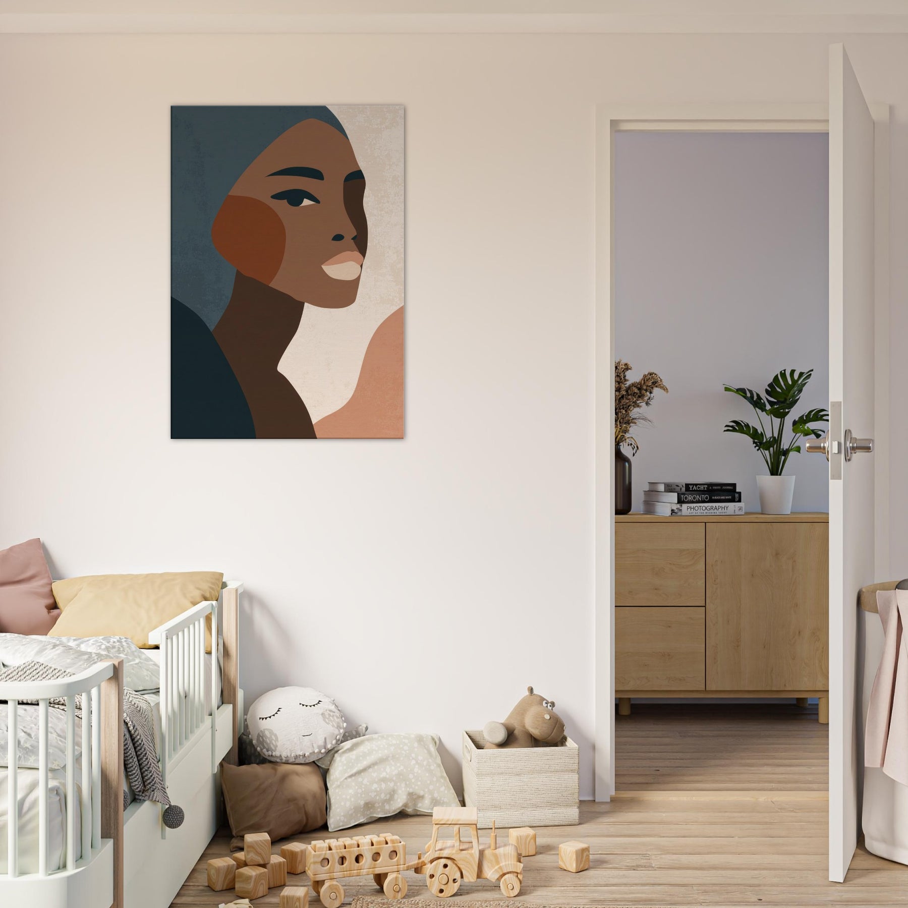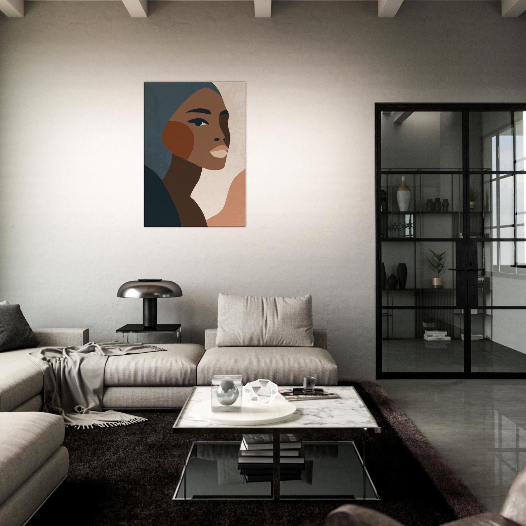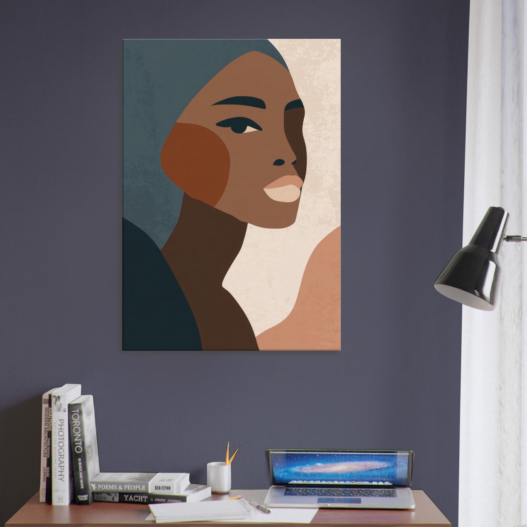 This minimalist African Woman exudes quiet grace through clean lines, warm earth tones, and subtle texture. The profile's poised gaze and elegant cheek curve invite a moment of reflection, turning any wall into a contemplative corner. Soft, layered tones drift against pale negative space, creating atmosphere rather than distraction. Perfect for a living room or bedroom, it layers beautifully with natural woods and muted textiles, elevating daily rituals with a sense of dignified calm. Let this become a timeless focal point in your home.