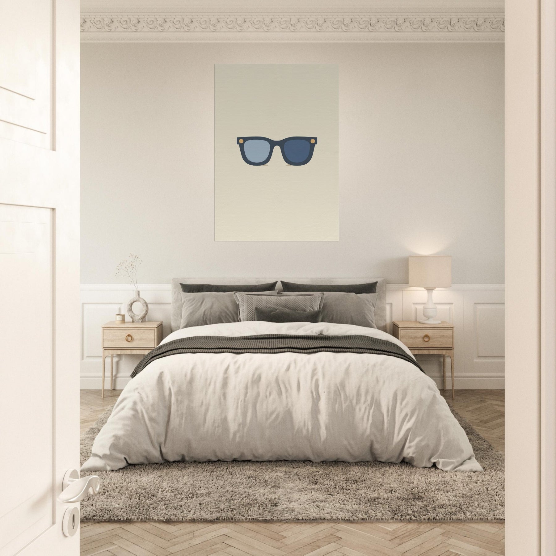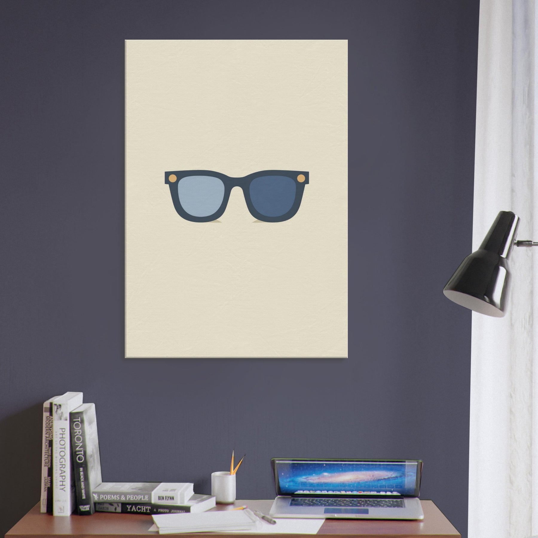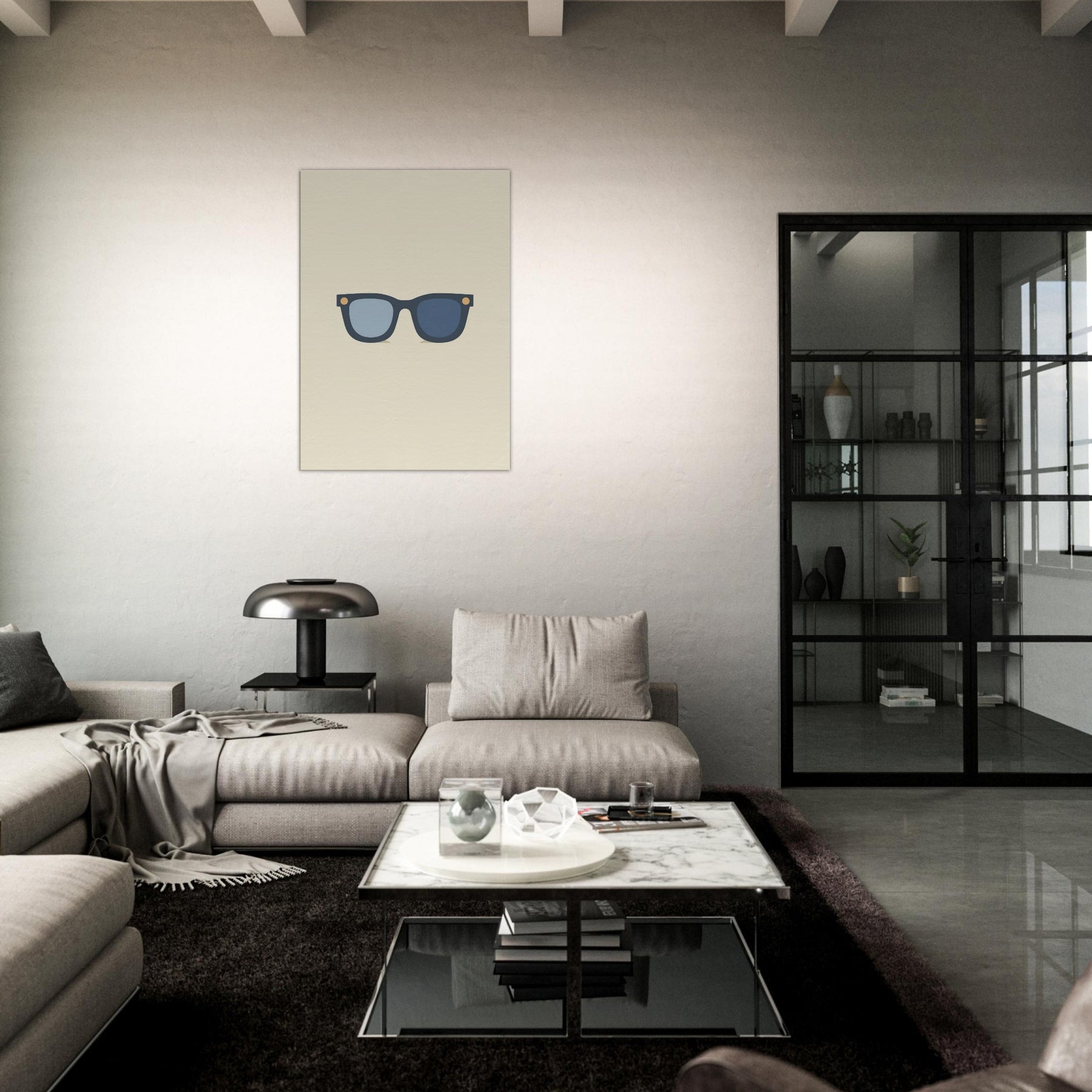 An icon of everyday chic, this minimalist composition reduces the scene to a single, elegant silhouette: Sunglasses that hover against a warm, neutral field. The restrained form and cool, muted blues evoke a breeze on a sunlit patio, while generous negative space invites calm reflection. It behaves like a quiet chorus in a living room, complementing wood tones or steel edges without shouting. Hang it where you pause entryways, lounges, or bedrooms so your space feels instantly cooler, more thoughtful, and invitingly modern.