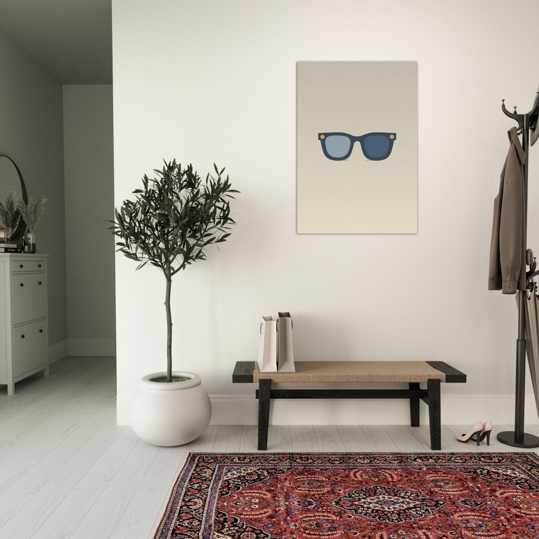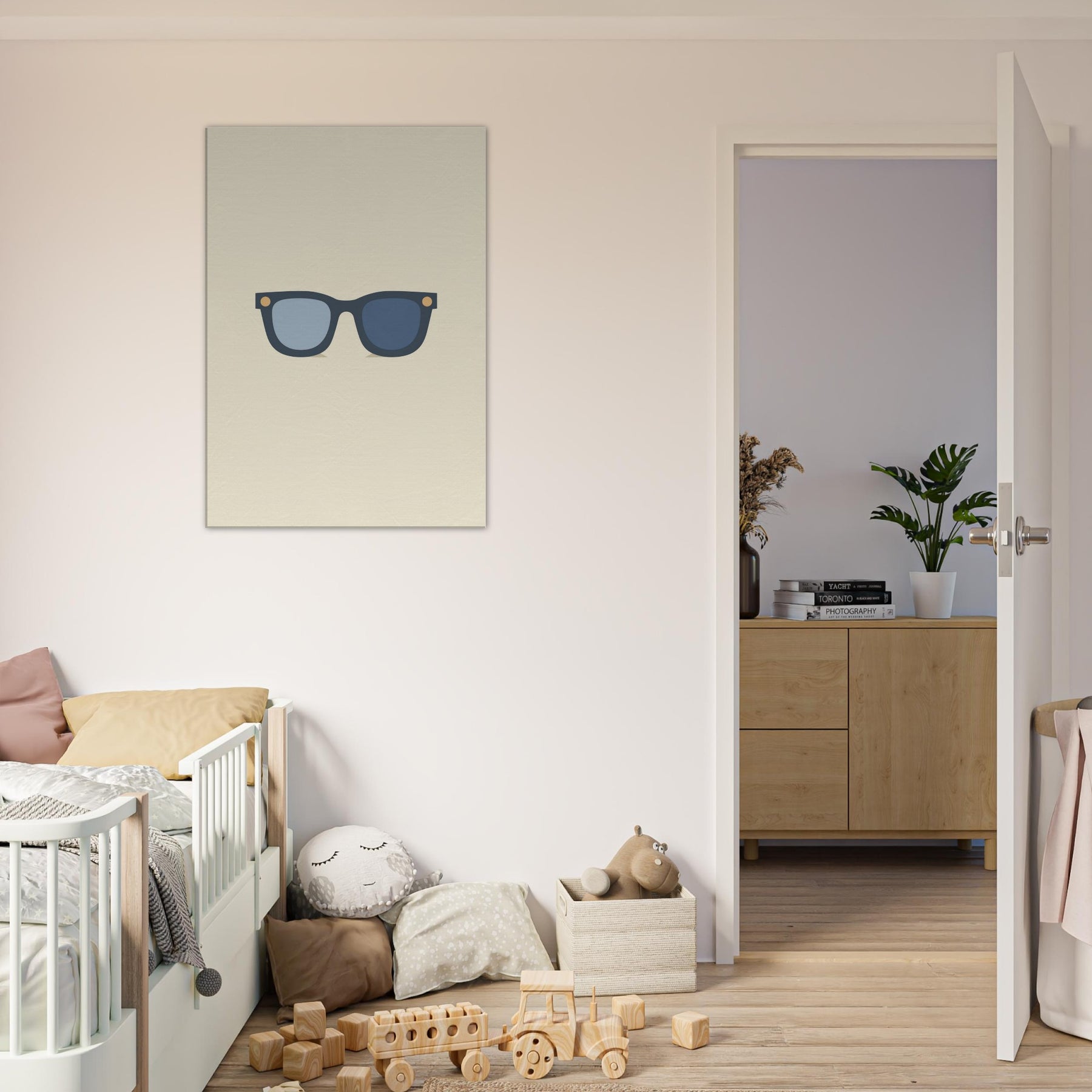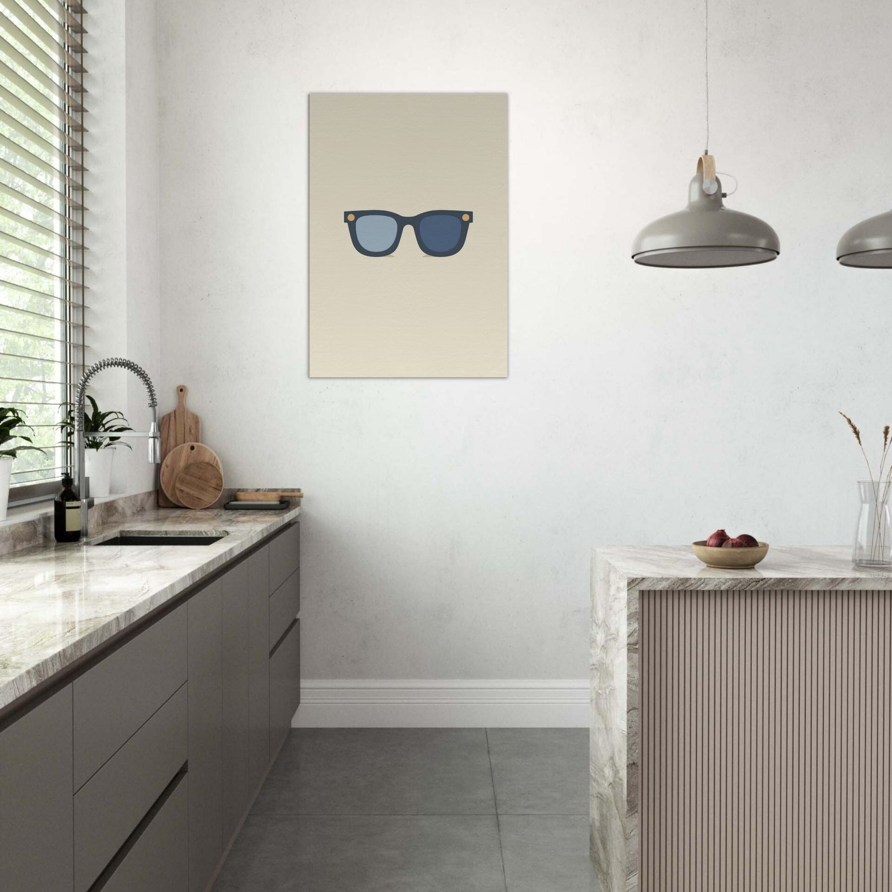 An icon of everyday chic, this minimalist composition reduces the scene to a single, elegant silhouette: Sunglasses that hover against a warm, neutral field. The restrained form and cool, muted blues evoke a breeze on a sunlit patio, while generous negative space invites calm reflection. It behaves like a quiet chorus in a living room, complementing wood tones or steel edges without shouting. Hang it where you pause entryways, lounges, or bedrooms so your space feels instantly cooler, more thoughtful, and invitingly modern.