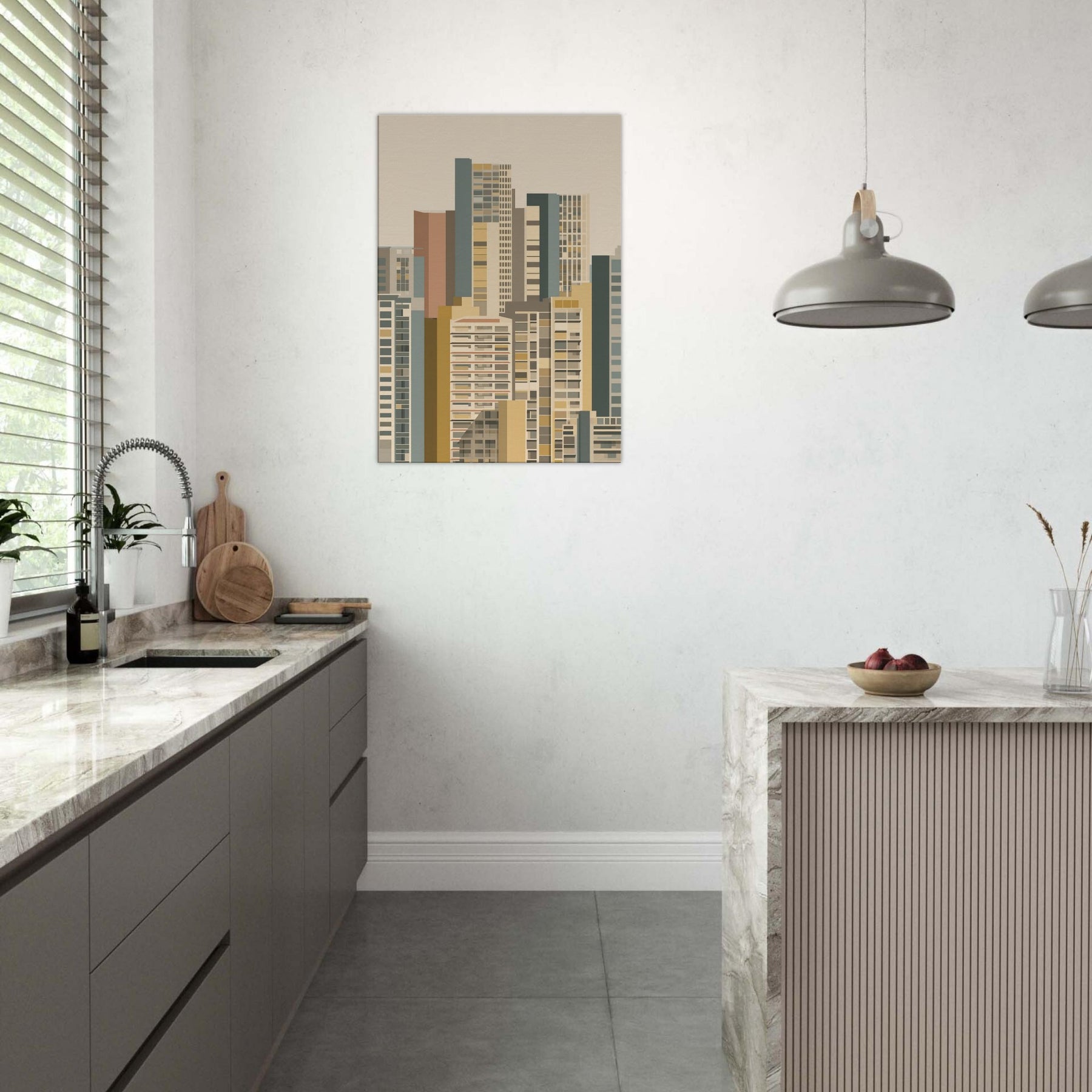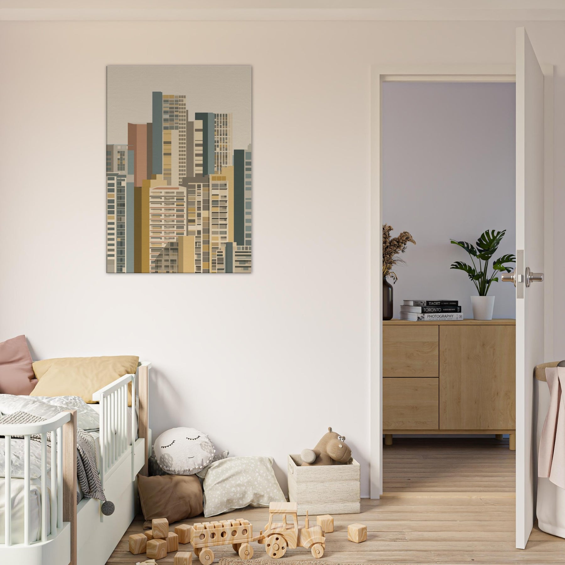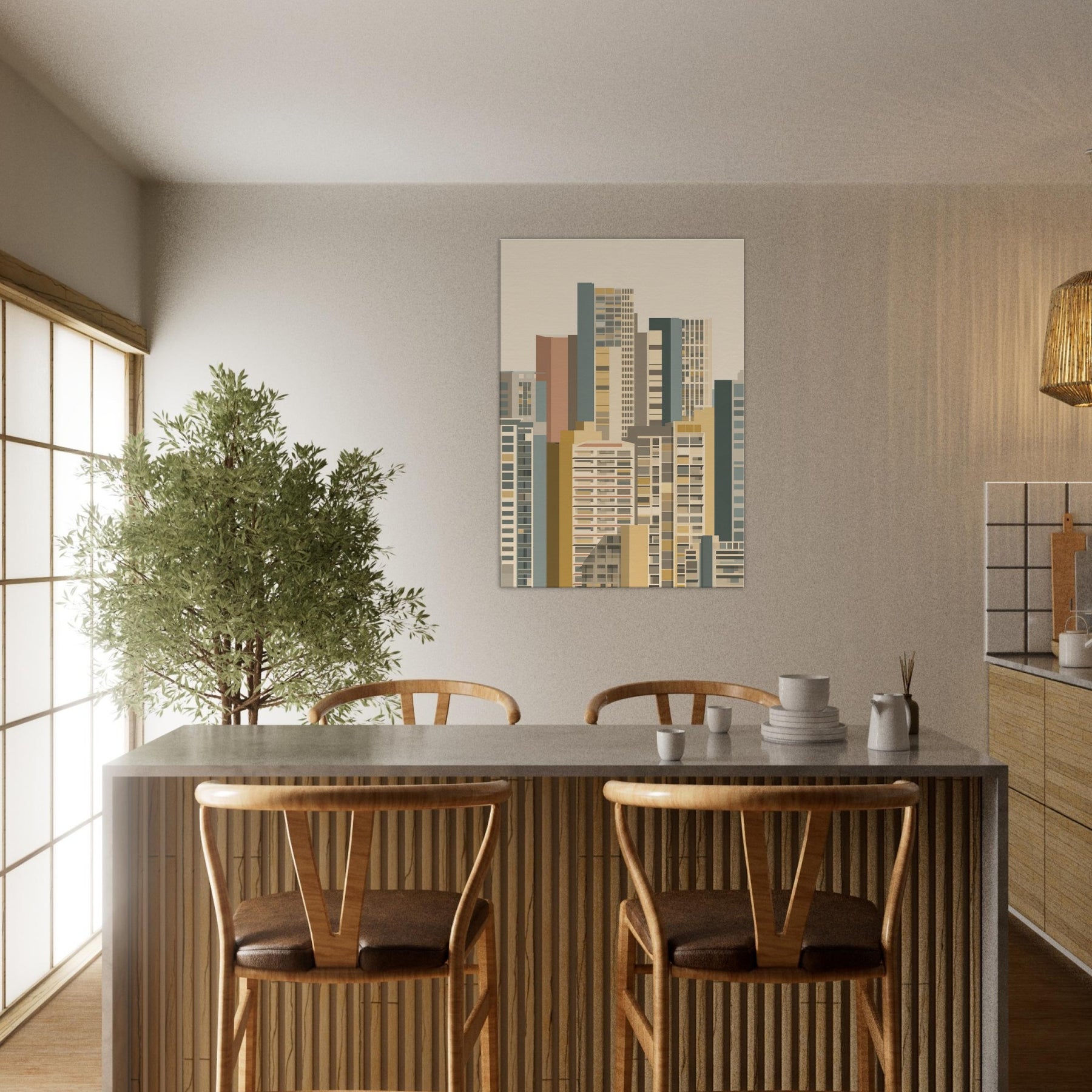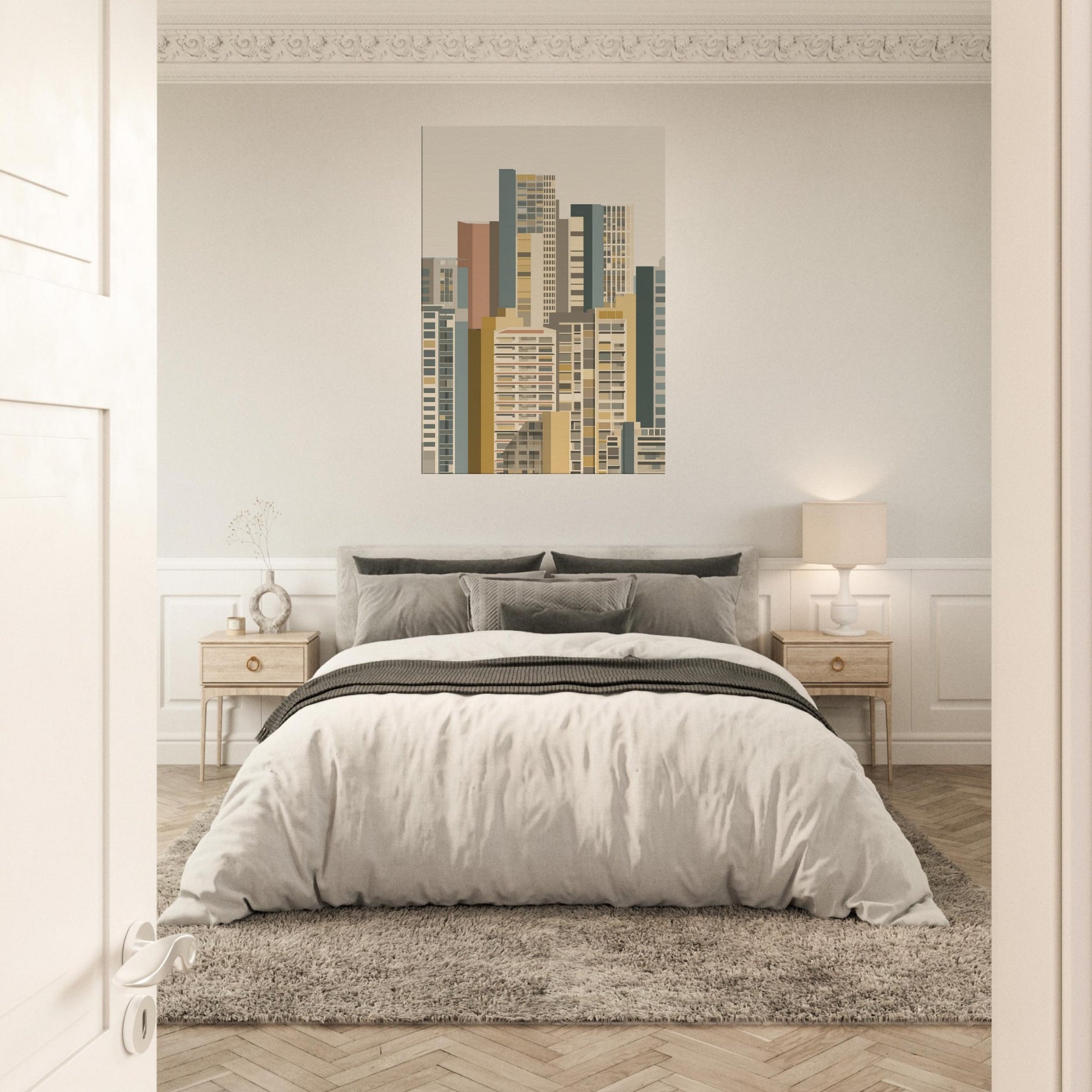 Shanghai rises in tranquil, minimalist geometry the city skyline distilled to soft blocks of color and calm rhythm. Muted sandstone, slate, and ochre bloom across the abstract towers, inviting rest as much as gaze, turning a wall into a quiet horizon. In your living room or study, it slows the pace of the day, catching light in subtle gradients and offering a serene focal point. This artwork blends memory of a bustling metropolis with a meditative stillness, elevating spaces that crave clarity and warmth.