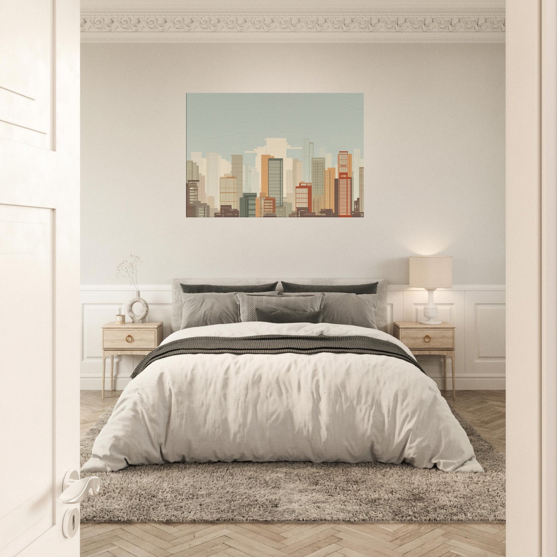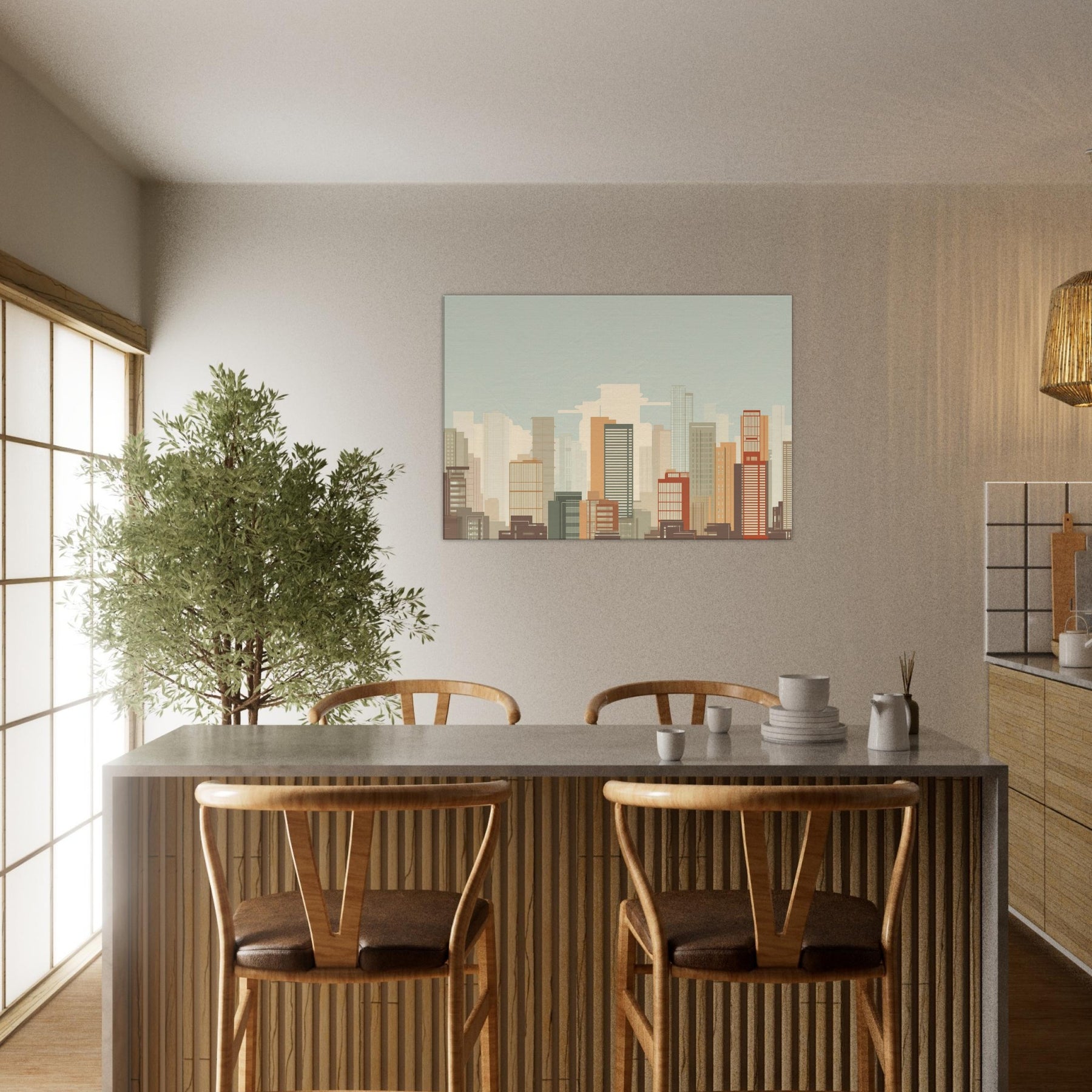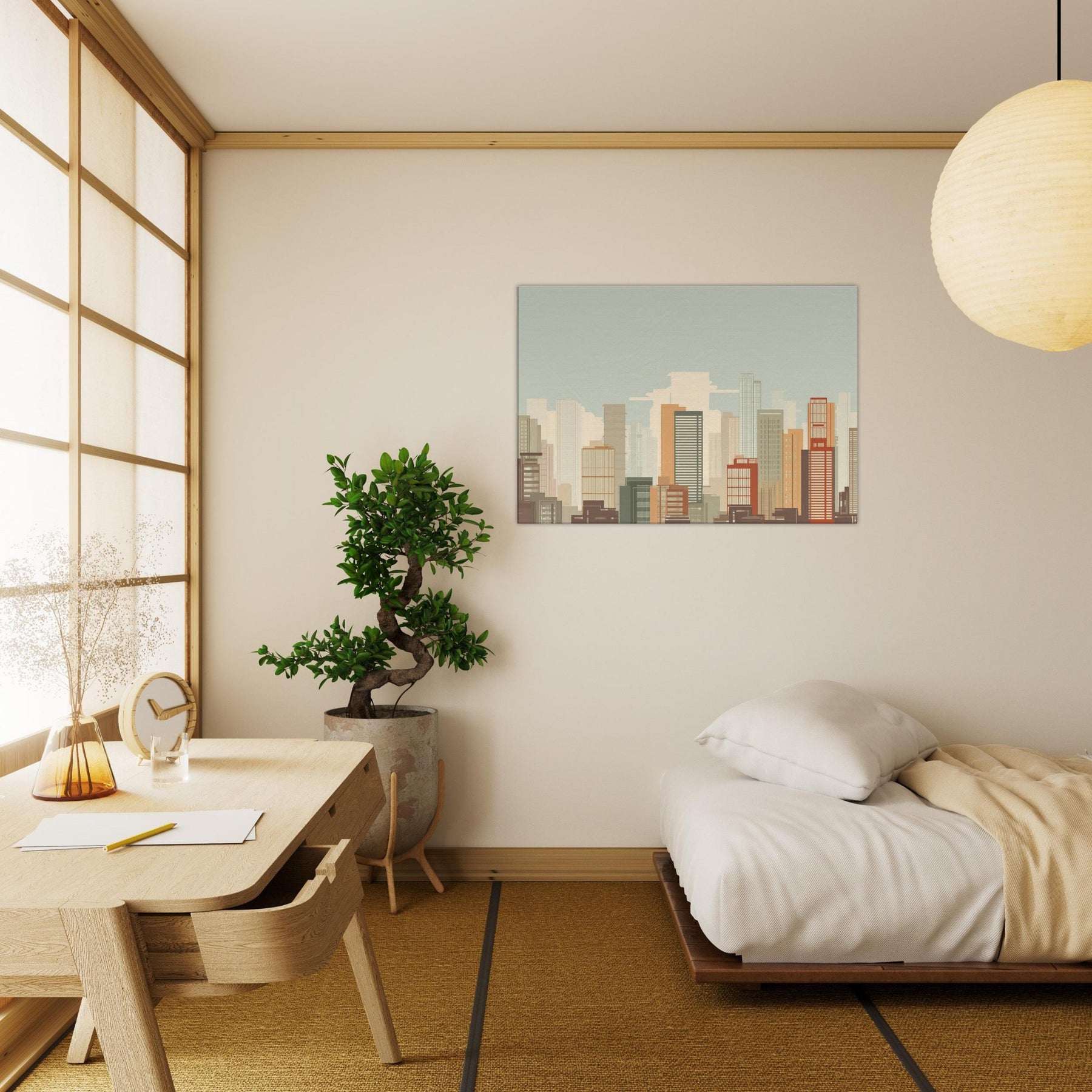 Shanghai minimalist skyline unfolds as a quiet vow to space and light. This piece gathers the city's architectural chorus into clean, unbroken lines, letting warm sand and muted terracotta hues breathe across your wall. Imagine morning sun spilling across high rises, a soft breeze in the gaps between towers, and the hush of a city waking. In a living room, it acts as a calm horizon, grounding furniture with a timeless urban poetry, inviting contemplation without shouting for attention.