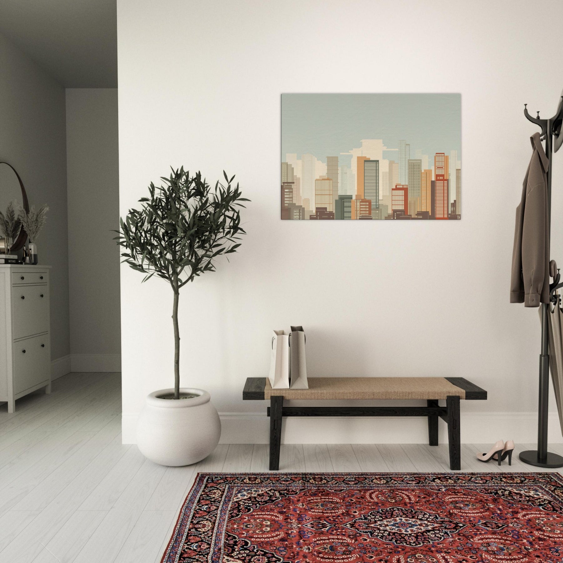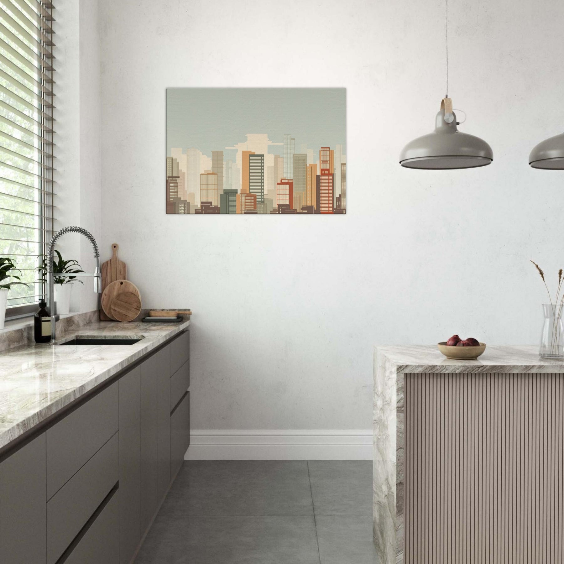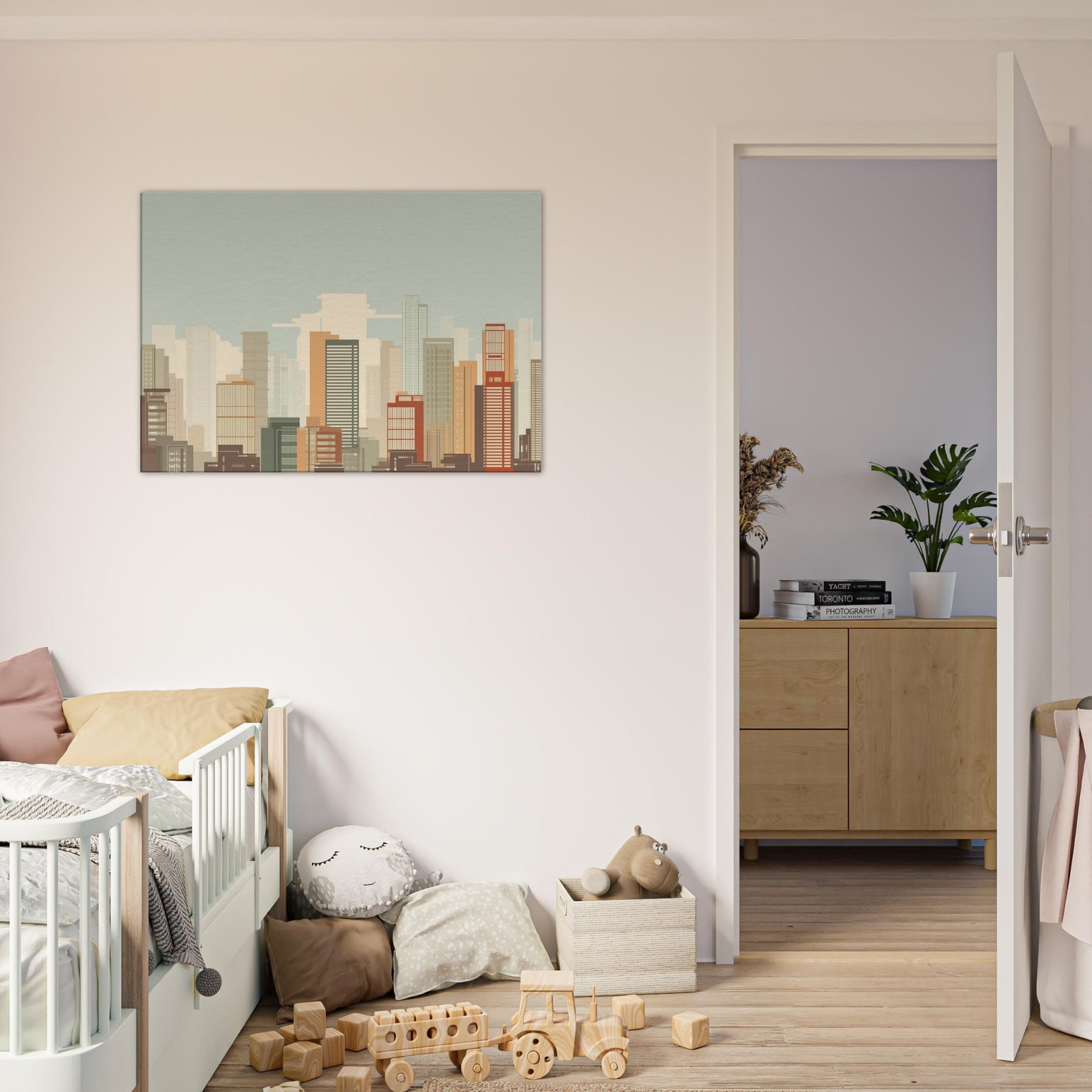 Shanghai minimalist skyline unfolds as a quiet vow to space and light. This piece gathers the city's architectural chorus into clean, unbroken lines, letting warm sand and muted terracotta hues breathe across your wall. Imagine morning sun spilling across high rises, a soft breeze in the gaps between towers, and the hush of a city waking. In a living room, it acts as a calm horizon, grounding furniture with a timeless urban poetry, inviting contemplation without shouting for attention.