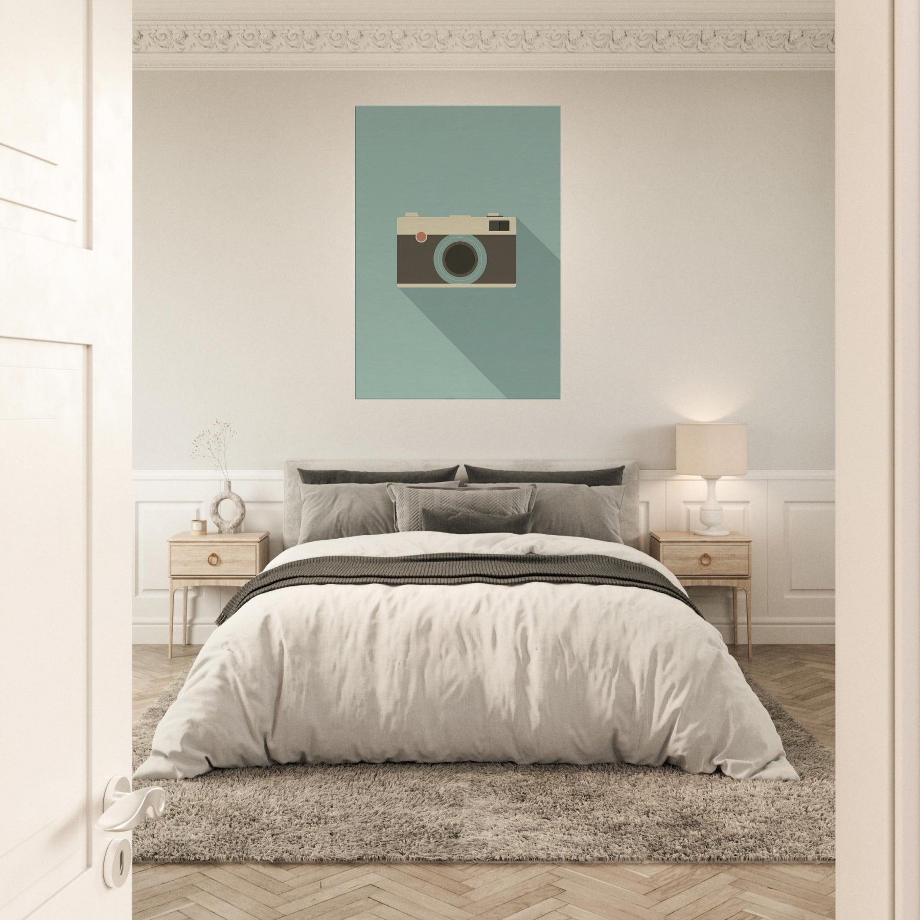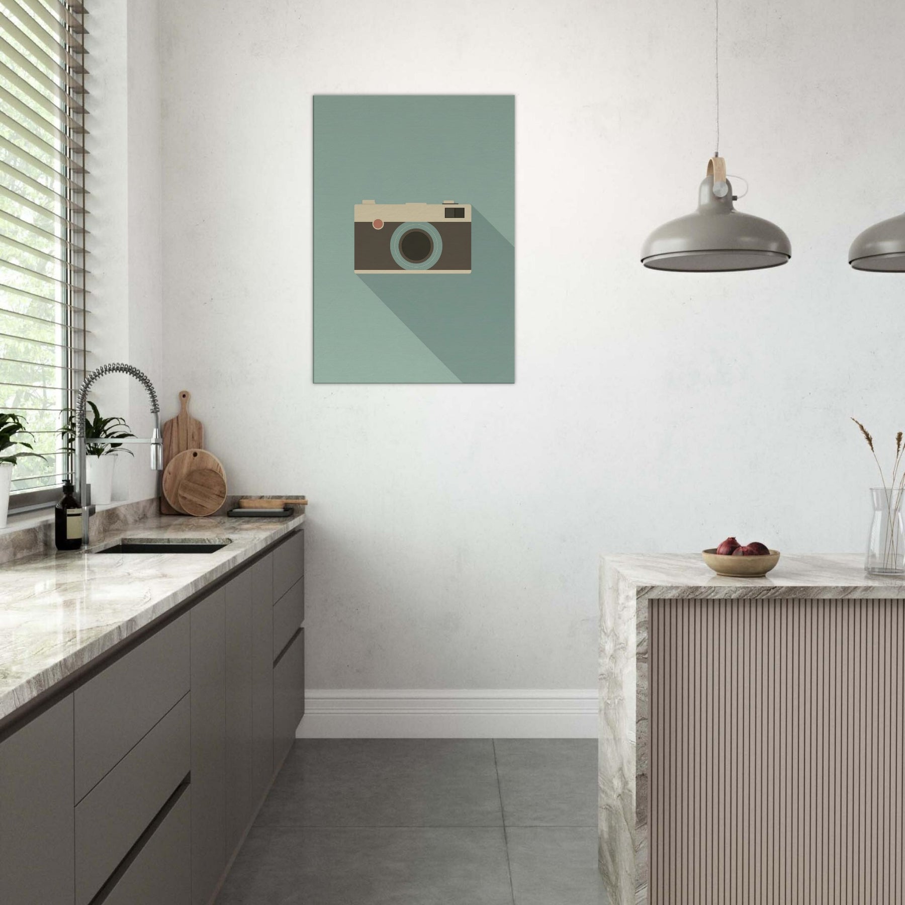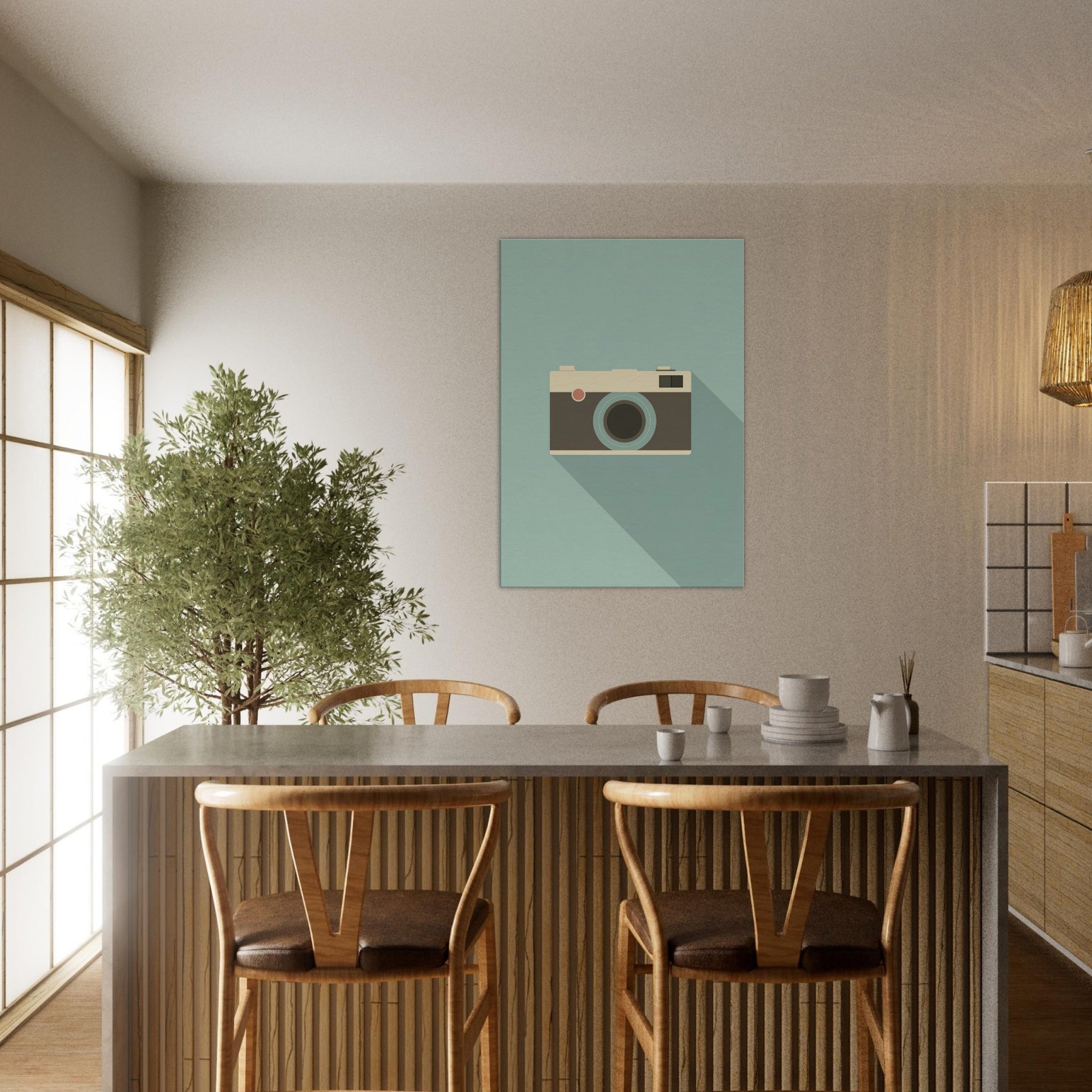 A slender, minimalist depiction of an analog camera rests on a calming, muted field. The clean lines and soft palette invite a quiet, studio like atmosphere into your living space, where the familiar form becomes a subtle focal point. The analog camera feels timeless, echoing afternoons of creativity and memory, its presence grounding a room with warmth and sophistication. Perfect above a sofa or near a reading nook, it pairs with natural textures and soft lighting to evoke pared down elegance.