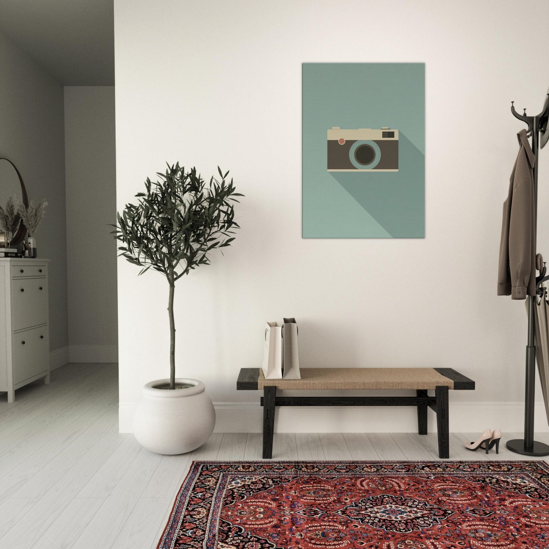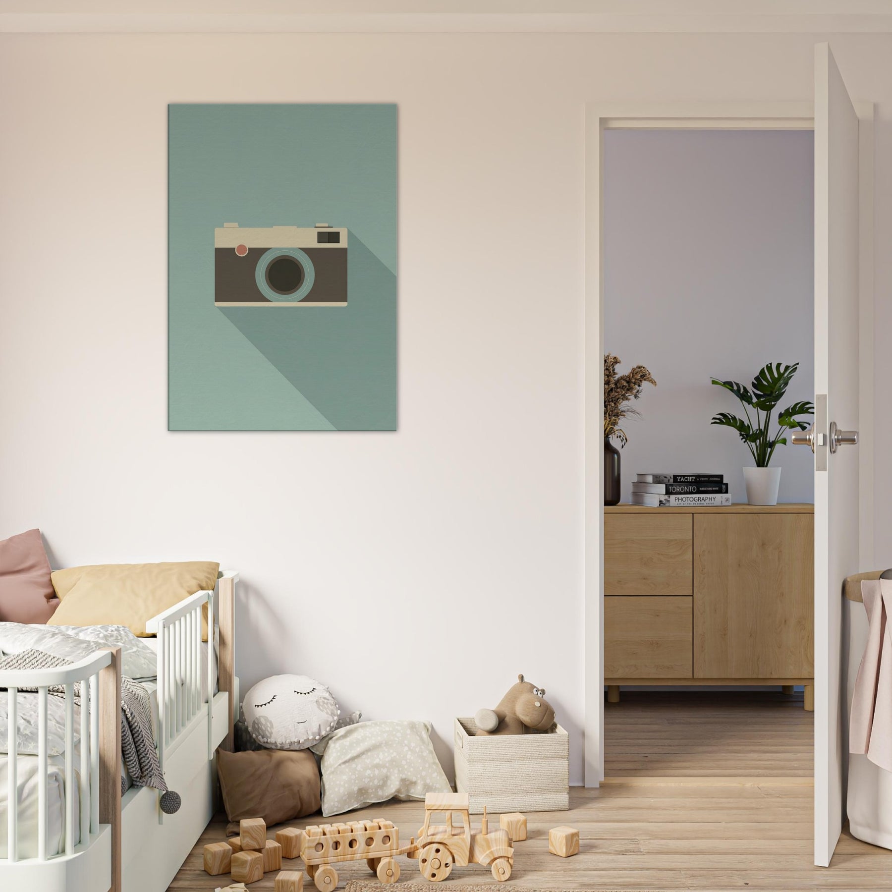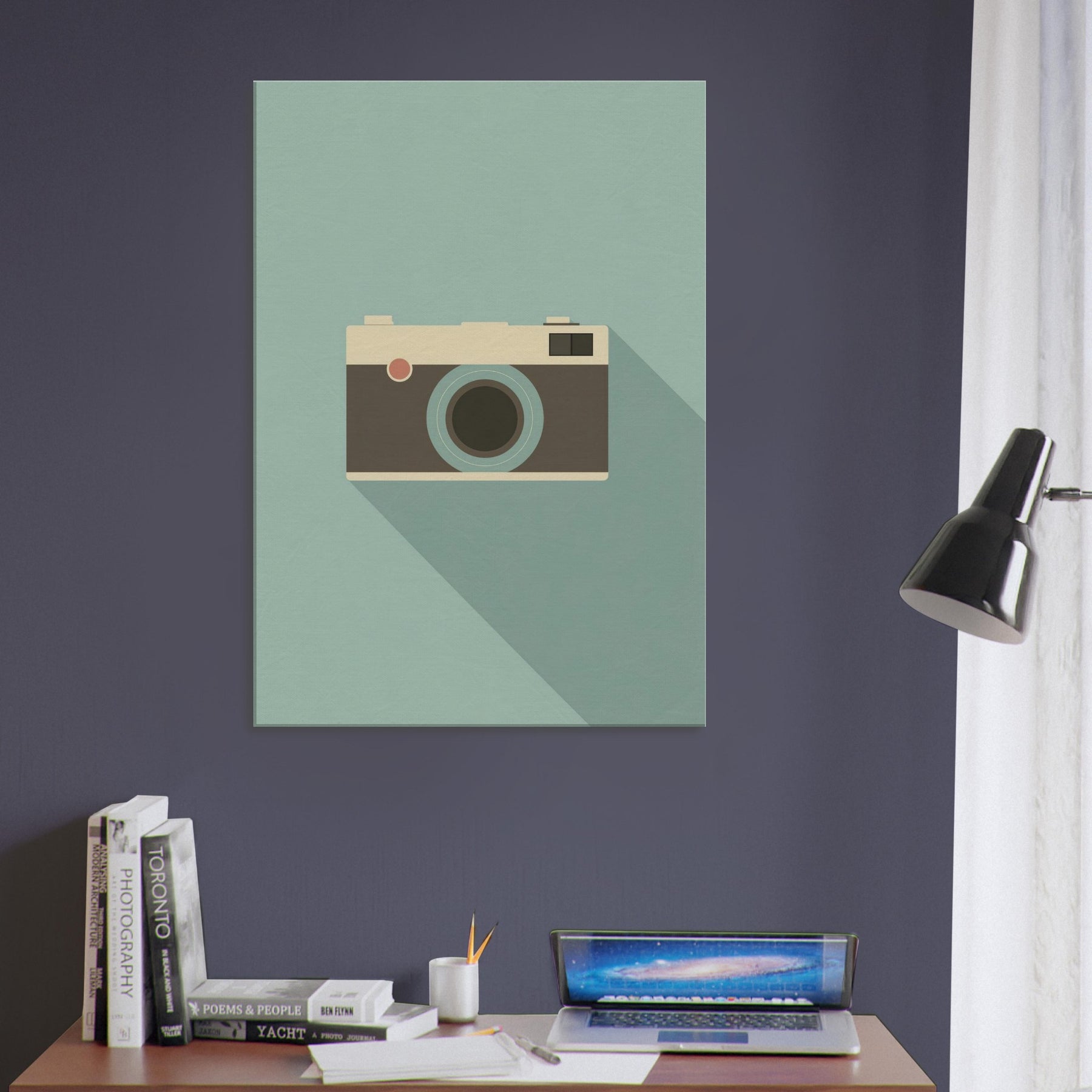 A slender, minimalist depiction of an analog camera rests on a calming, muted field. The clean lines and soft palette invite a quiet, studio like atmosphere into your living space, where the familiar form becomes a subtle focal point. The analog camera feels timeless, echoing afternoons of creativity and memory, its presence grounding a room with warmth and sophistication. Perfect above a sofa or near a reading nook, it pairs with natural textures and soft lighting to evoke pared down elegance.