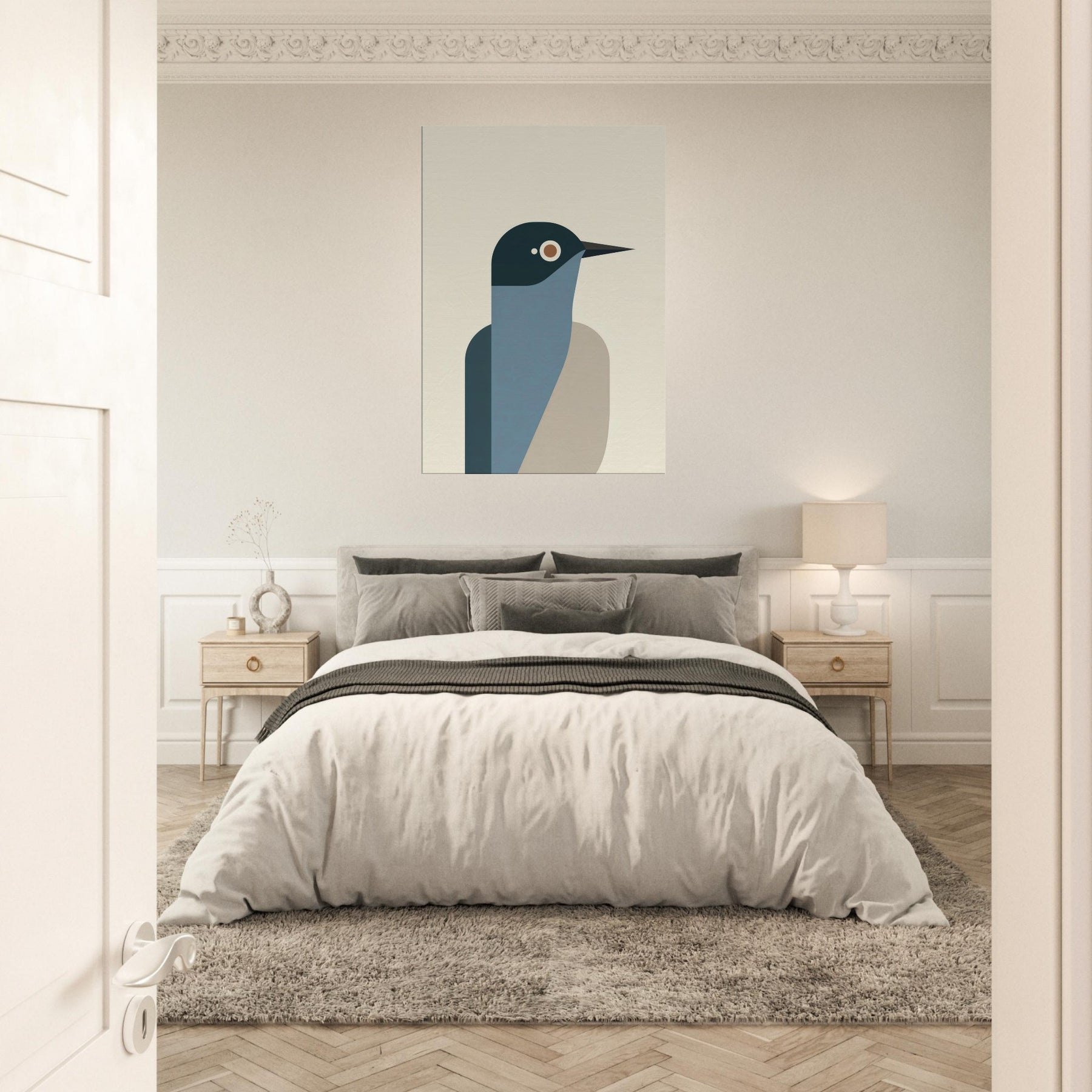 Let this minimalist hummingbird settle into your room as if a quiet thought made tangible. The clean geometry, paired with muted blues and sand tones, traces a moment of flight in soft, unfussy lines. It invites stillness, a gentle focus that enhances a living space without shouting. Whether hung above a sofa, in a hallway, or near a reading nook, the hummingbird becomes a serene companion an airy reminder of grace and intention in everyday life.