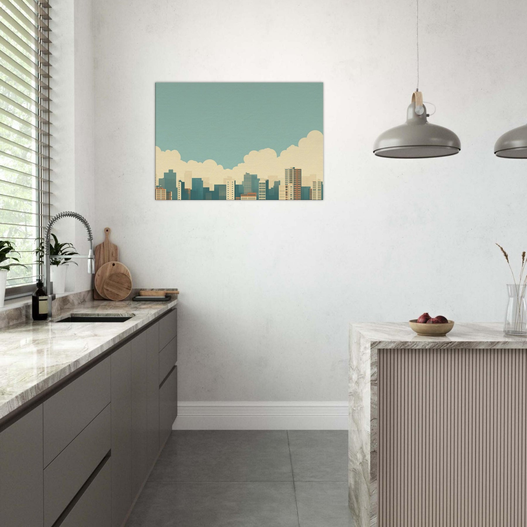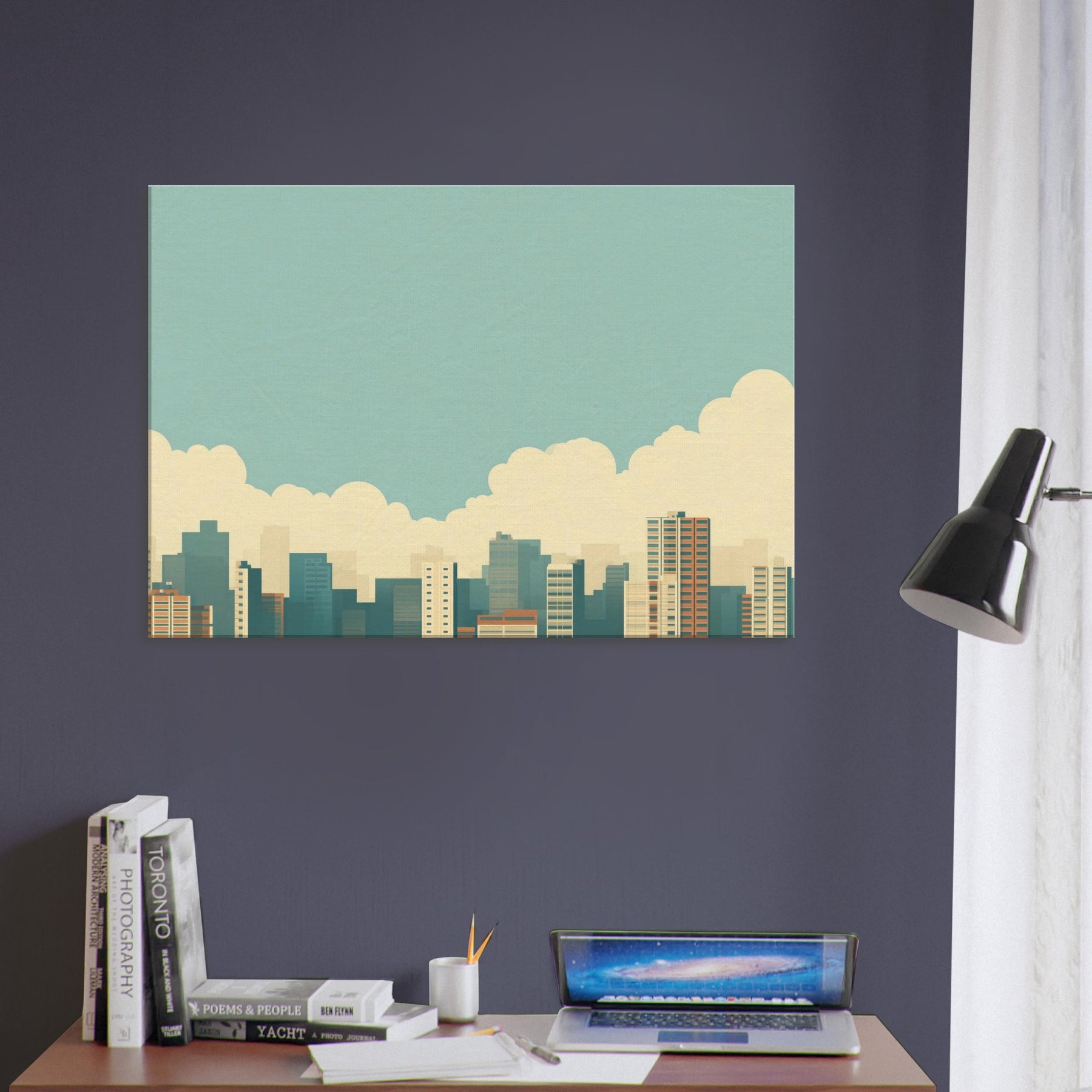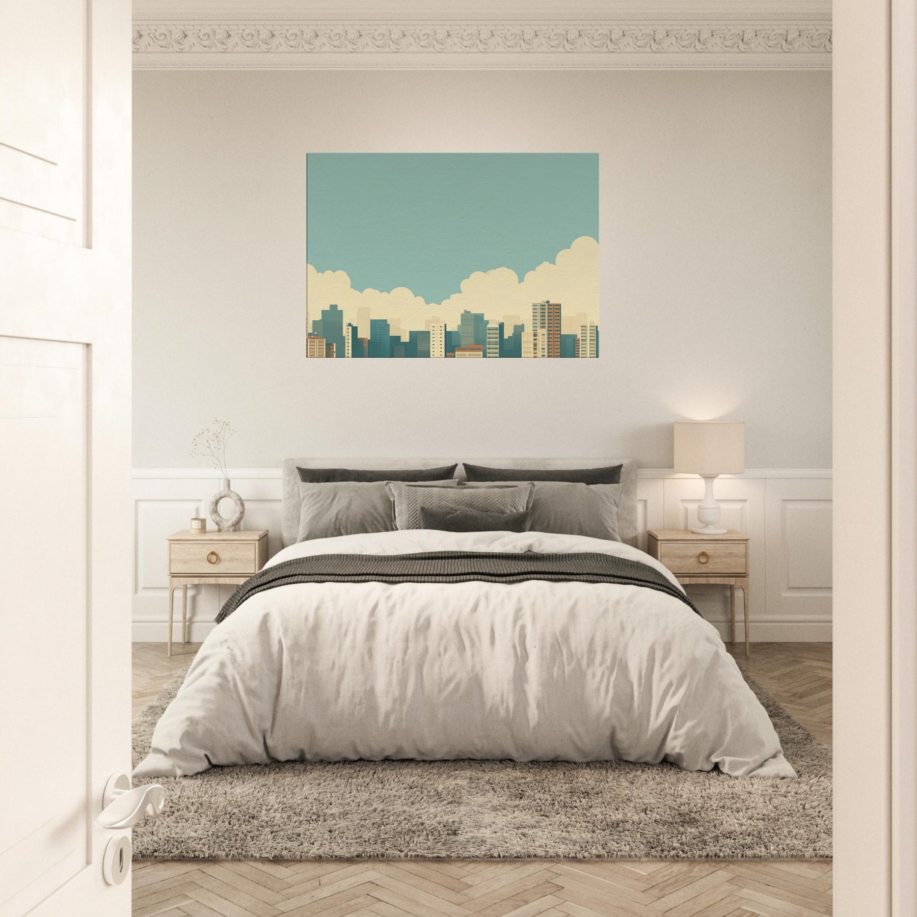 City Skyline Silhouette opens a corridor of calm in any living space. The minimalist horizon gathers urban energy into a single, quiet line, soft blues, warm sand tones, and pale, distant towers that recede like memory. Hang it above a sofa or in an entryway to invite a slow, reflective mood; the artwork reflects dawn light and the promise of evening possibilities, turning a busy city into a serene backdrop for conversation, focus, and everyday moments.