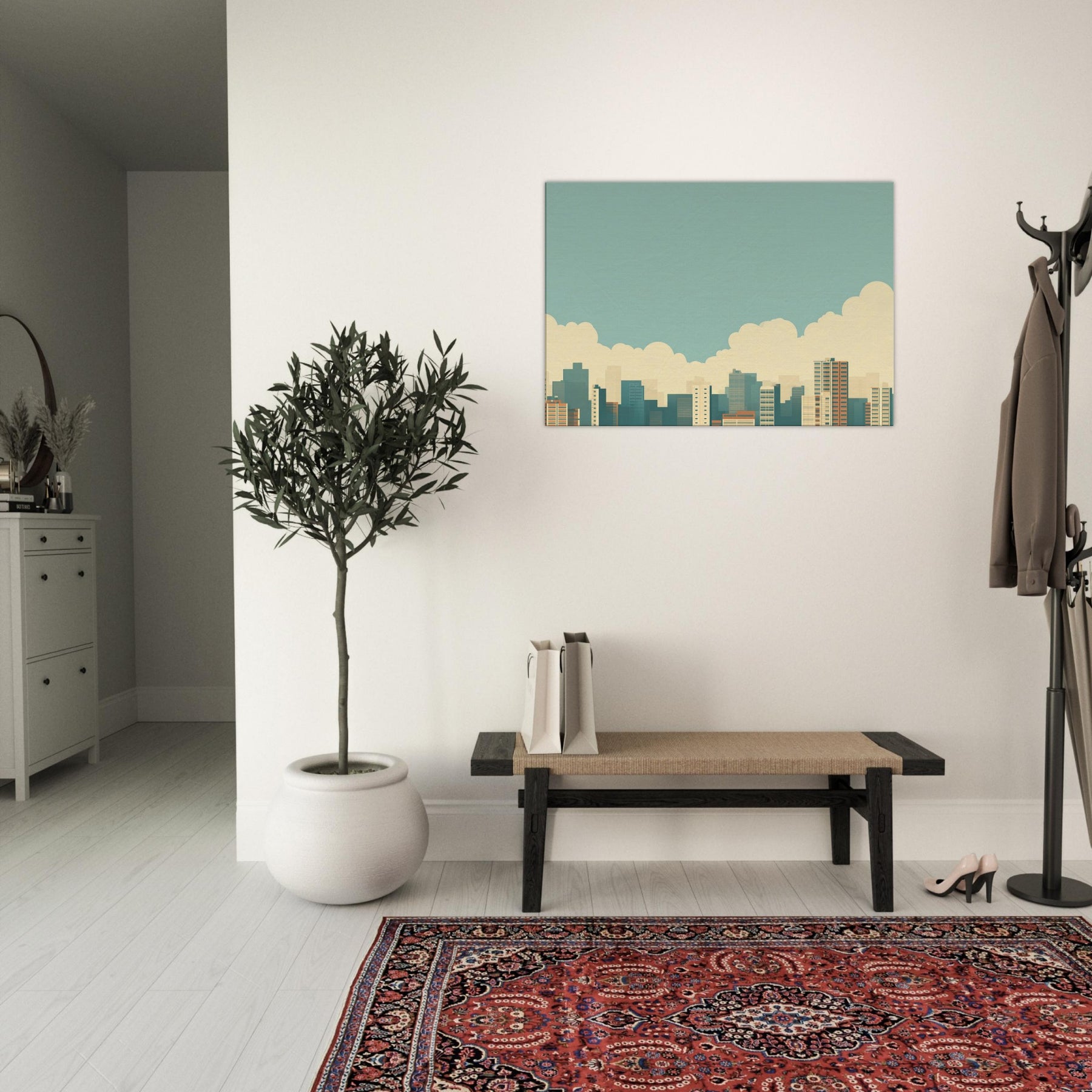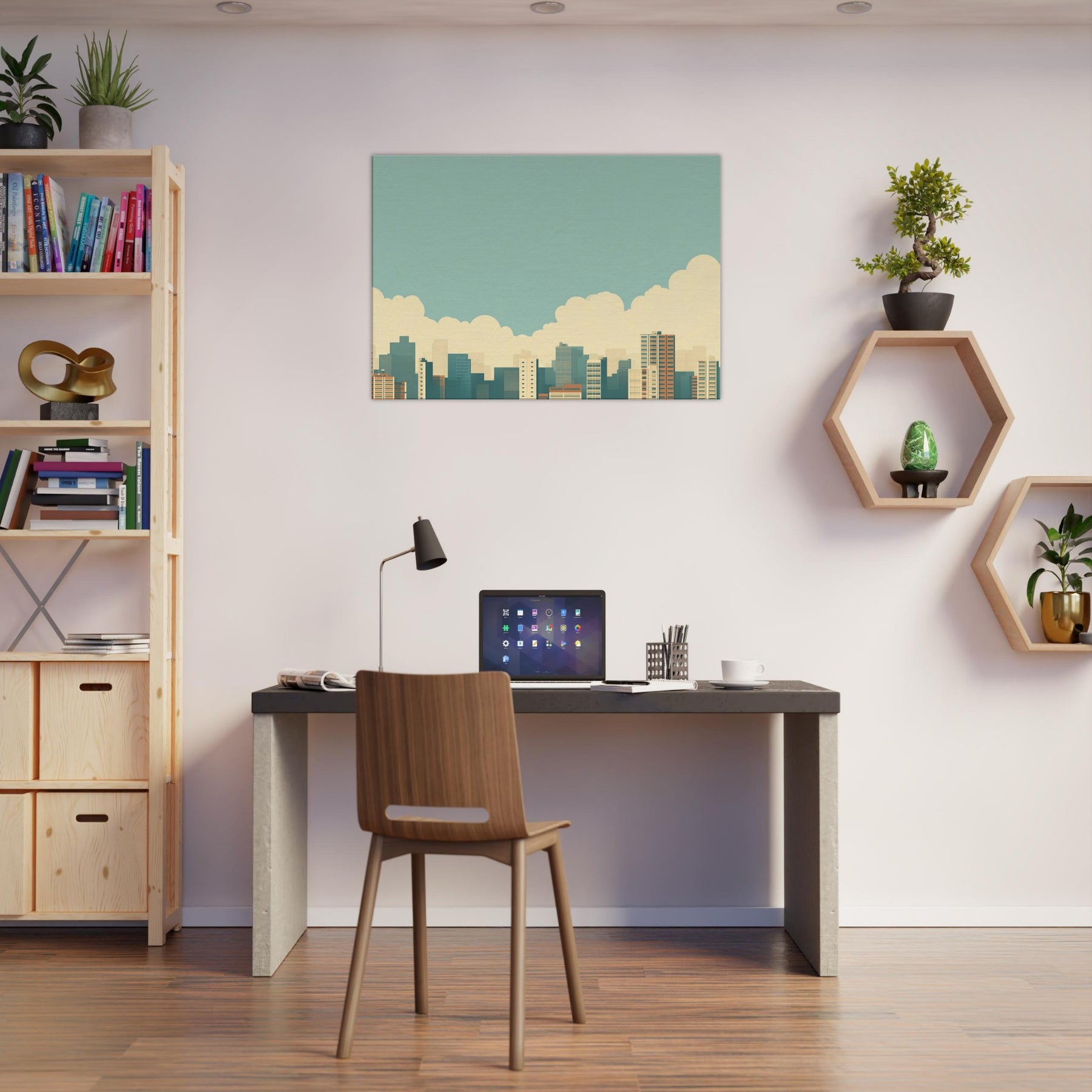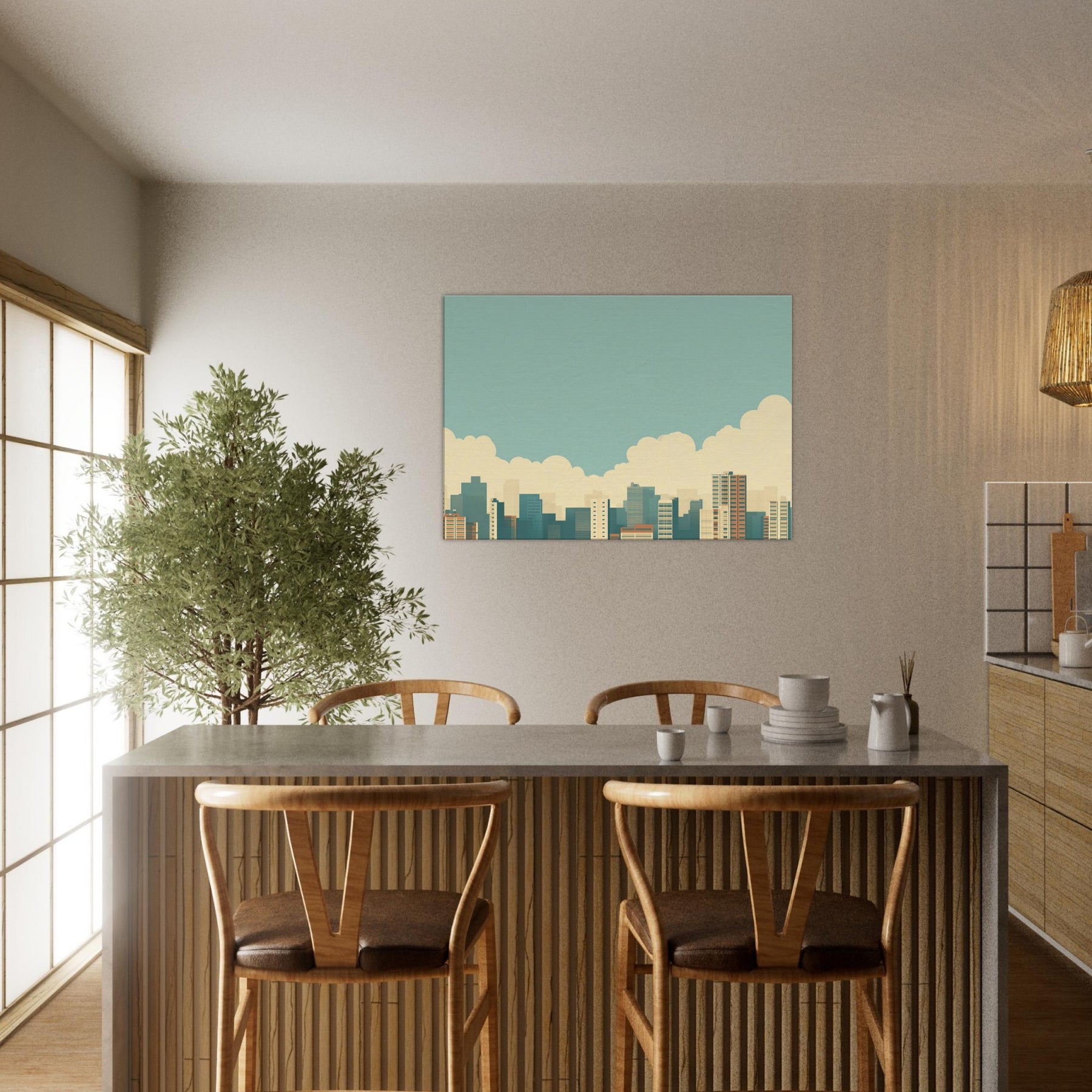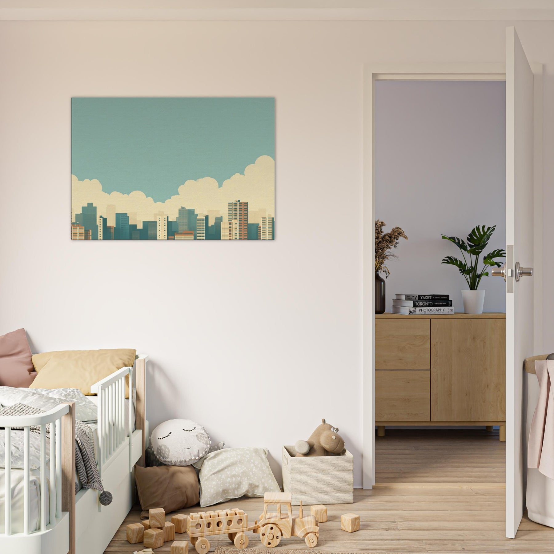 City Skyline Silhouette opens a corridor of calm in any living space. The minimalist horizon gathers urban energy into a single, quiet line, soft blues, warm sand tones, and pale, distant towers that recede like memory. Hang it above a sofa or in an entryway to invite a slow, reflective mood; the artwork reflects dawn light and the promise of evening possibilities, turning a busy city into a serene backdrop for conversation, focus, and everyday moments.