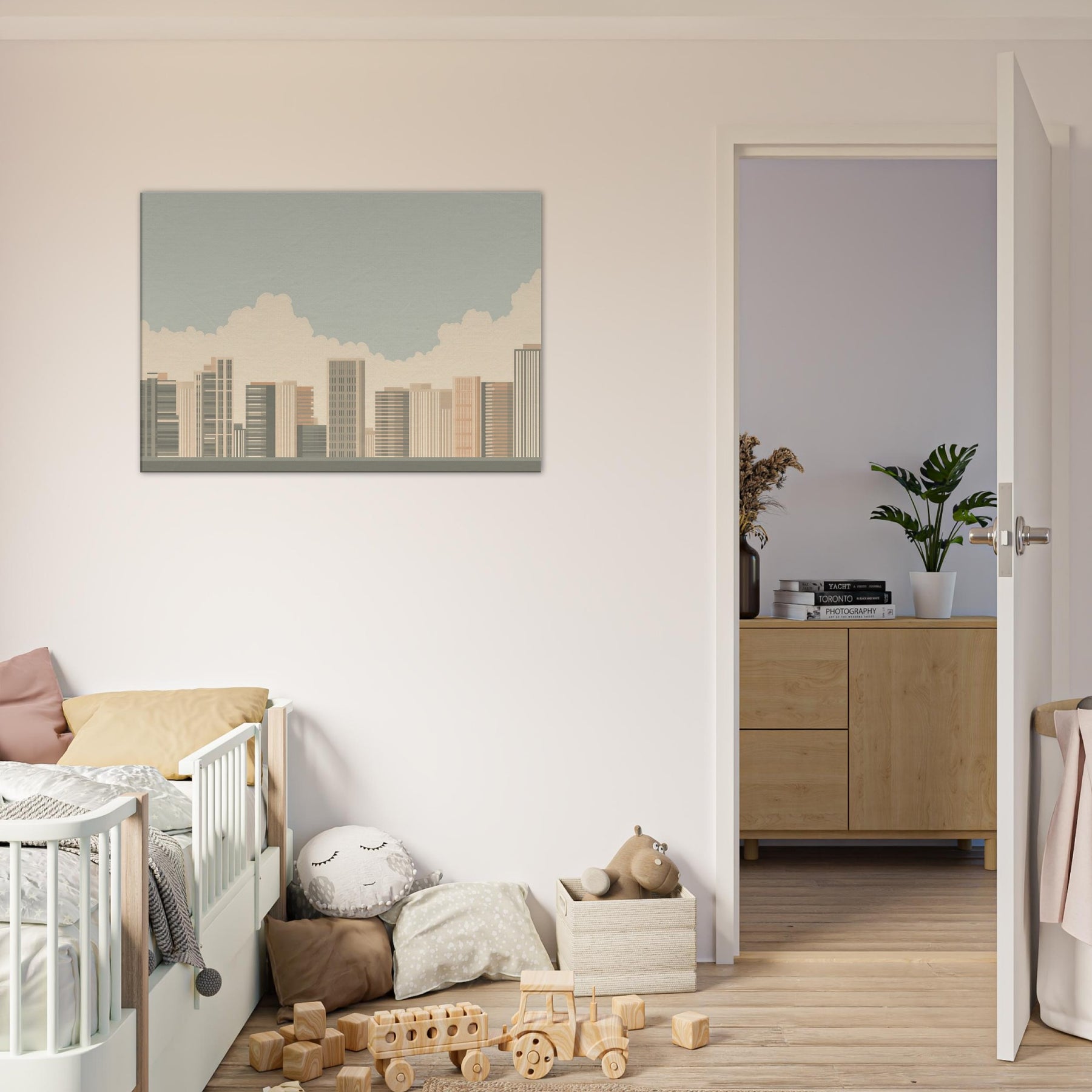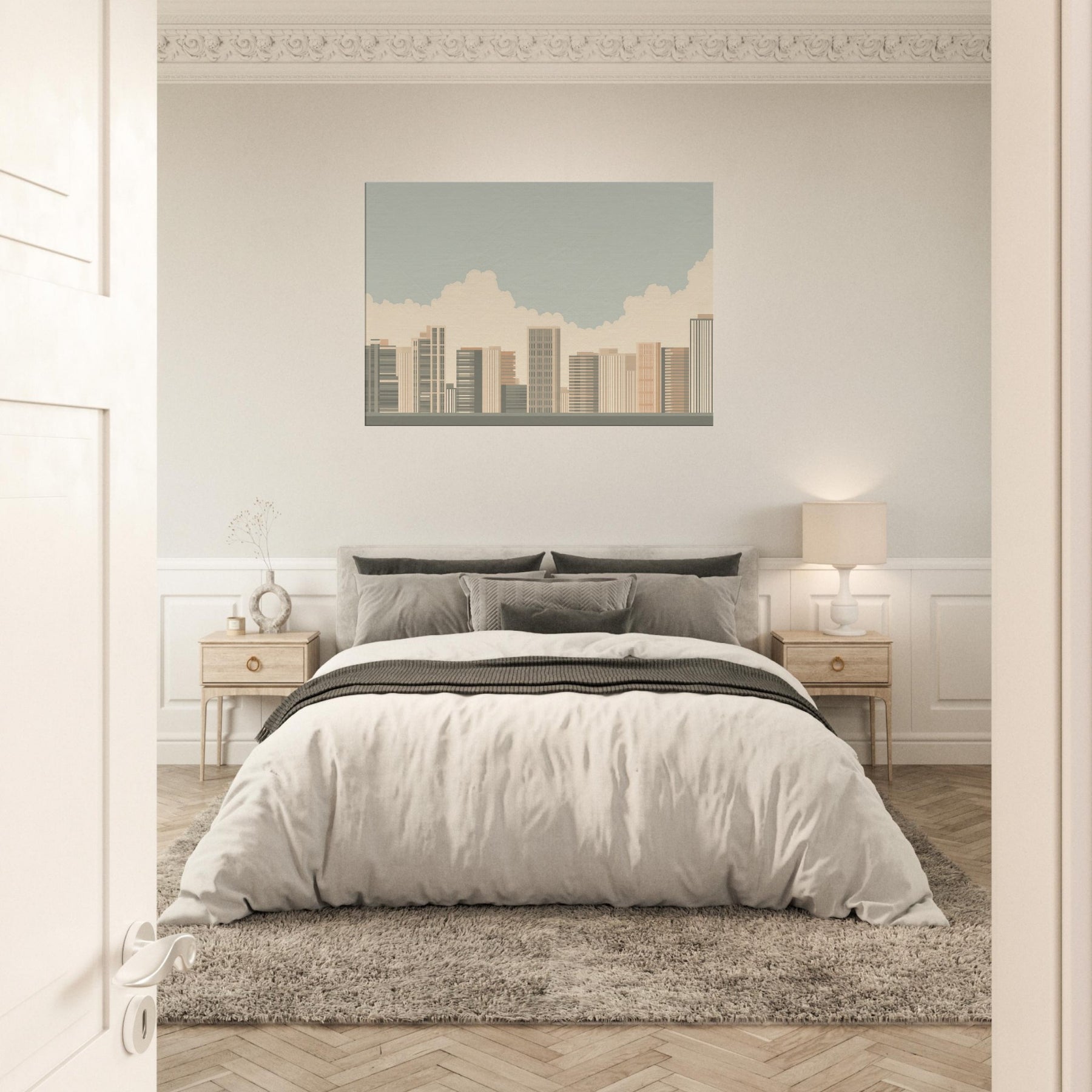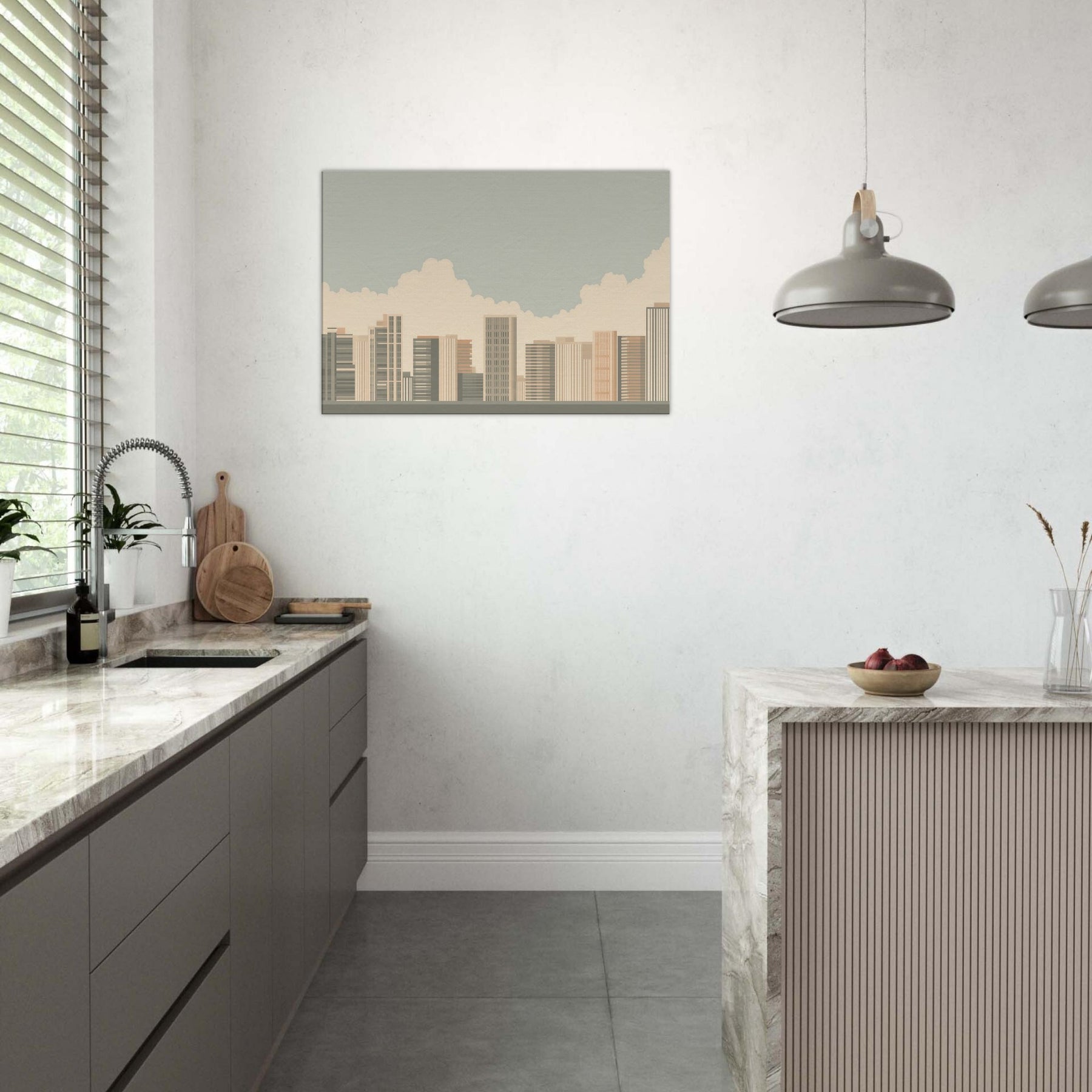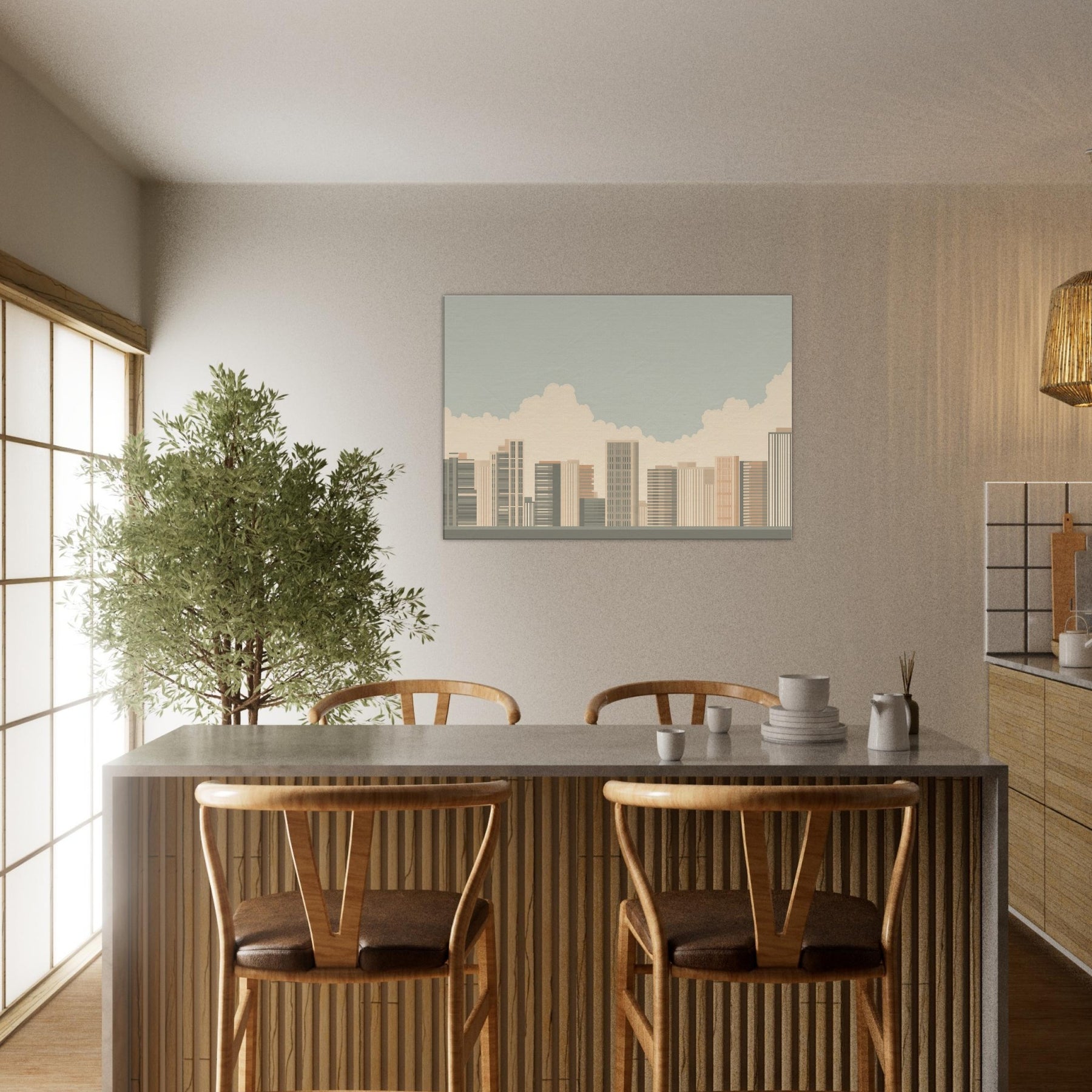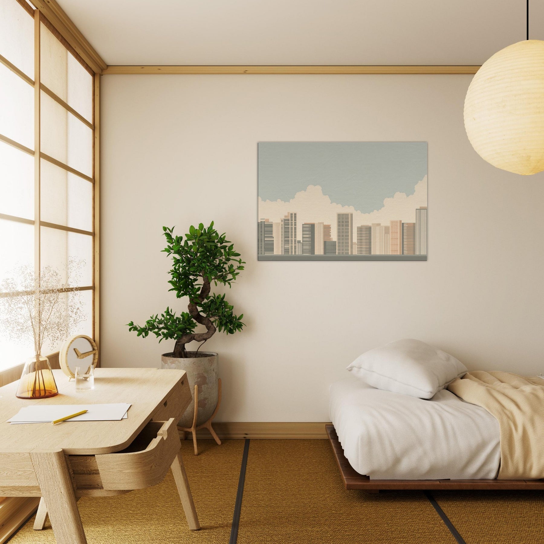Rio De Janeiro unfolds in a quiet, architectural breath: a minimalist skyline softened by warm sands and pale blues. This piece invites the room to slow, to notice the rhythm of towers and cloud filtered light as if seen from a tranquil balcony. The atmosphere is calm and uplifting, a subtle drama that enhances living spaces with clarity and grace. Hang it where morning sun meets coffee steam, and let the quiet energy of a coastal metropolis brighten everyday moments.