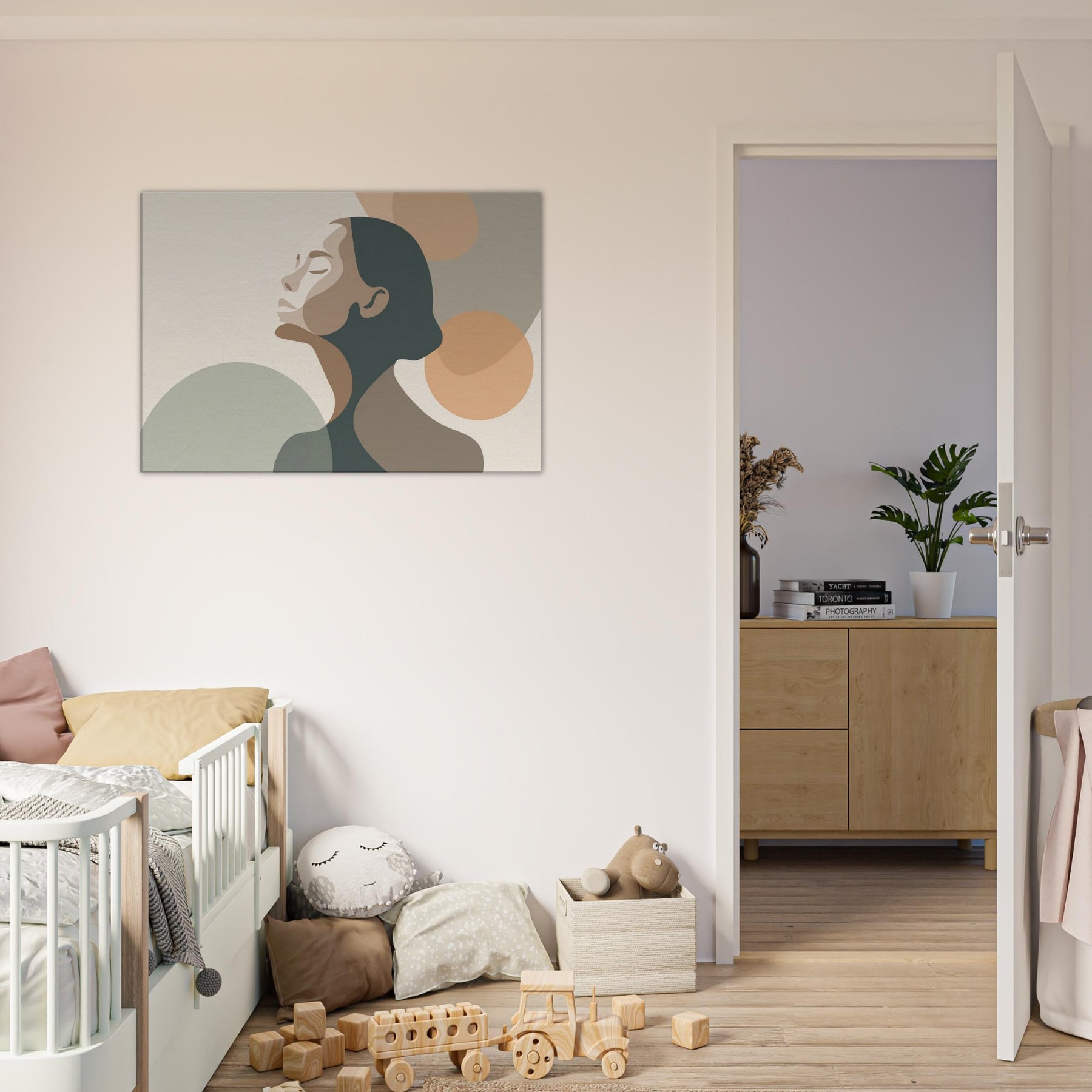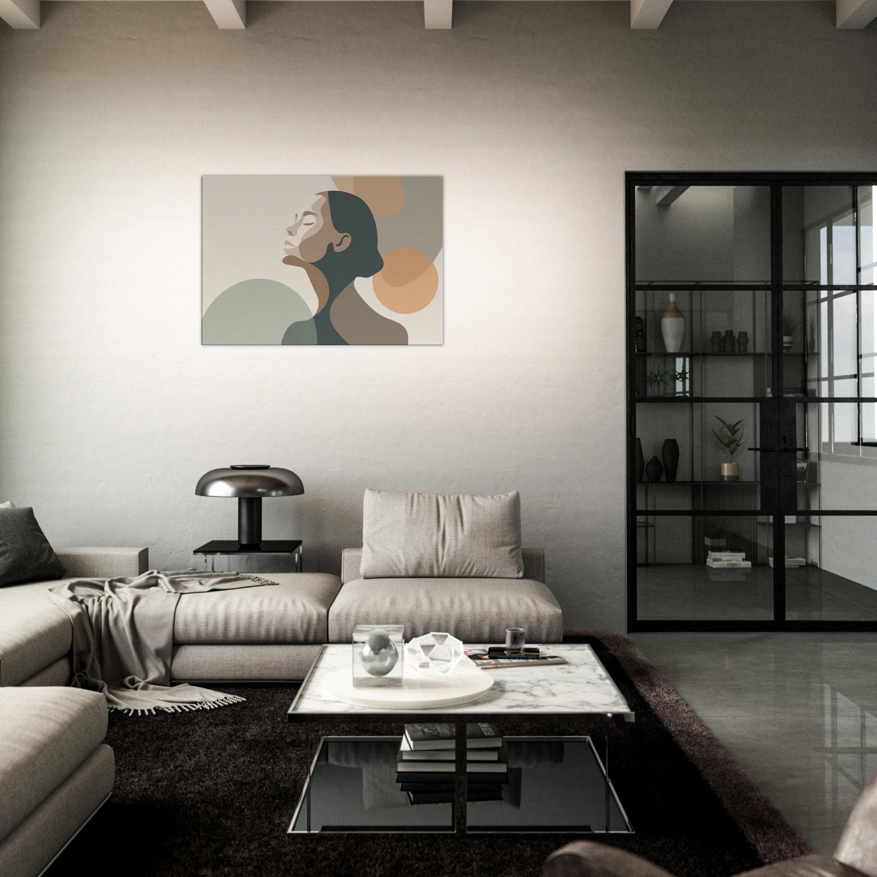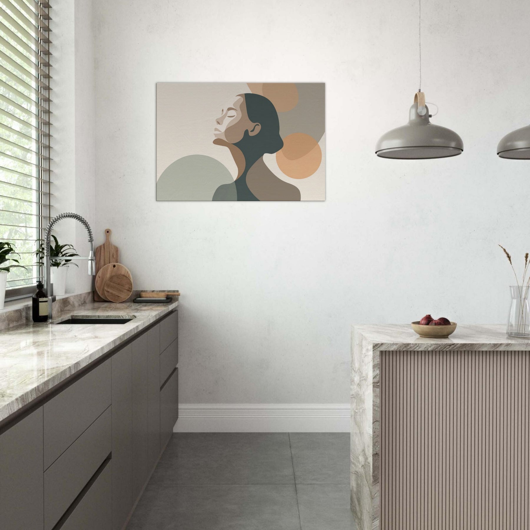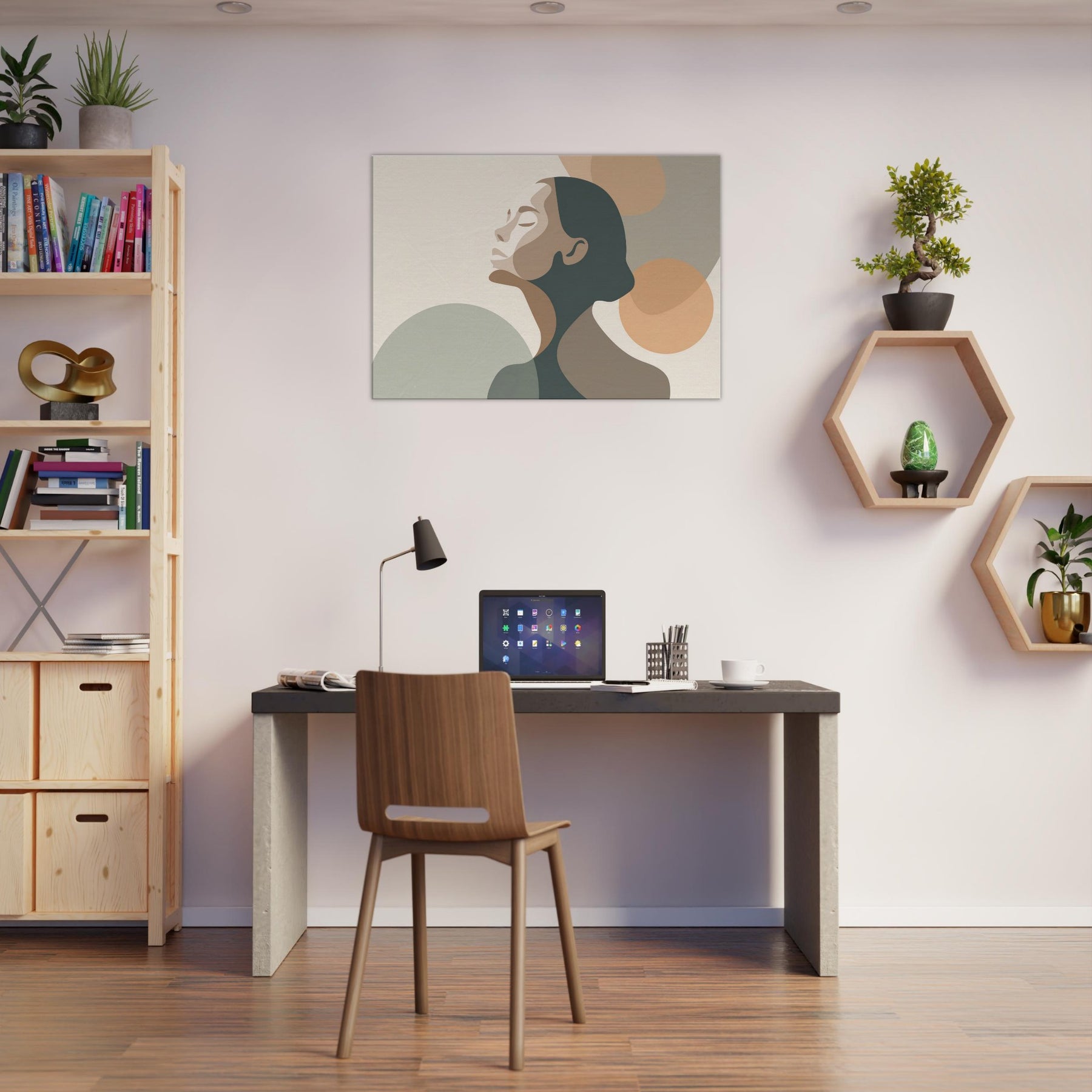 This minimalist study centers the Ballerina Silhouette in a hush of warm neutrals. The soft, interlocking shapes echo breath and balance, inviting the eye to glide along the curve of the neck and the arch of the back. The palette creams, taupes, and muted greens breathes calm into any living space, enhancing a living room, studio, or bedroom with quiet elegance. A sense of movement lingers, turning walls into a stage for everyday grace.
