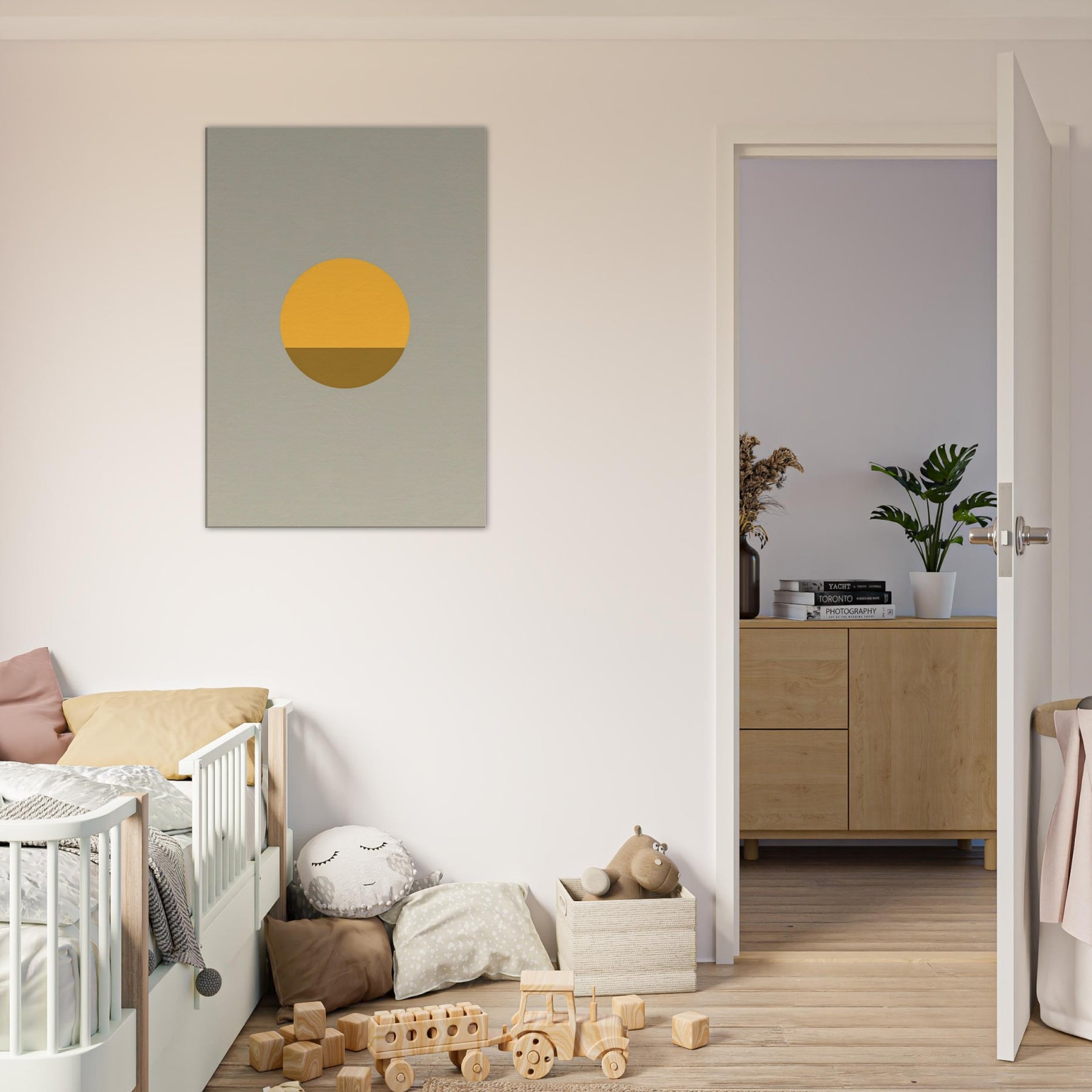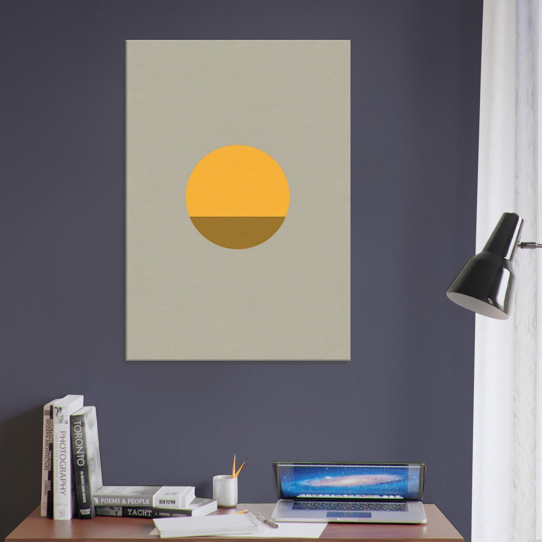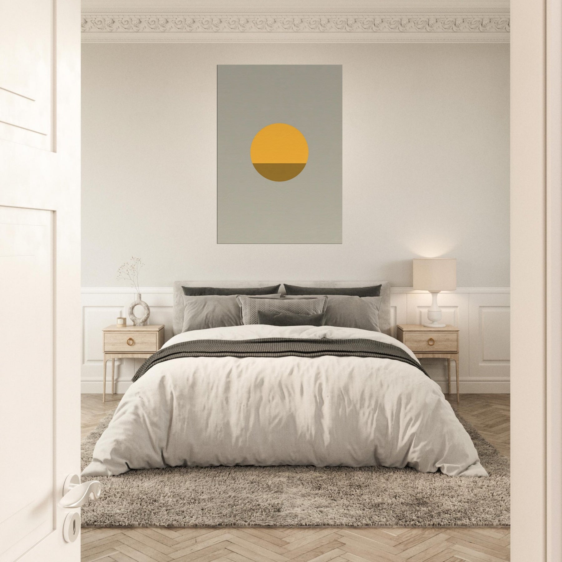 Let the Sun illuminate your space with a whisper of light. This minimalist composition folds the day into a simple circle, where the sun rises above a warm, grounded horizon. The soft taupe backdrop bathes the room in calm, while the sun's generous glow invites quiet contemplation. Perfect above a sofa or in a bedroom nook, its serene presence adds a mystic energy an everyday reminder of cycles, balance, and unwinding evenings.