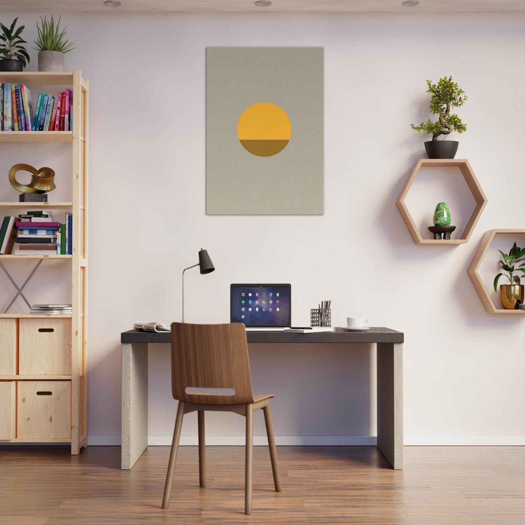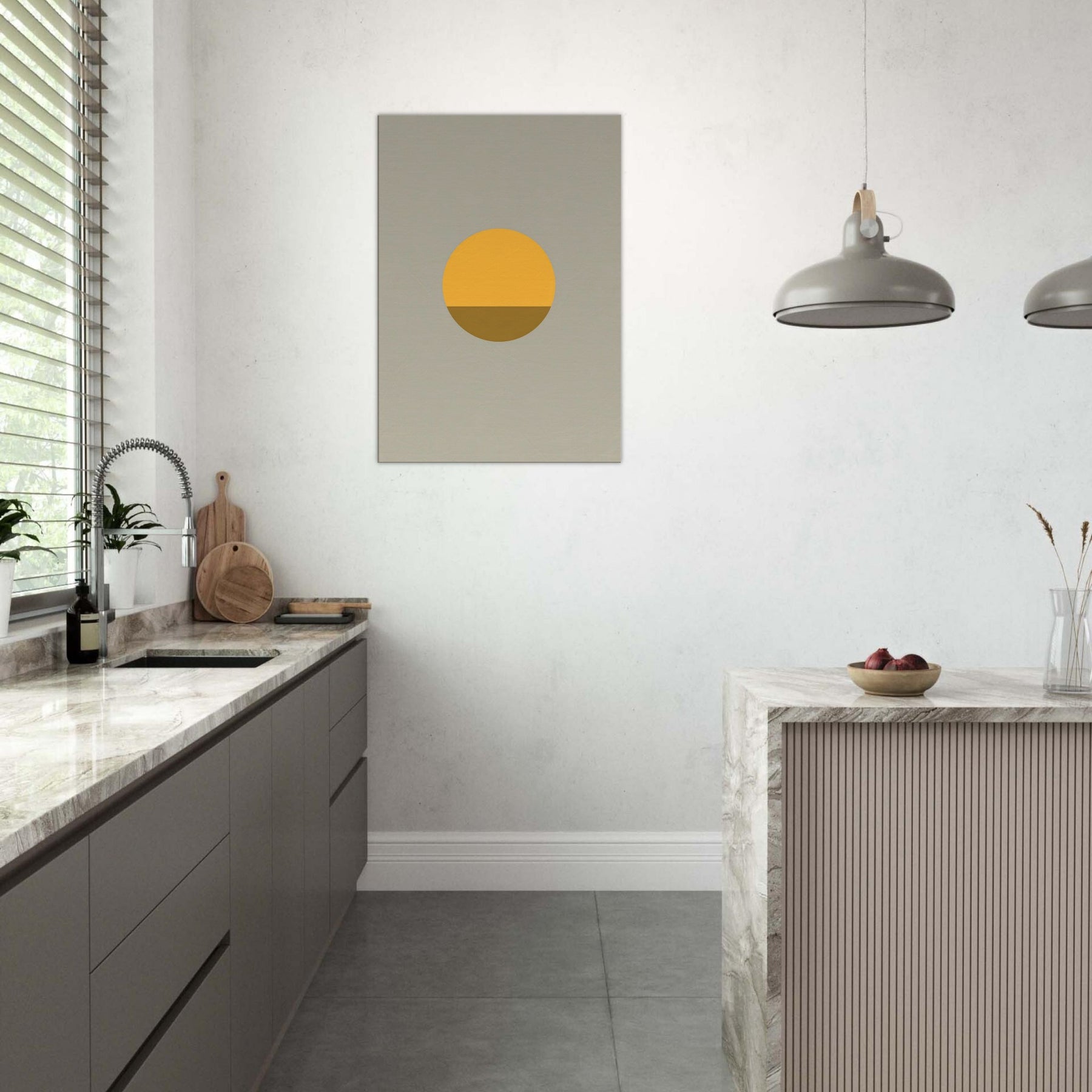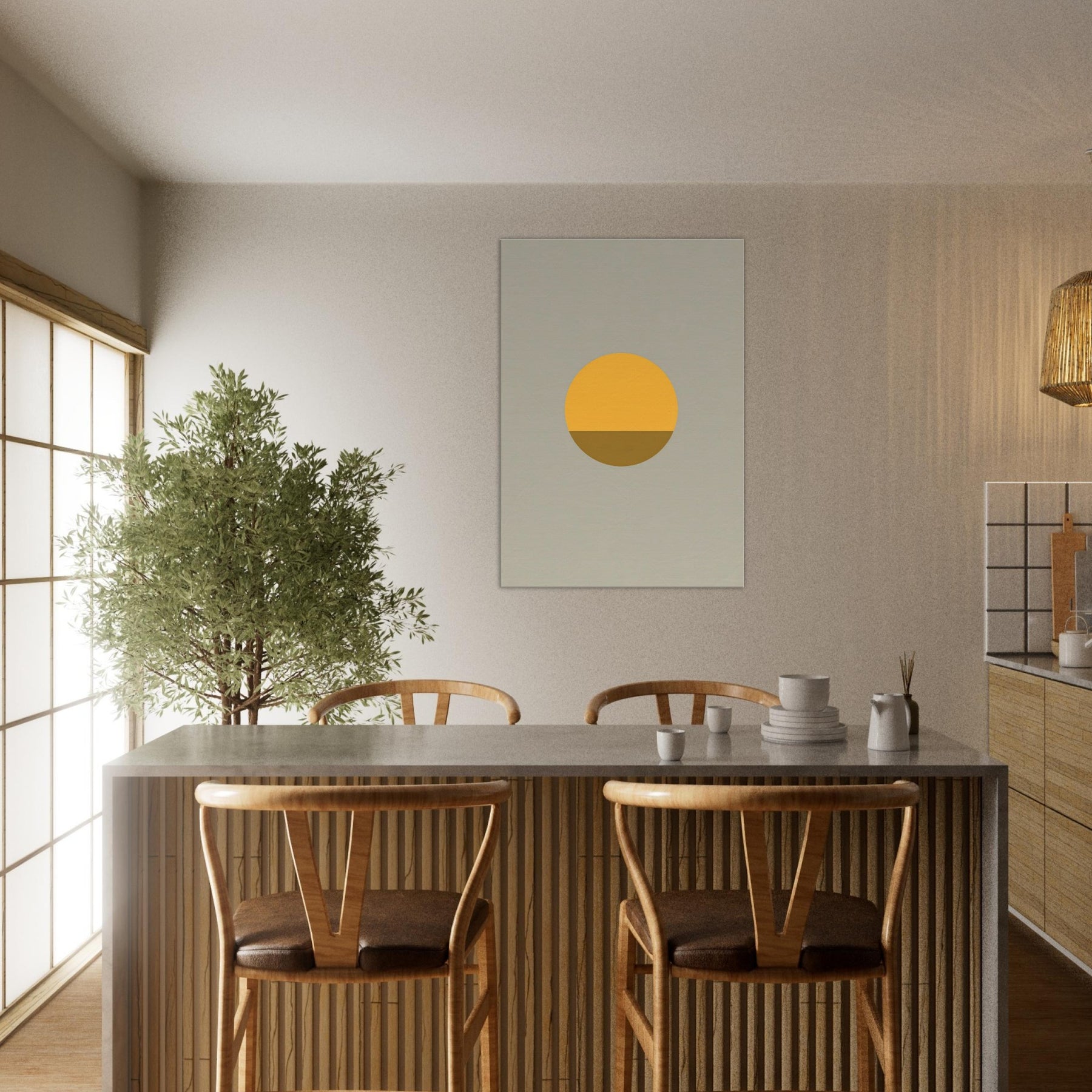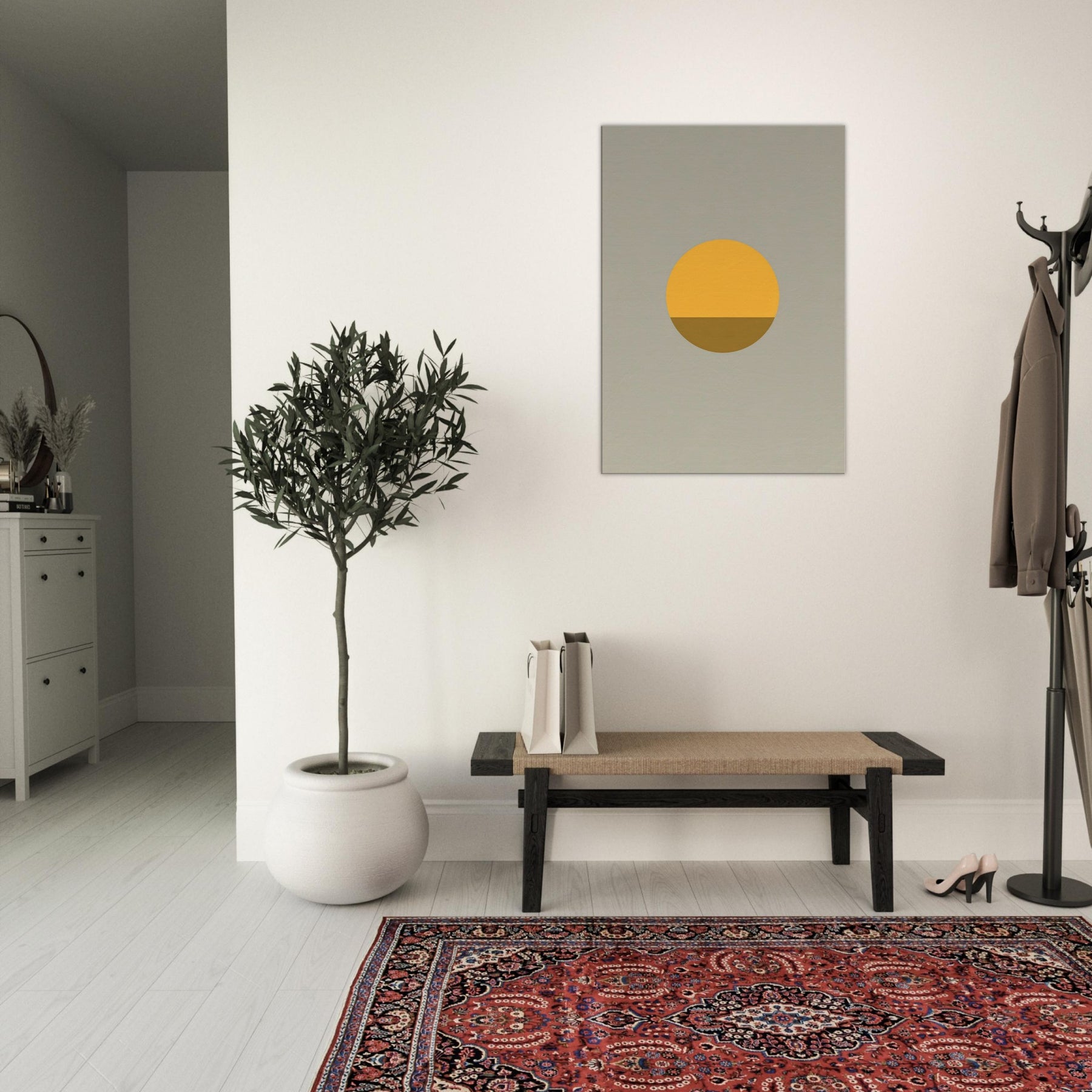 Let the Sun illuminate your space with a whisper of light. This minimalist composition folds the day into a simple circle, where the sun rises above a warm, grounded horizon. The soft taupe backdrop bathes the room in calm, while the sun's generous glow invites quiet contemplation. Perfect above a sofa or in a bedroom nook, its serene presence adds a mystic energy an everyday reminder of cycles, balance, and unwinding evenings.