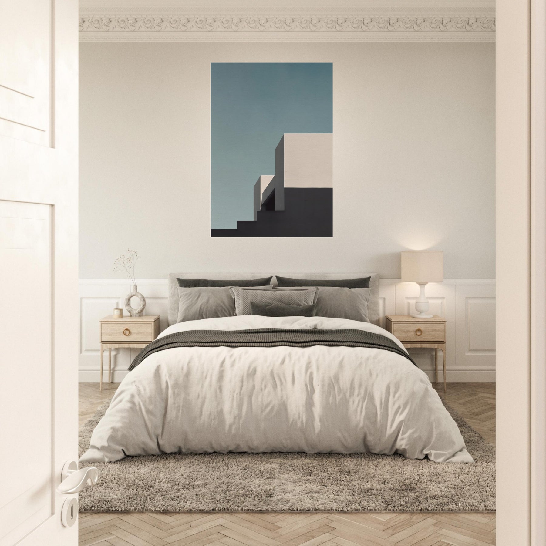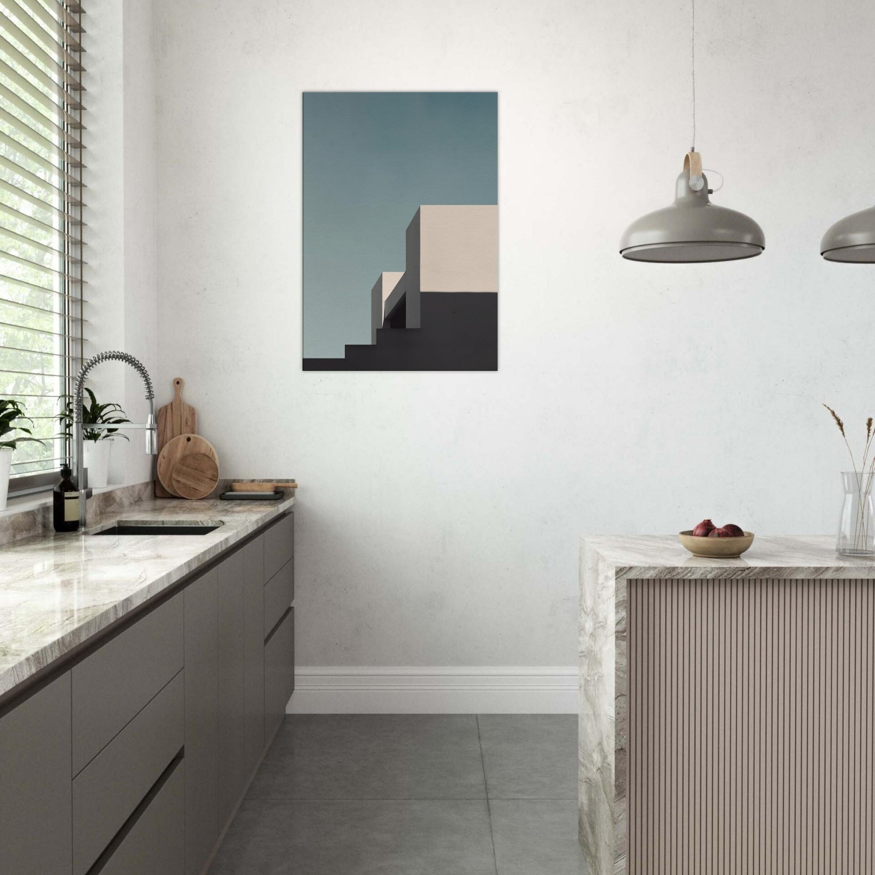 A quiet meditation on Los Angeles, this minimalist study distills the city's architectural poetry into clean, resolute blocks and soft shadows. The composition reads like a sunlit stairway carved from plaster cool to the eye, warm to the memory of late afternoon light. In a living room or hallway, it becomes a calm horizon that refracts daylight, balancing busy schedules with a moment of spacious ease. Perfect for spaces that crave structure, air, and quiet color.
