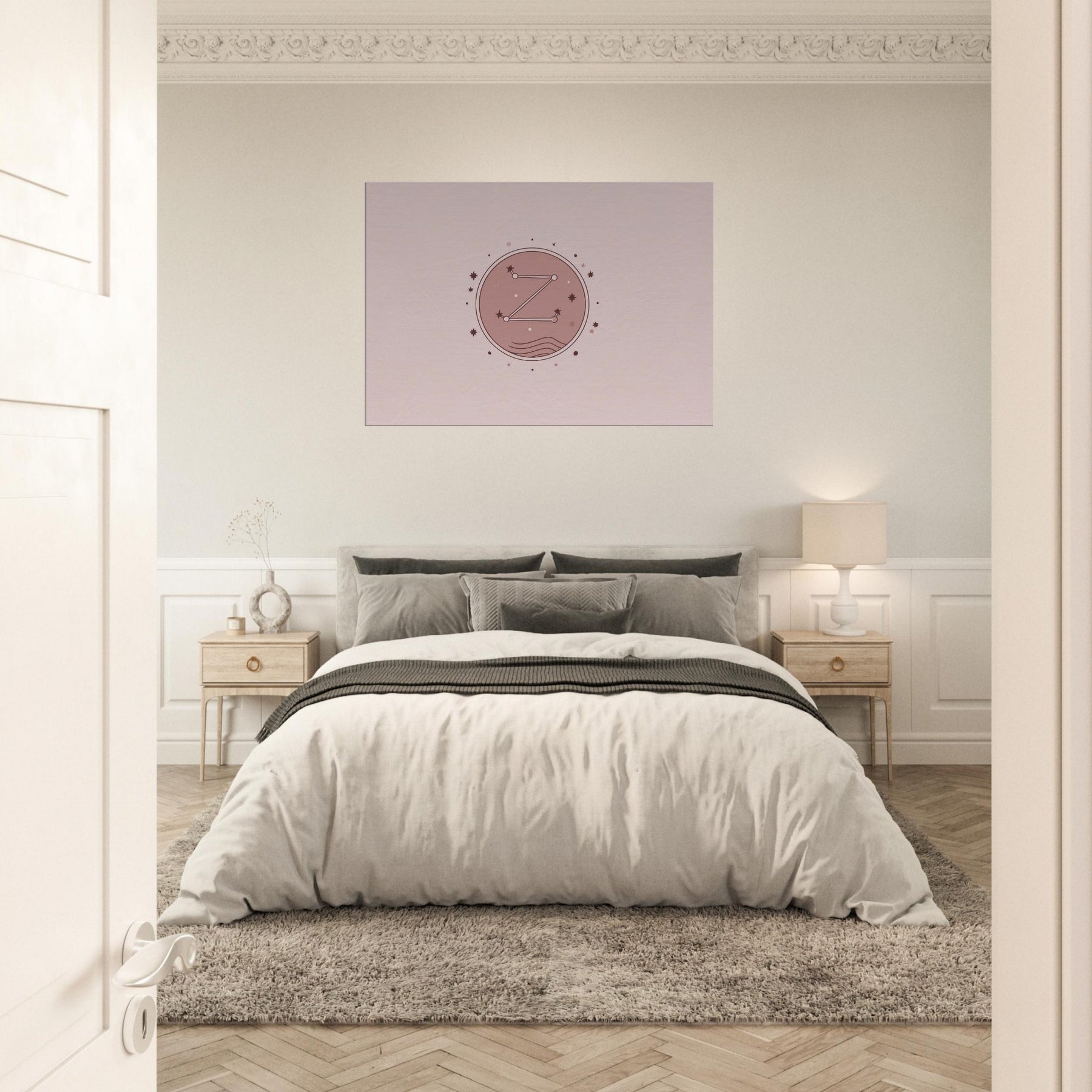 Immerse your space in a Zodiac Constellation rendered with a single, unbroken line. This minimalist circle feels like a quiet tide under a starry sky, where soft rose tones melt into the walls and a gentle rhythm guides the eye. The subtle arcs and points invite contemplation, turning any room into a sanctuary of focus and balance. Perfect above a sofa or bedside, it adds atmosphere, sophistication, and a mystic pulse that elevates everyday moments into something luminous. The central subject is Zodiac Constellation (Minimal Line).
