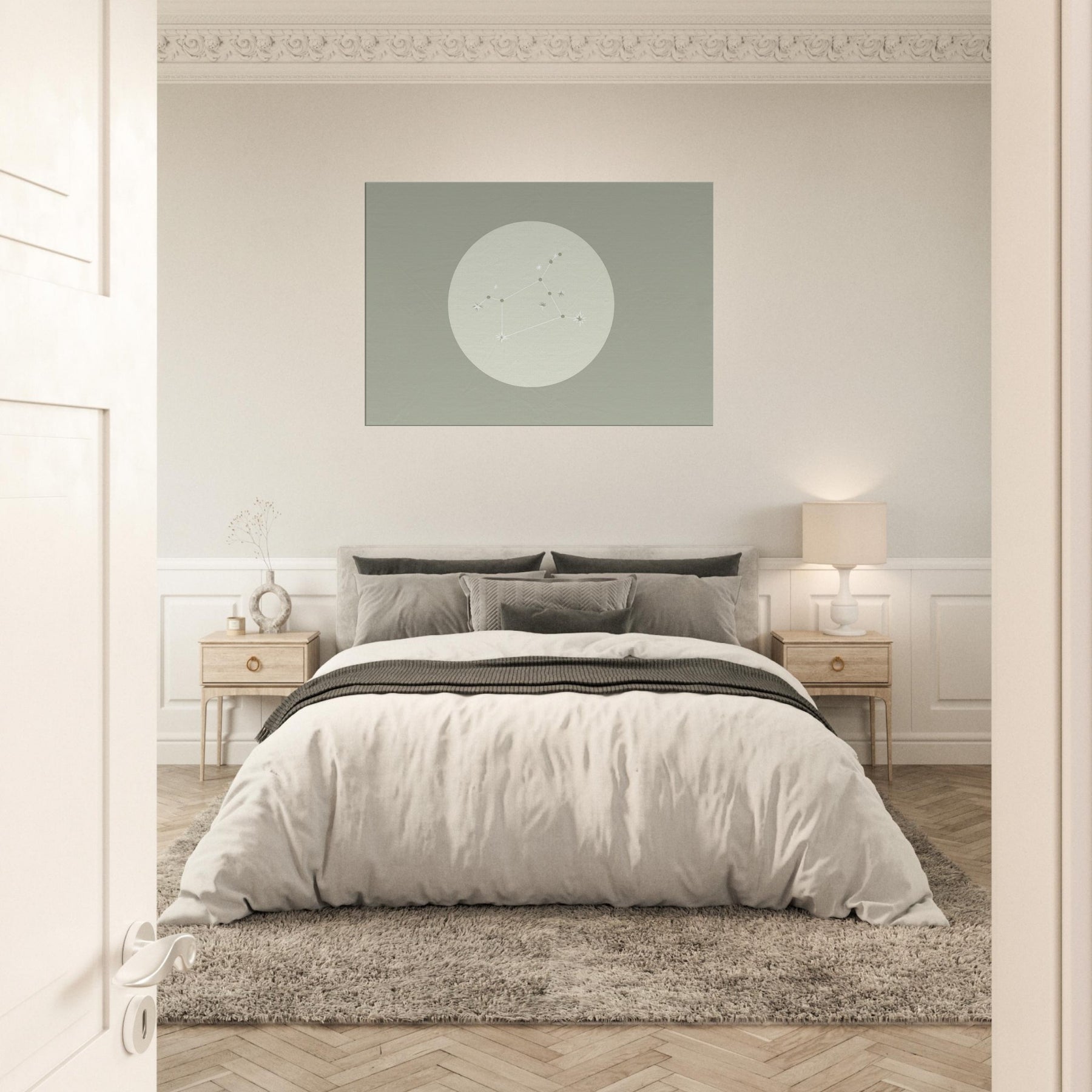 Let your walls glow with the quiet language of Constellations, a slender thread of light drawn in soft, luminous tones. This quiet, radiant composition invites calm and curiosity, turning a room into a night sky chamber where every line hints at distant stories. The gentle arc and subtle nodes create a whisper of connection, a space to breathe, reflect, and dream. Place it in a living room or study to infuse atmosphere, mystery, and a luminous focal point.