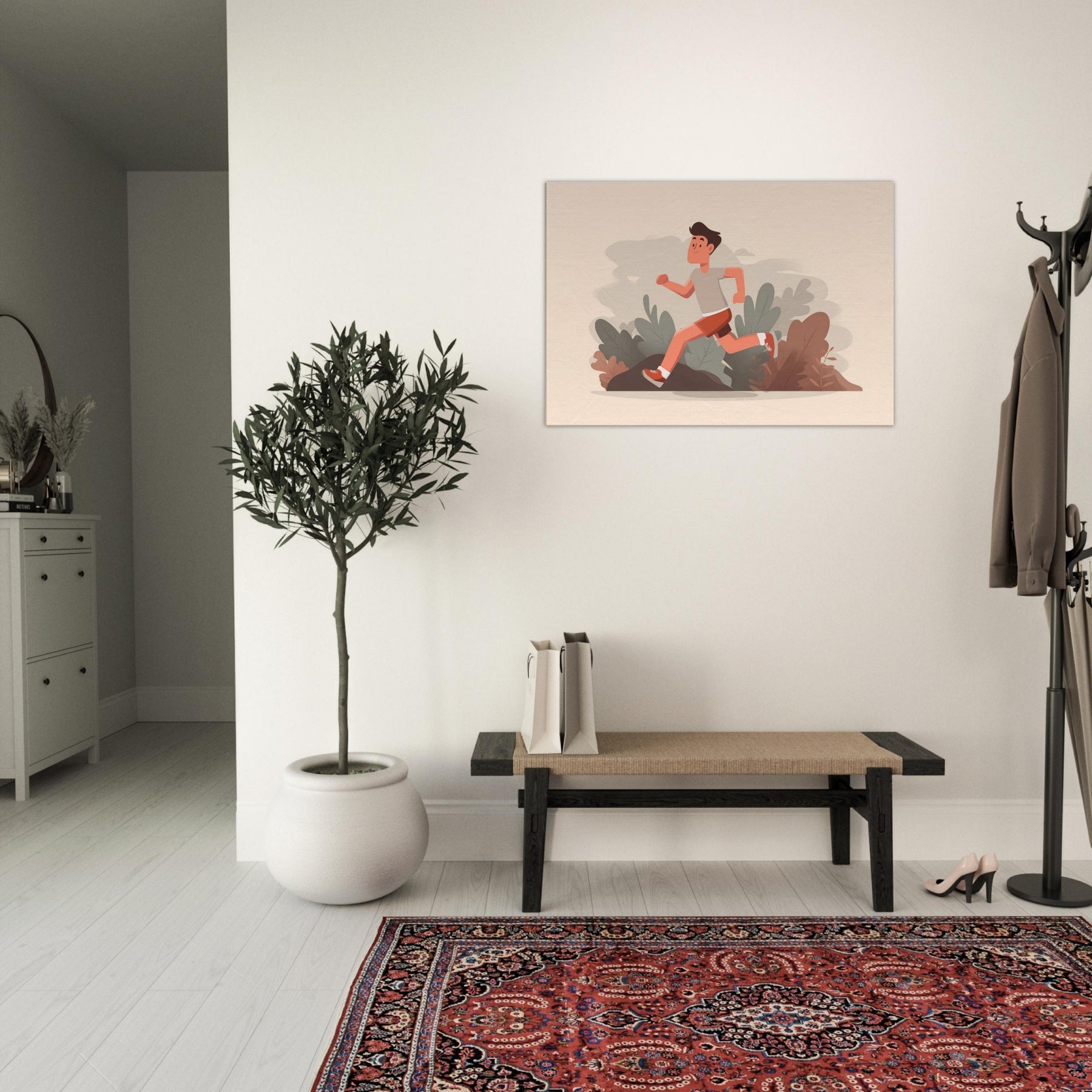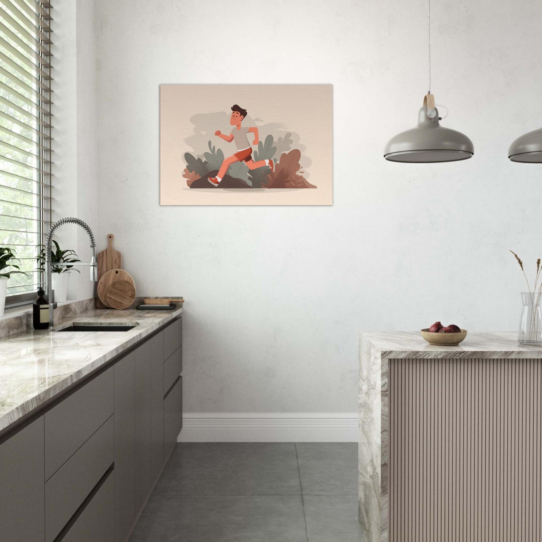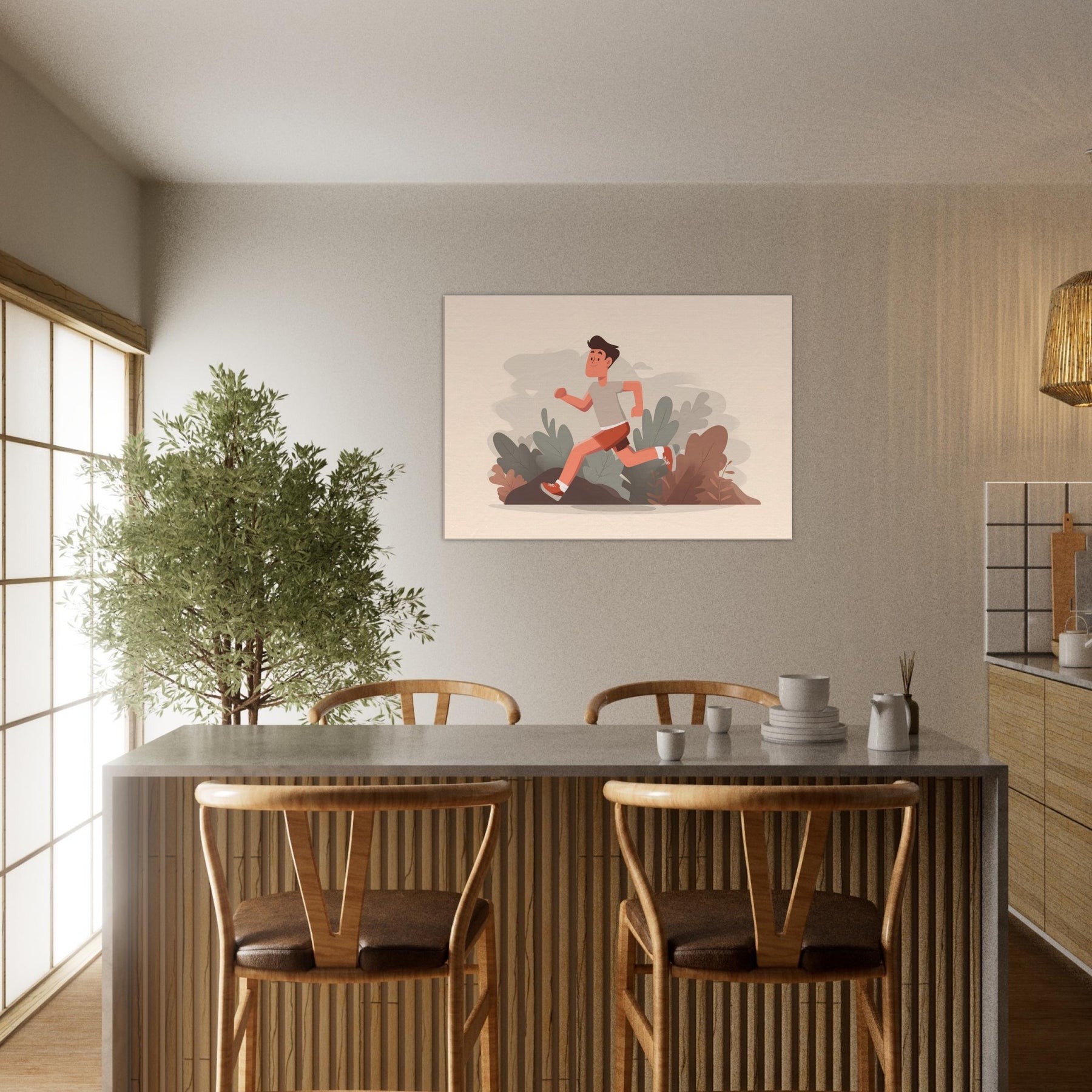 Embrace forward momentum with the Runner in Motion, a minimalist study of focus and breath. The soft, warm palette and clean shapes invite a quiet energy into any room, as if a morning run punctured the stillness of your living space. The scene moves over a gentle backdrop of muted foliage, suggesting motion without noise a calm catalyst for concentration, relaxation, or casual conversation. This artwork elevates walls with atmosphere, turning everyday spaces into a gallery of momentum, balance, and subtle, enduring grace.