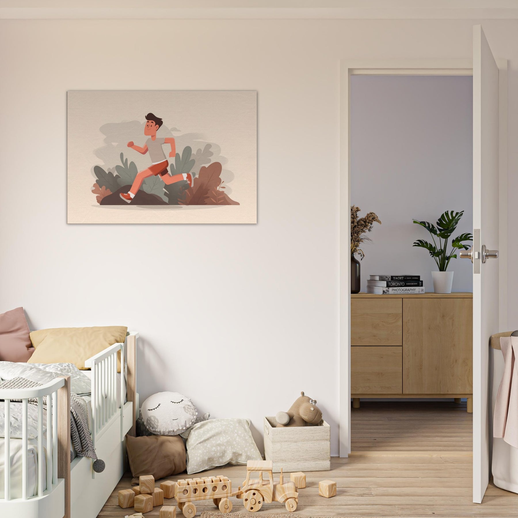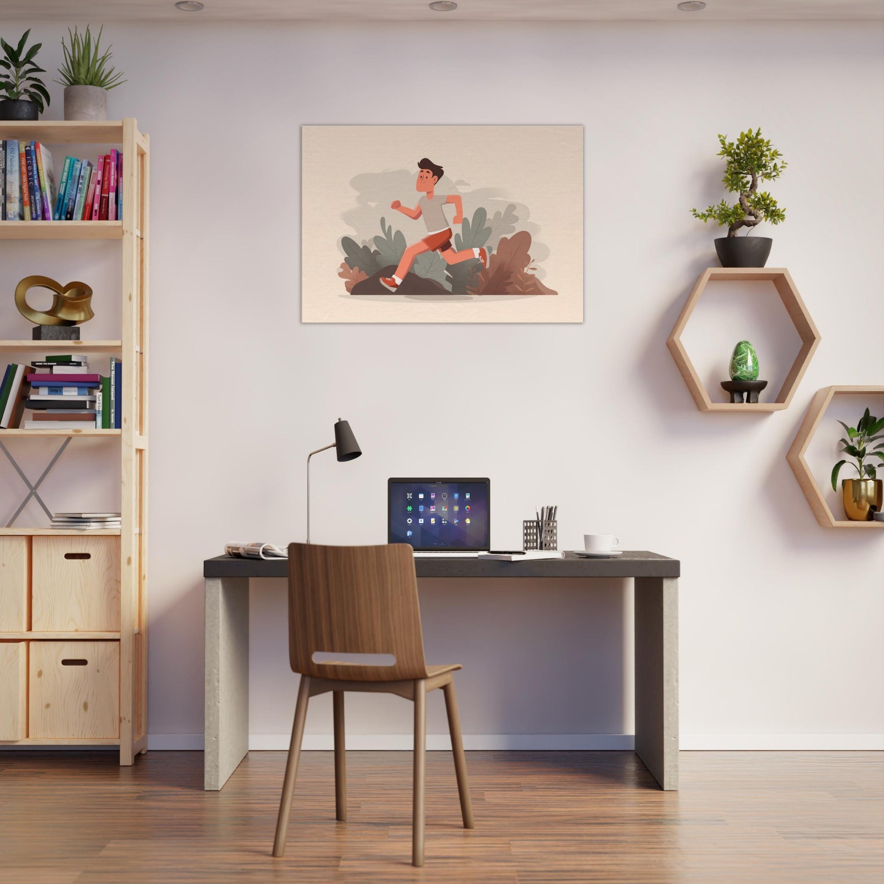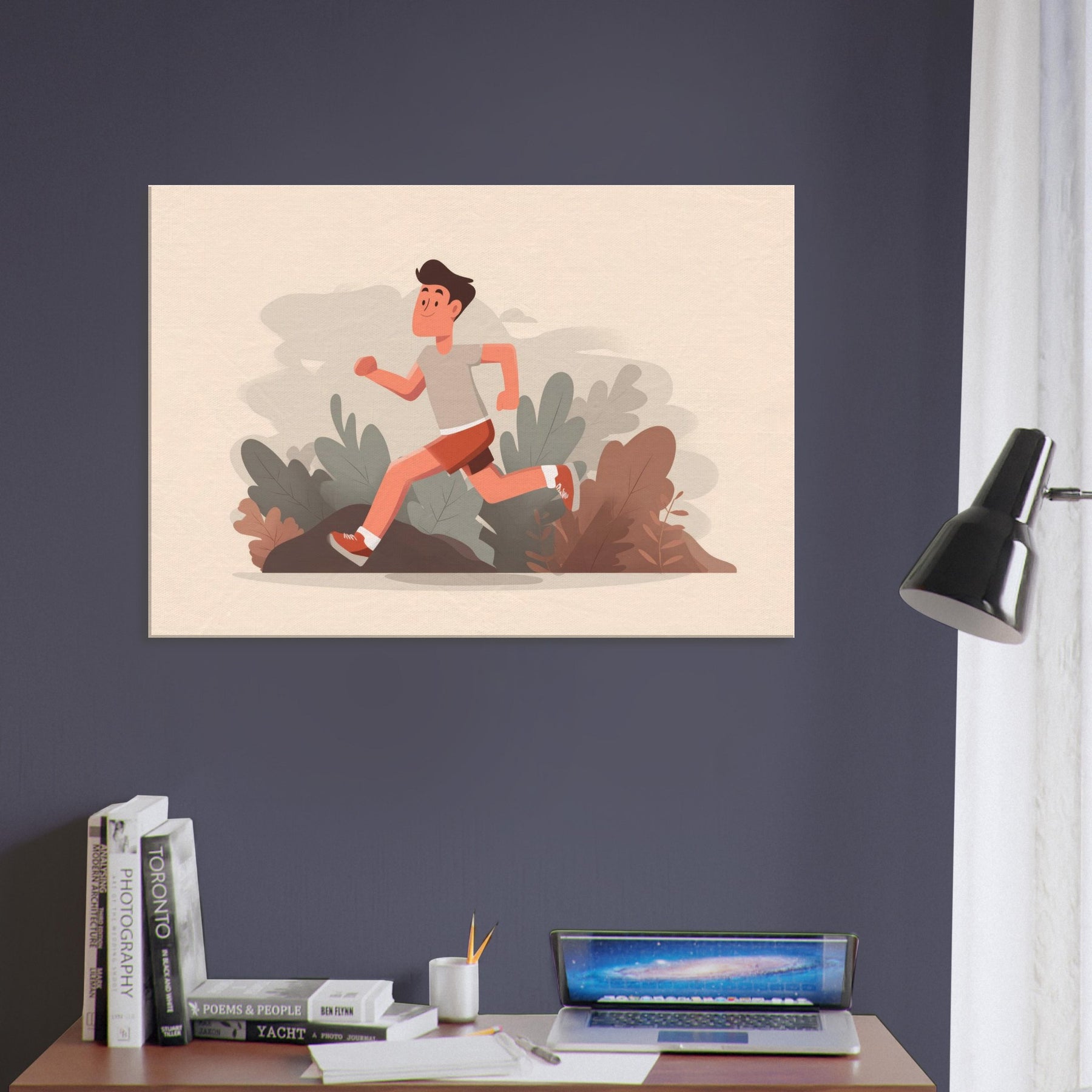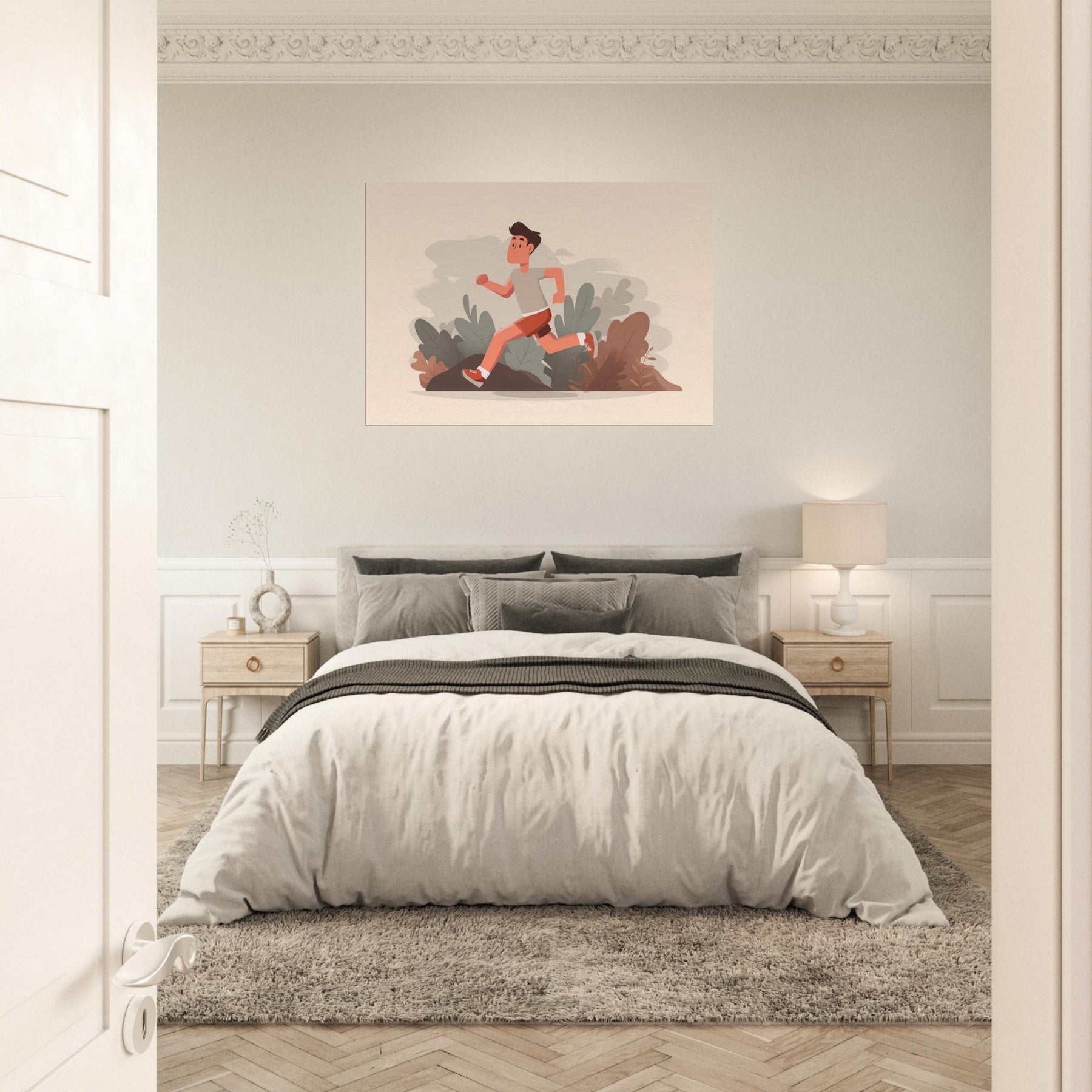 Embrace forward momentum with the Runner in Motion, a minimalist study of focus and breath. The soft, warm palette and clean shapes invite a quiet energy into any room, as if a morning run punctured the stillness of your living space. The scene moves over a gentle backdrop of muted foliage, suggesting motion without noise a calm catalyst for concentration, relaxation, or casual conversation. This artwork elevates walls with atmosphere, turning everyday spaces into a gallery of momentum, balance, and subtle, enduring grace.