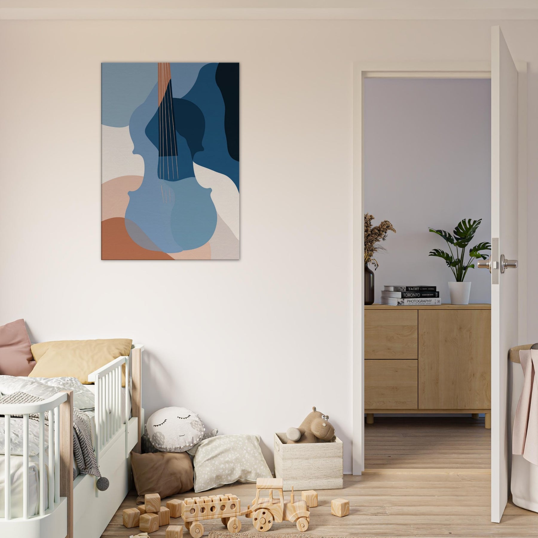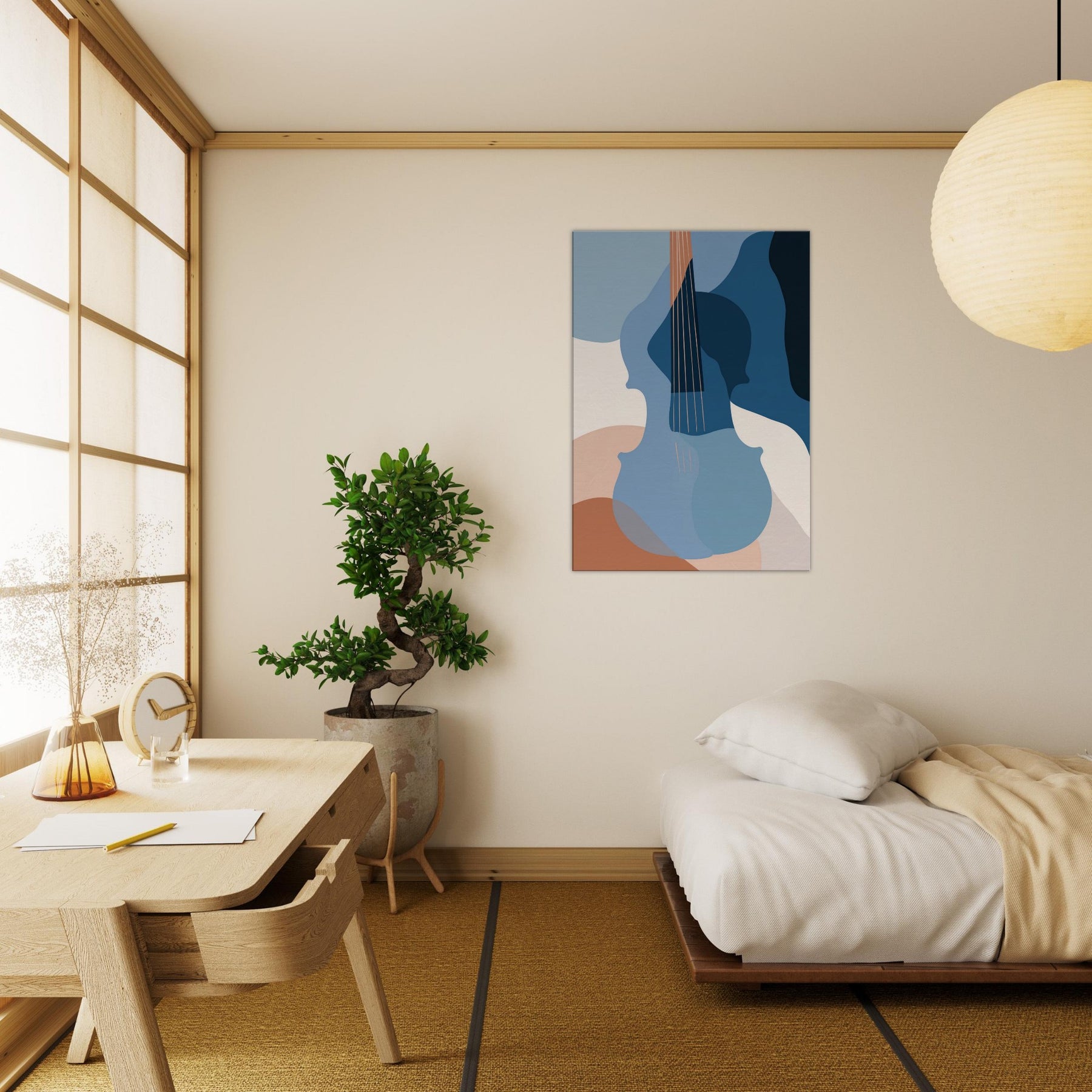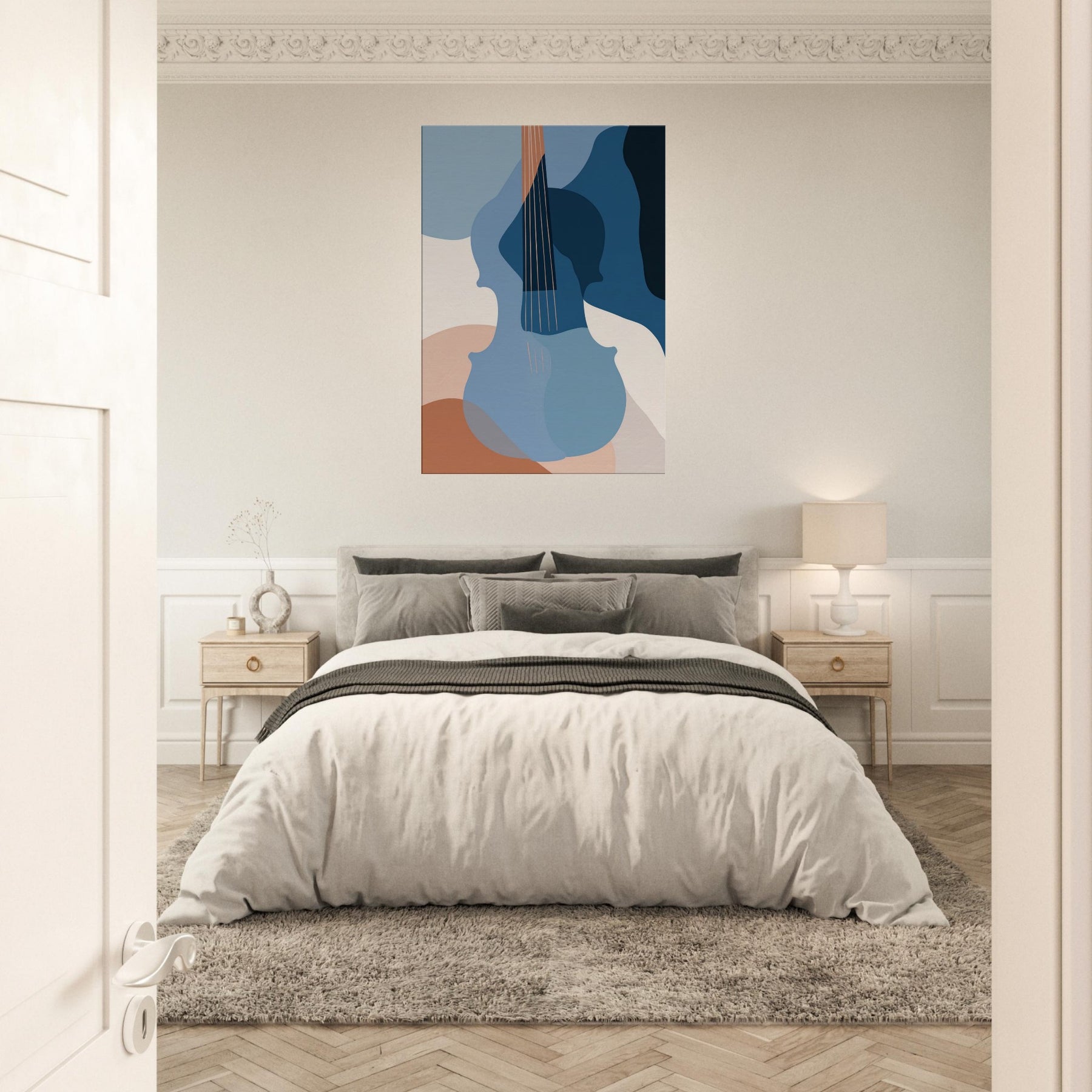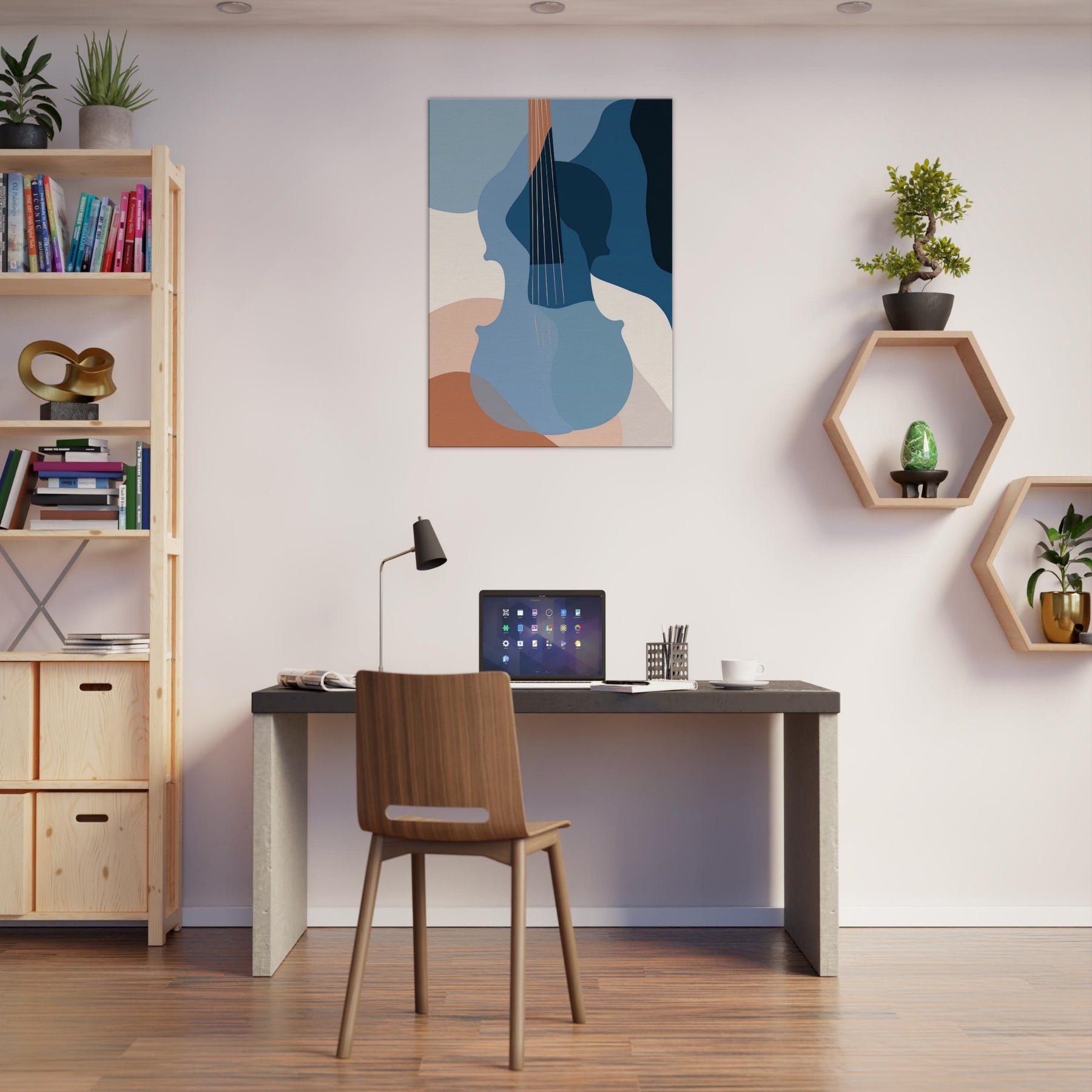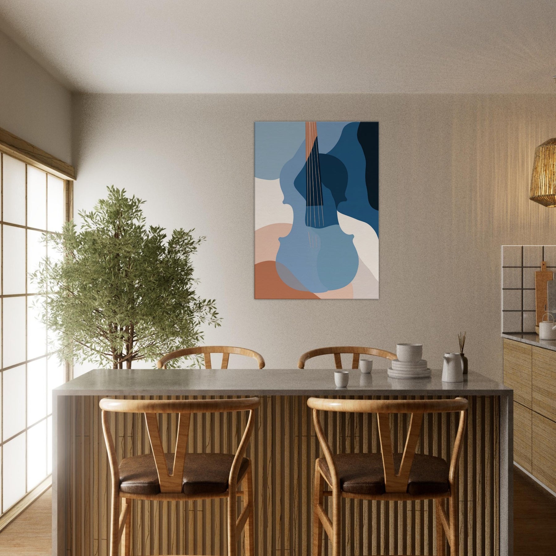 An ode to quiet resonance, this minimalist composition frames a violin in airy, color blocked silhouettes. The softened blues cradle the room in a hushed cadence, while slender threads of light trace the instrument’s strings, inviting a listening mood even when the music is off. Ideal for a living room or study, it hums with elegance without shouting, adding depth to walls with its gentle rhythm and tactile warmth. A refined dialogue between form and feeling.