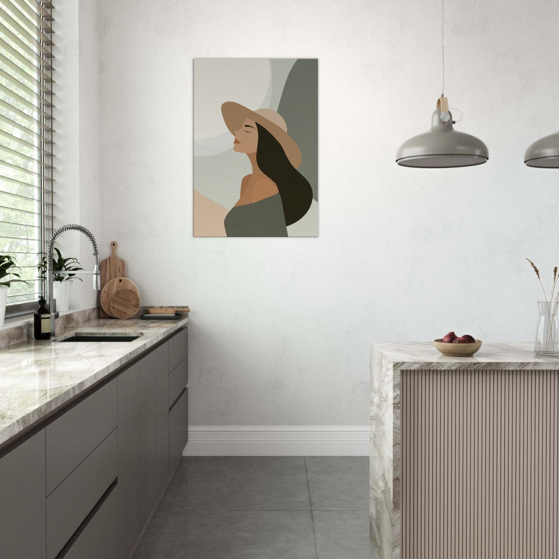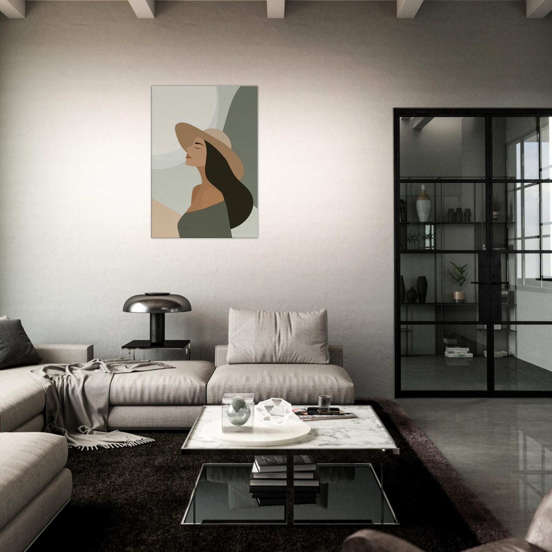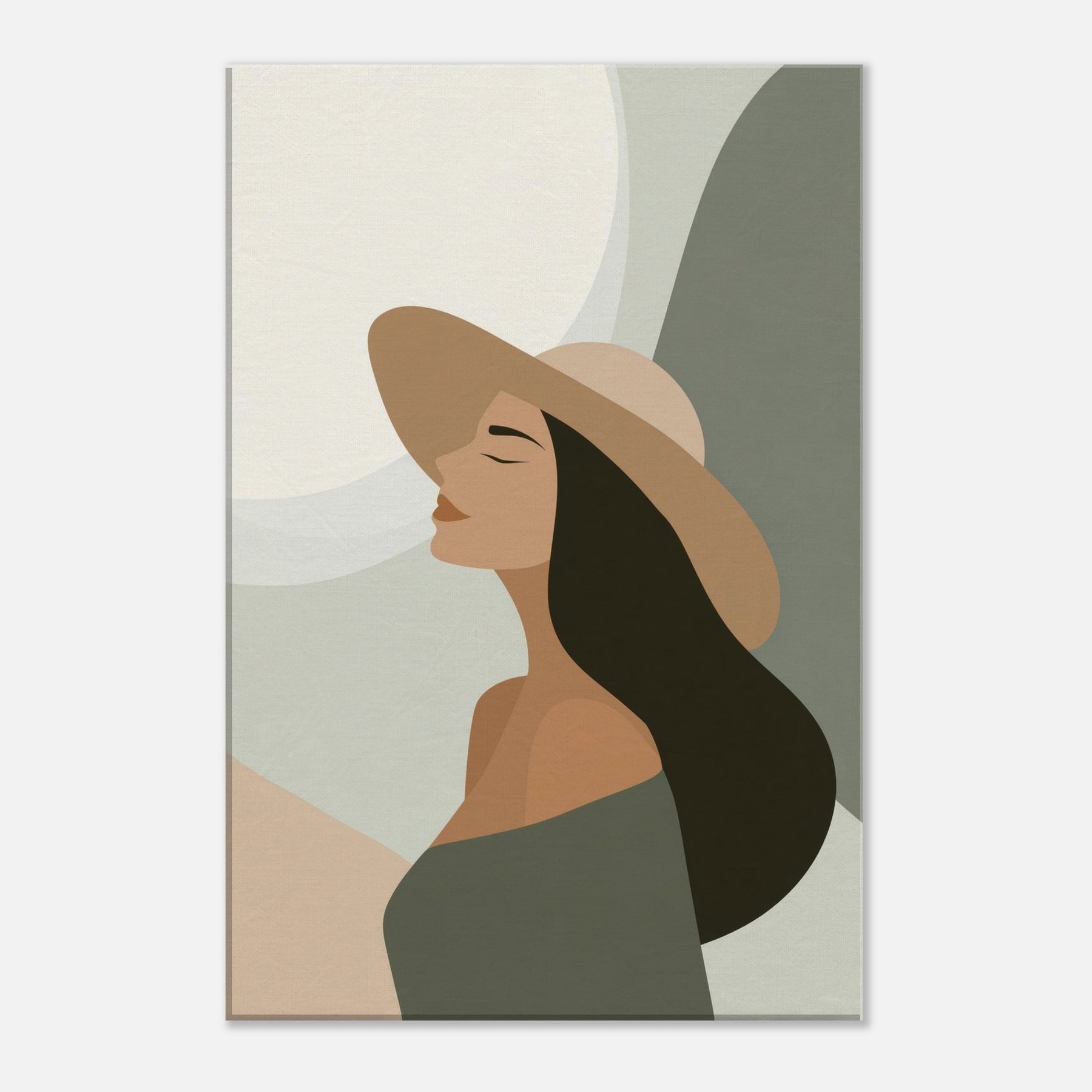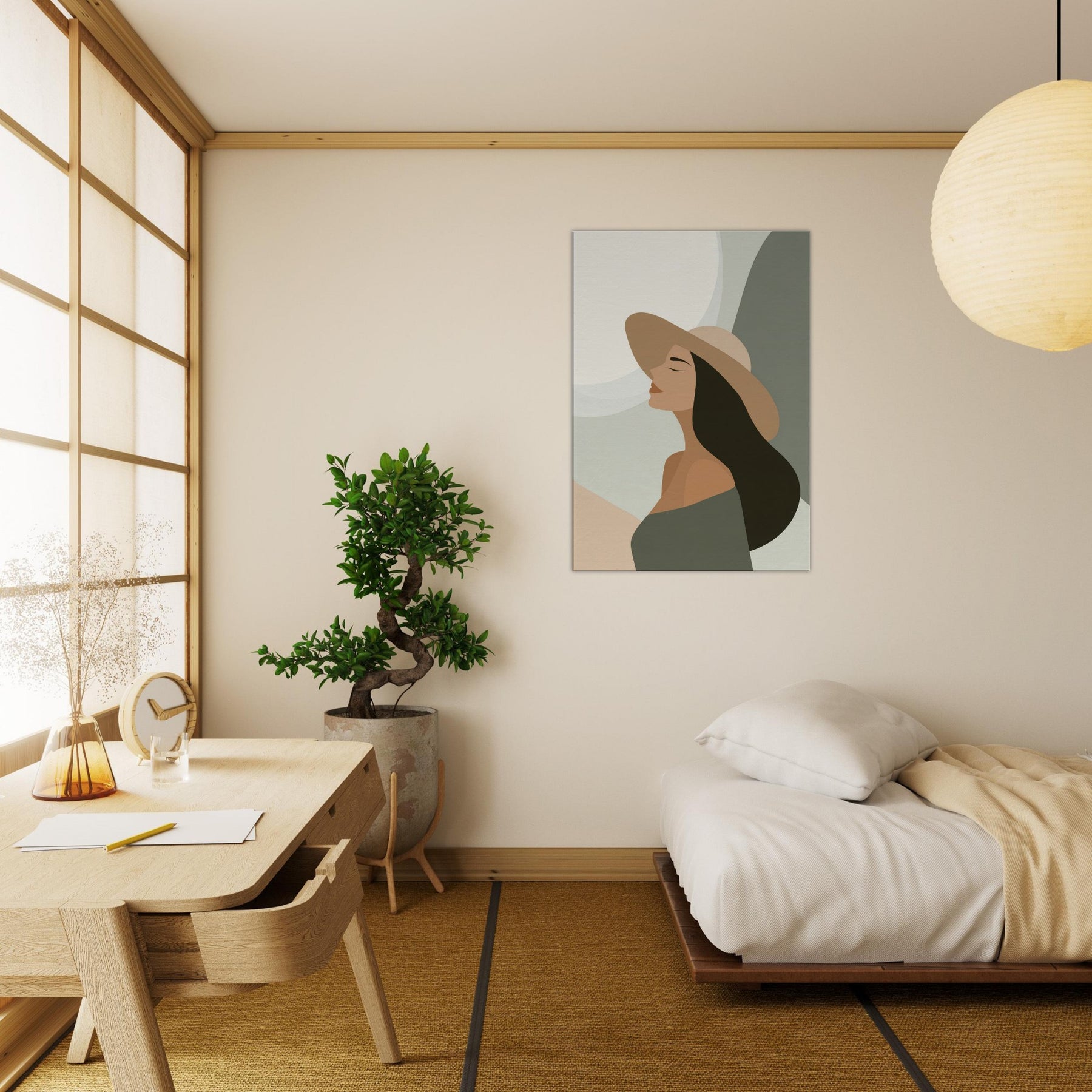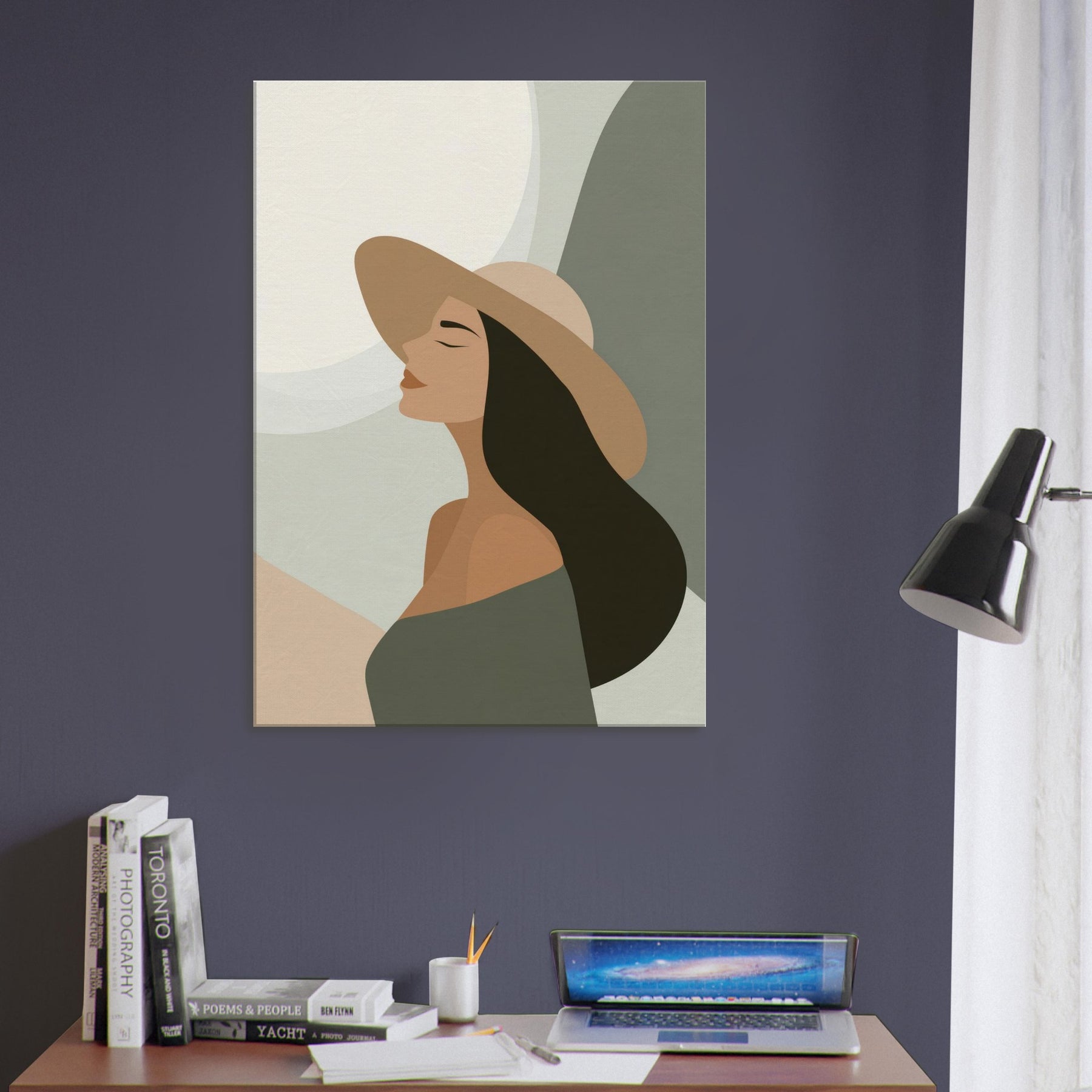 Immerse your space in the quiet confidence of a woman with hat, captured in sweeping, simplified forms and a sunlit palette. This minimalist radiates calm elegance, the hat curling like a soft shadow, the long hair tracing a graceful arc. The composition invites a moment of pause, turning a wall into a gallery of restraint and warmth. Perfect for a serene living room or study, it layers atmosphere and texture without shouting, letting light do the speaking.