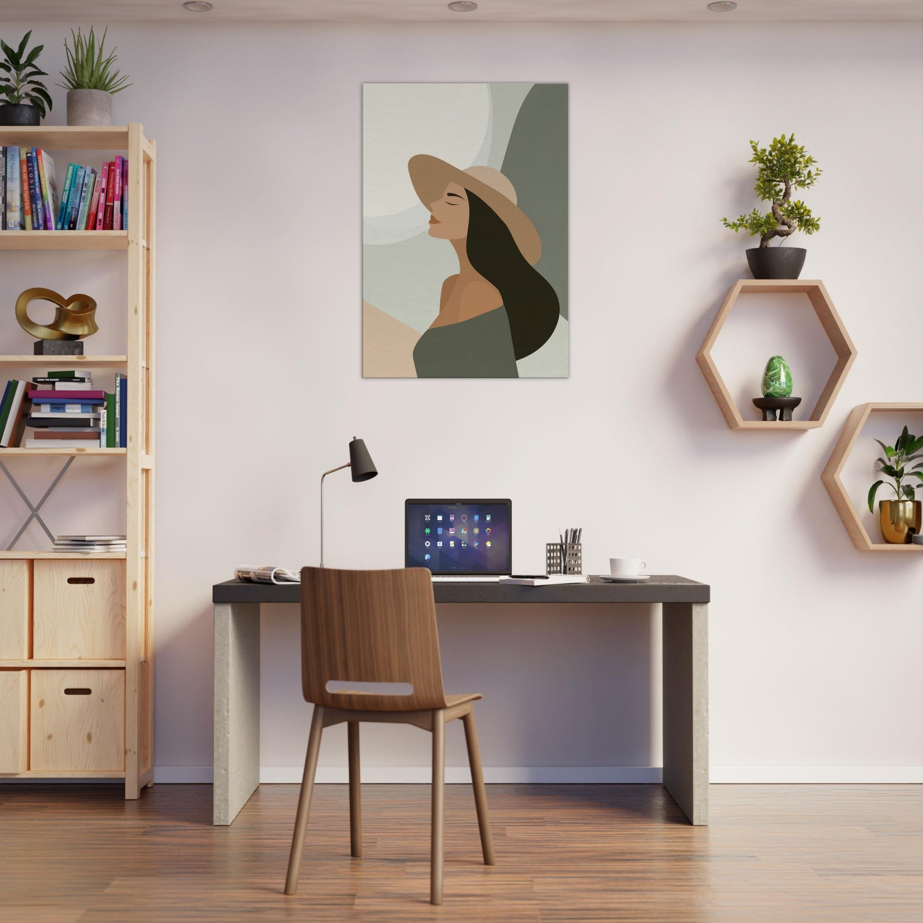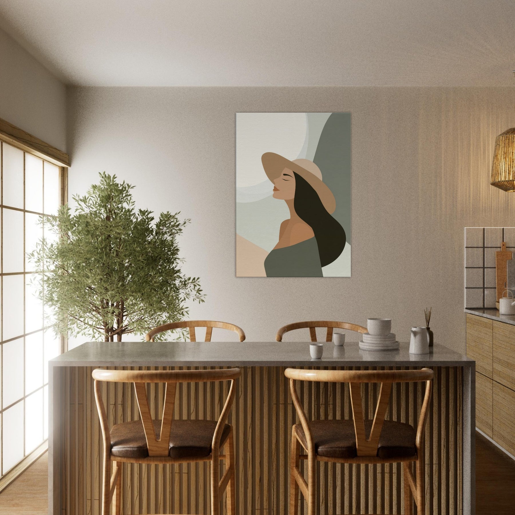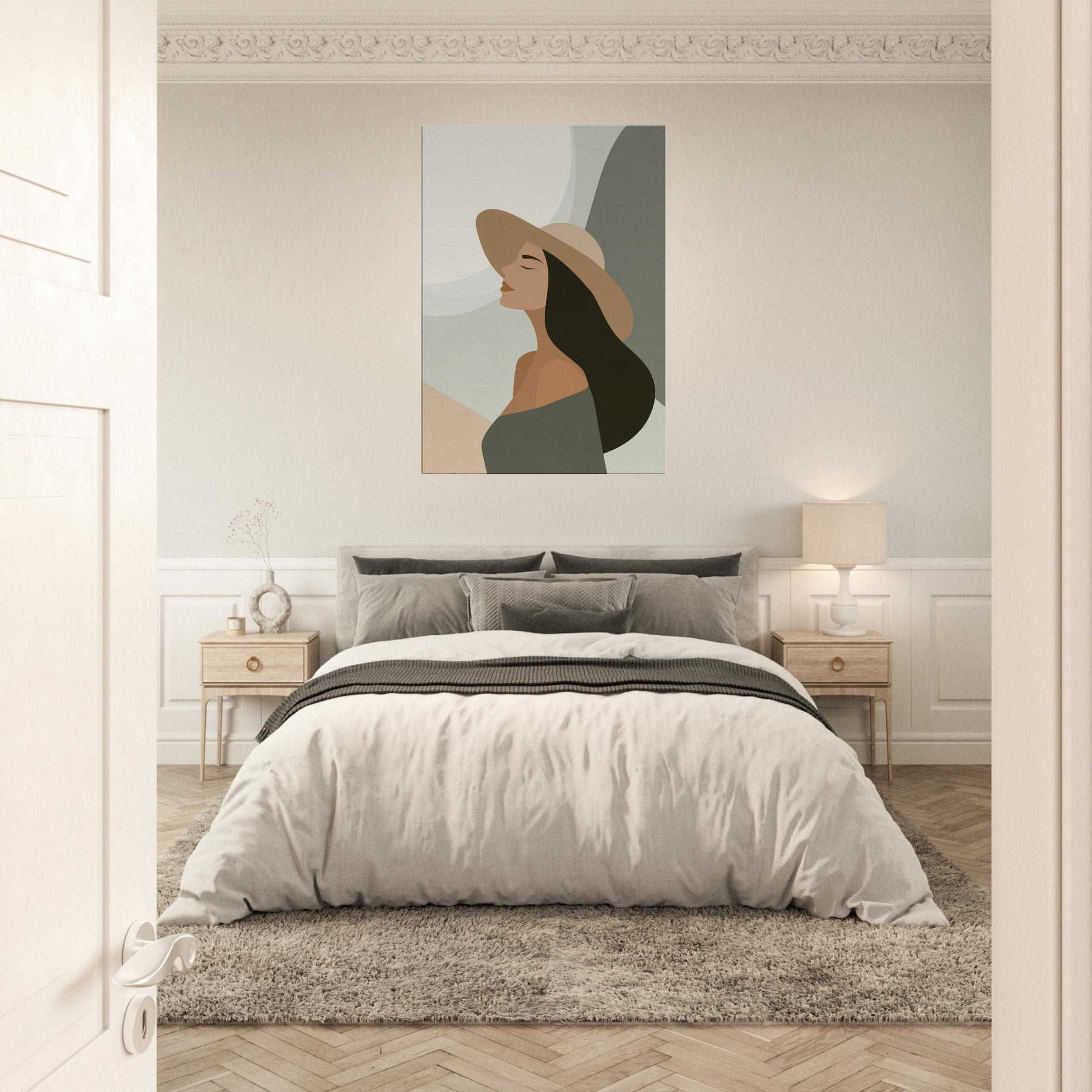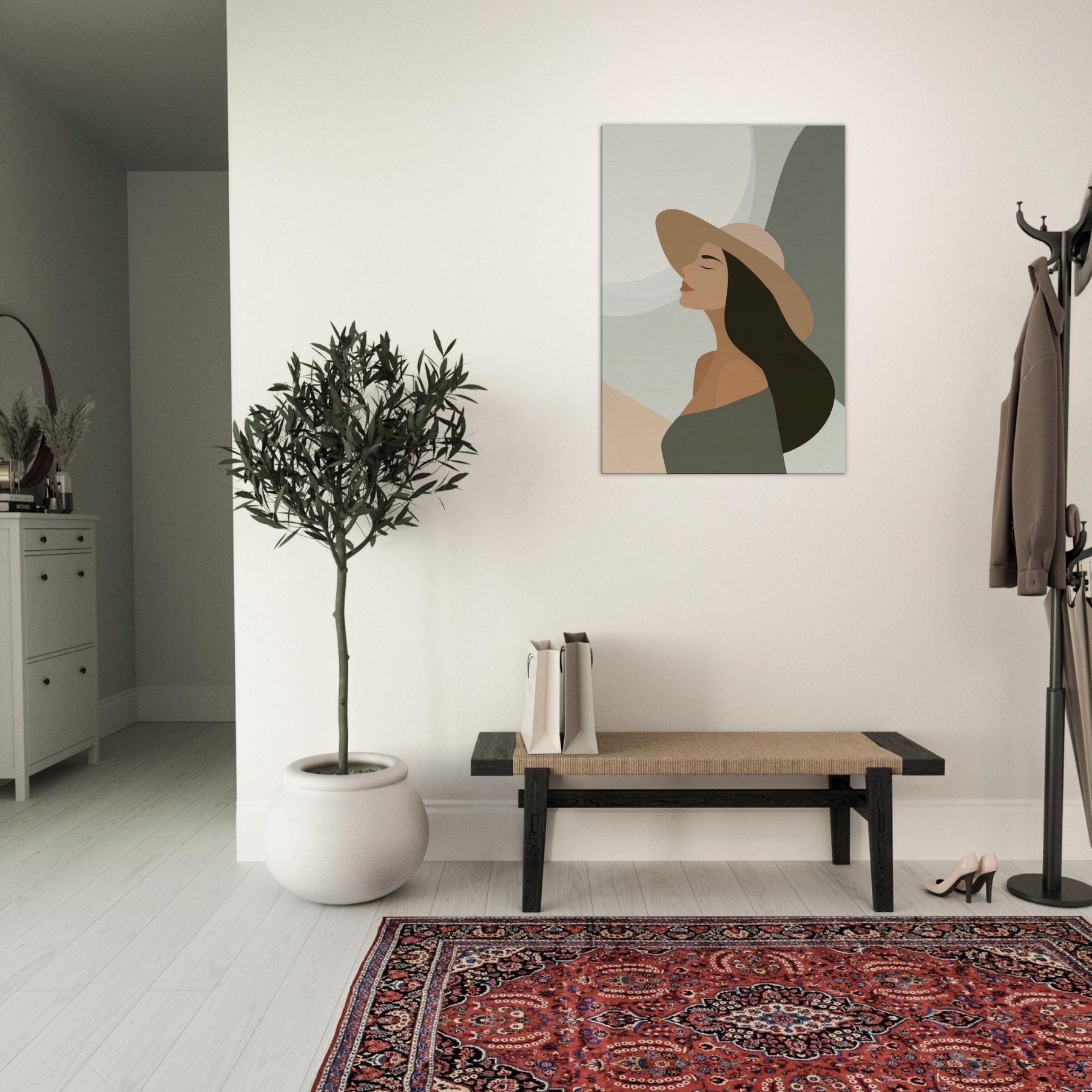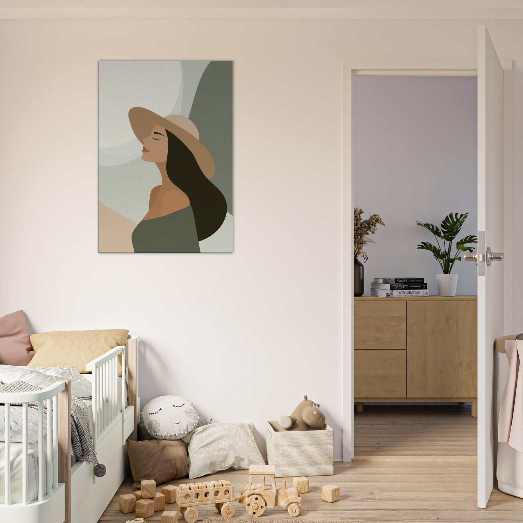 Immerse your space in the quiet confidence of a woman with hat, captured in sweeping, simplified forms and a sunlit palette. This minimalist radiates calm elegance, the hat curling like a soft shadow, the long hair tracing a graceful arc. The composition invites a moment of pause, turning a wall into a gallery of restraint and warmth. Perfect for a serene living room or study, it layers atmosphere and texture without shouting, letting light do the speaking.