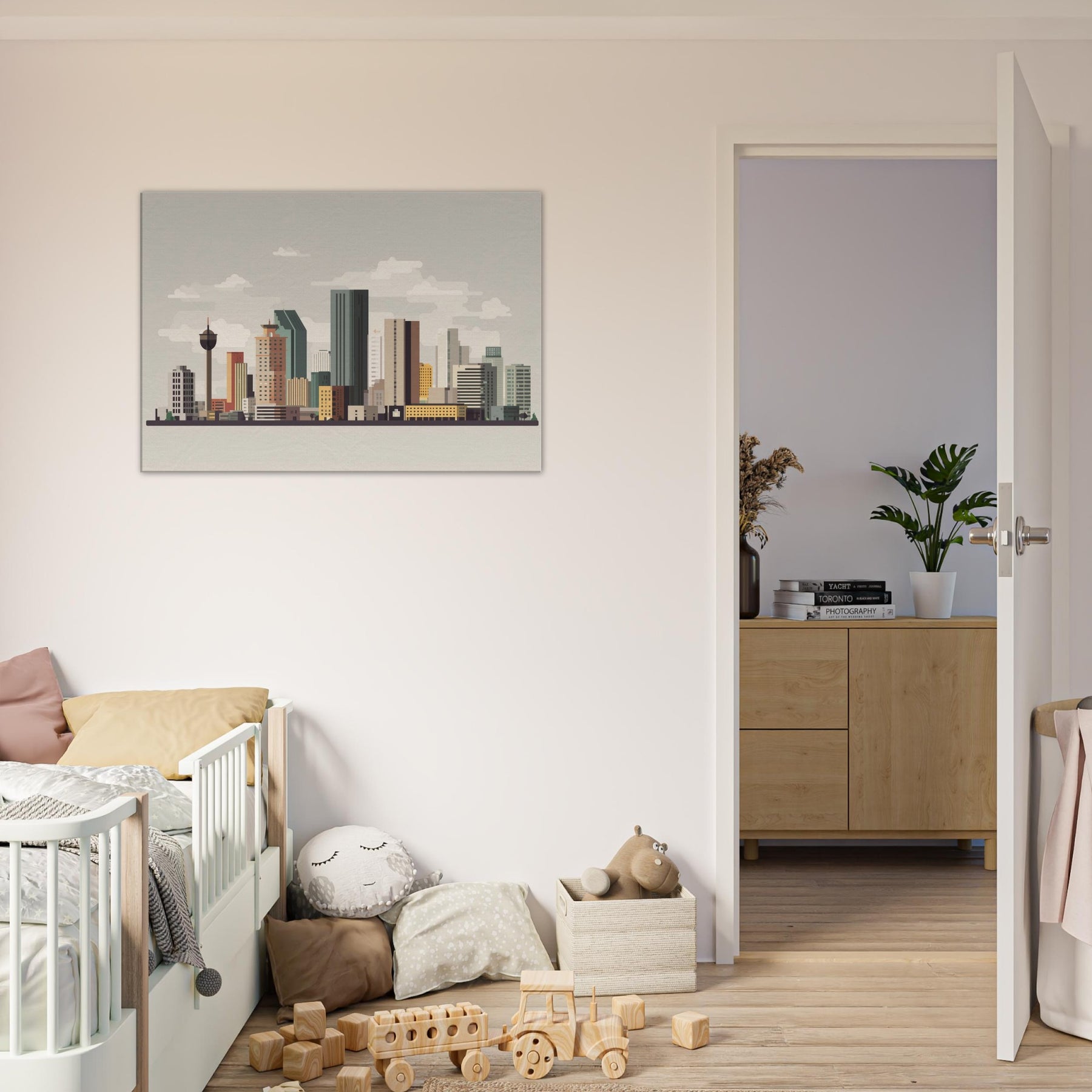 Immerse yourself in the quiet majesty of Mexico City through this minimalist skyline, where clean lines trace a living room's horizon with calm rhythm. Soft earth tones and muted blues drift across the composition, inviting stillness after a busy day. The restrained geometry creates a sense of space, guiding the eye toward the silhouettes like a gentle breath. Hang it in a lounge or study to evoke urban clarity and a subtle promise of exploration.