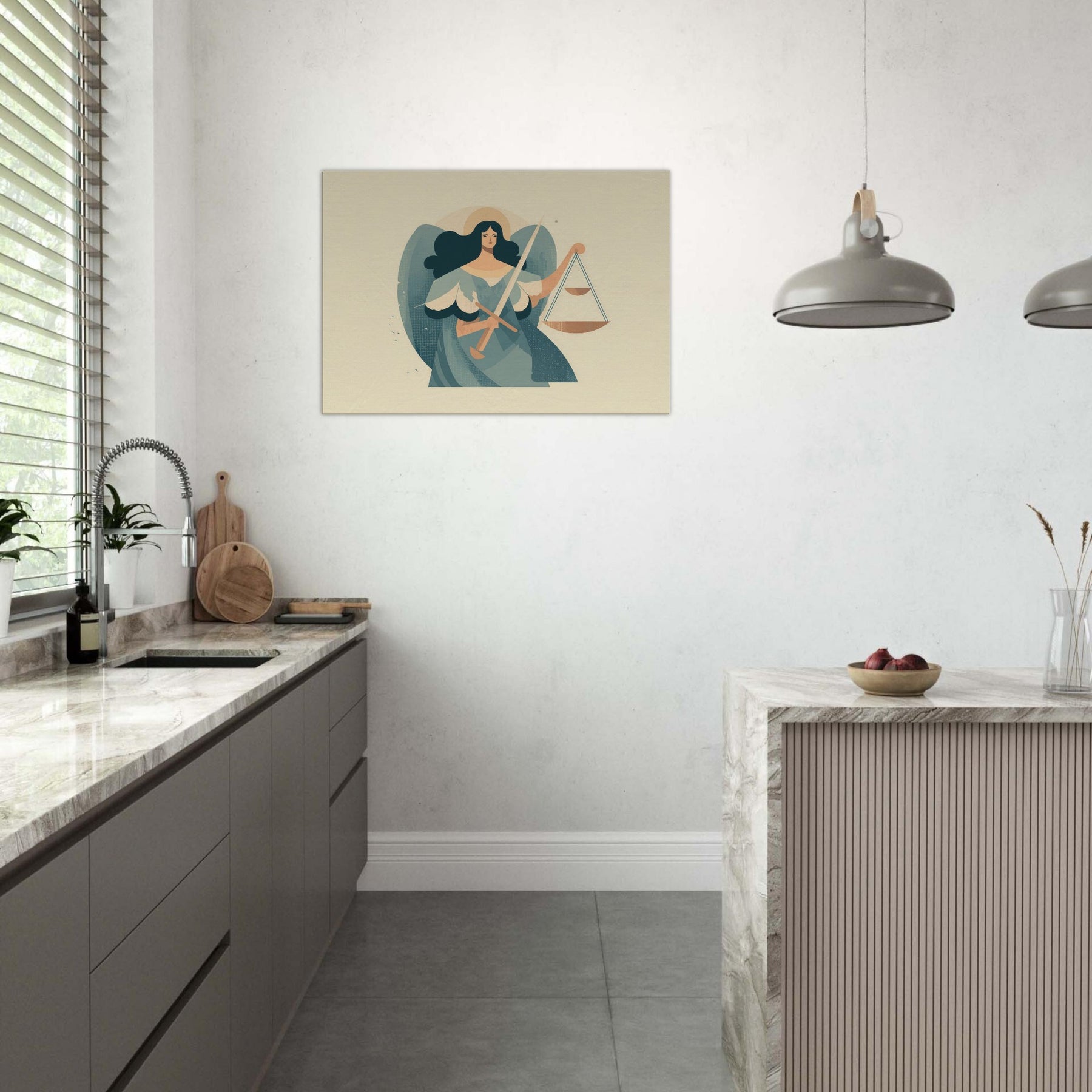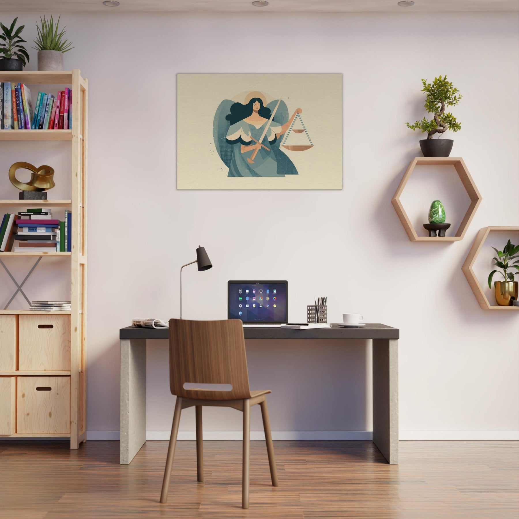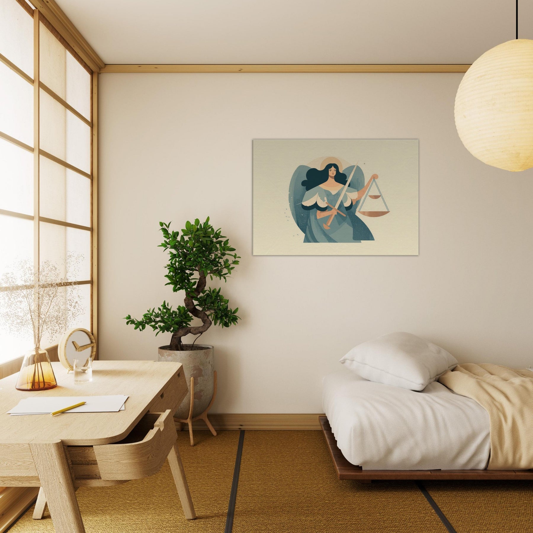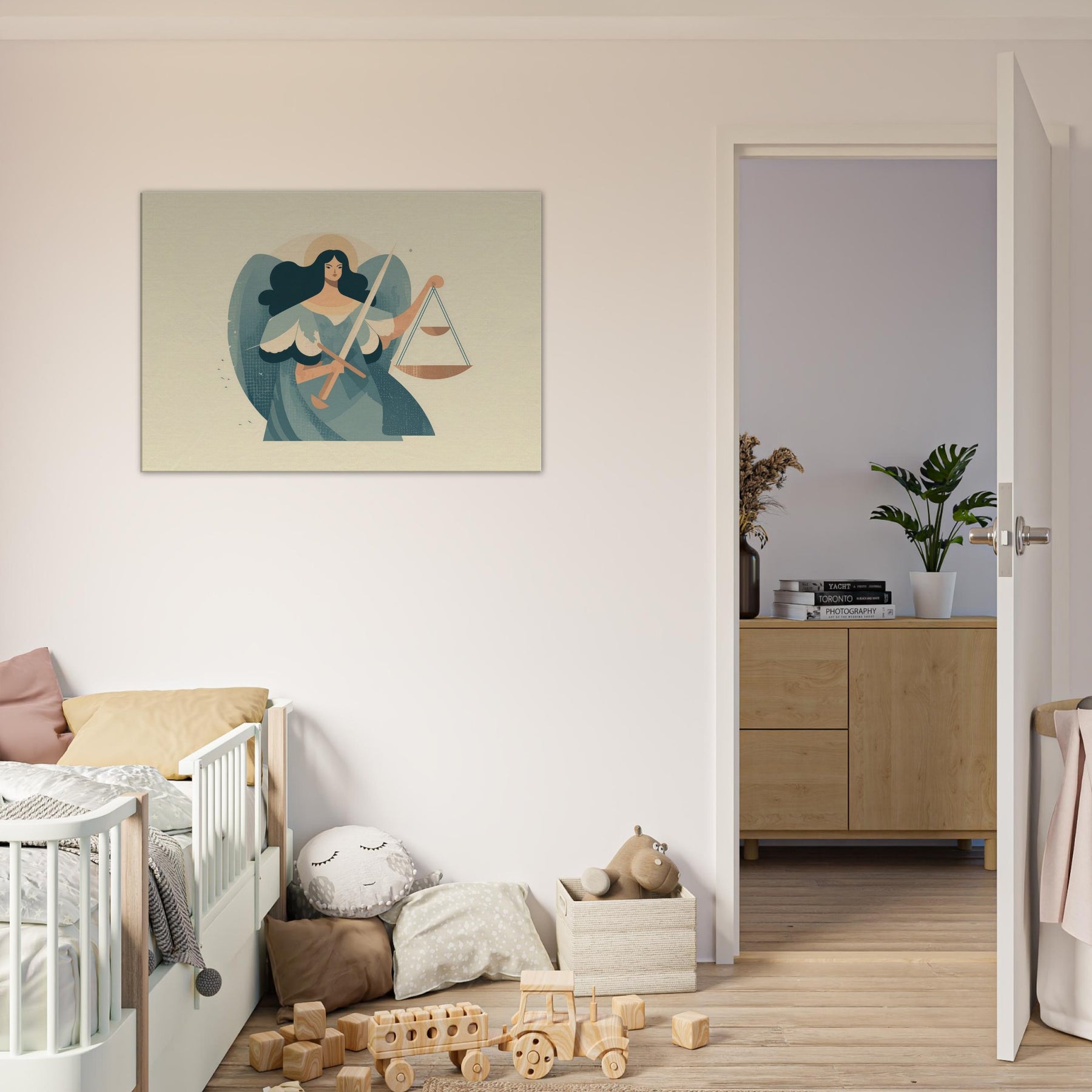 Let Archangel Michael guide your living space with quiet authority. This minimalist wall art distills a celestial figure into clean planes of color, where the sword and the scales hover like symbols of balance and courage. The restrained palette navy, teal, sand breathes calm into any room, inviting contemplation at dawn or dusk. Hang this piece in an entryway, living room, or study to evoke protection, clarity, and a serene, modern mystique. The central subject is Archangel Michael (Sword & Scales).
