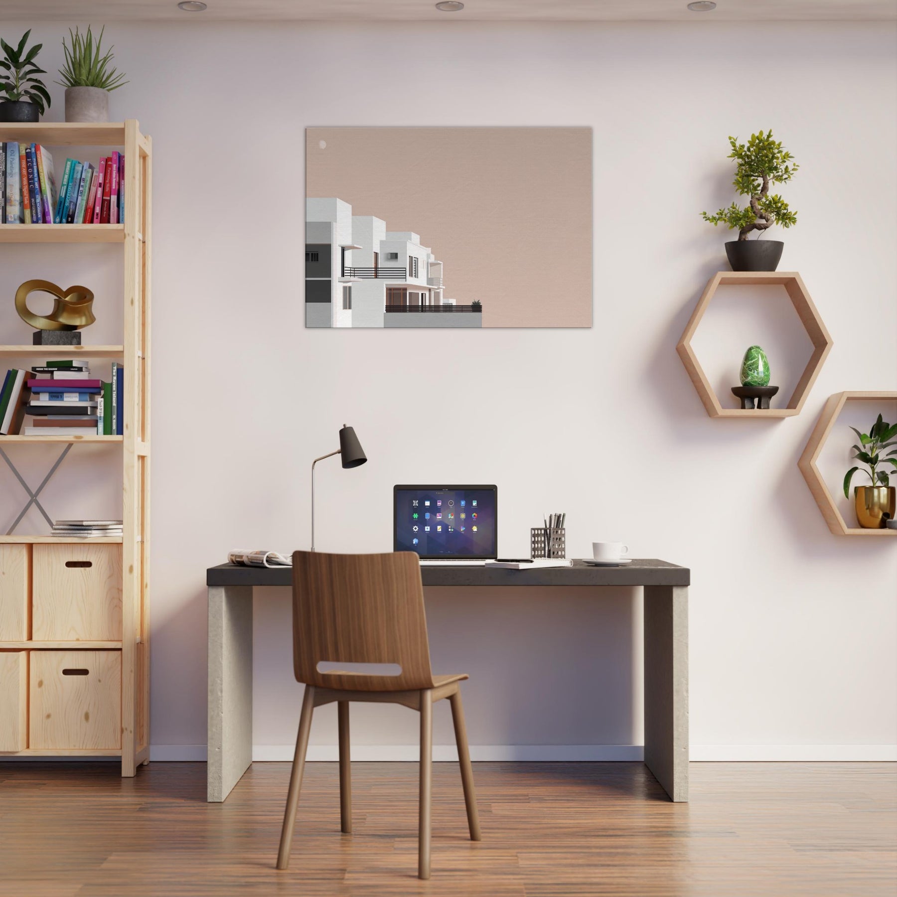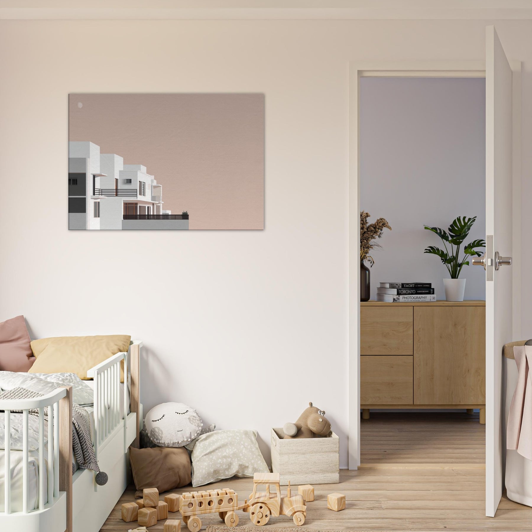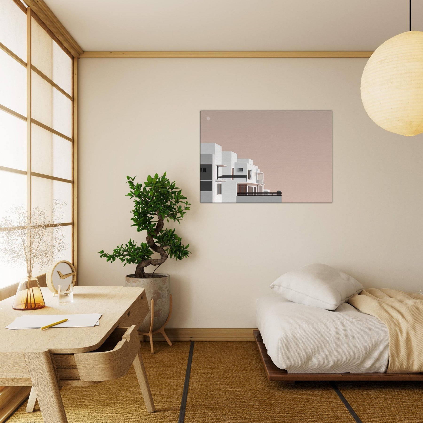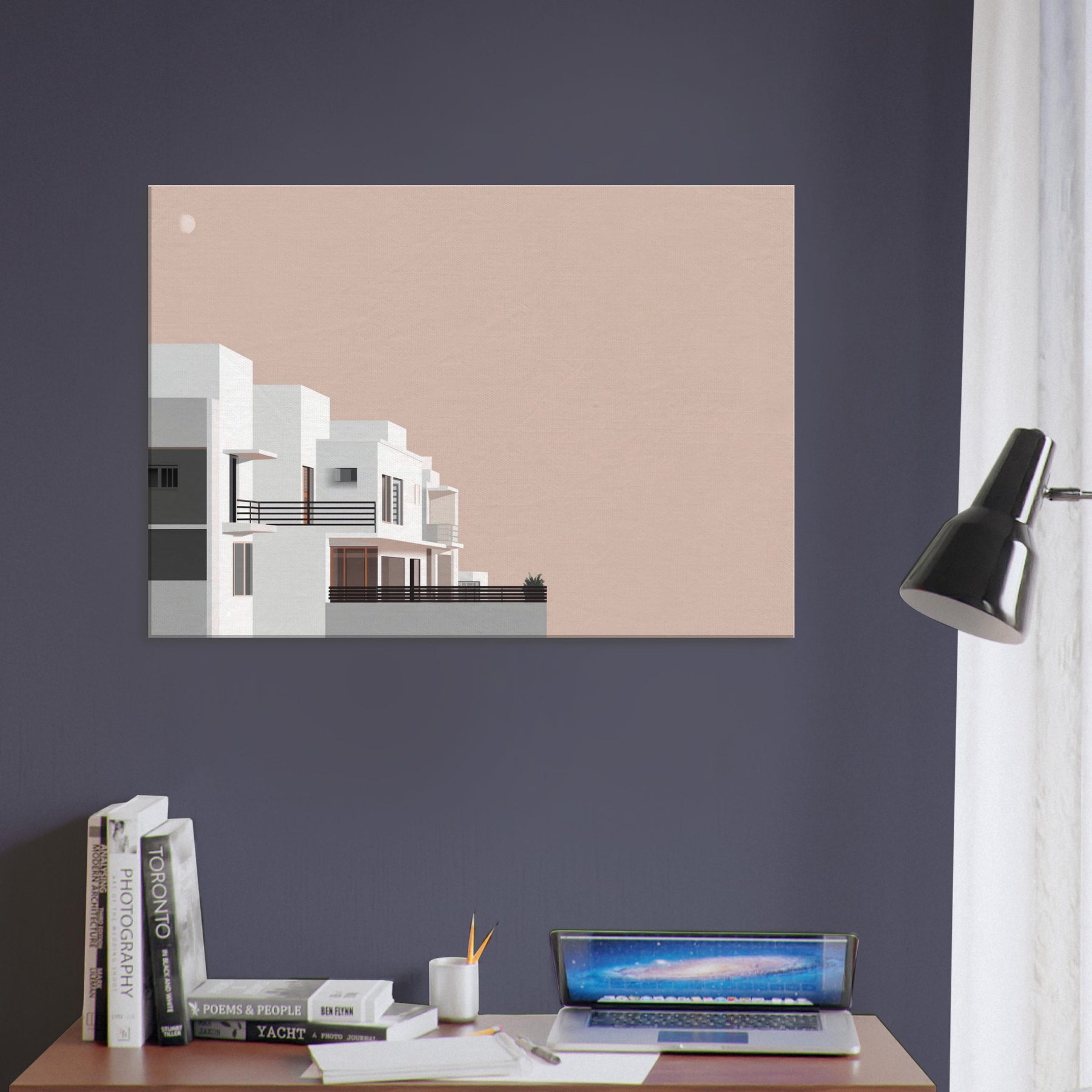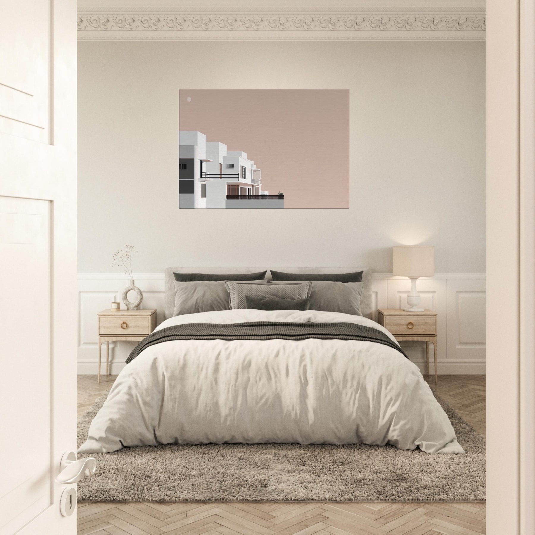 Sydney Quiet Light invites the room to breathe. This minimalist study of a coastal cityscape distills sunlit balconies, clean lines, and soft shadows into a calm rhythm that glows on walls. The gentle whites and warm neutrals create a sense of spacious air, while subtle browns echo late afternoon harbor tones. It’s the kind of piece that softens a living room or bedroom, offering architectural clarity without noise. Hang it above a sofa or desk to invite daily pauses, reflection, and gracious, everyday living.